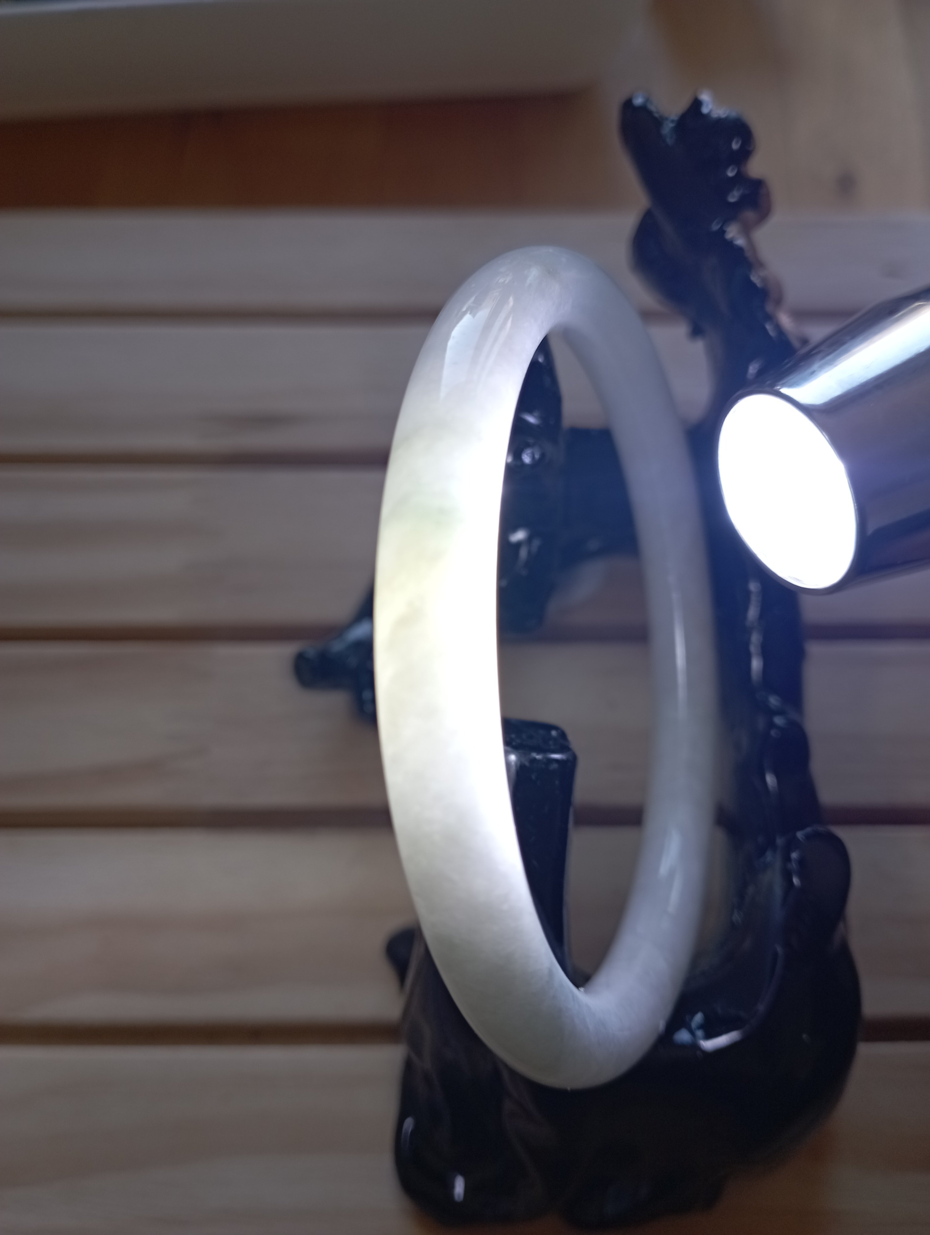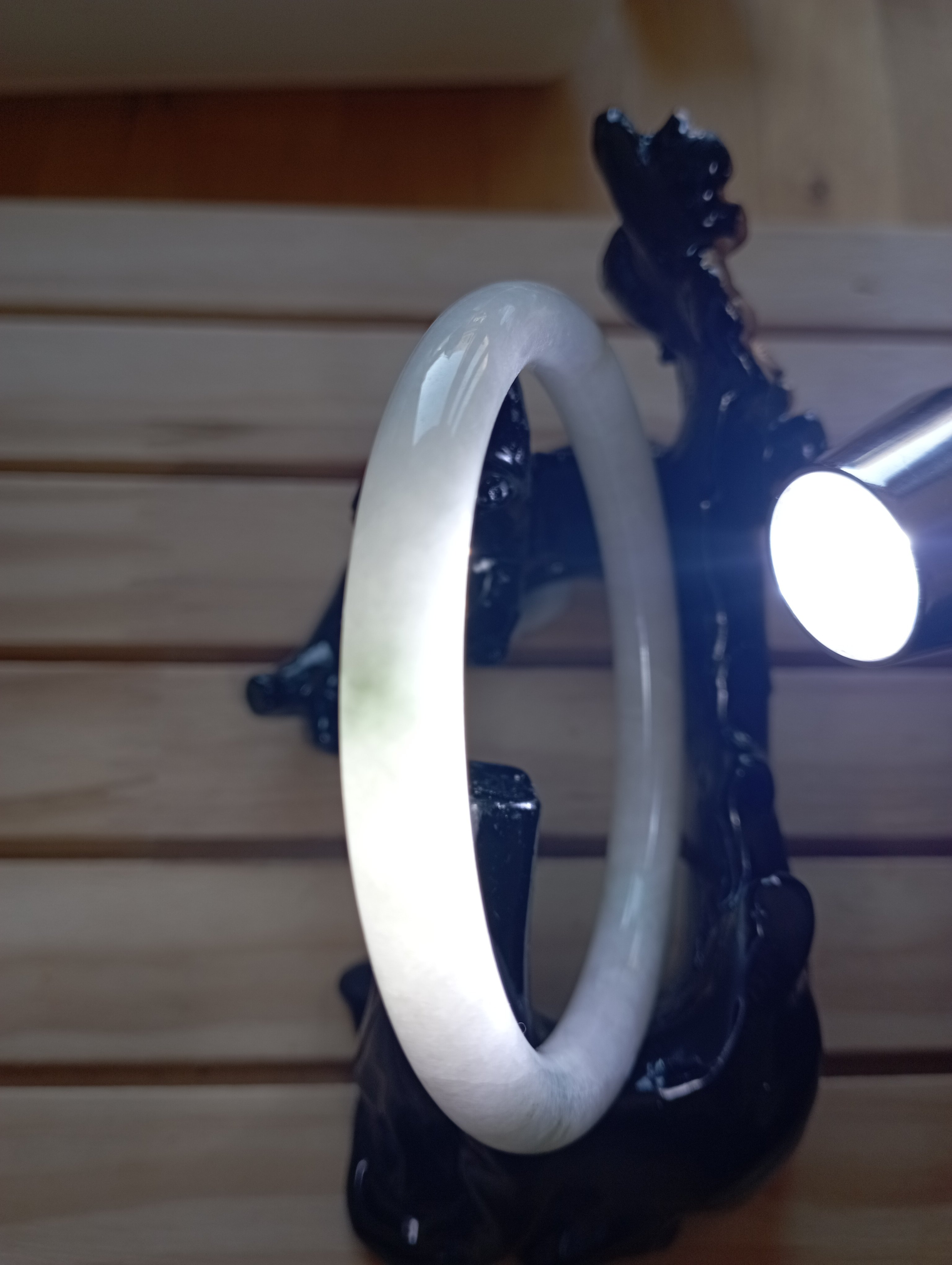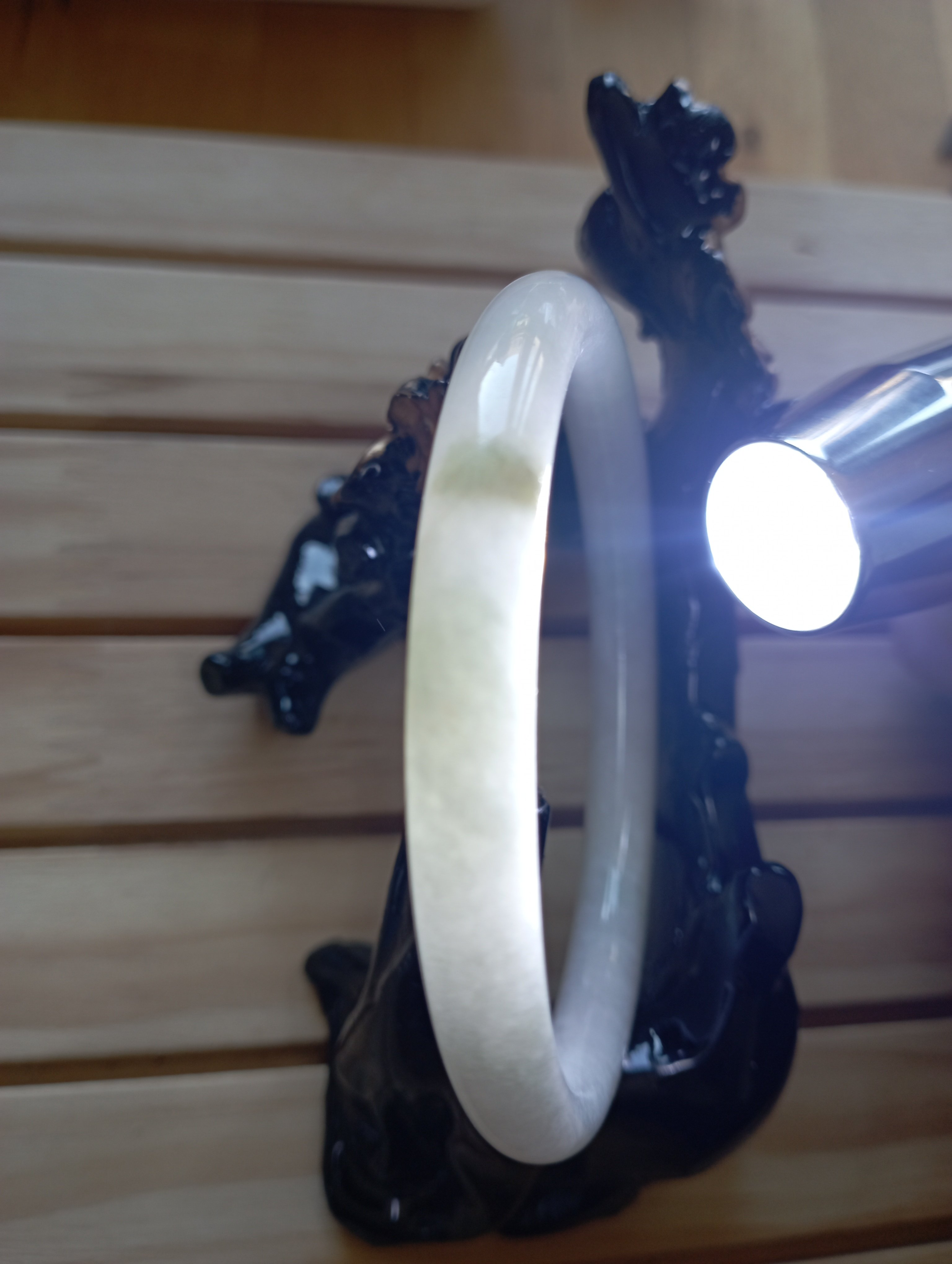 Bargain bangle in white with light green blooms, measures 56.6 X 7.3 X 7.1mm fits up to 58mm, comes with a certificate of authenticity £55