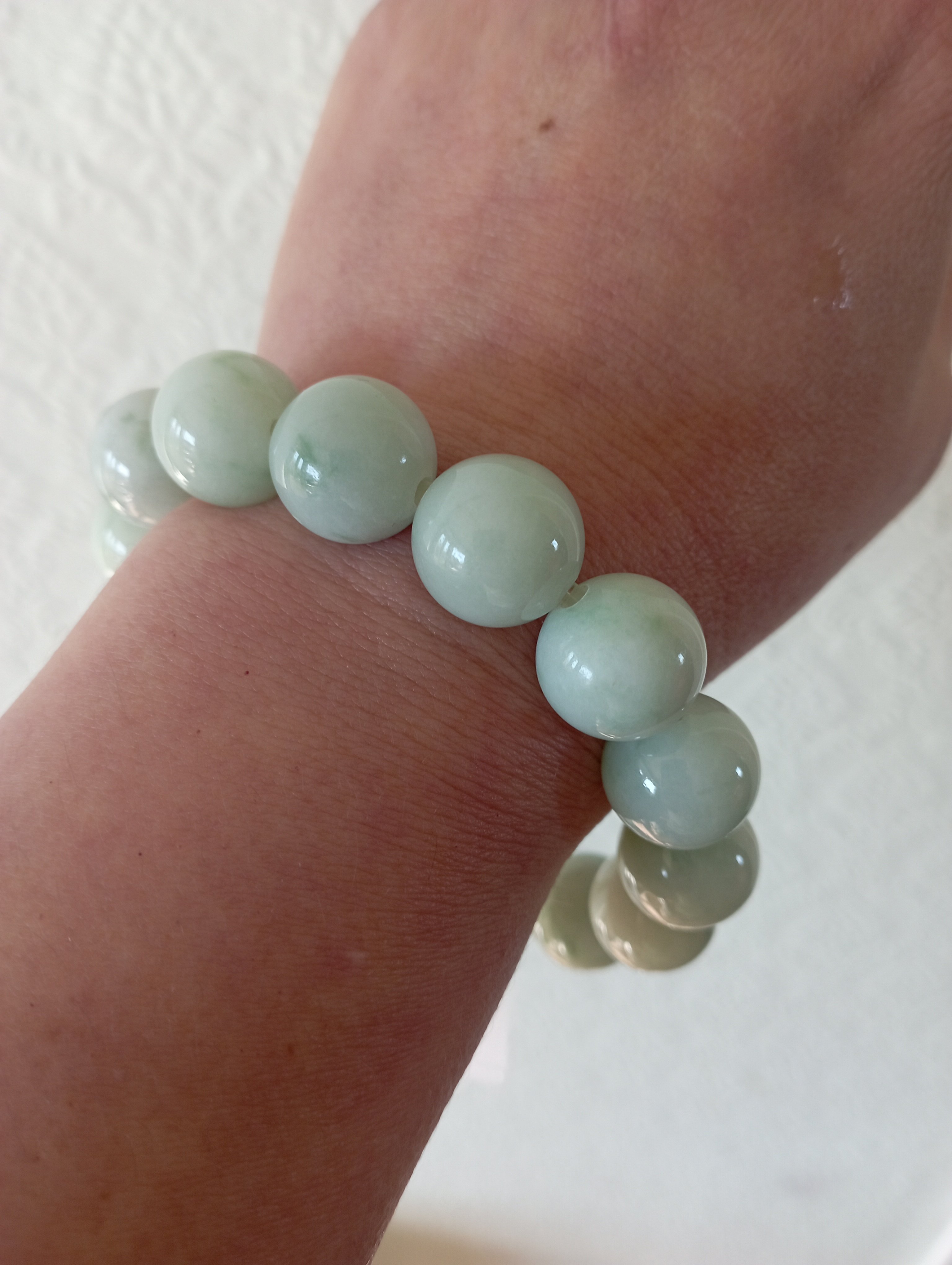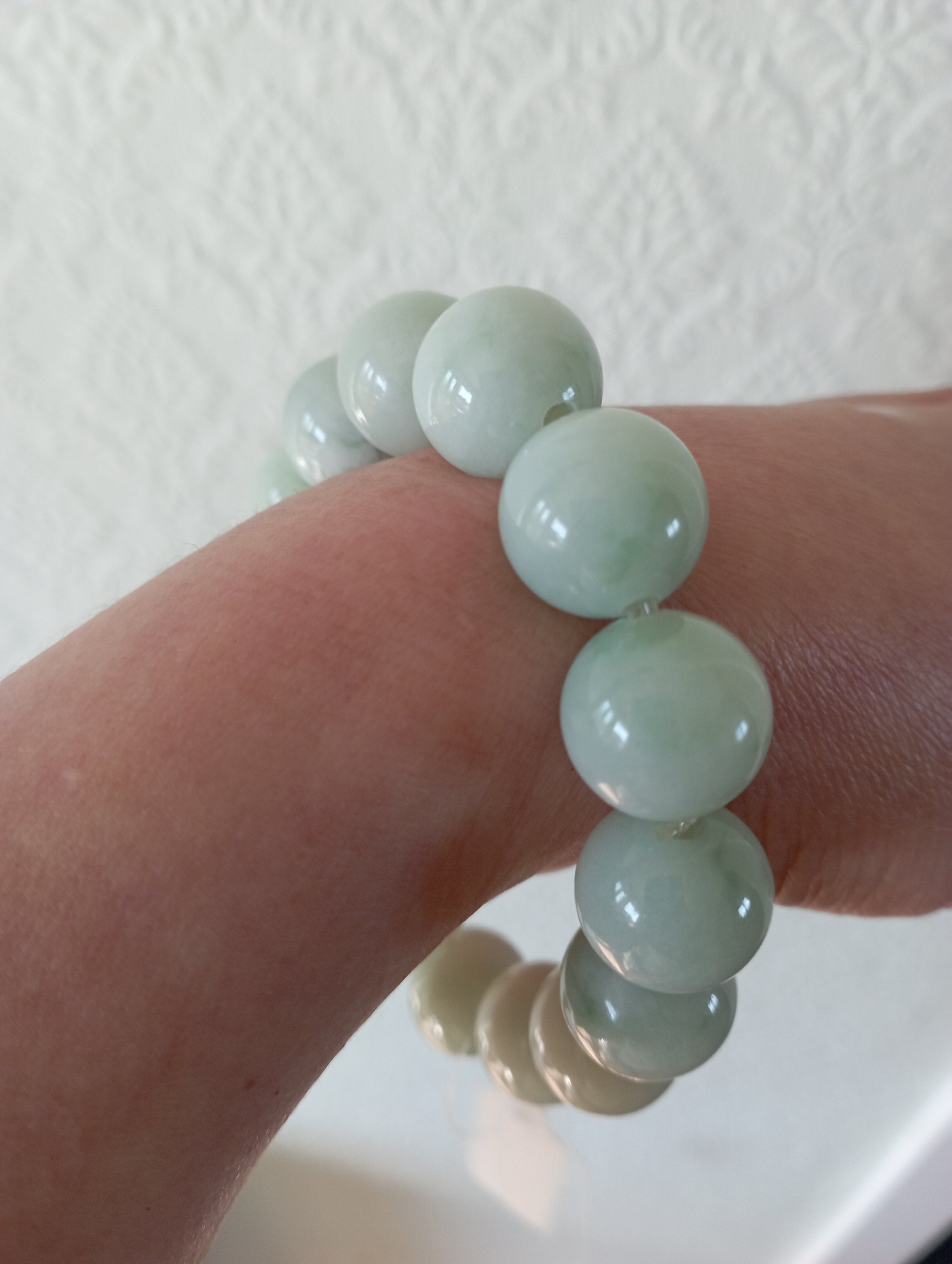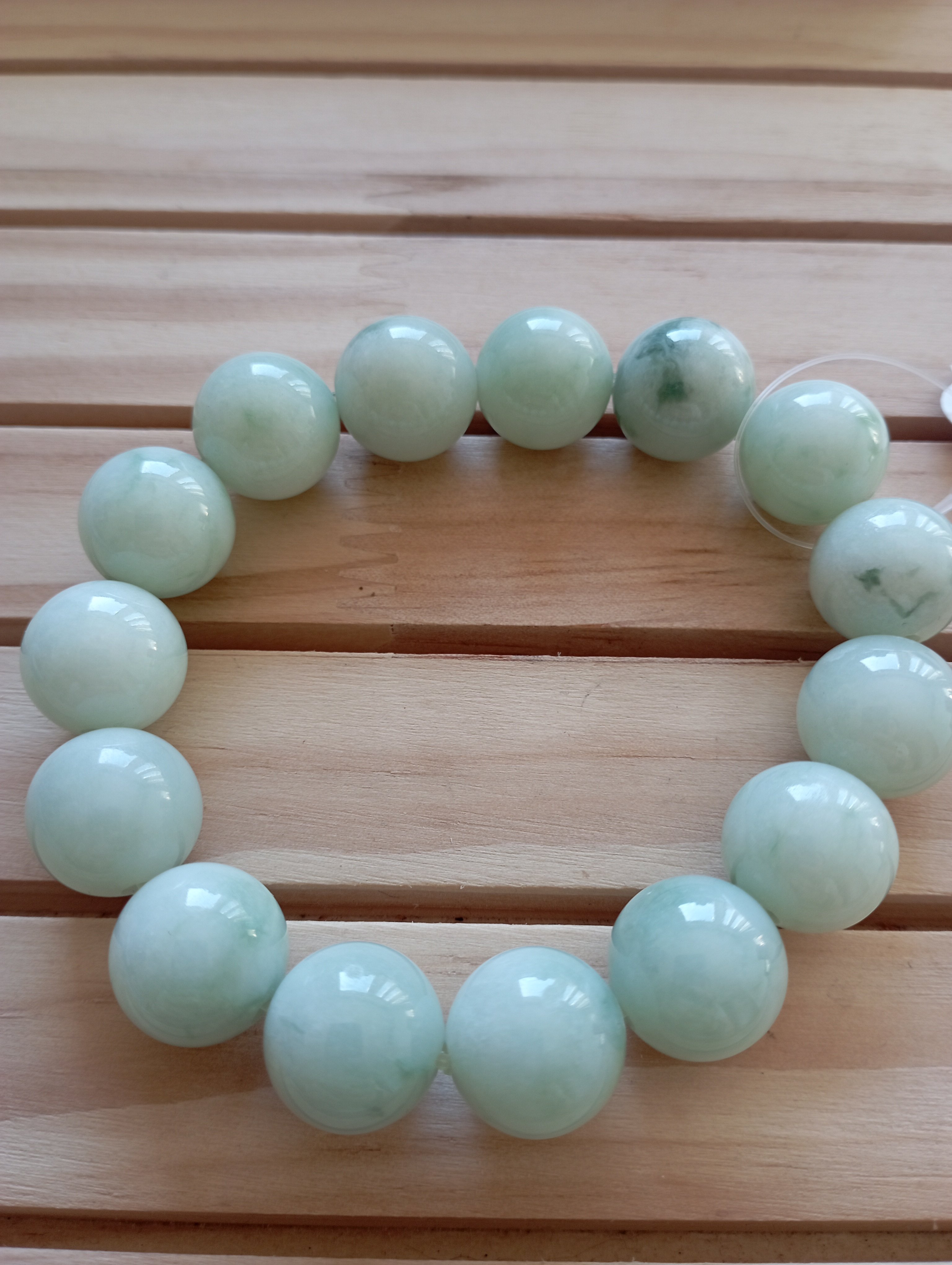 Unisex beaded bracelet measures 14mm per bead. There are 15 beads in the bracelet and will fix a medium size man. The light apple green is very attractive and suitable for everyone. £78