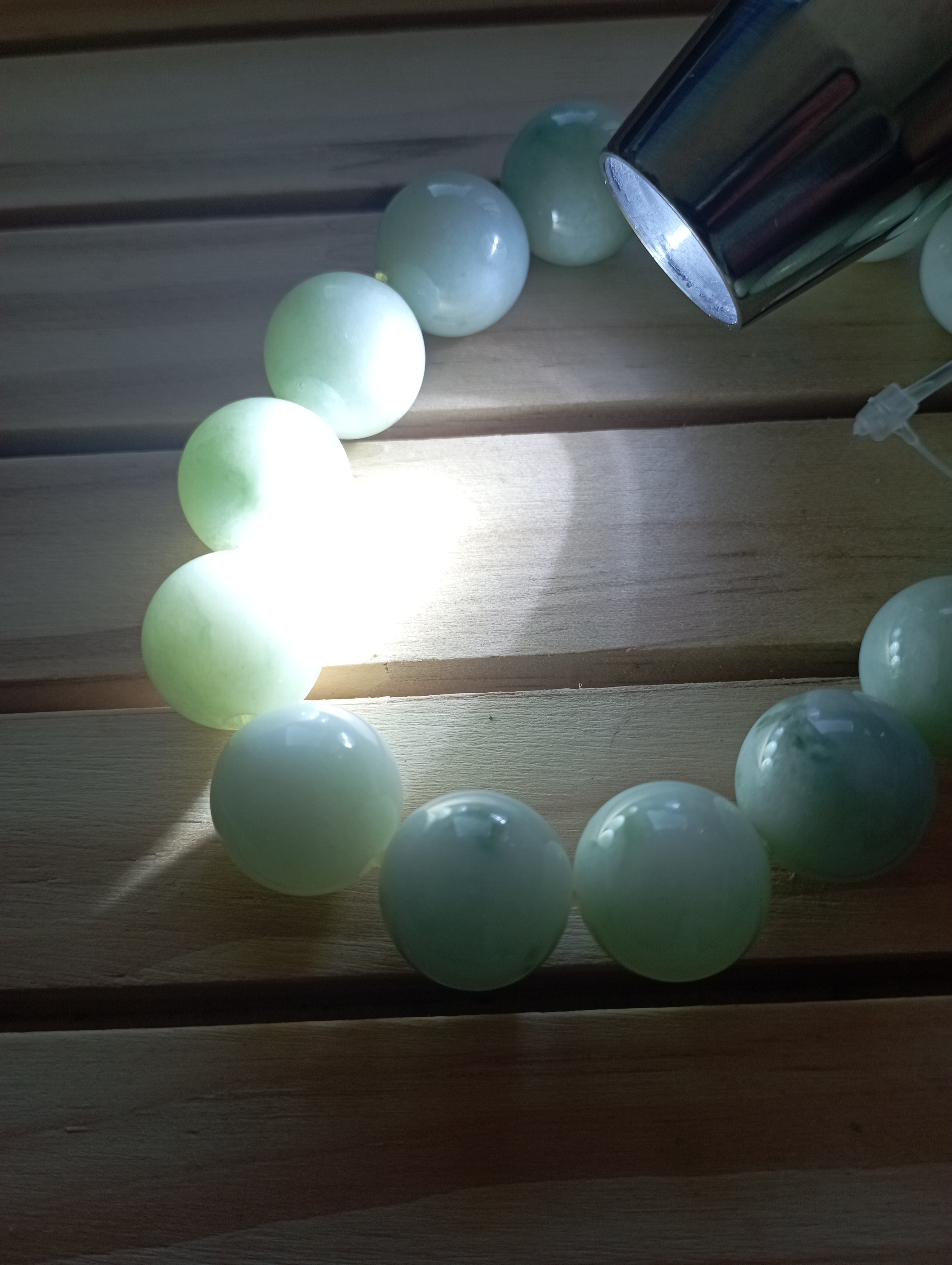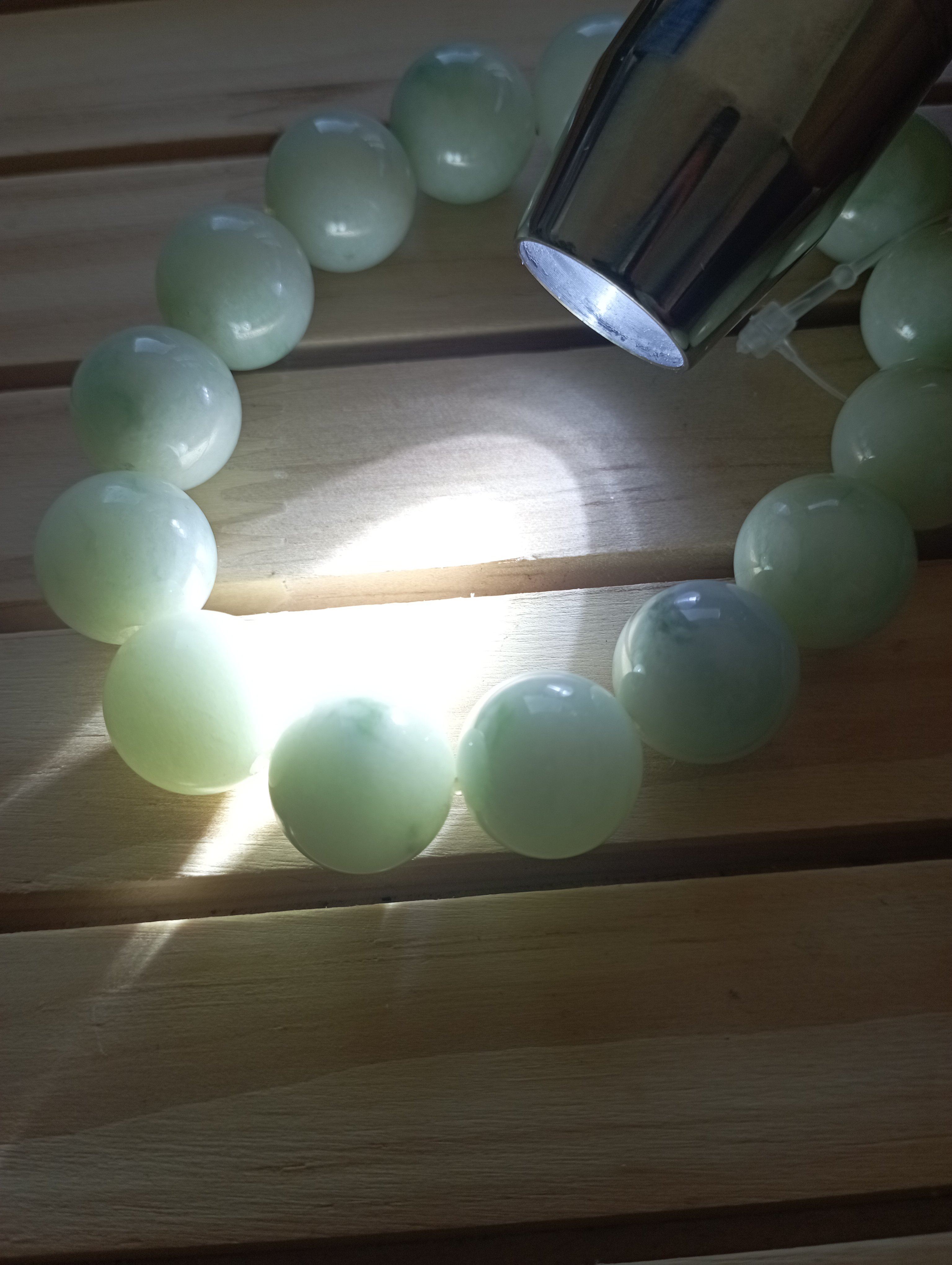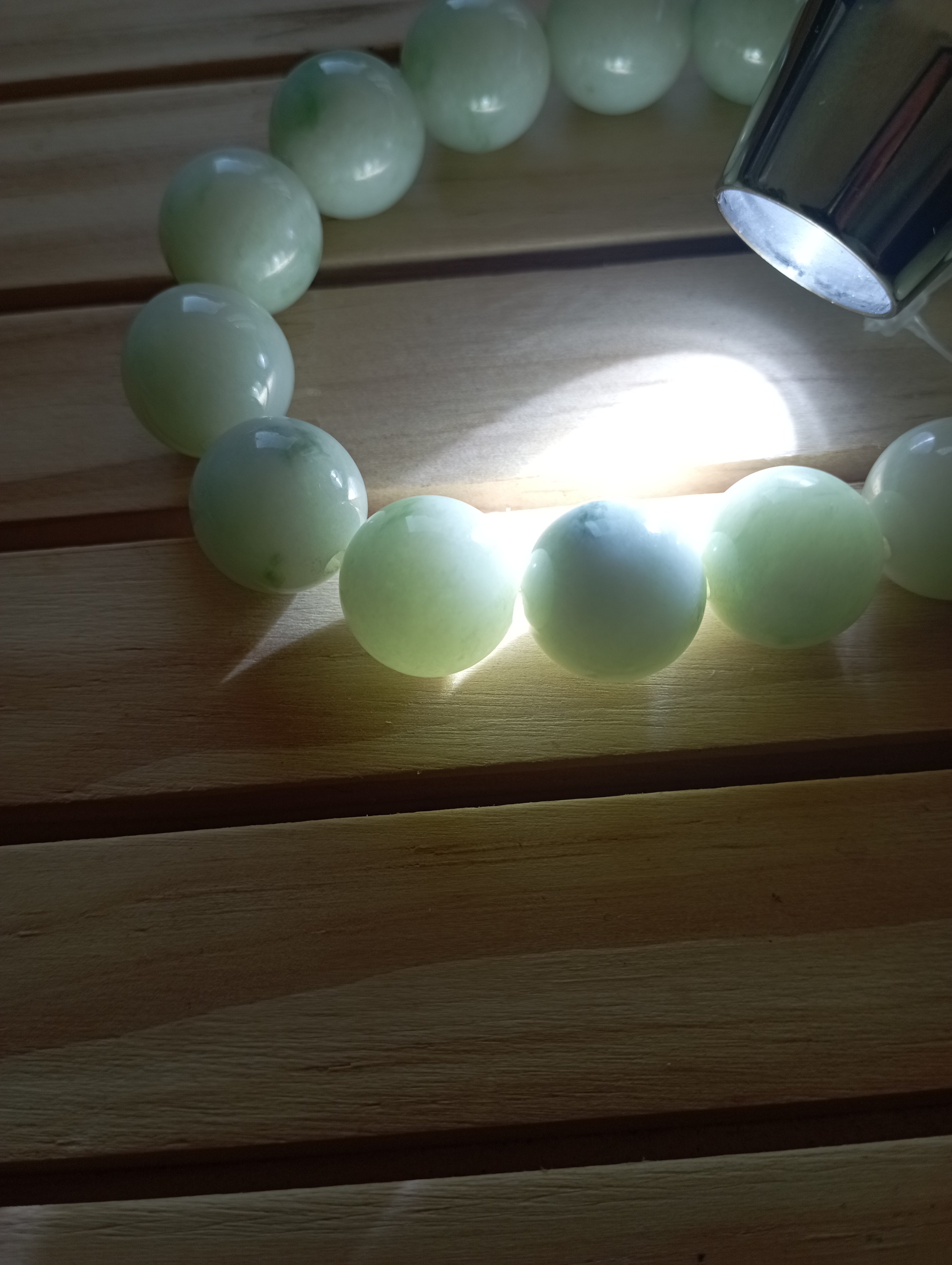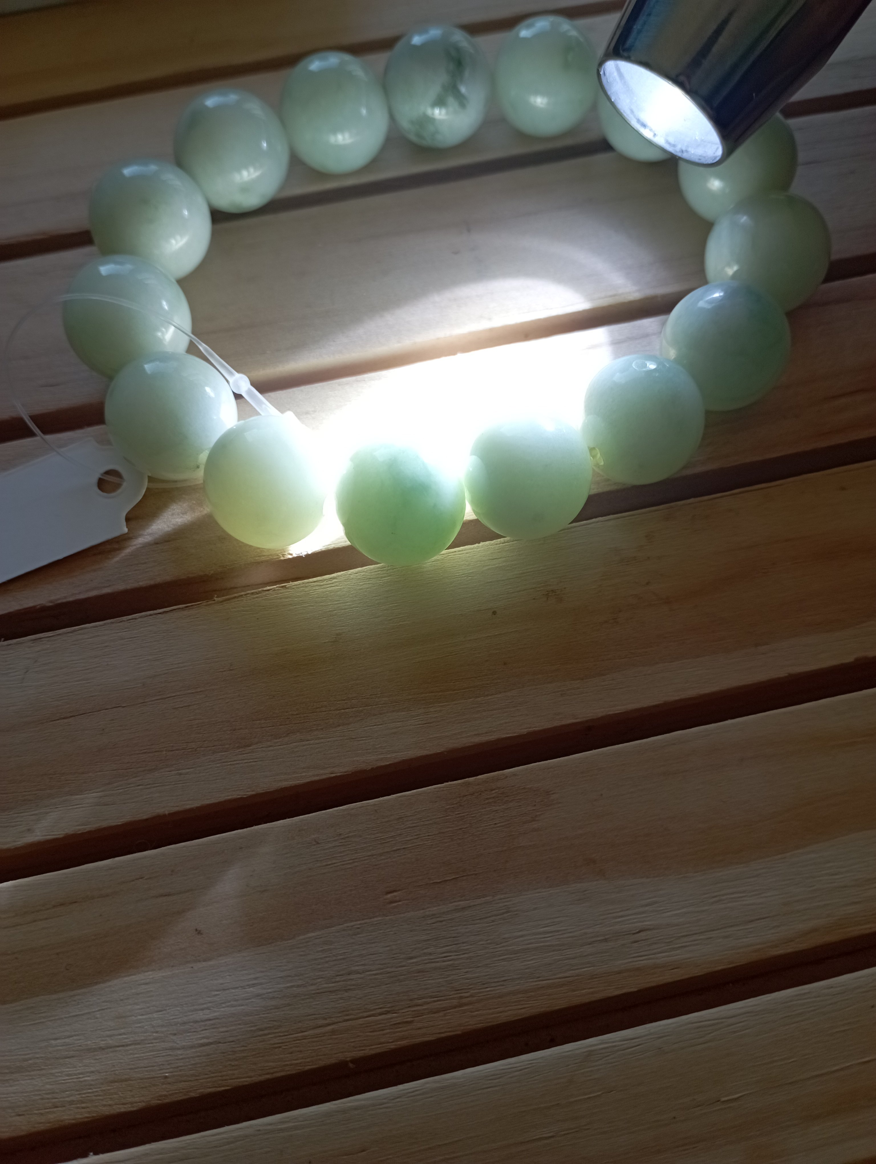 Unisex beaded bracelet measures 14mm per bead. There are 15 beads in the bracelet and will fix a medium size man. The light apple green is very attractive and suitable for everyone. £78
