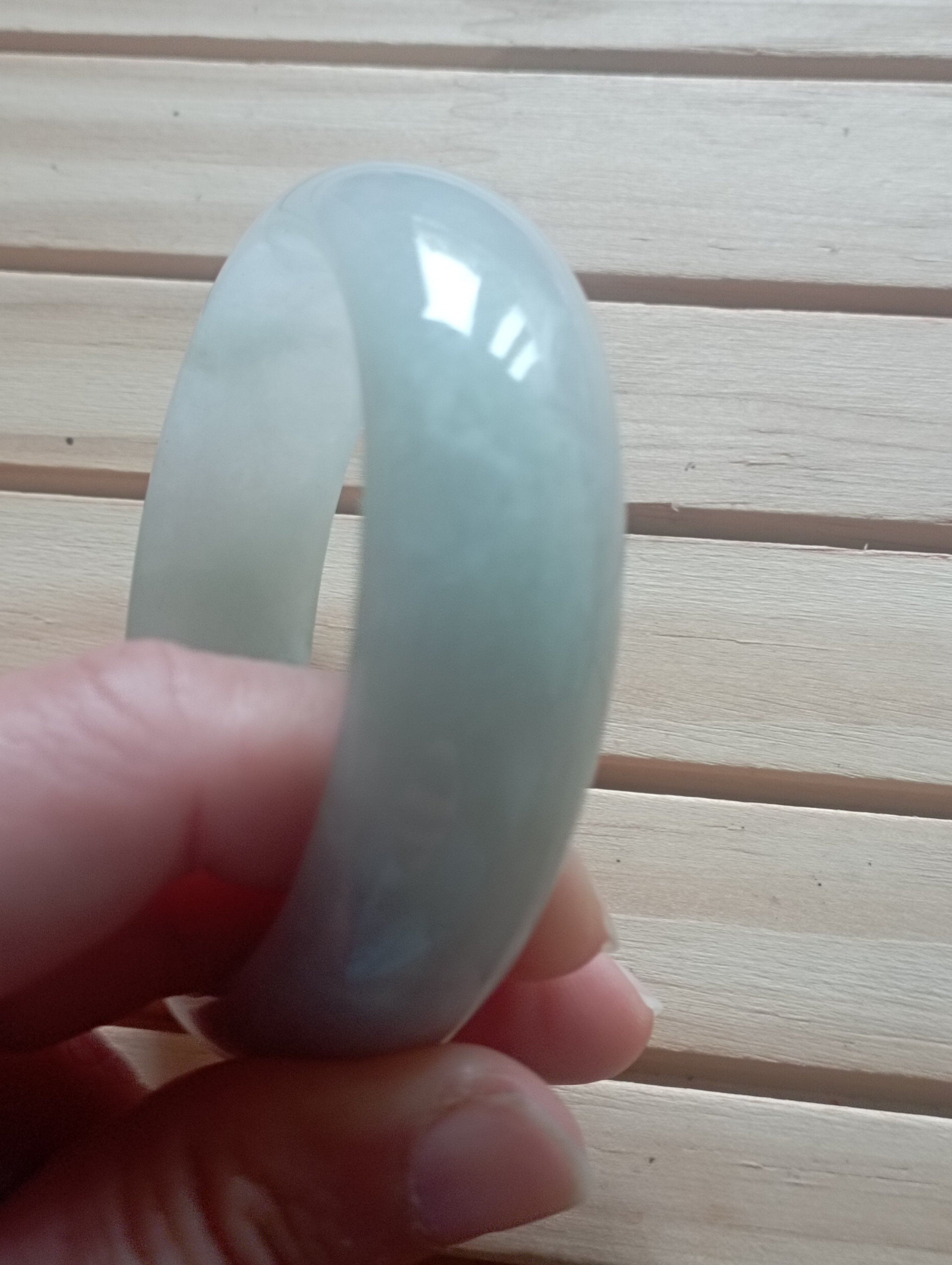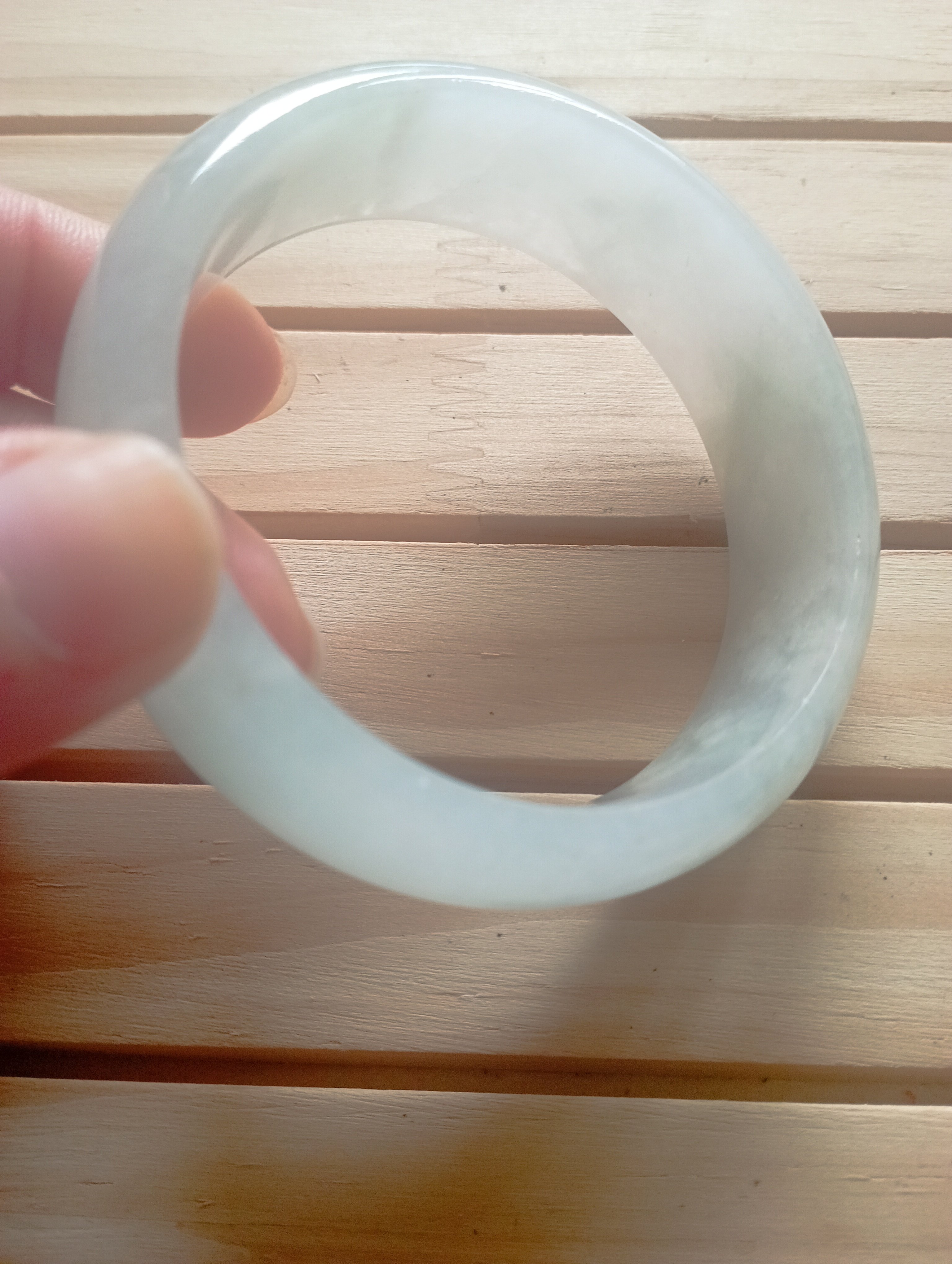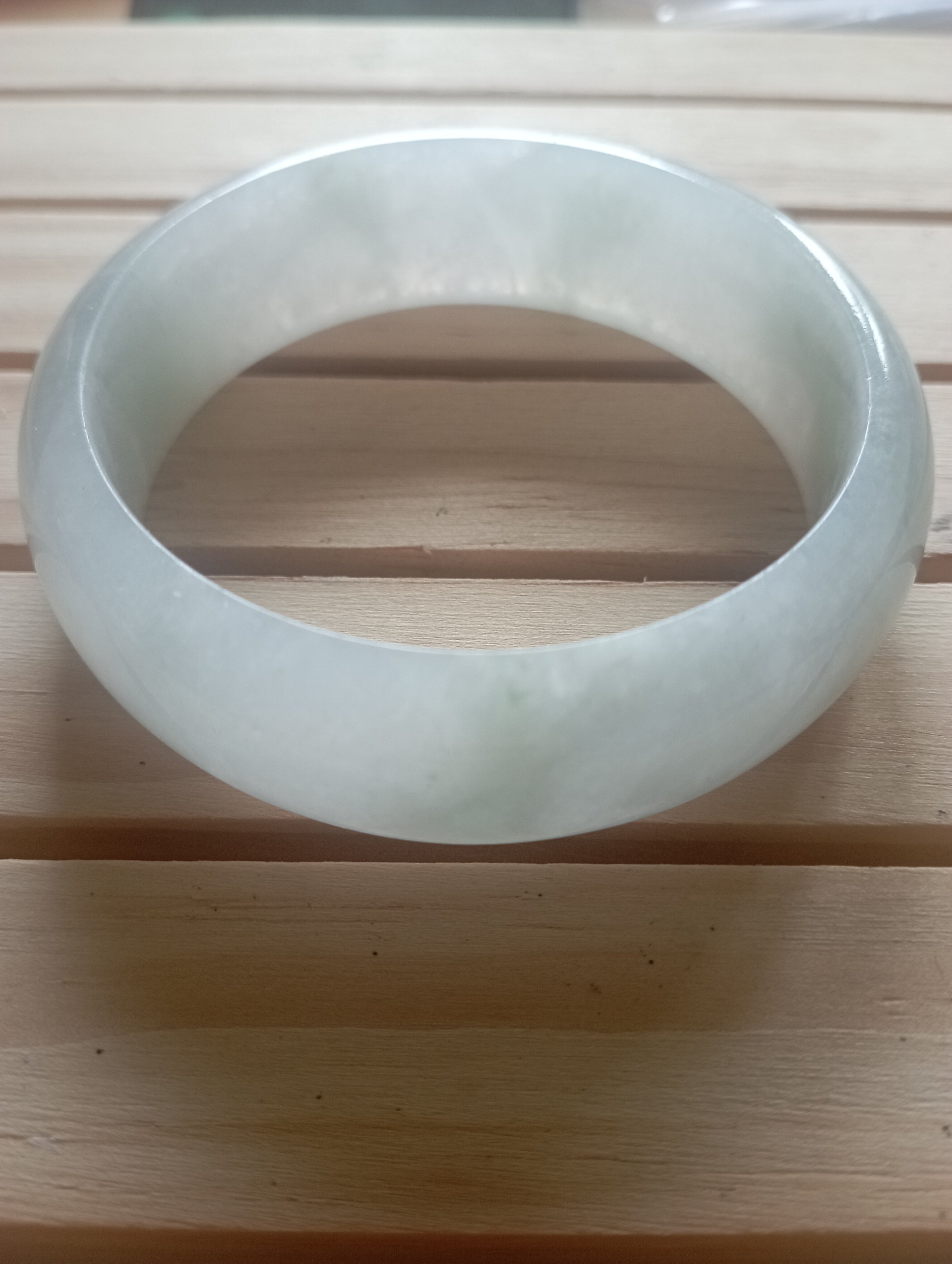 Beautiful icy chunky Burmese jadeite bangle, the quality is superb, has an internal crack that does not affect usage, quality like this without the imperfection is over £3k!! It measures 55.8 X 17.7 X 8mm, weighs 71.44g, comes with certificate of authenticity £688