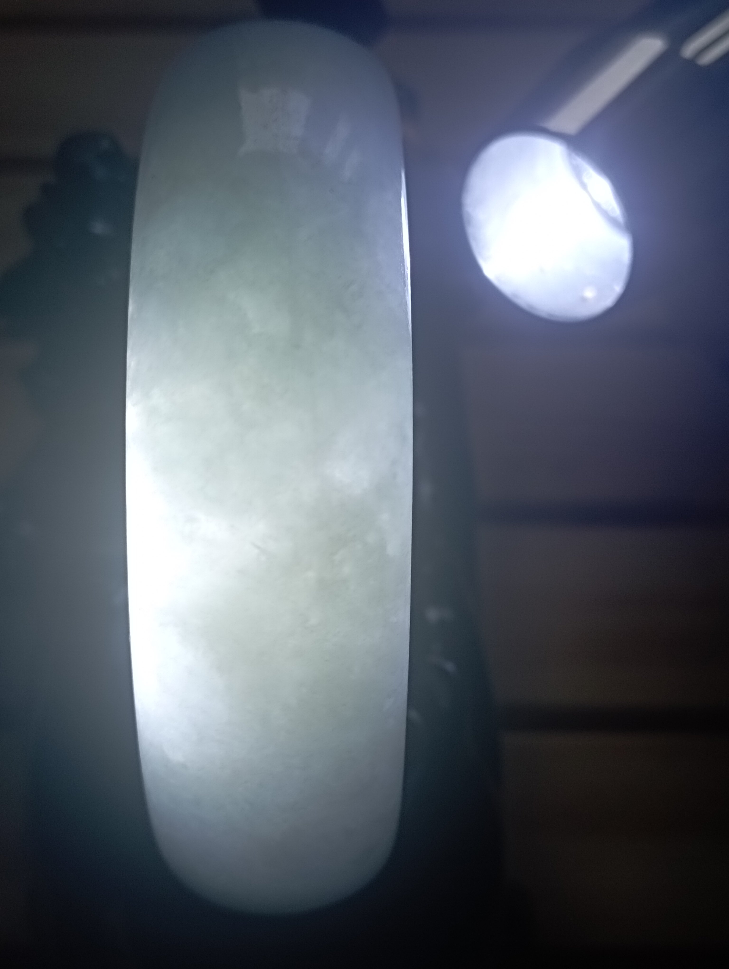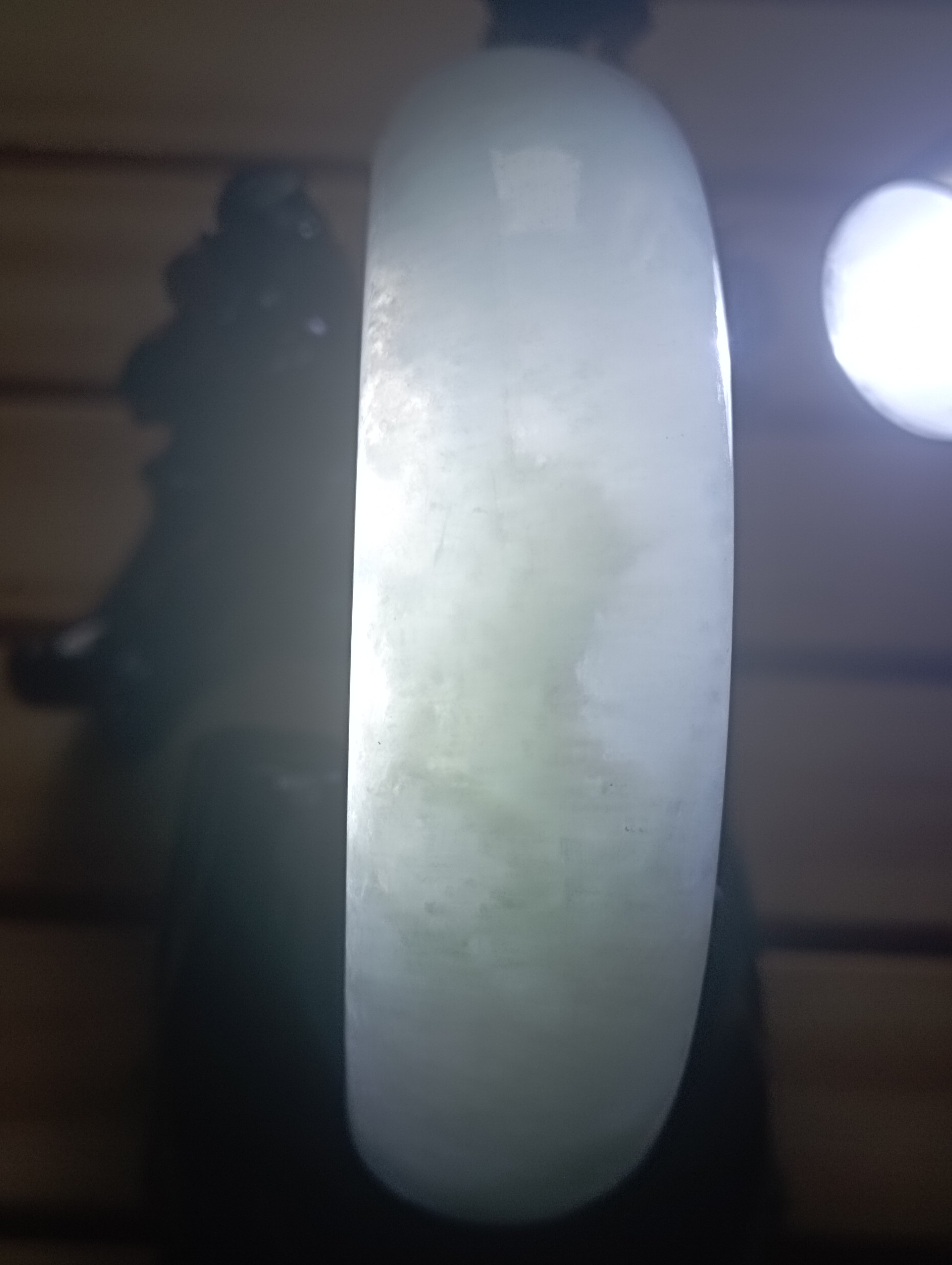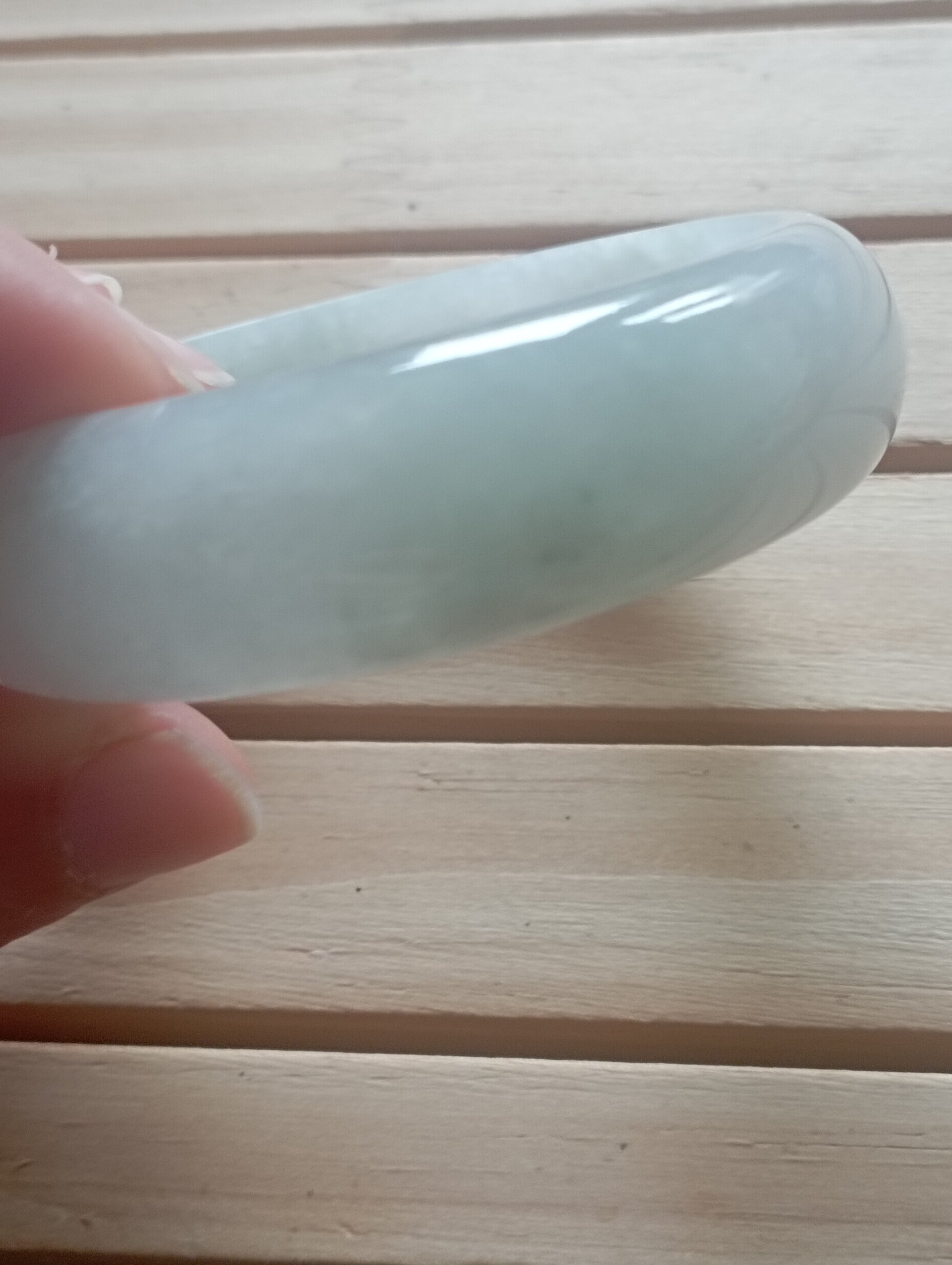 Beautiful icy chunky Burmese jadeite bangle, the quality is superb, has an internal crack that does not affect usage, quality like this without the imperfection is over £3k!! It measures 55.8 X 17.7 X 8mm, weighs 71.44g, comes with certificate of authenticity £688