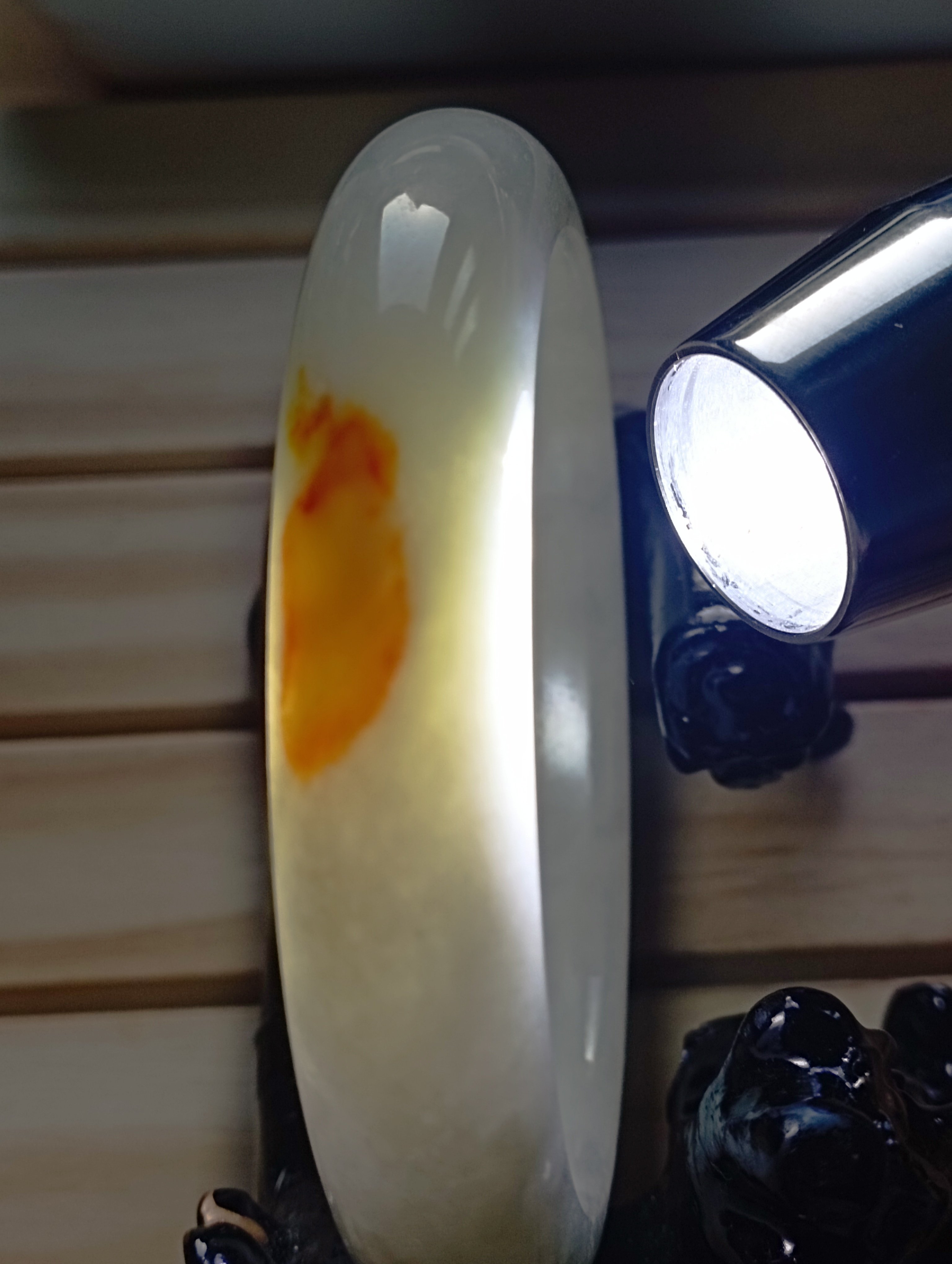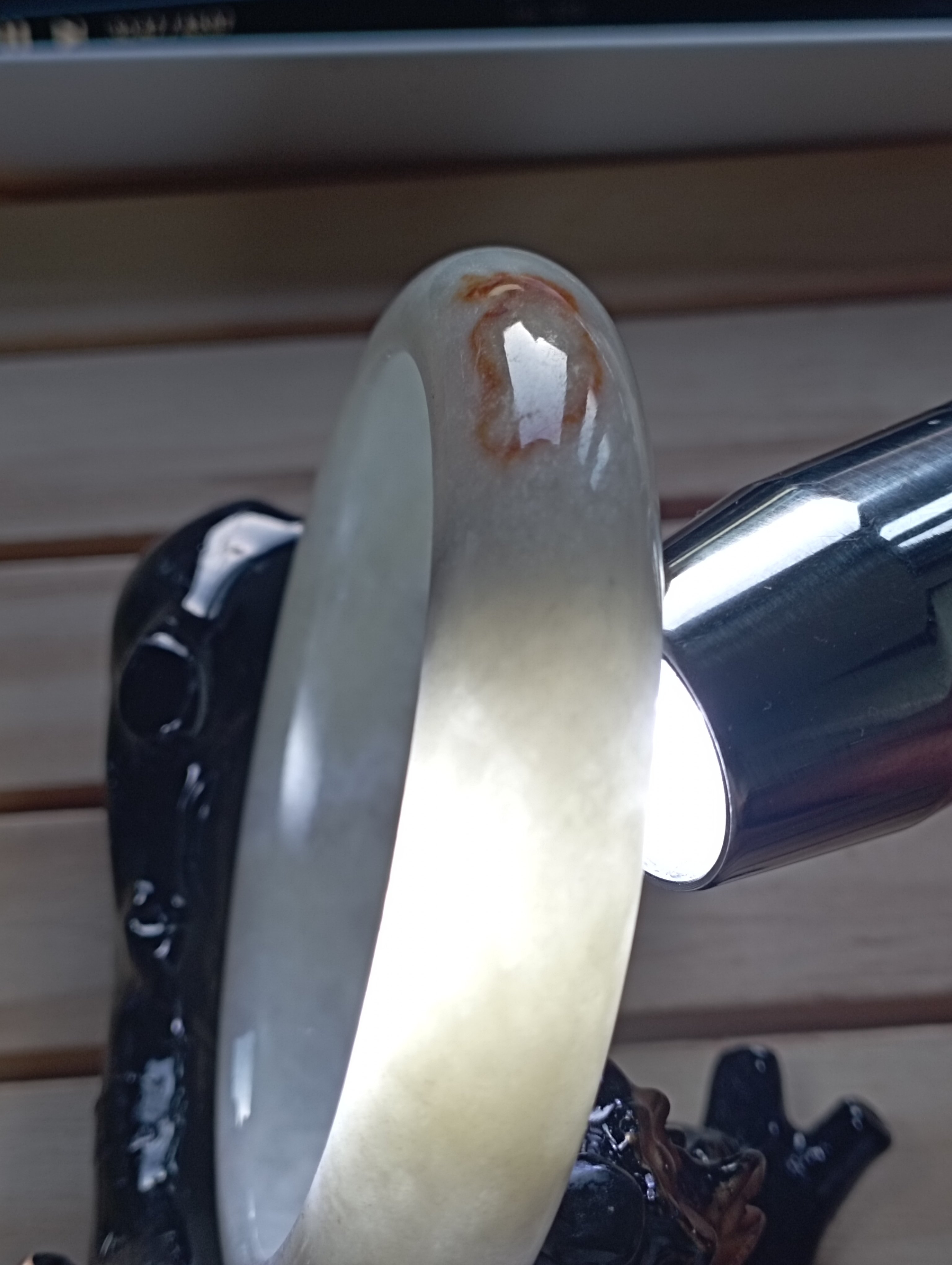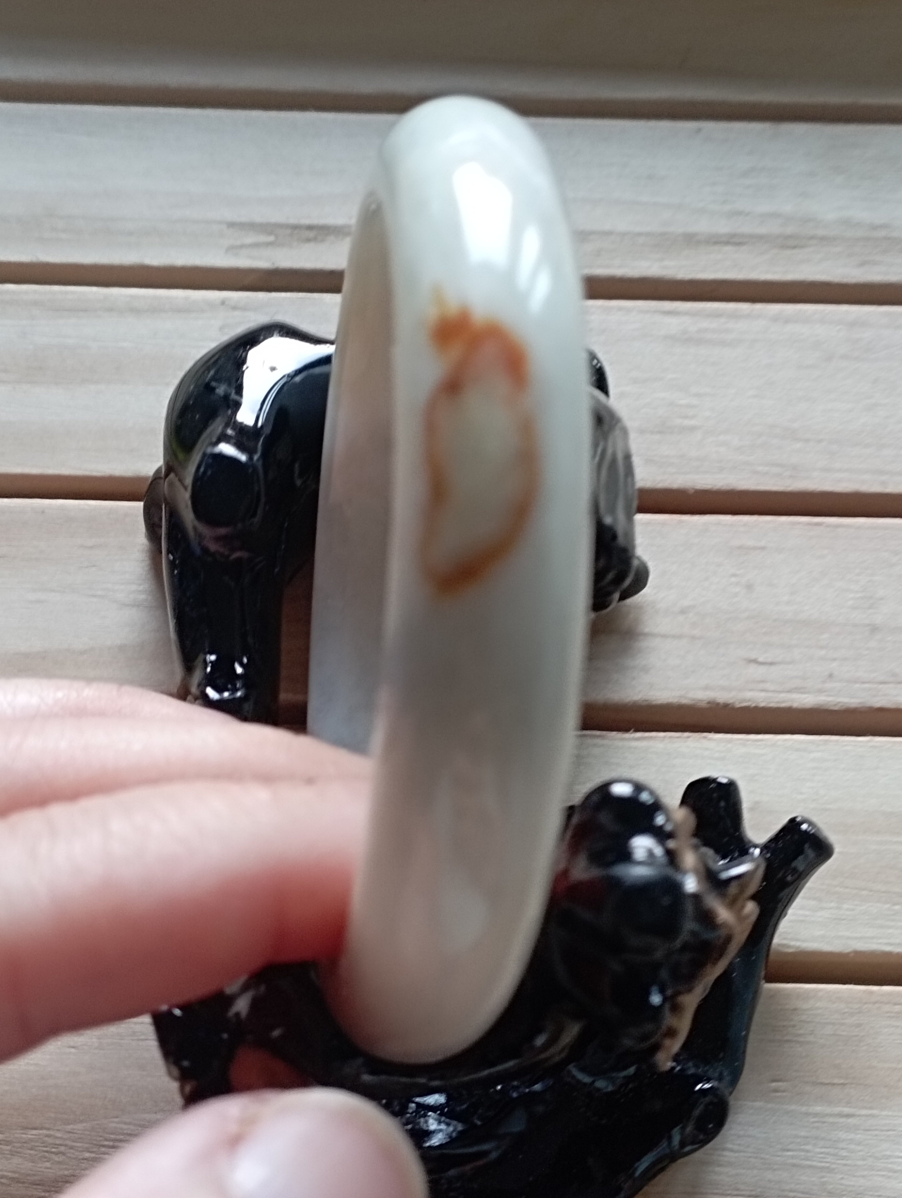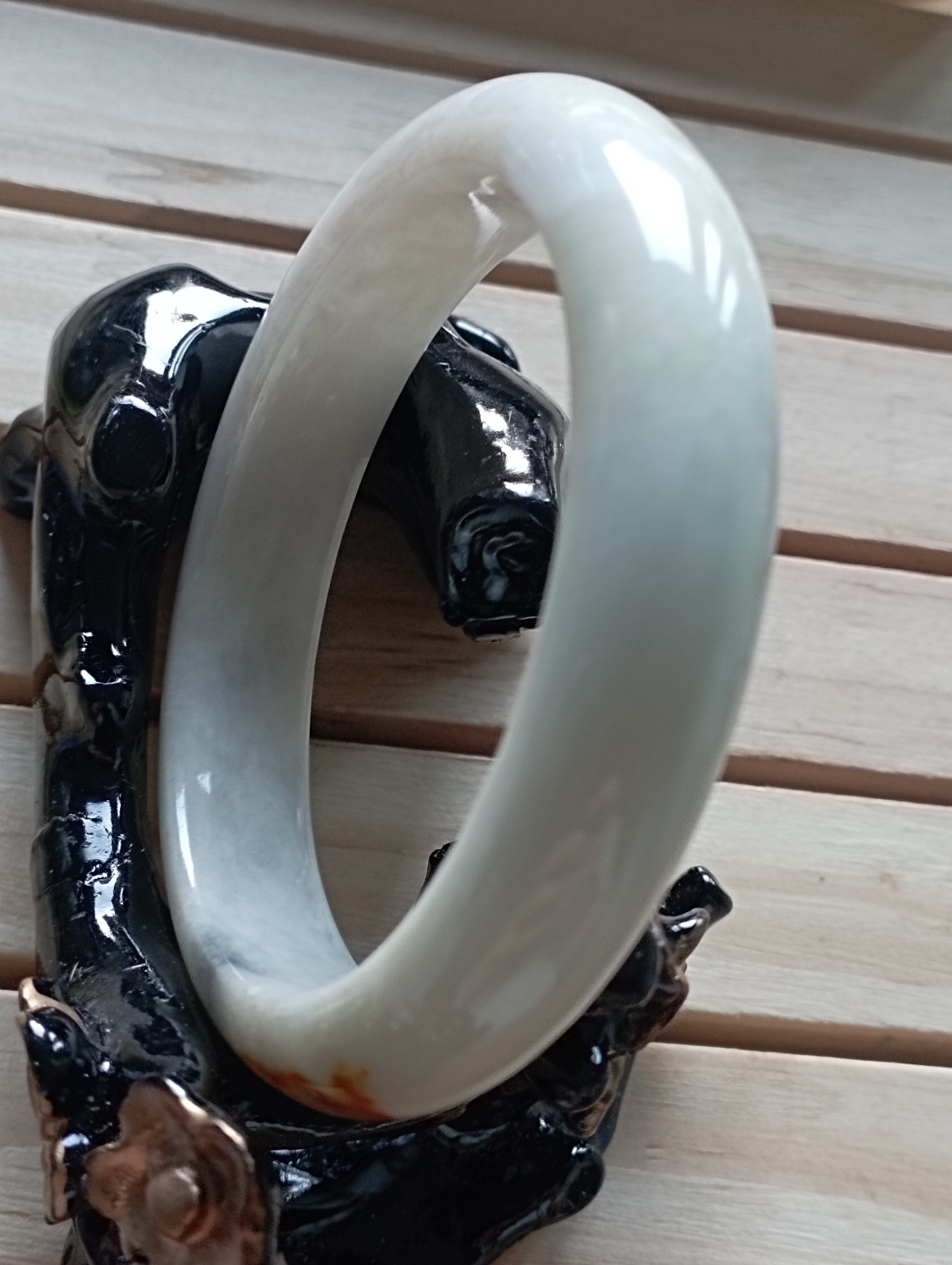 Nice white bangle with a spot of outstanding red. It measures 56 X 12.1 X 8.1mm, comes with a certificate of authenticity. £85