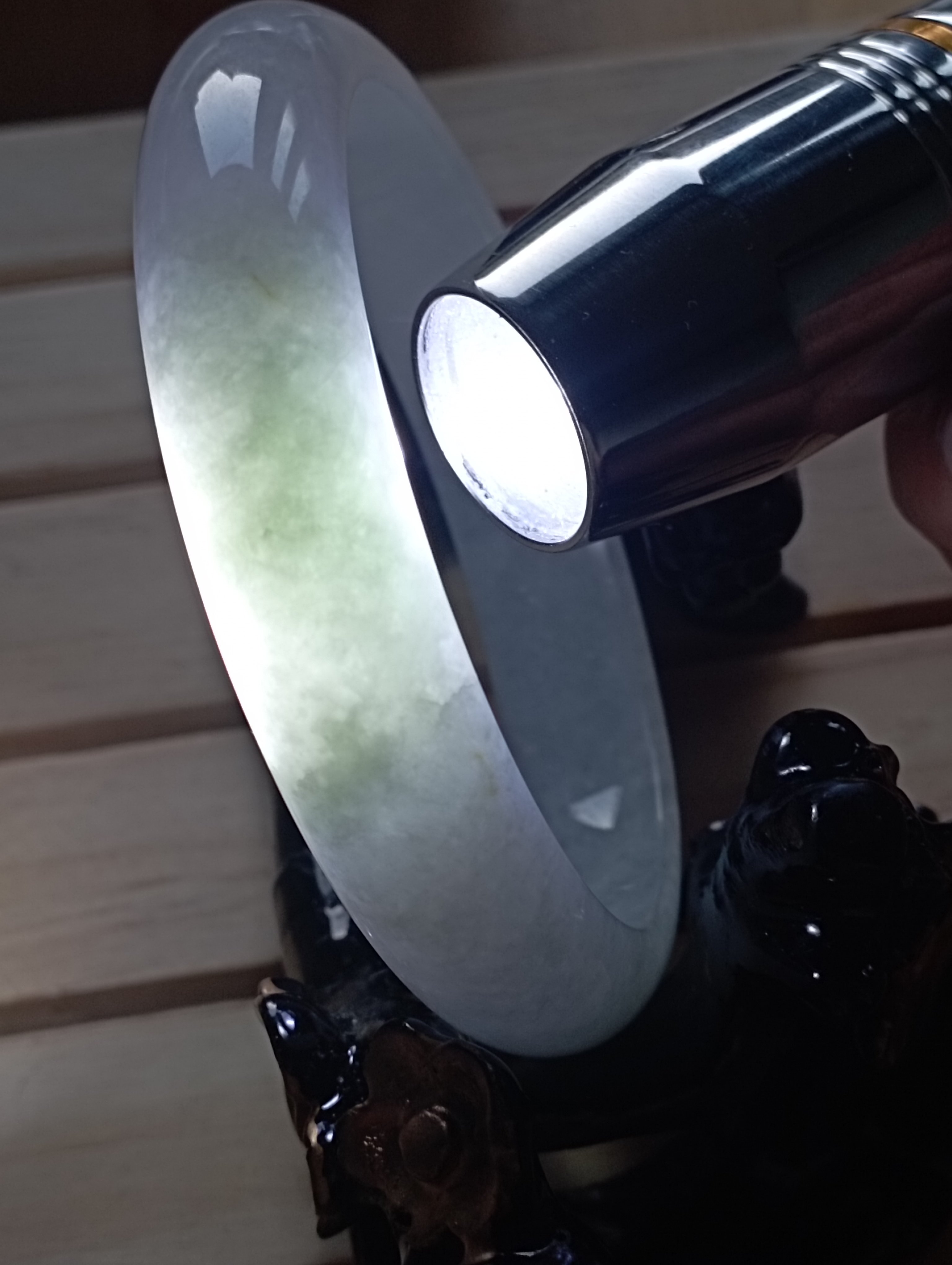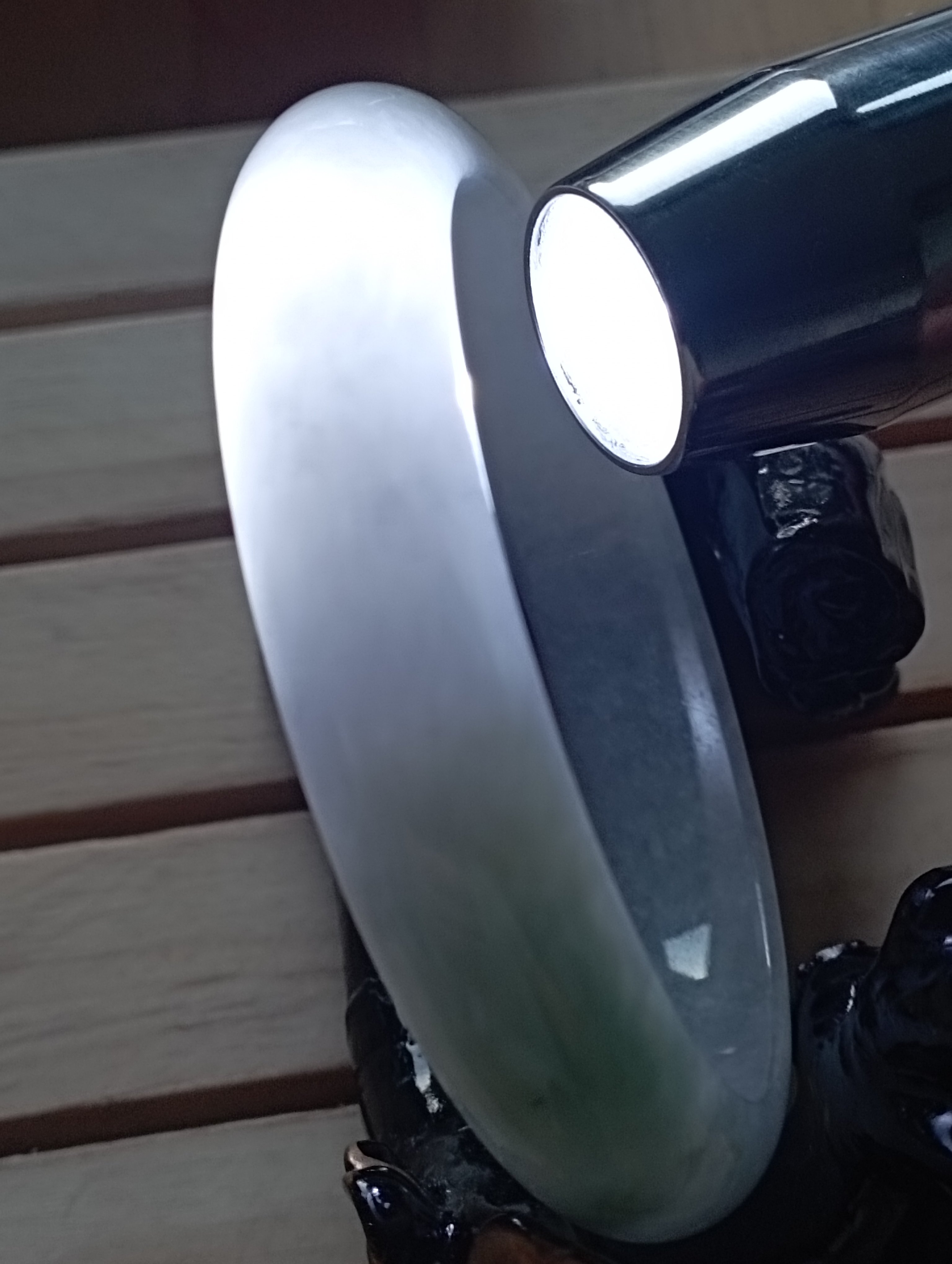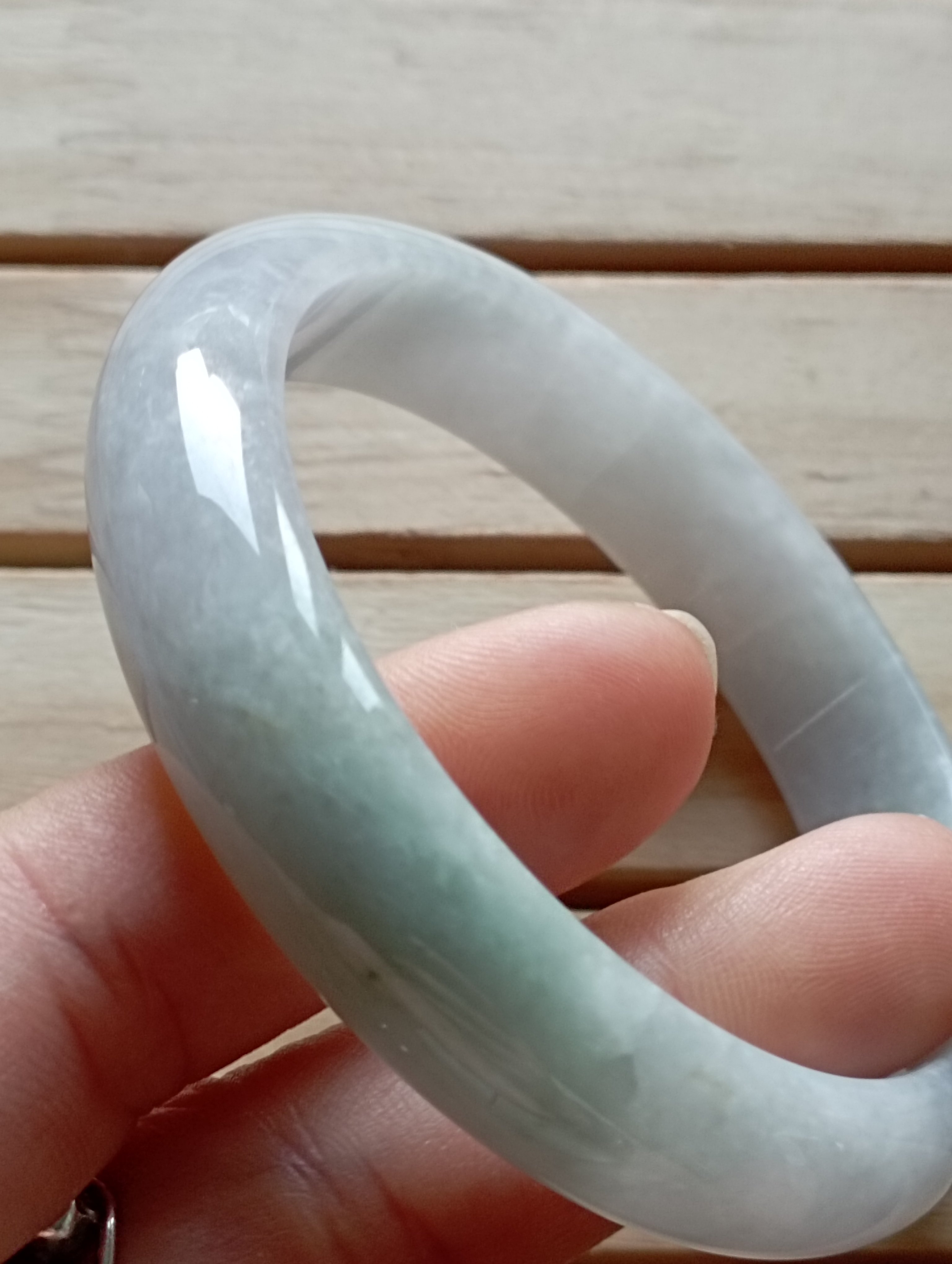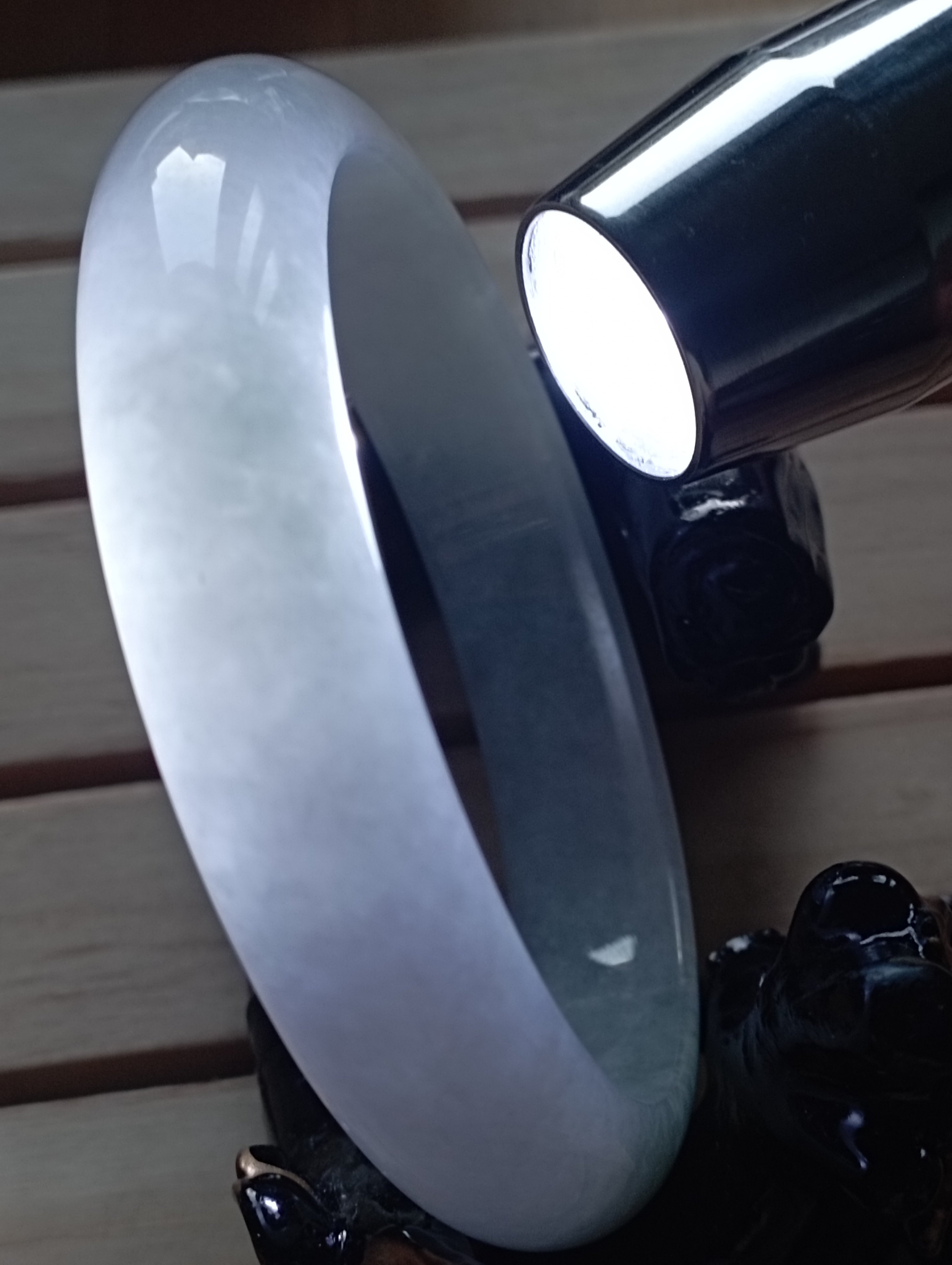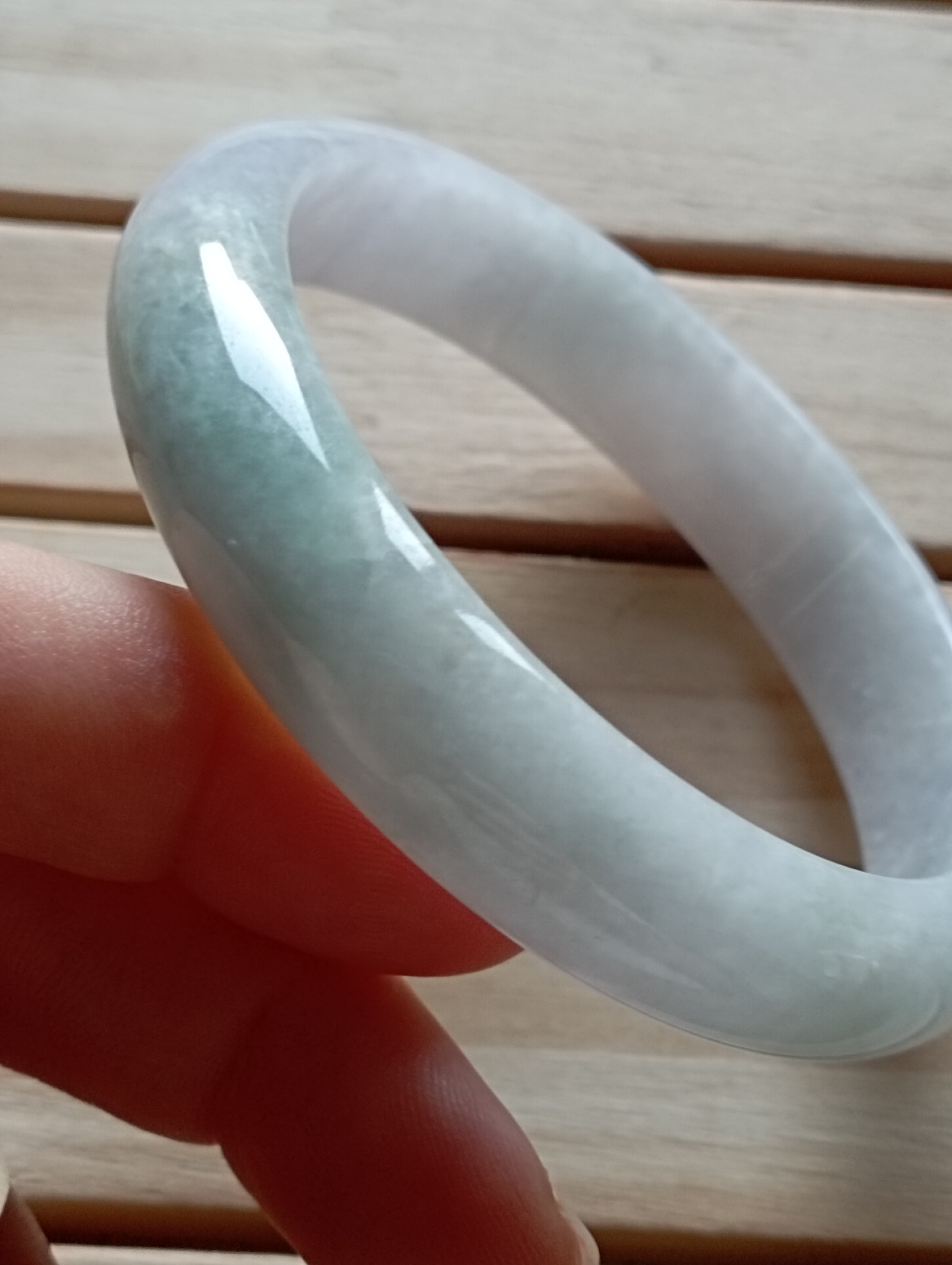 Good quality translucent spring colour aka purple and green bangle measures 56.5 X 11.8 X 6.4mm, it has an internal crack that does not affect usage at all. Quality like this without the internal crack is at least £500! Grab this bargain at £179, comes with a certificate of authenticity.
