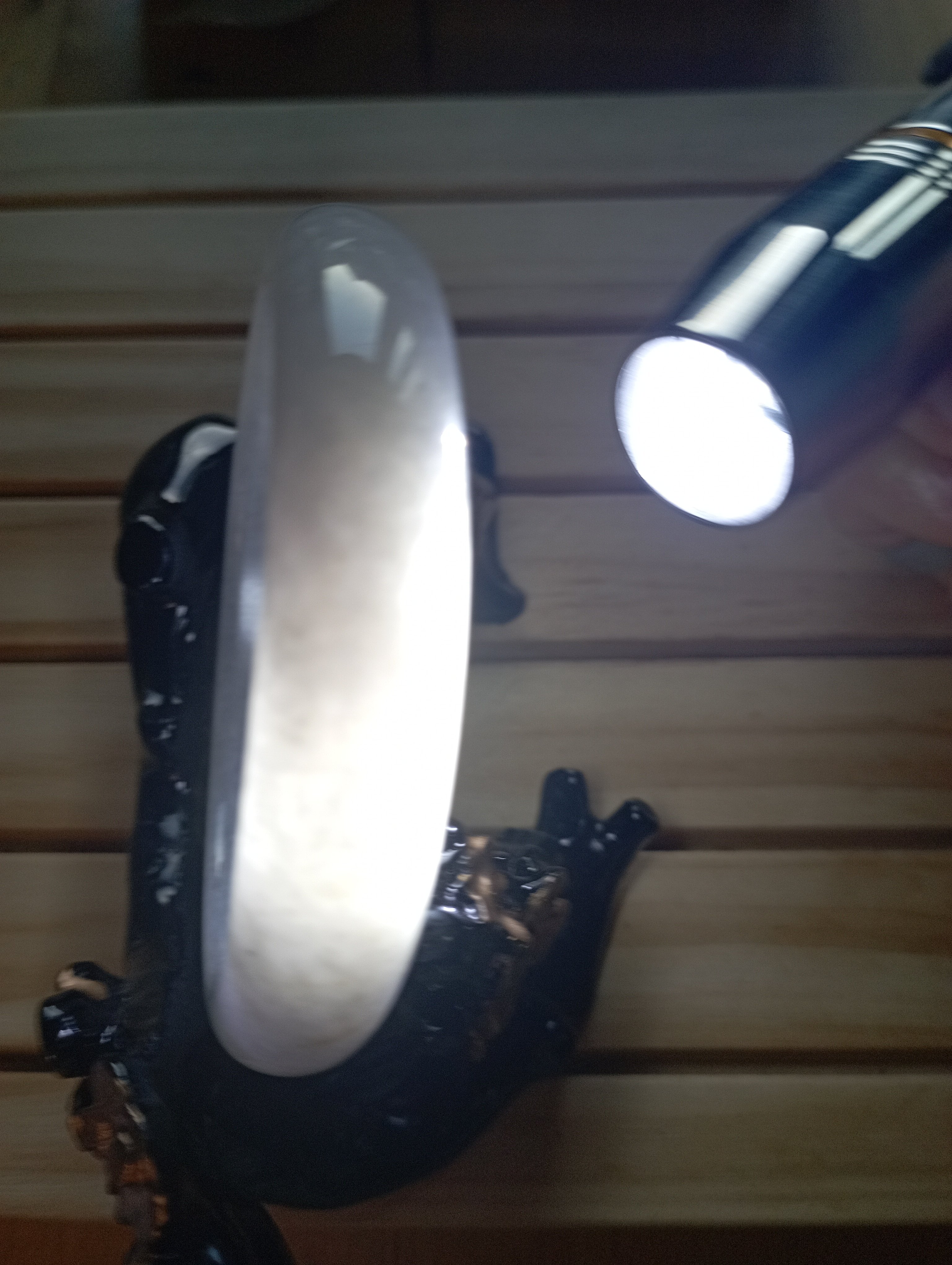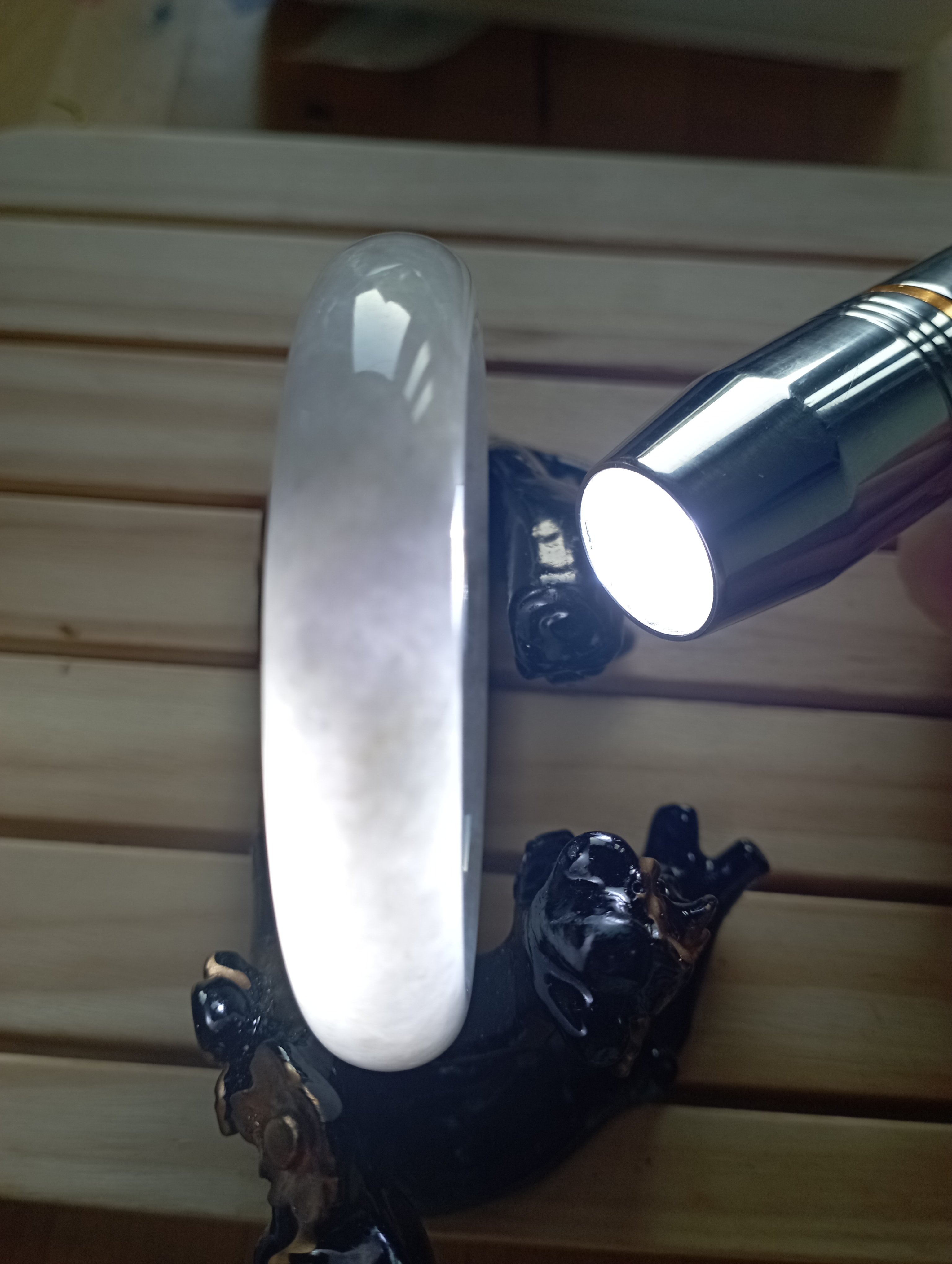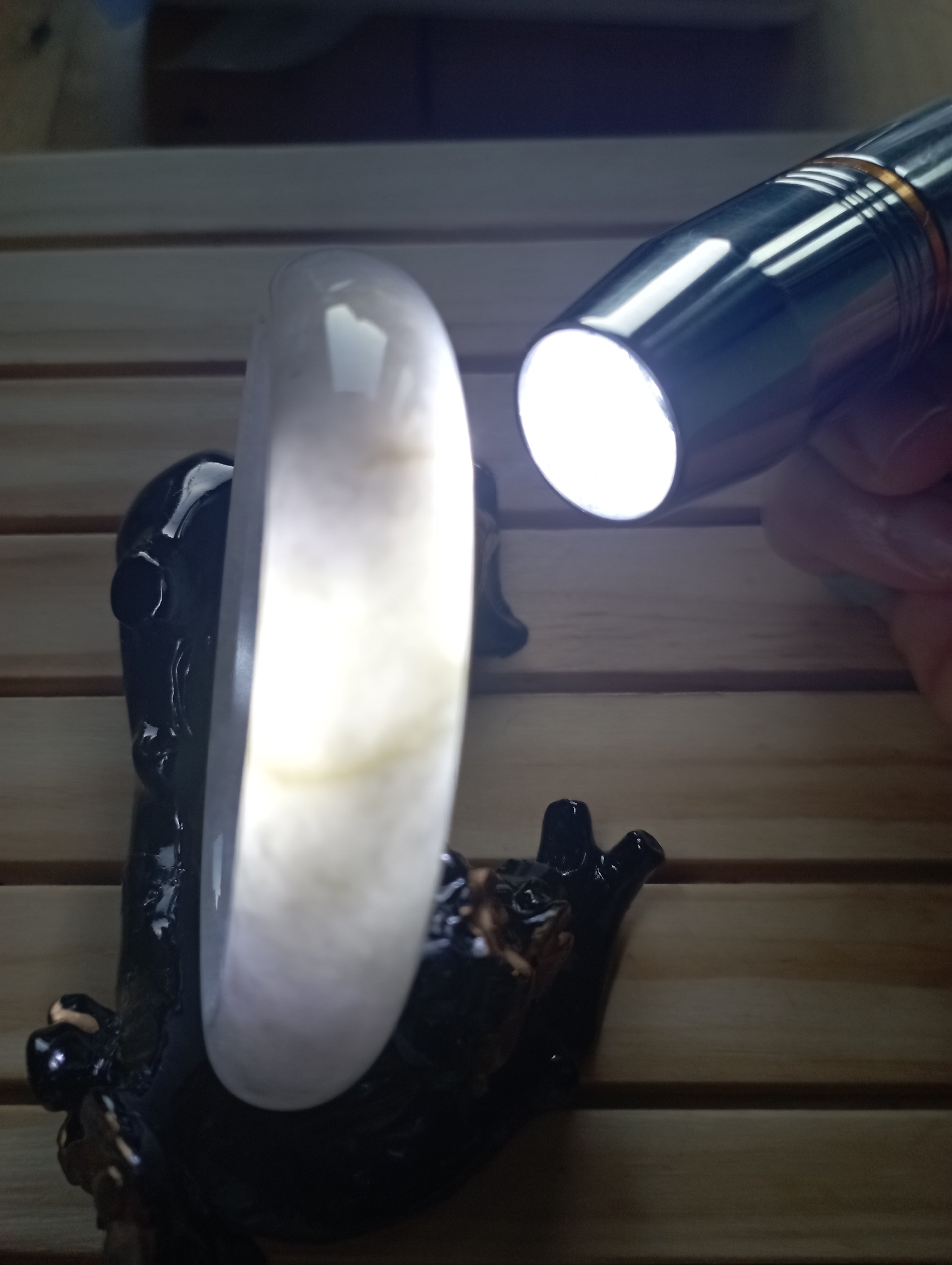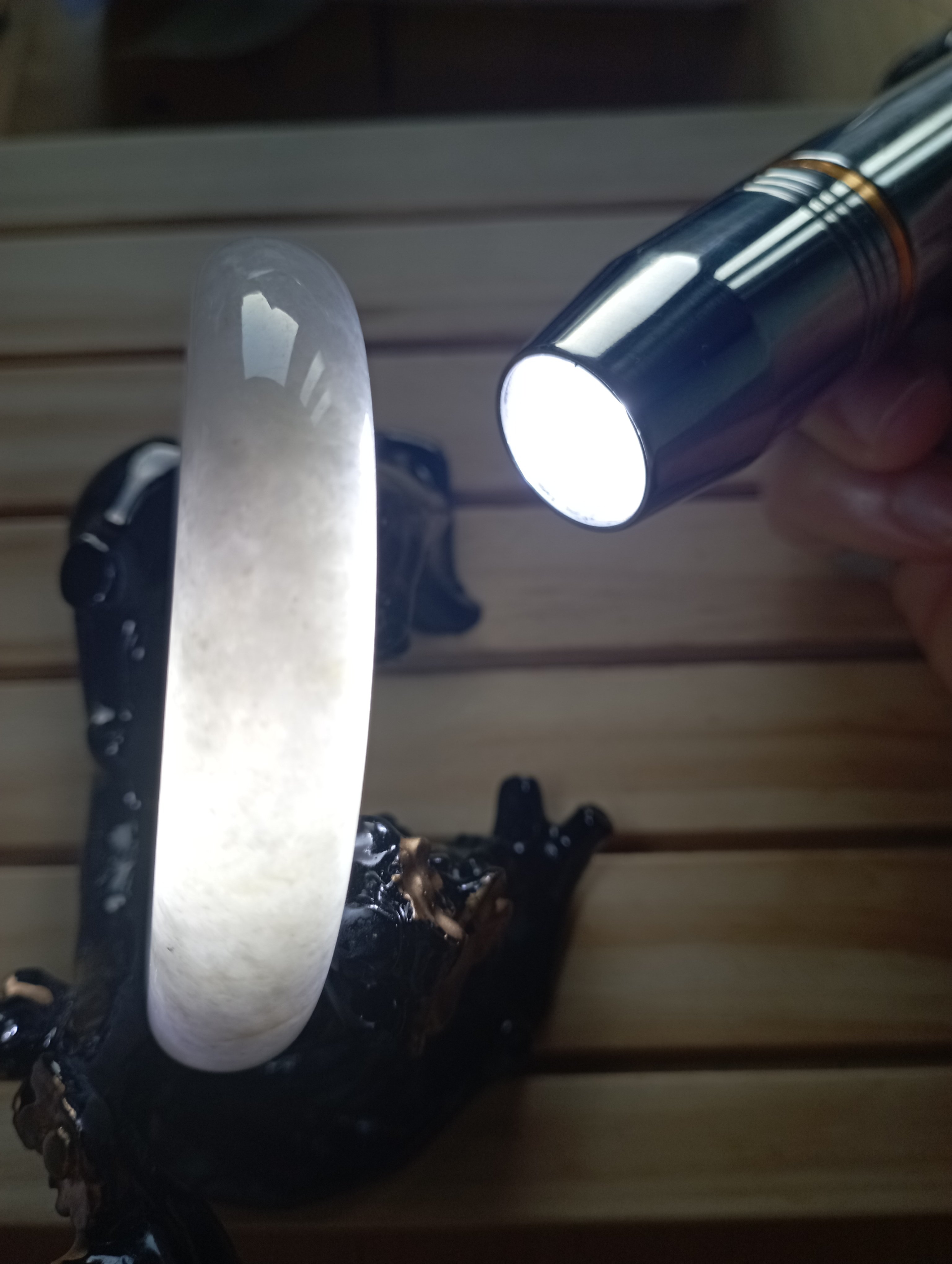 It is not only translucent, it is a light purple colour although it has yellowish green colour lines. For the quality and at only £169, comes with a certificate of authenticity.