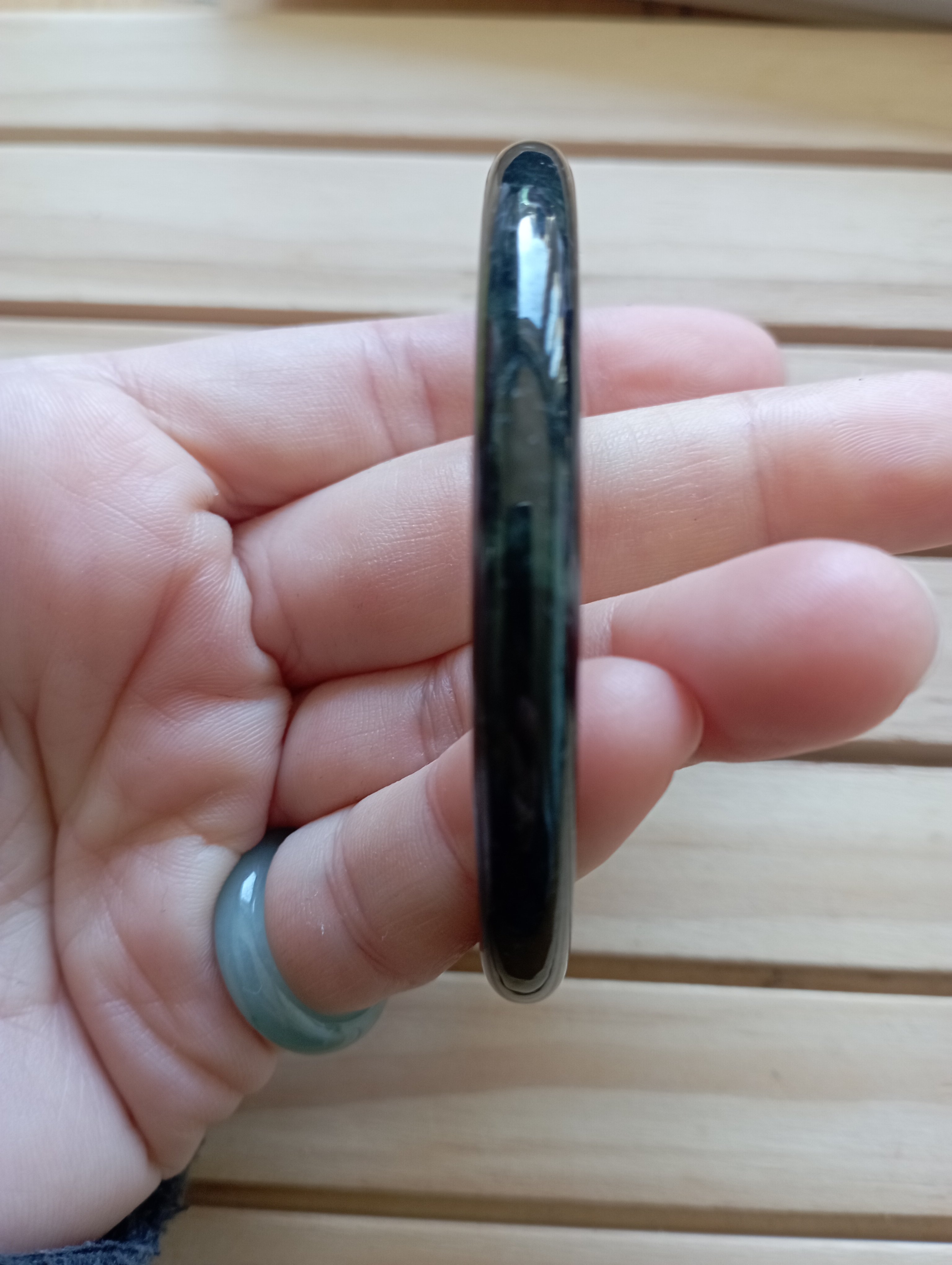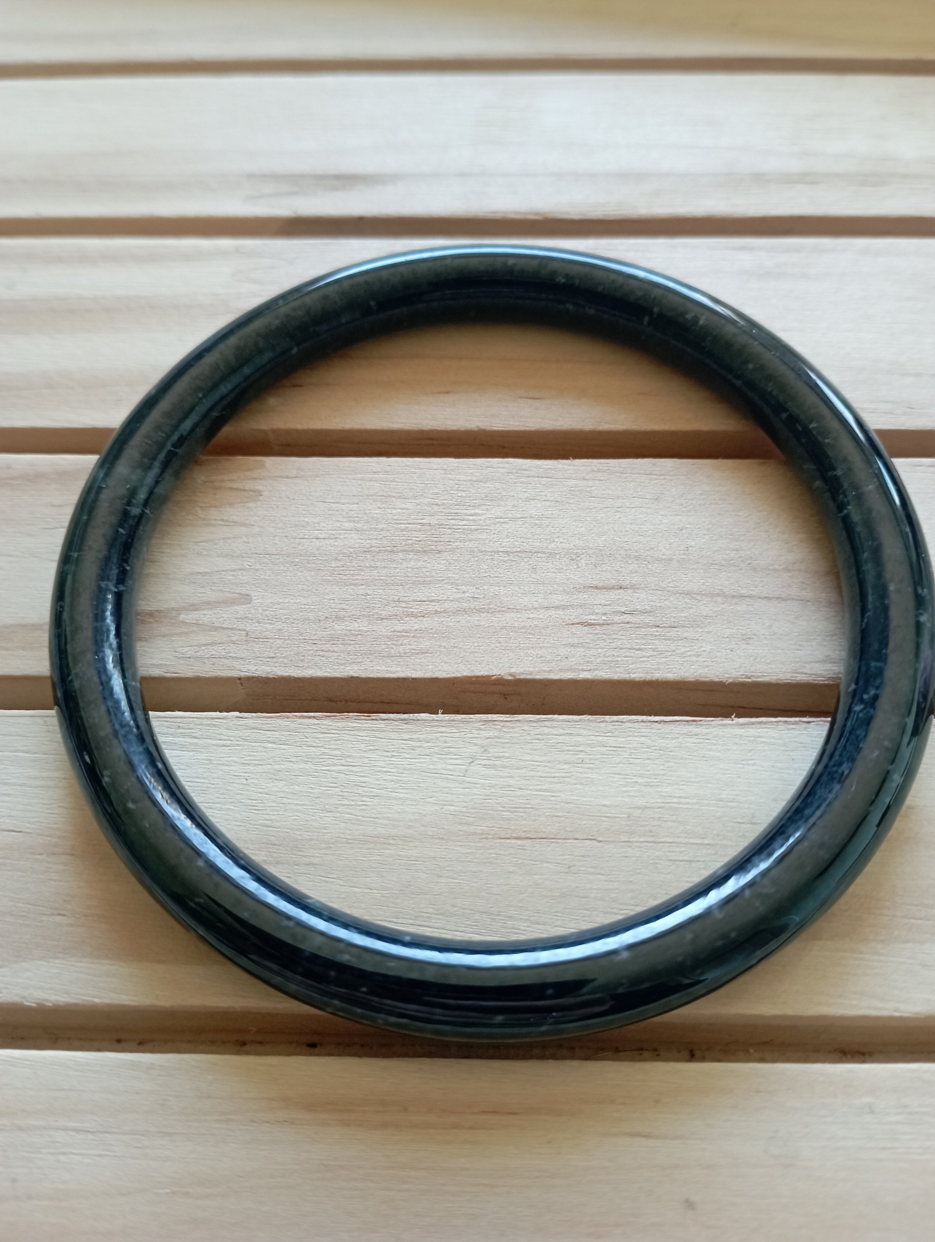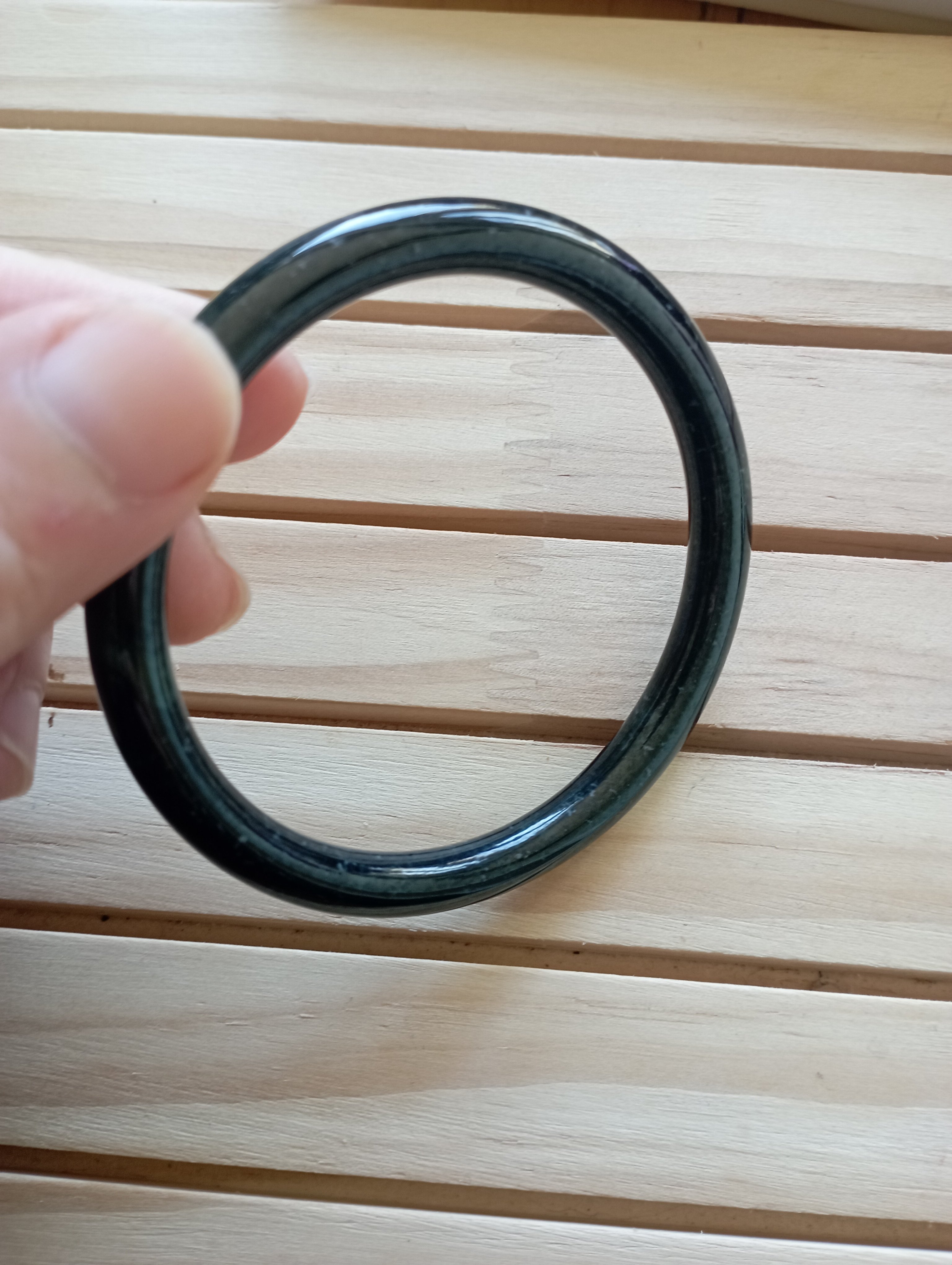 As black the the keys on the piano, this lovely bangle measures 57.7 X 6.6 X 6.9mm, fits up to 59mm, comes with a certificate of authenticity £59, will look lovely with another bangle of similar size and thickness.