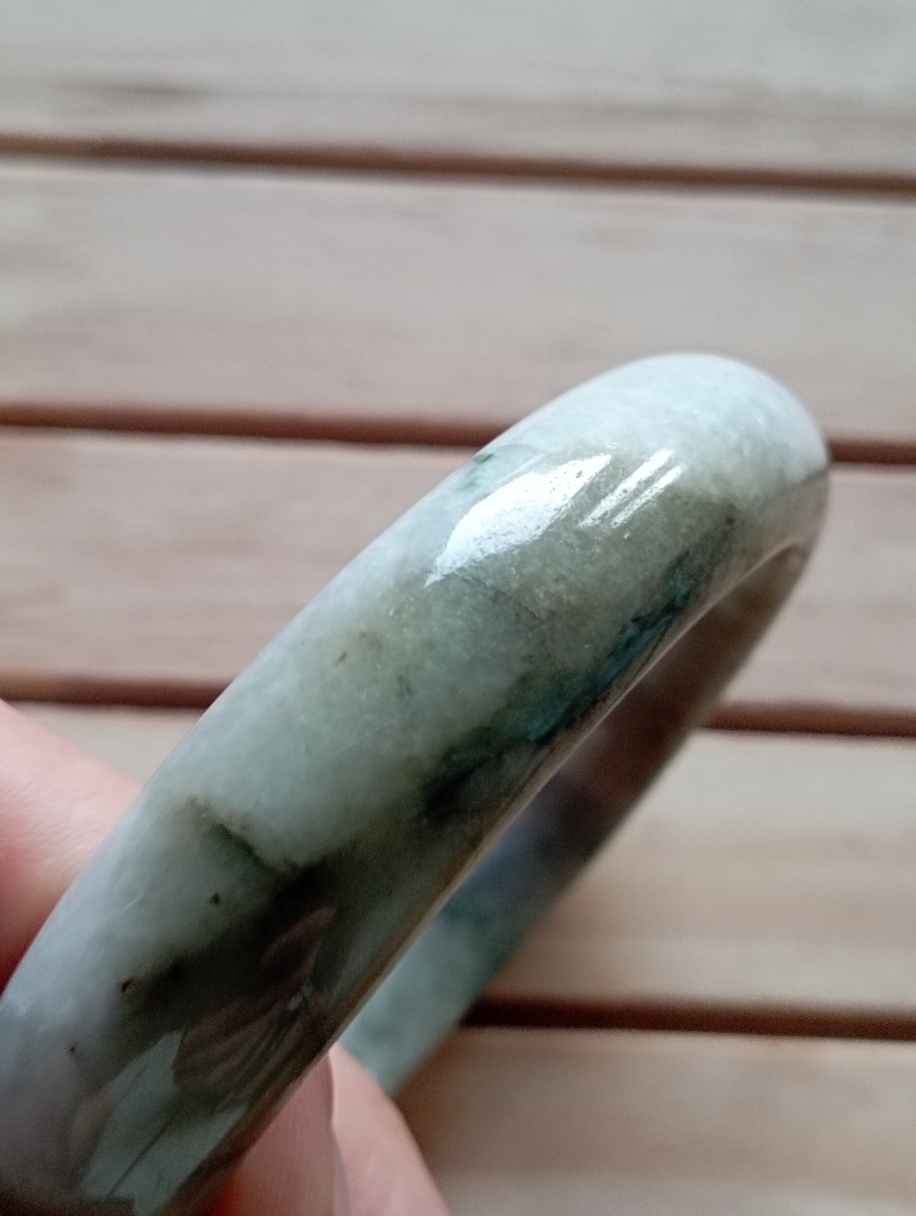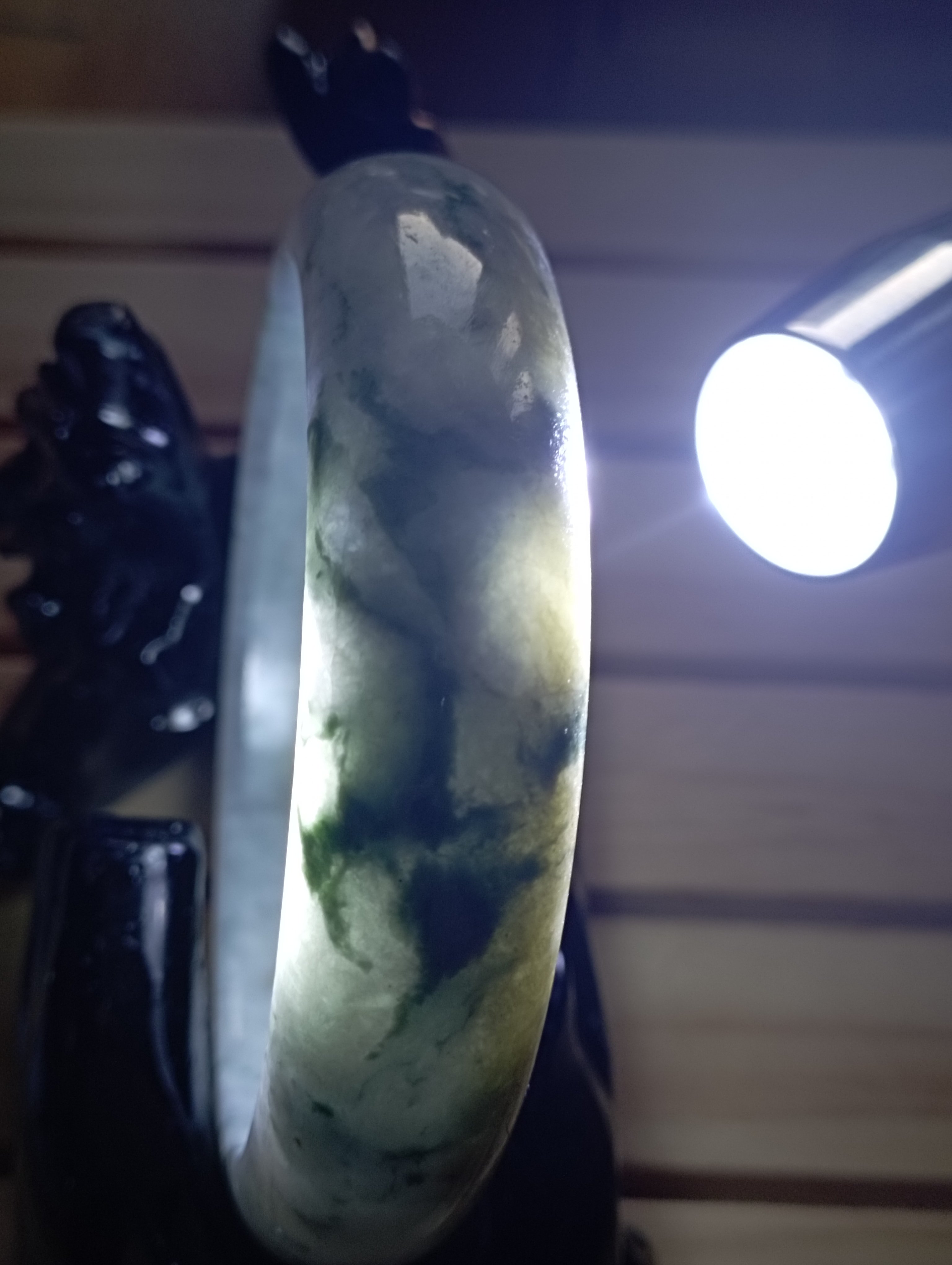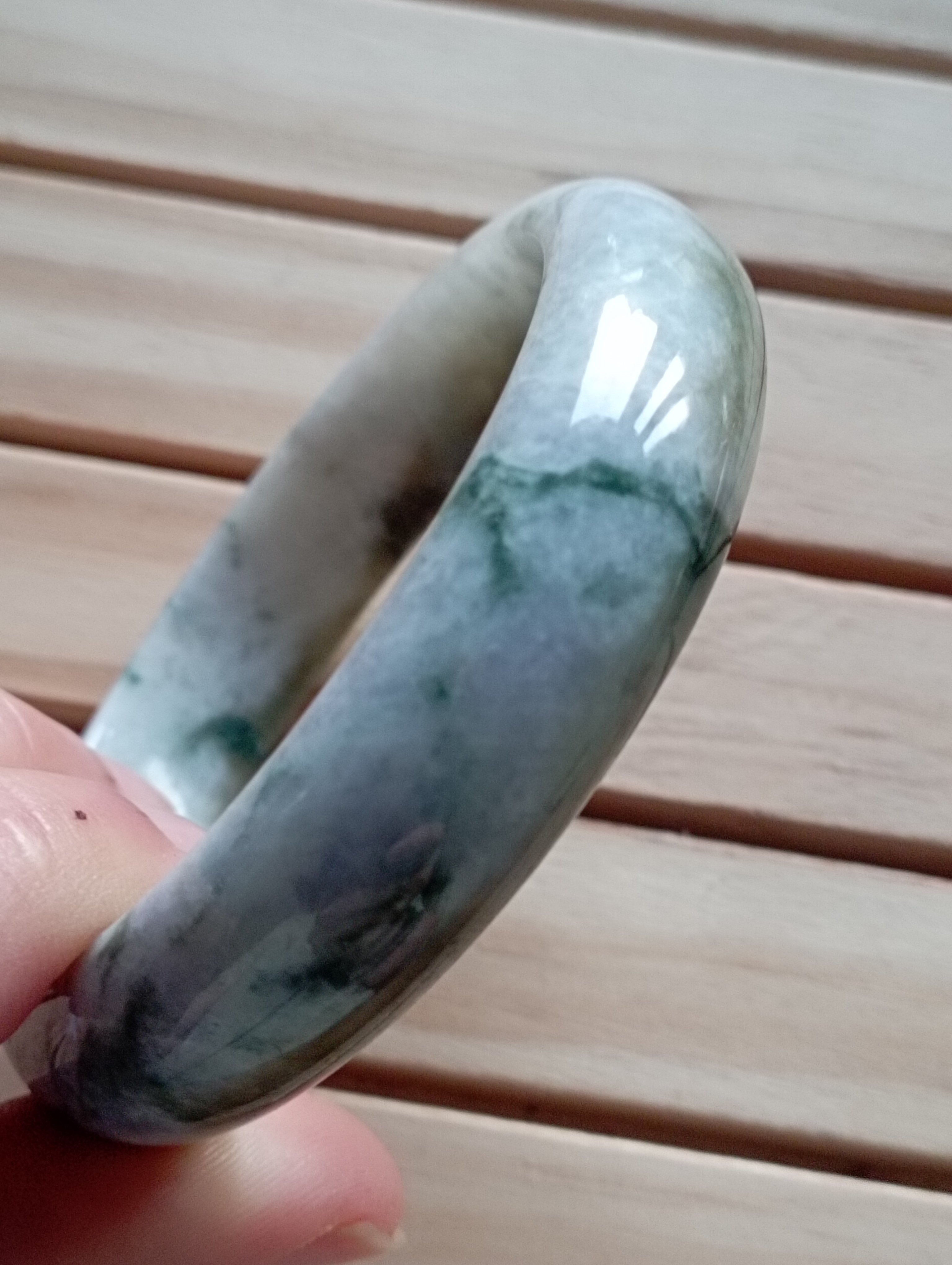 Gorgeous fulushou, consisting of green, purple and yellow colours, the bangle weighs 62.41g, it measures 57.2 X 15.2 X 7.7mm.