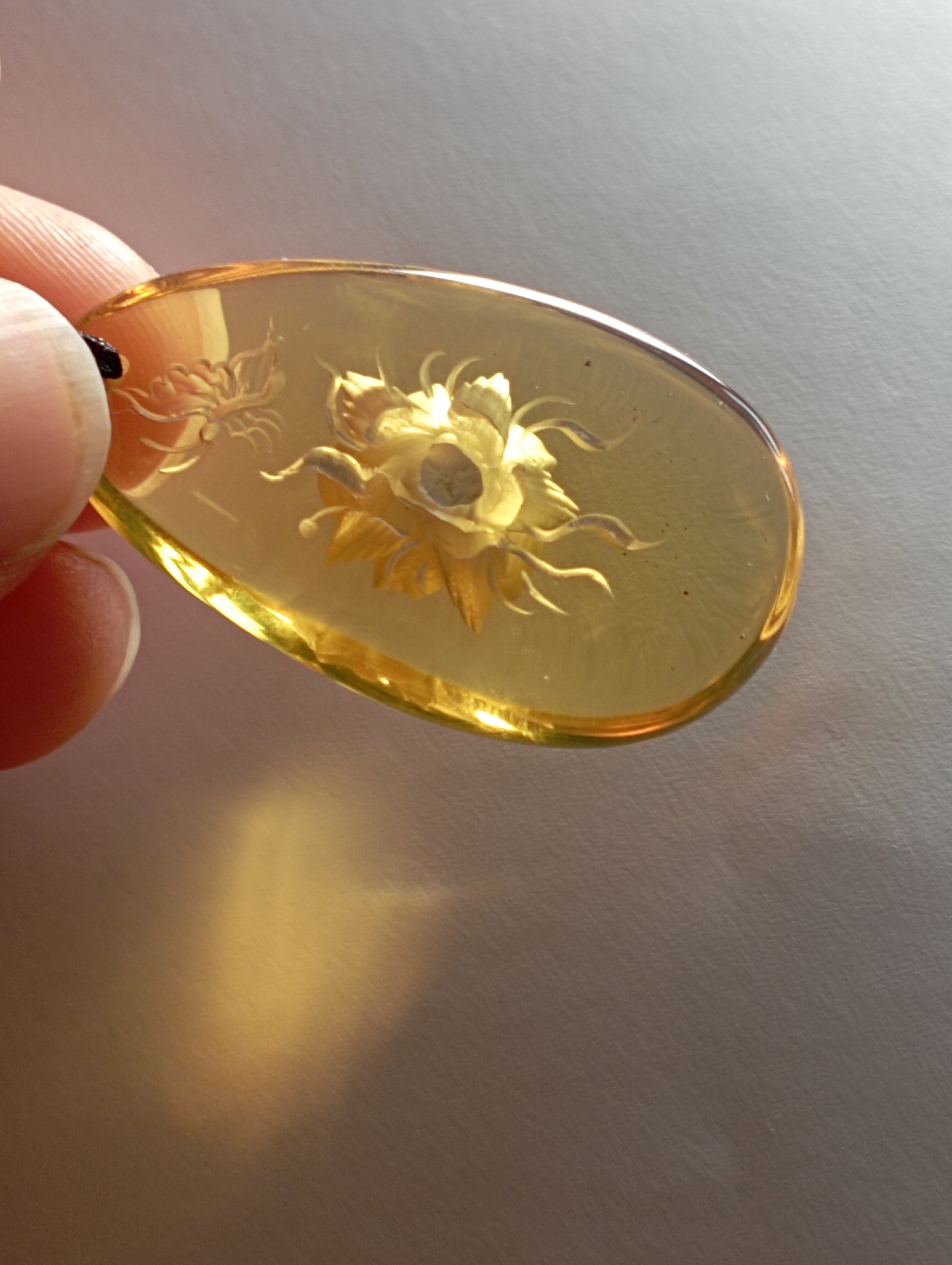 The flower symbolism associated with the orchid is love, beauty, refinement, many children, thoughtfulness and mature charm. The butterfly means freedom, new beginnings. The beaded chain is 56cm,made up of 5mm beads. The pendant measures 41.8mm in height including the top bead, width is 21mm and thickness at 7.5mm. the pendant alone weighs 10.10g.