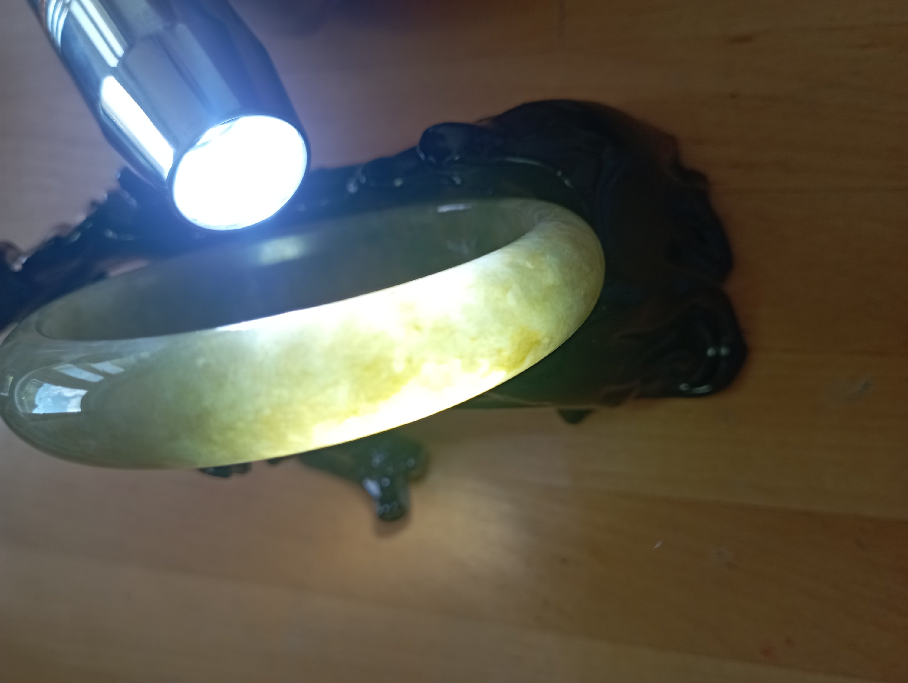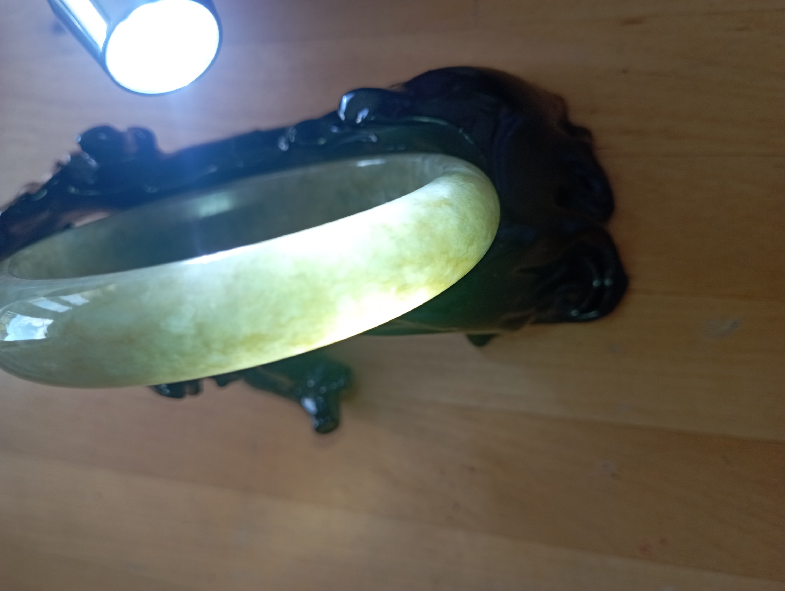 The interior is quite icy, full yellowish green all around. Lovely bangle to add to your collection. Measures 58.2 X 12.2 X 7.3mm, comes with a certificate of authenticity. £212