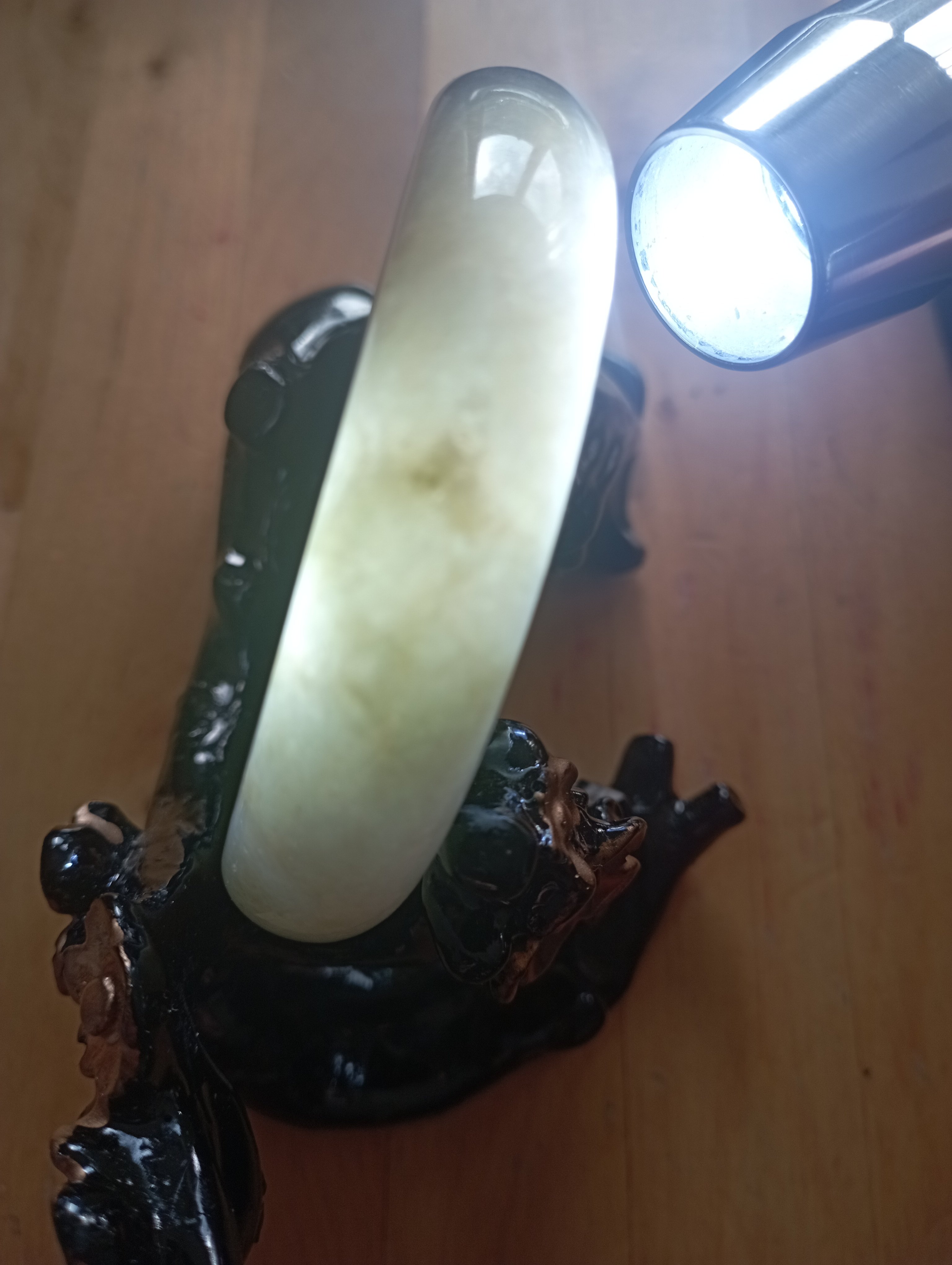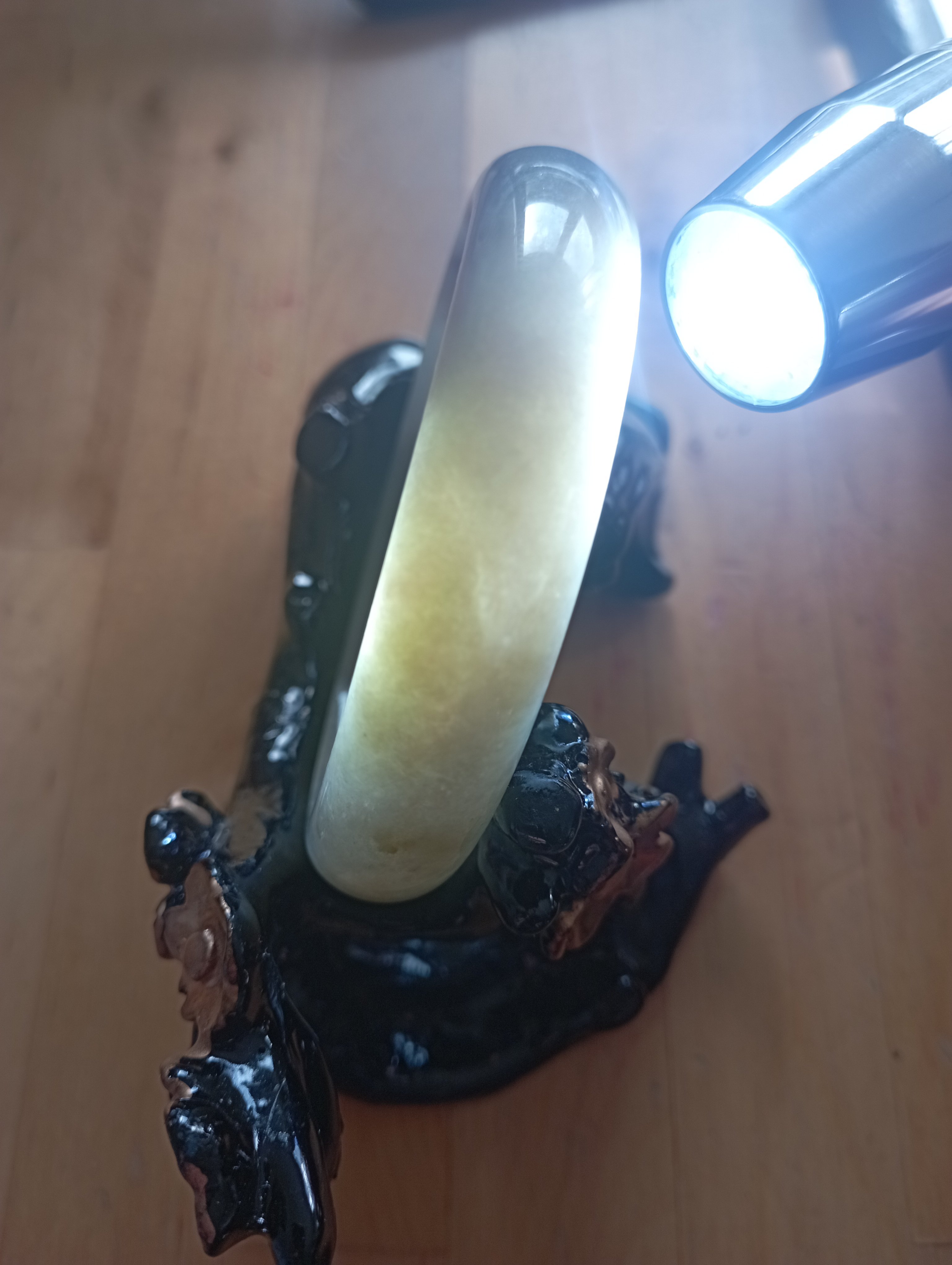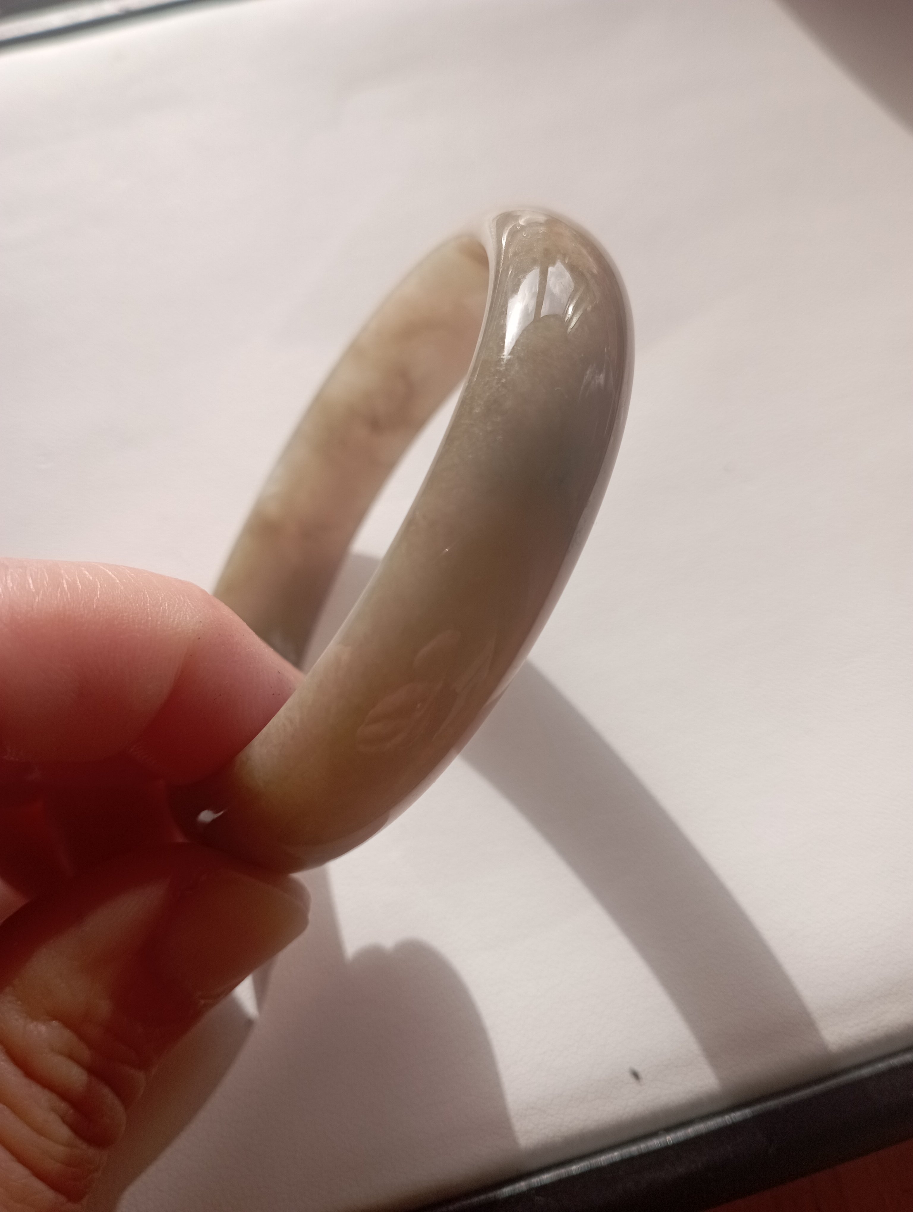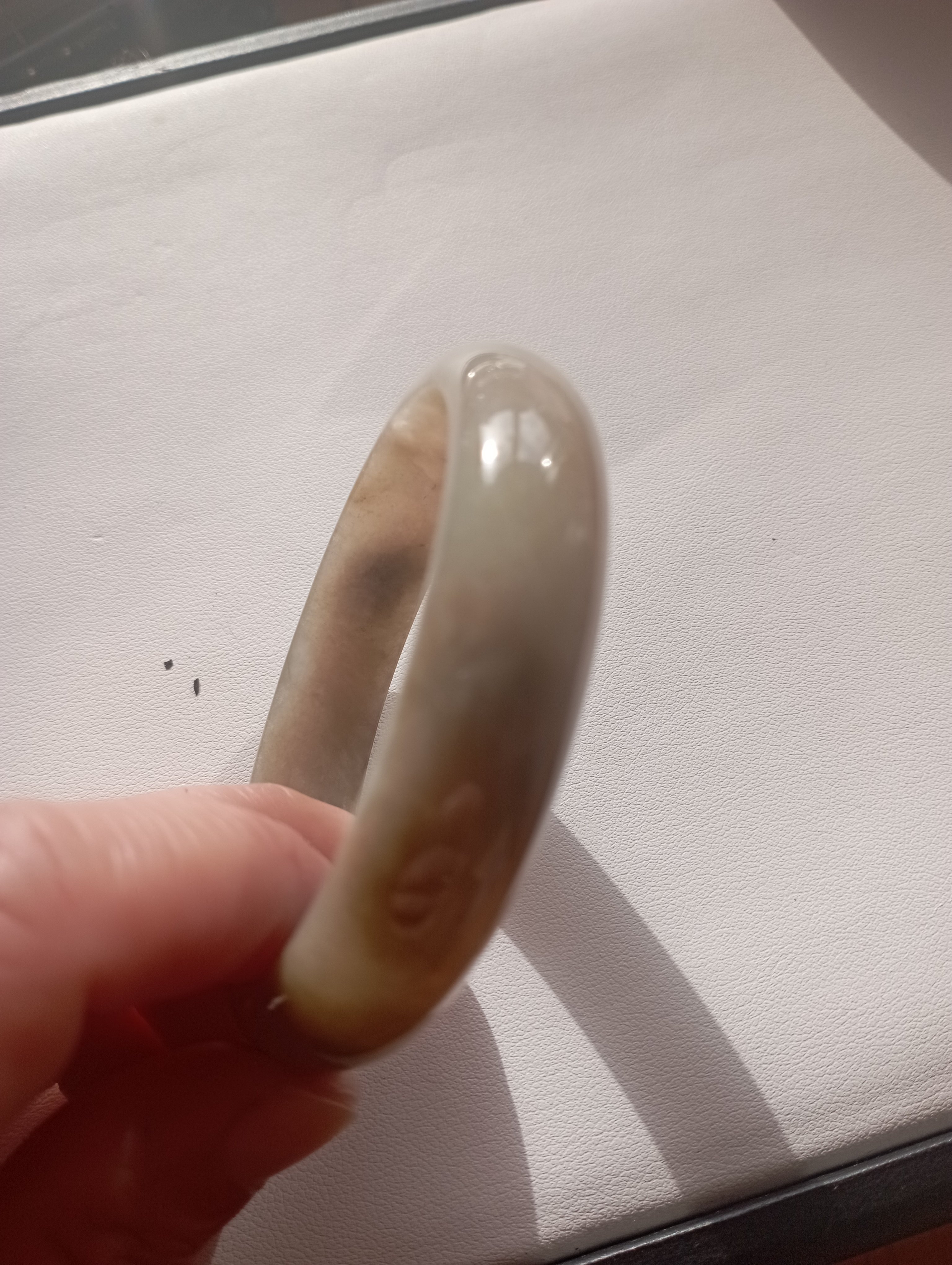 Lovely icy bangle with brown blooms, measures 56.1 X 13.5 X 7.1mm, comes with a certificate of authenticity £179
