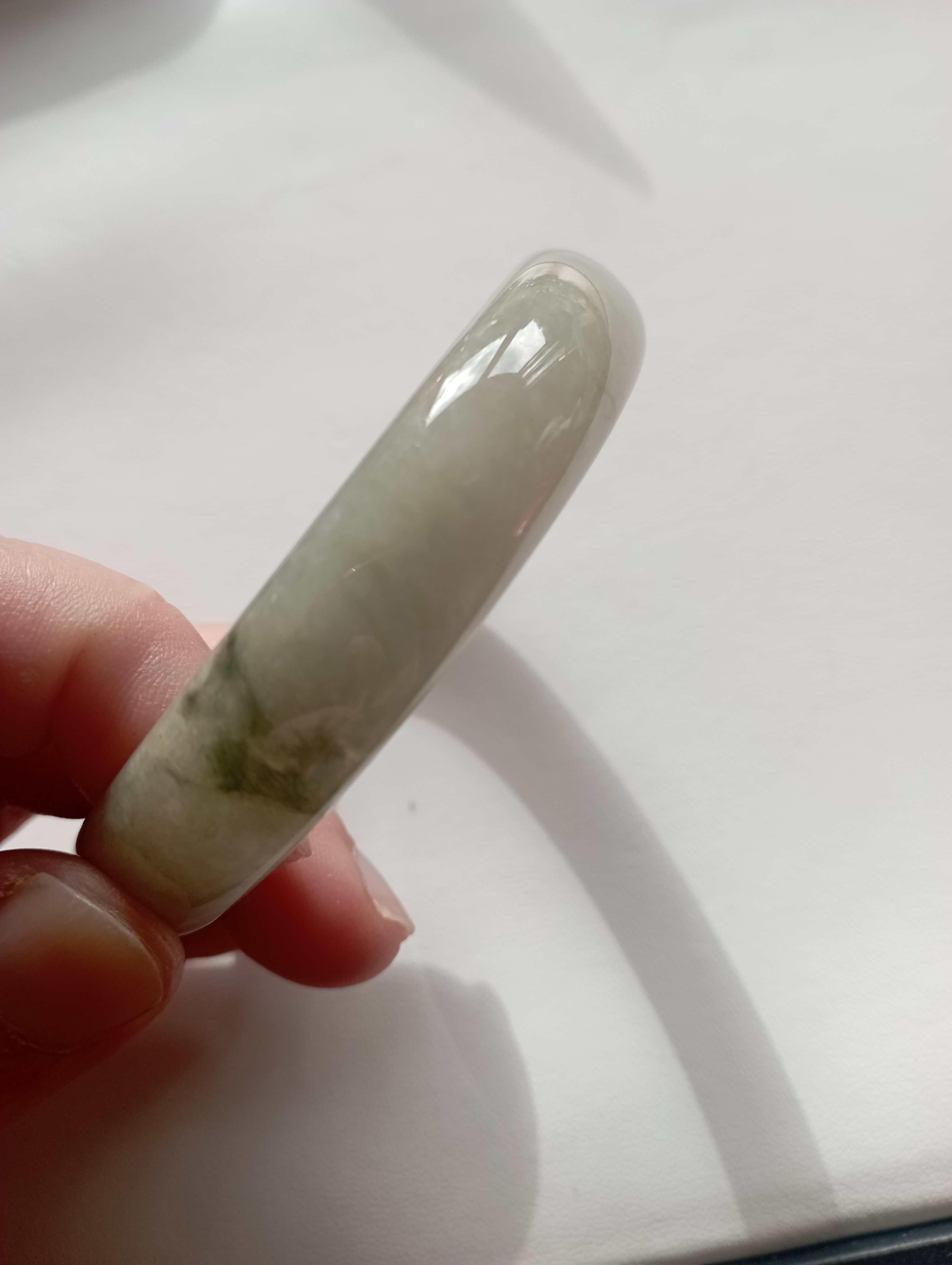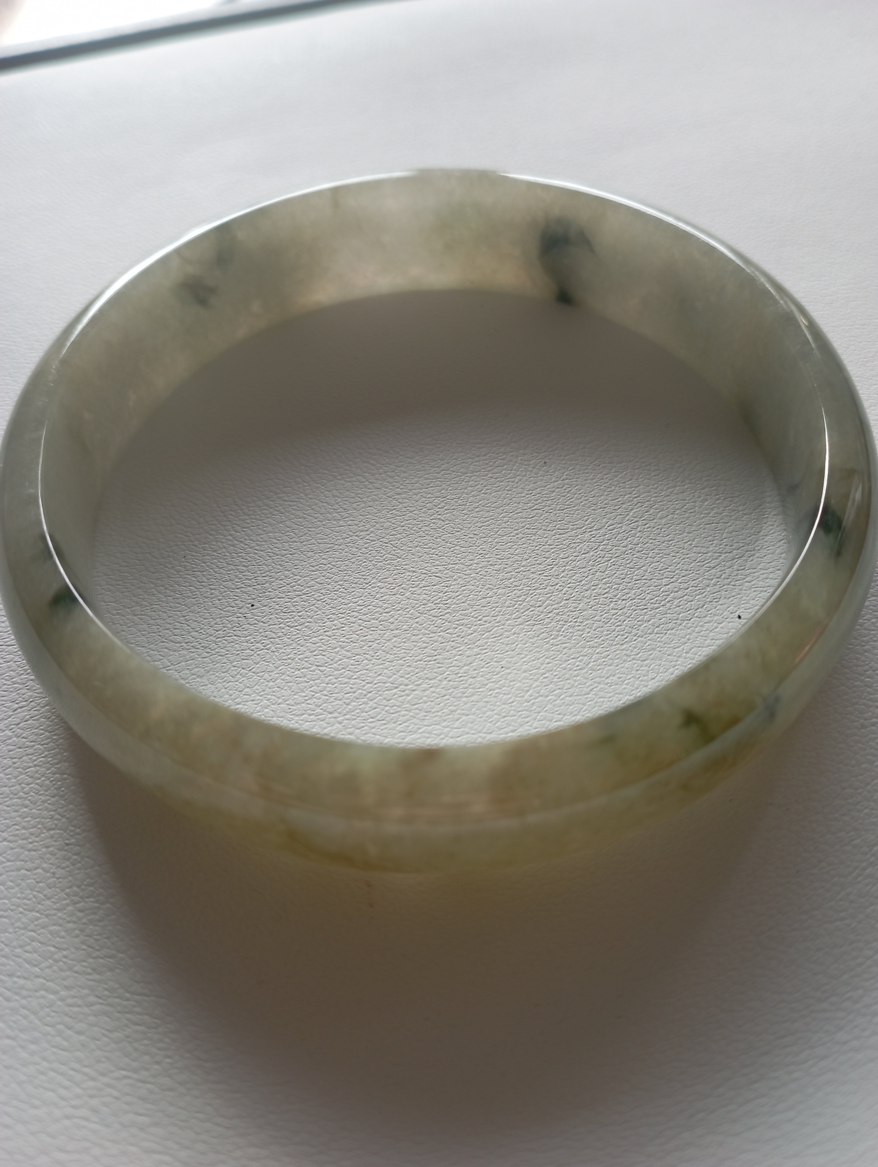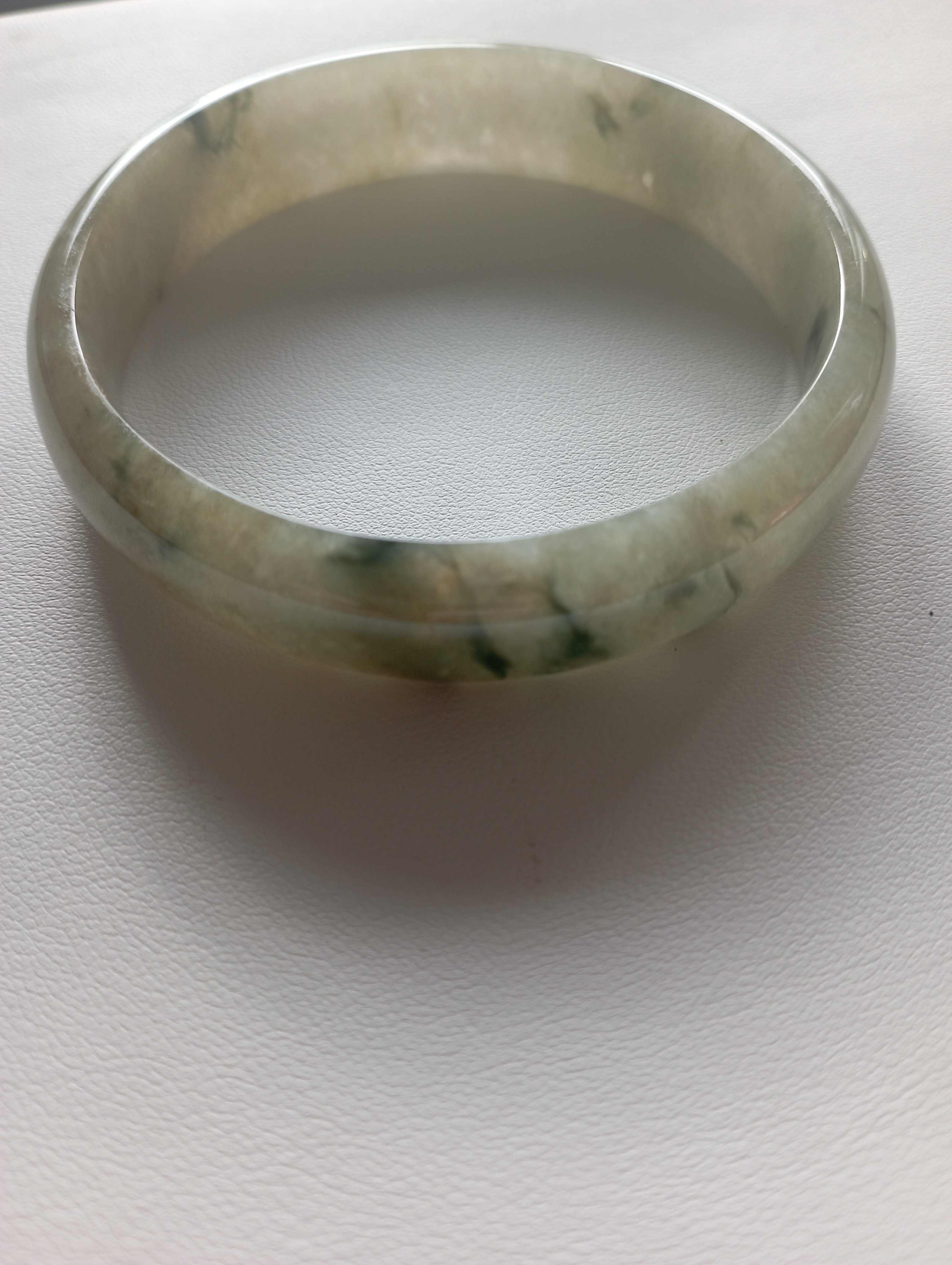 Lovely light green icy bangle with gorgeous blooms, measures 58.3 X 12.7 X 6.9mm.
