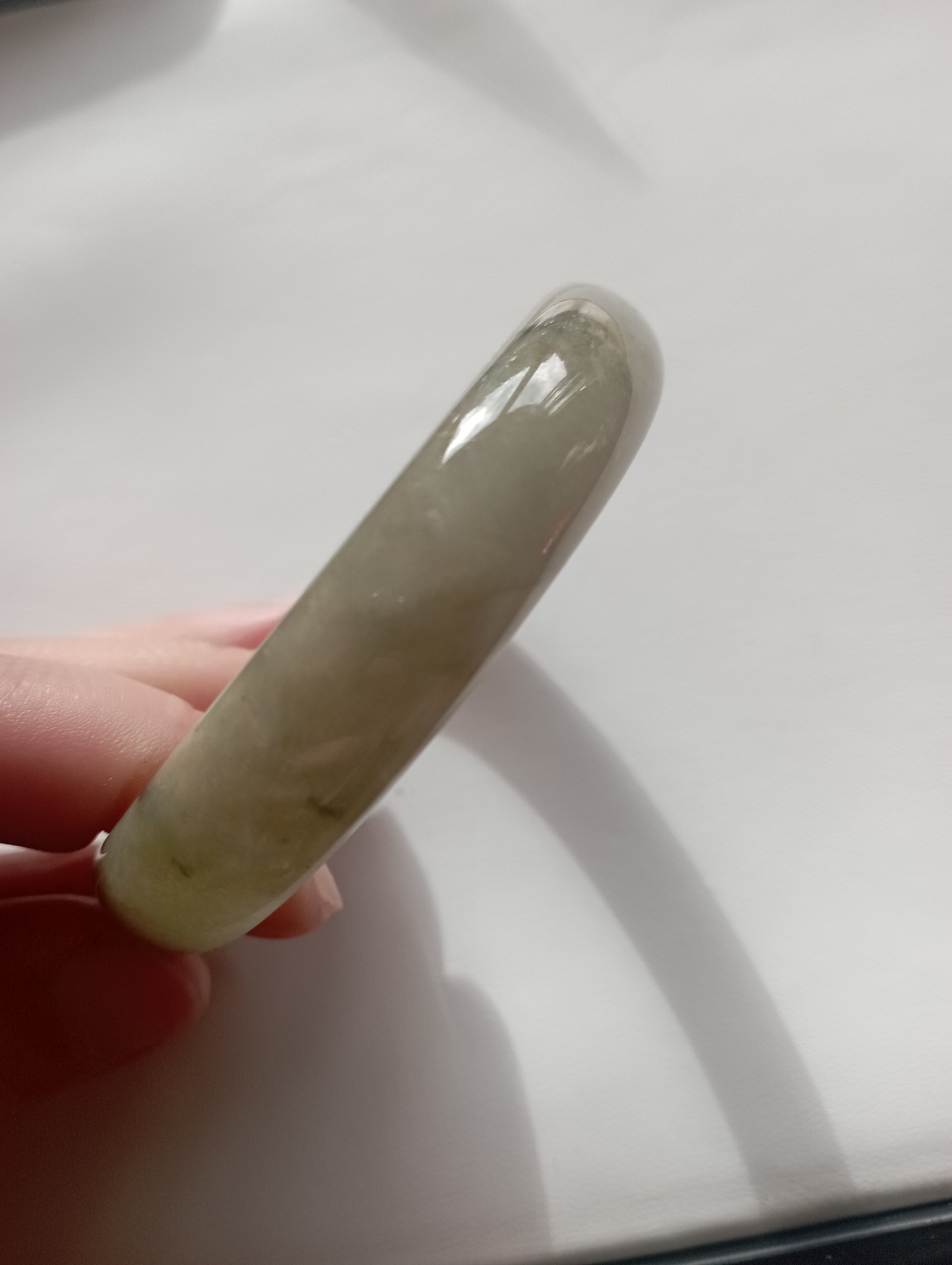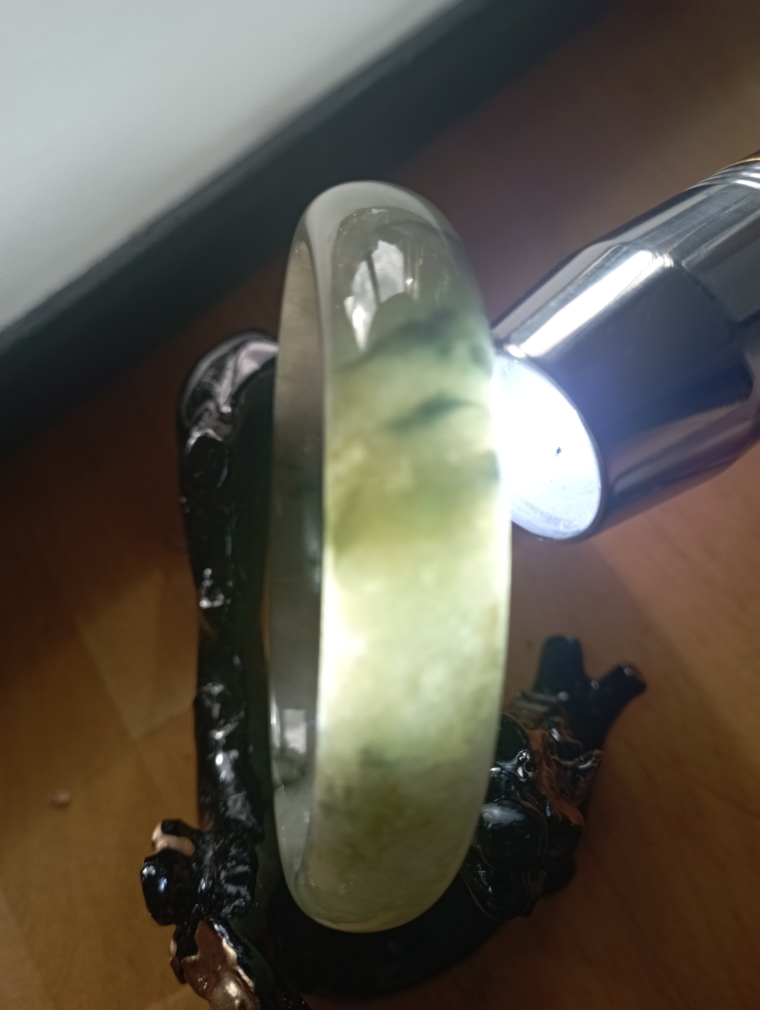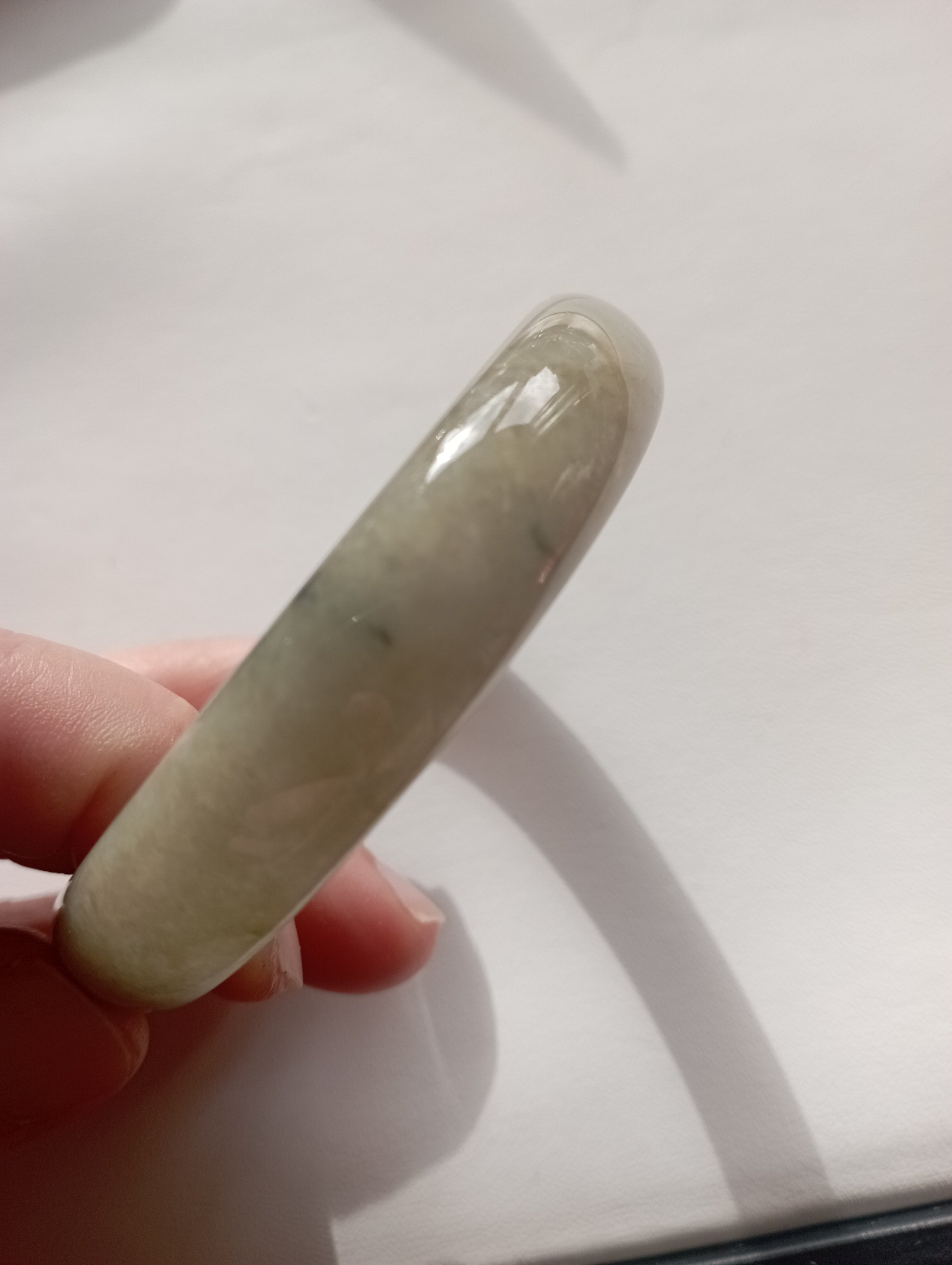 Lovely light green icy bangle with gorgeous blooms, measures 58.3 X 12.7 X 6.9mm.