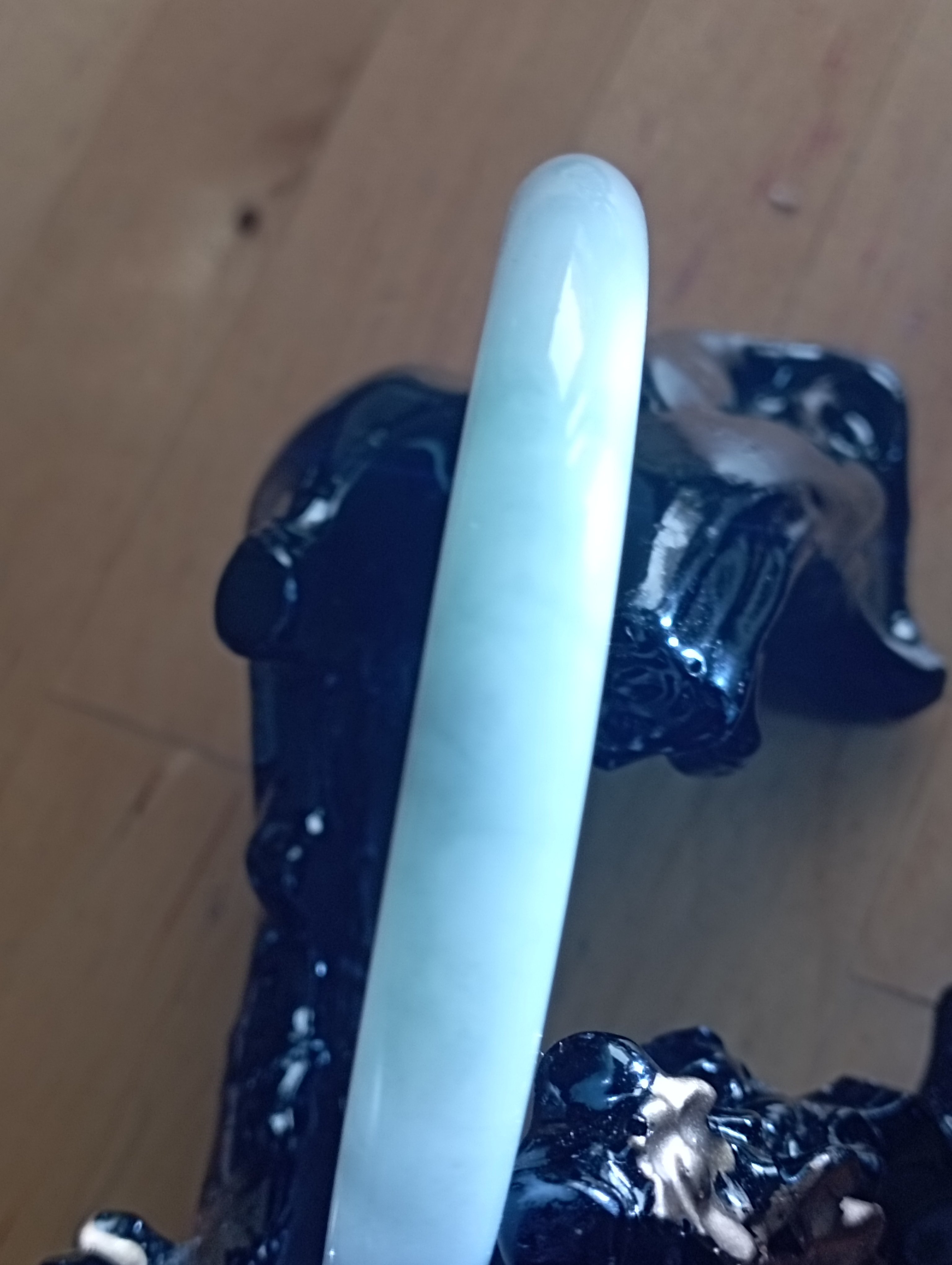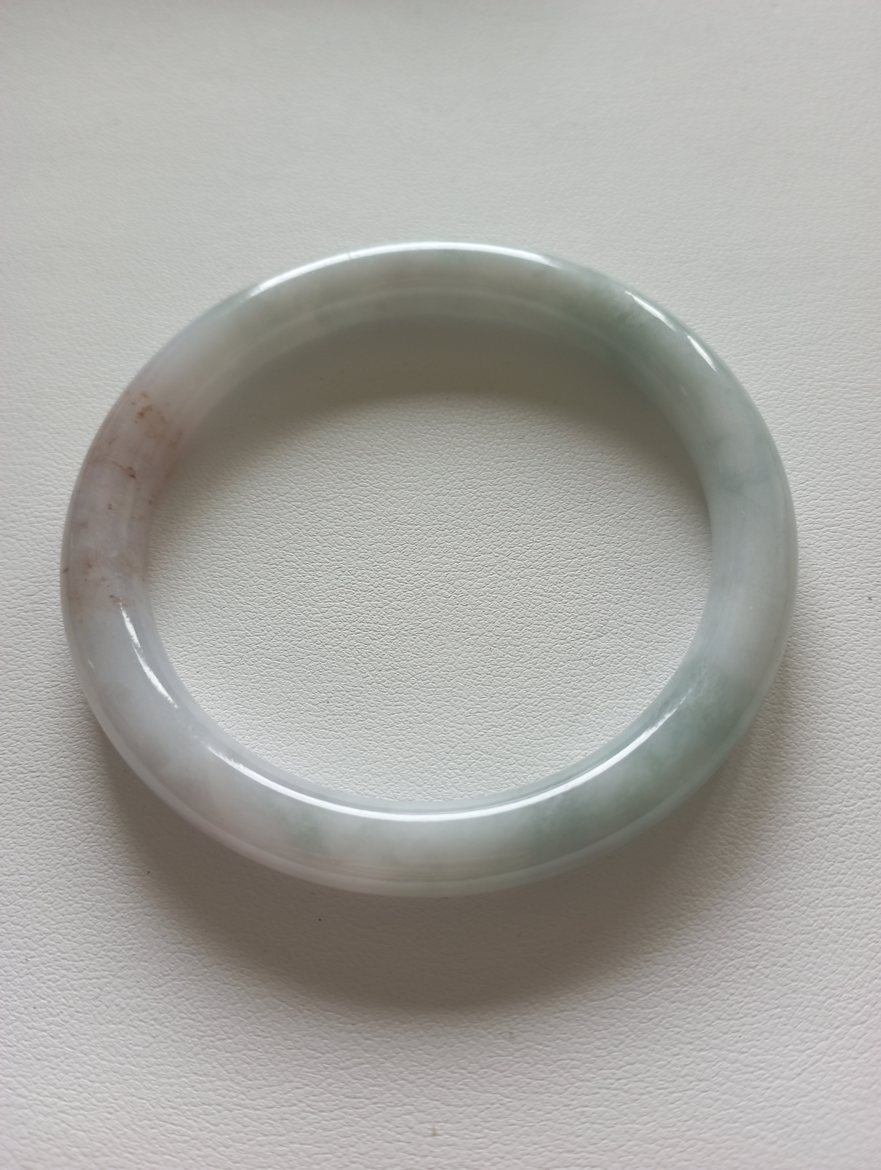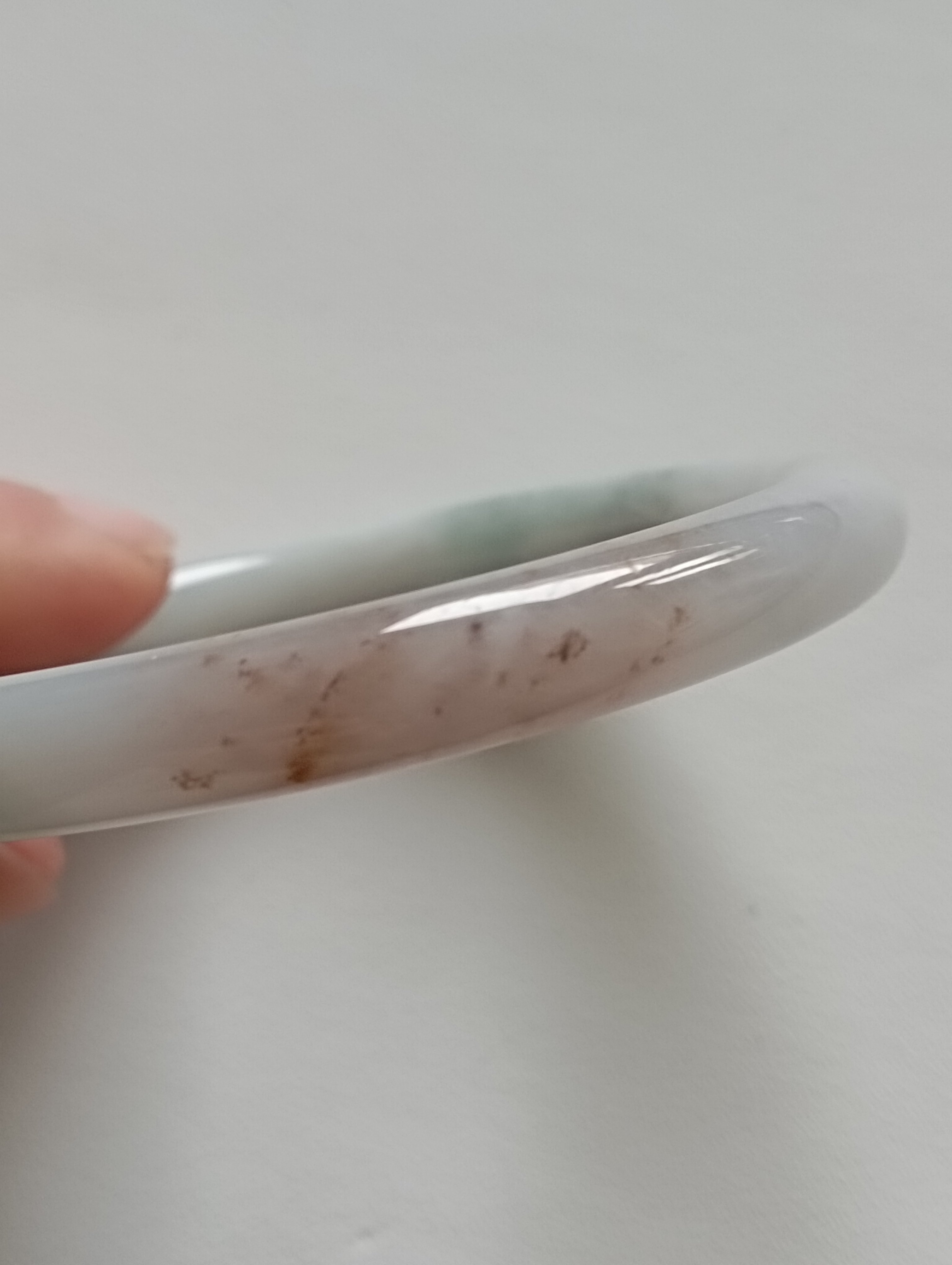 Lovely round bangle in purple, green and a patch of red fits up to 55mm. Measures 53.8 X 7.7 X 7.6mm, weighs 30.93g. Comes with a certificate of authenticity £188