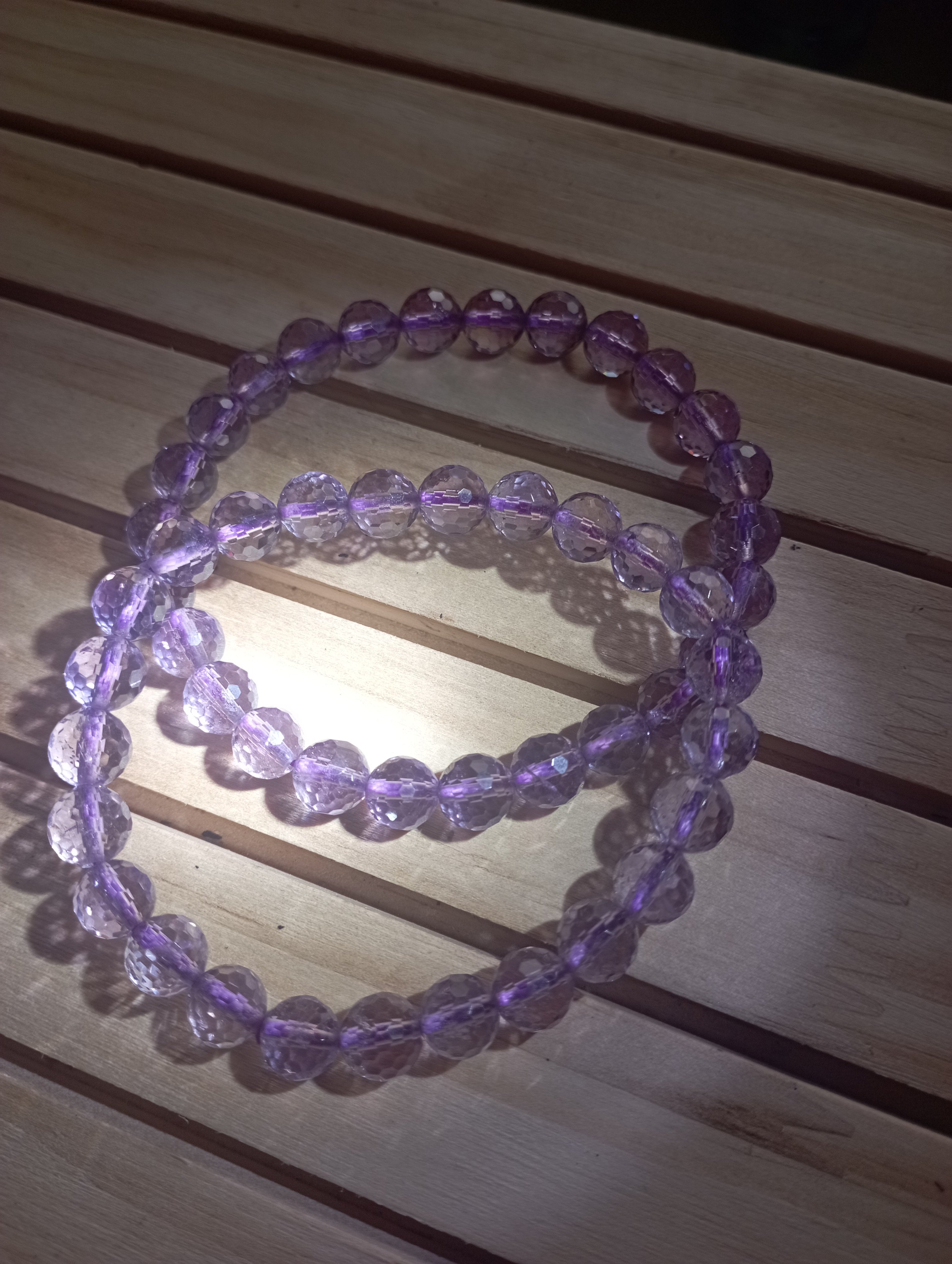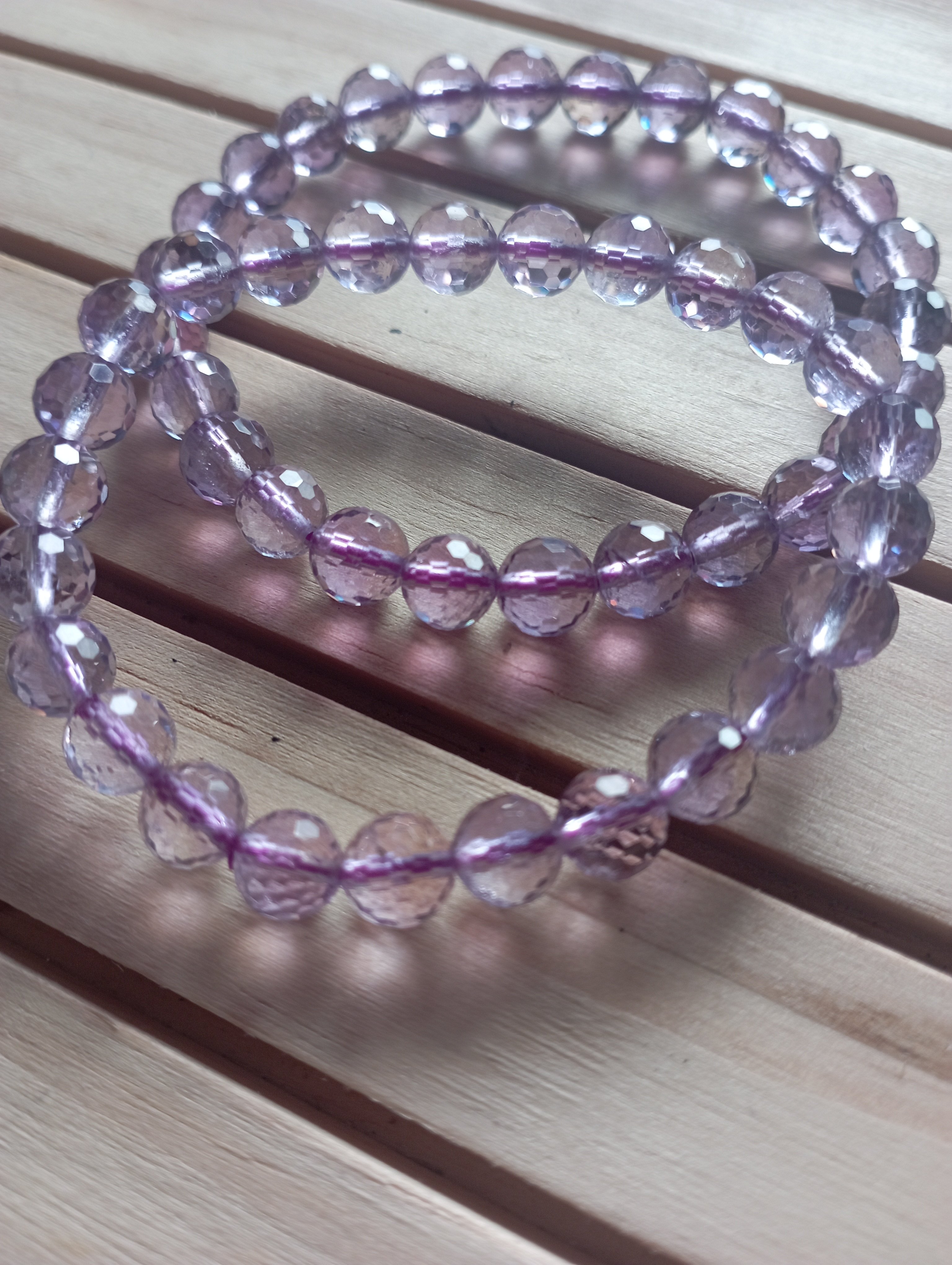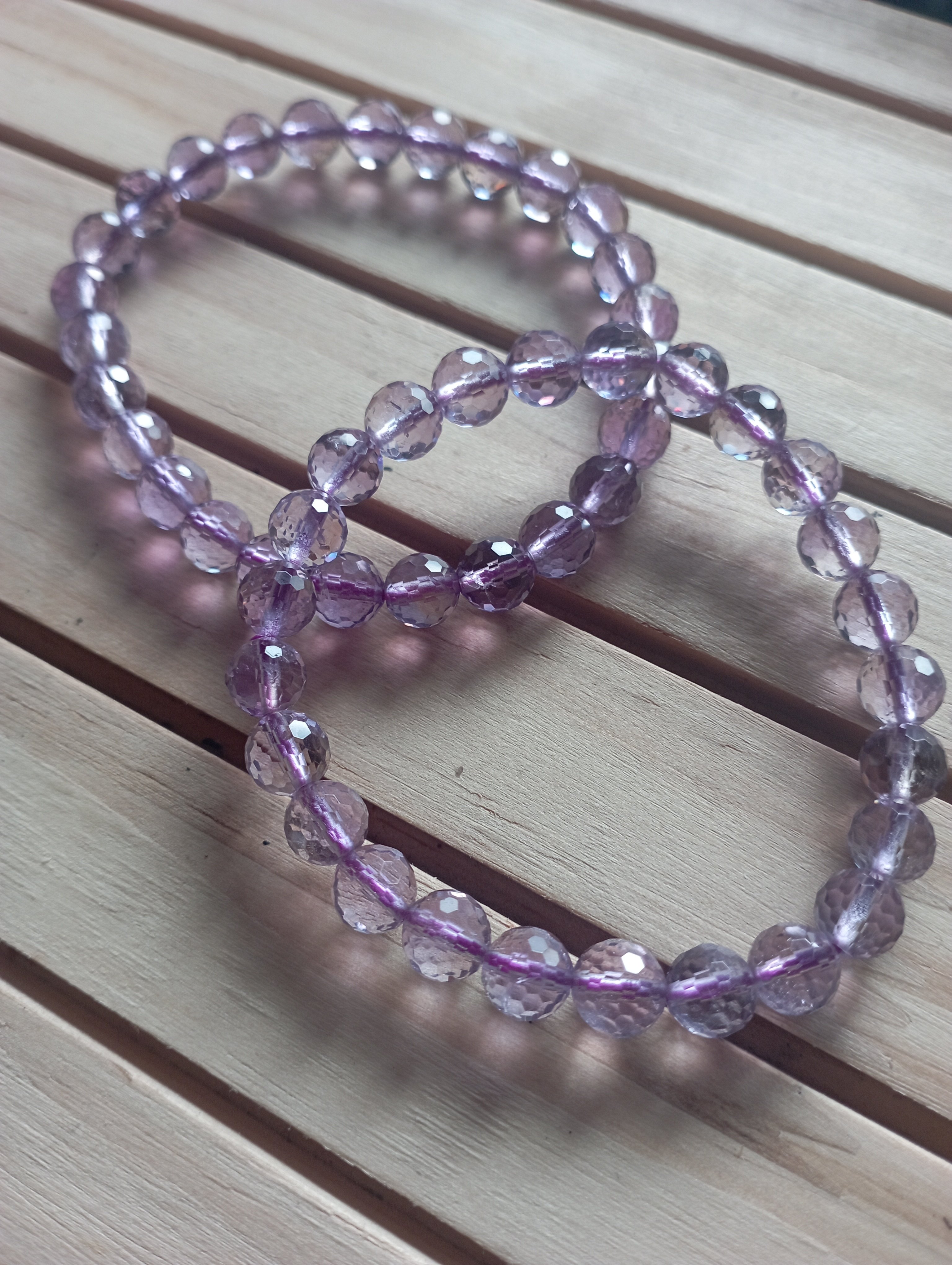 The crystals represent purification and connection to spiritual and divine beings. The meaning of amethyst is attached to serenity, understanding, trust and grace. These amethyst beads are brilliant under lights due to its faucets, very lovely and suitable for everyday wear. £35