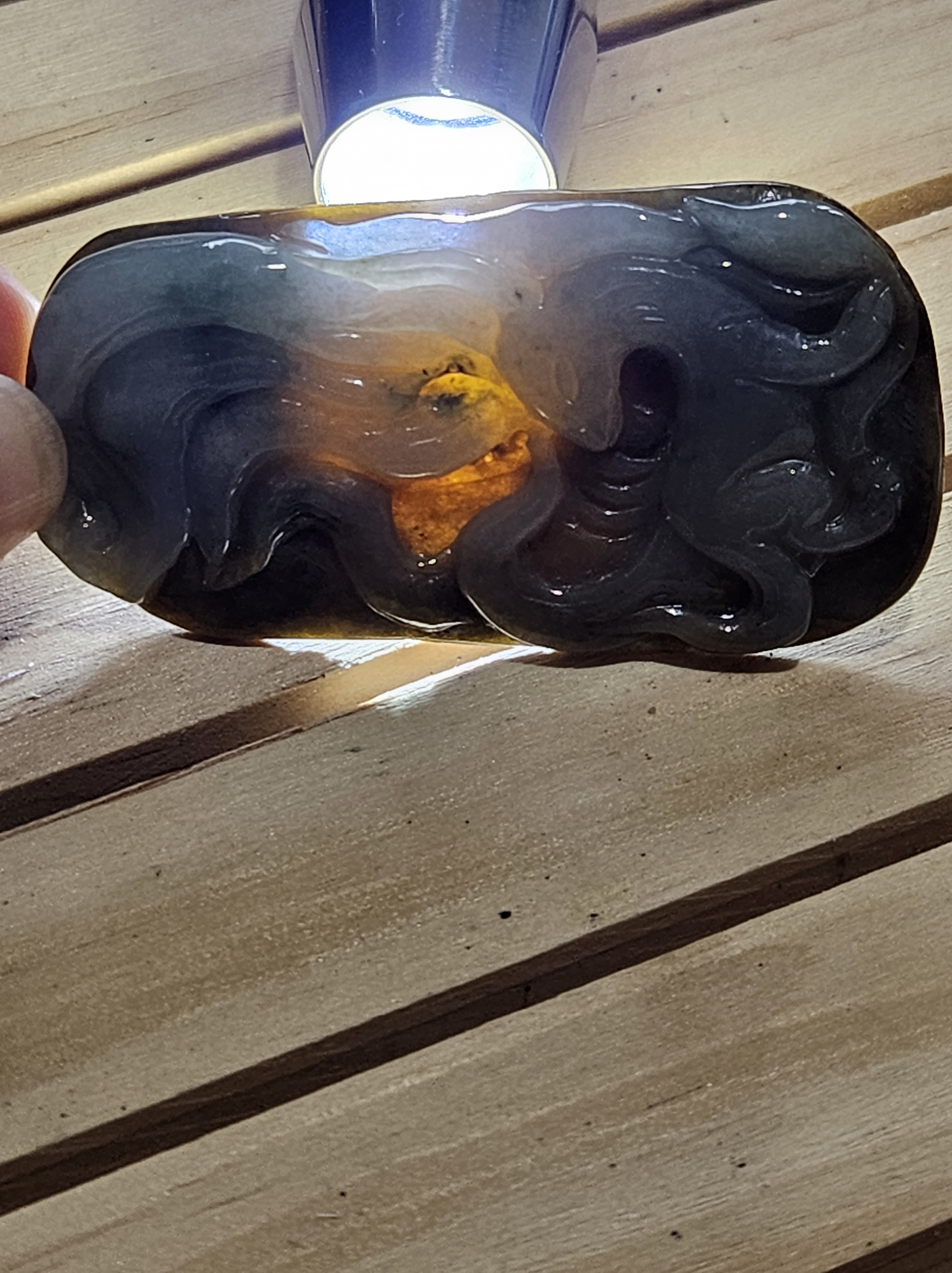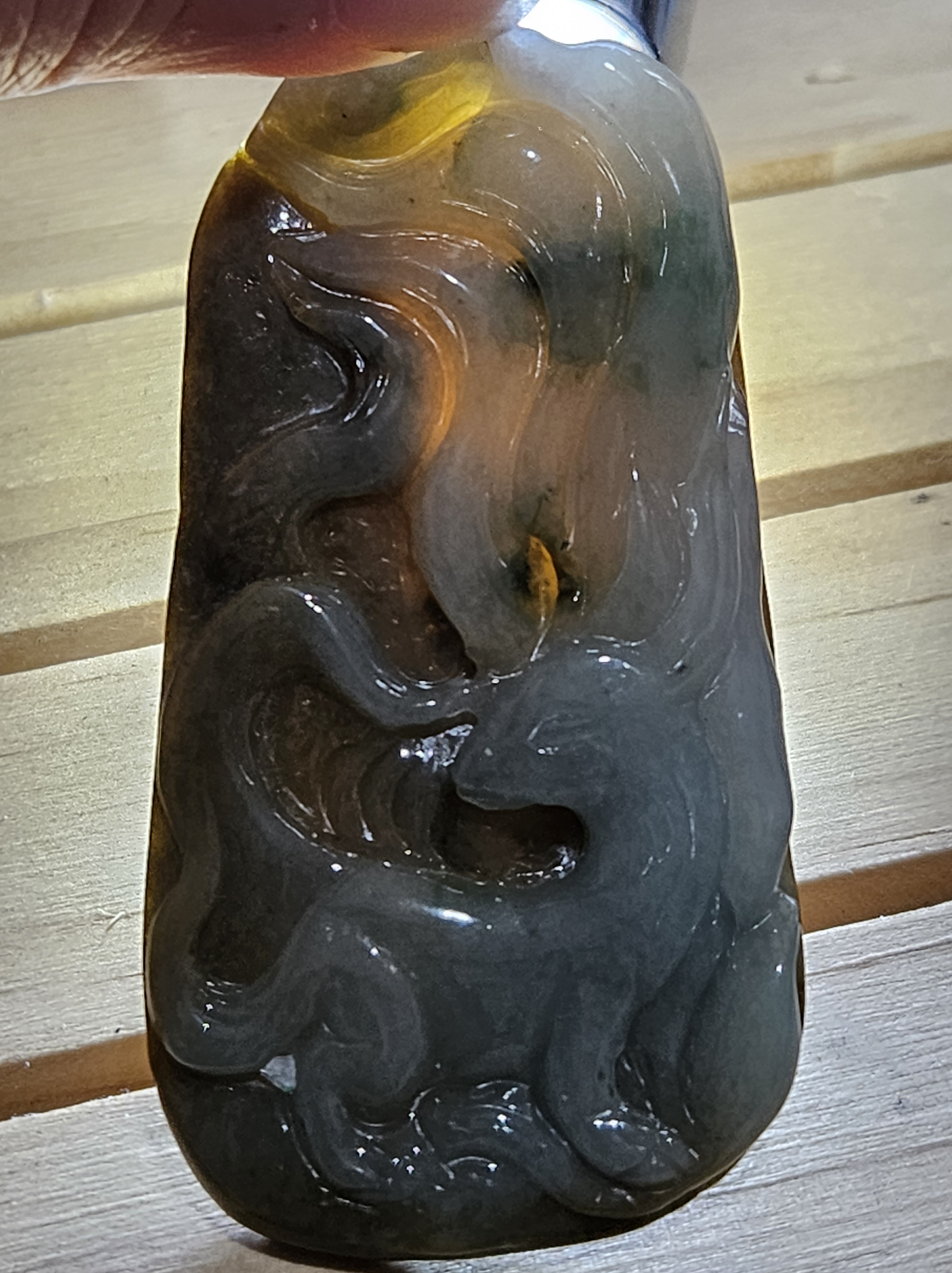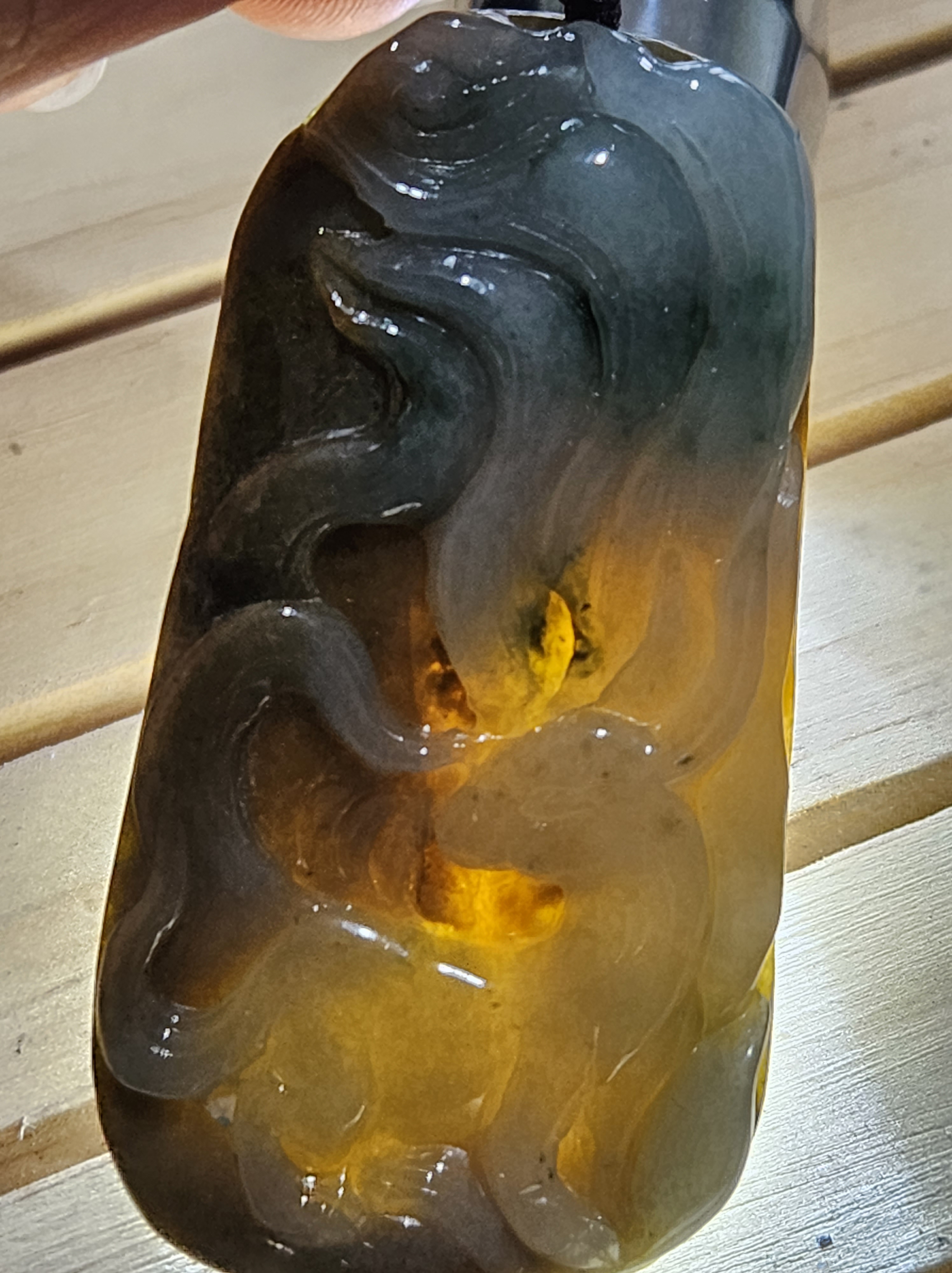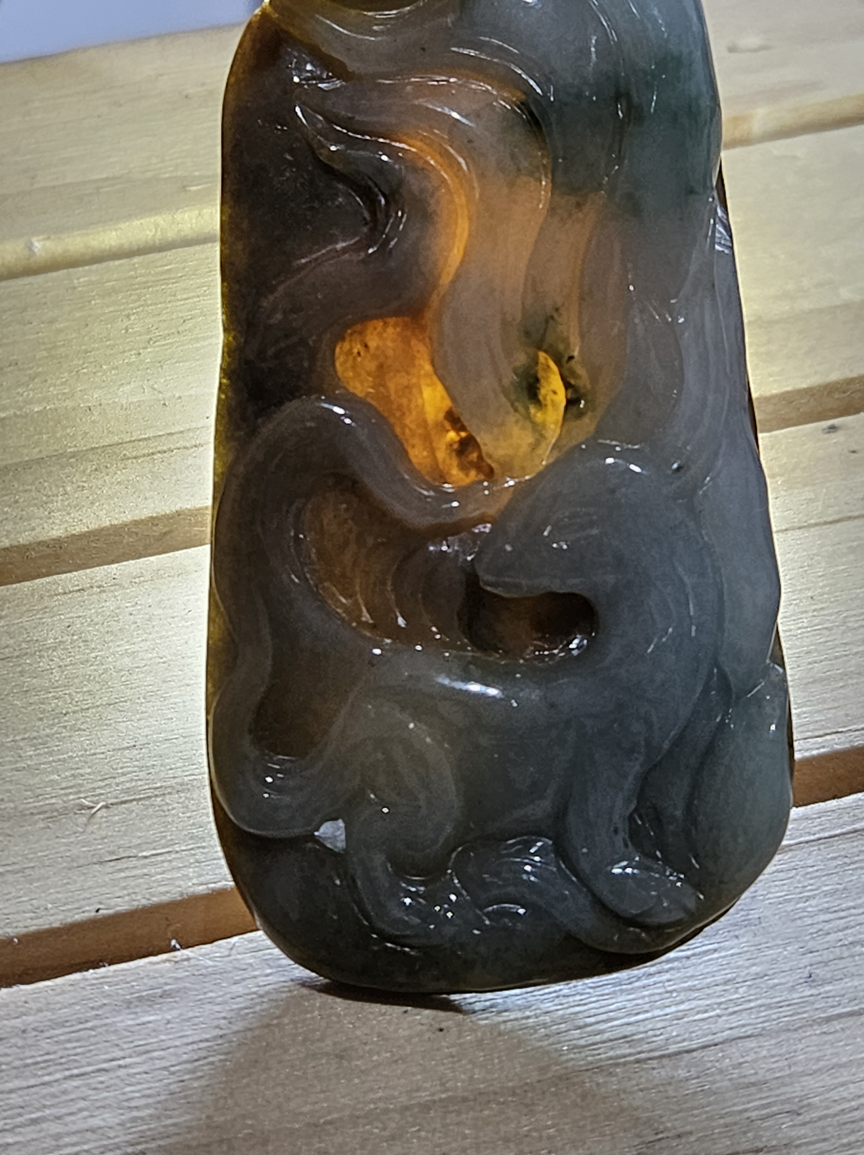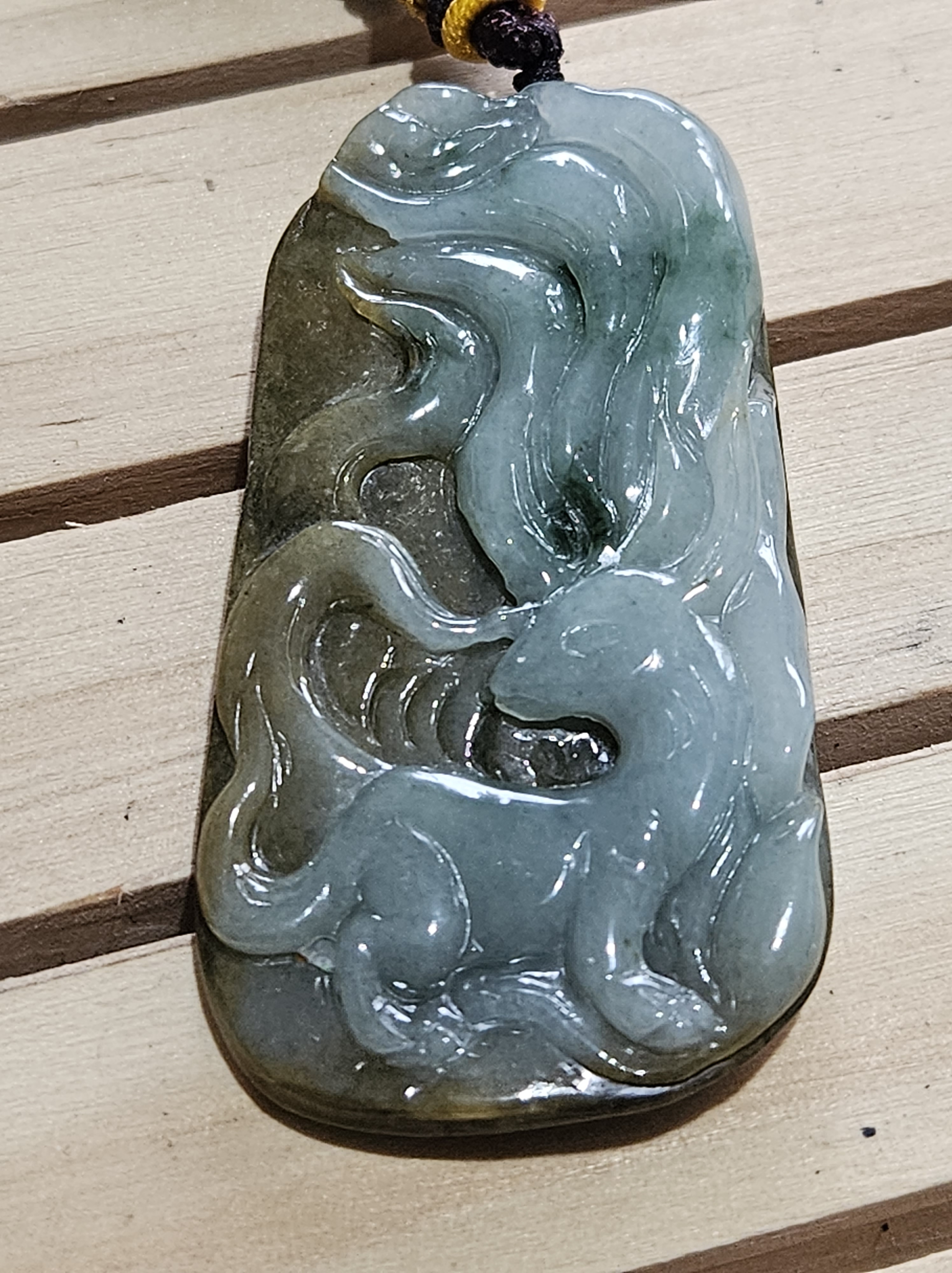 In the case of the 9-tailed fox, it helps to attract love, wealth, friendships, maintain harmony in your life, and repel negative force and people. This pendant is made of natural Burmese jadeite. The back is the smoothen skin of the jadeite stone. When the light goes through, you can see as if the fox is basking in the sun. Measure 61.6 x 32.4 x 9.9mm, excluding the adjustable string chain, comes with a certificate of authenticity £79