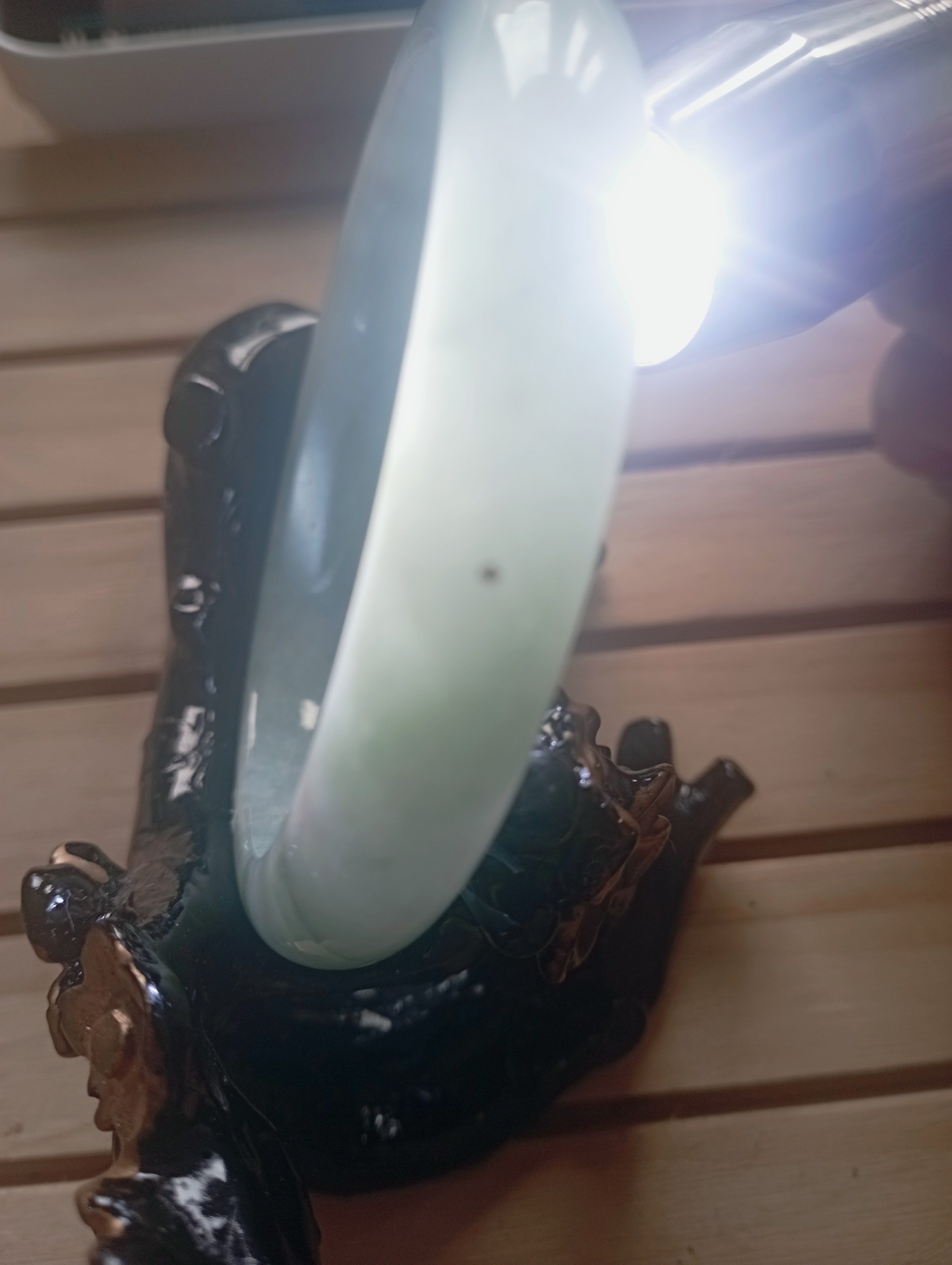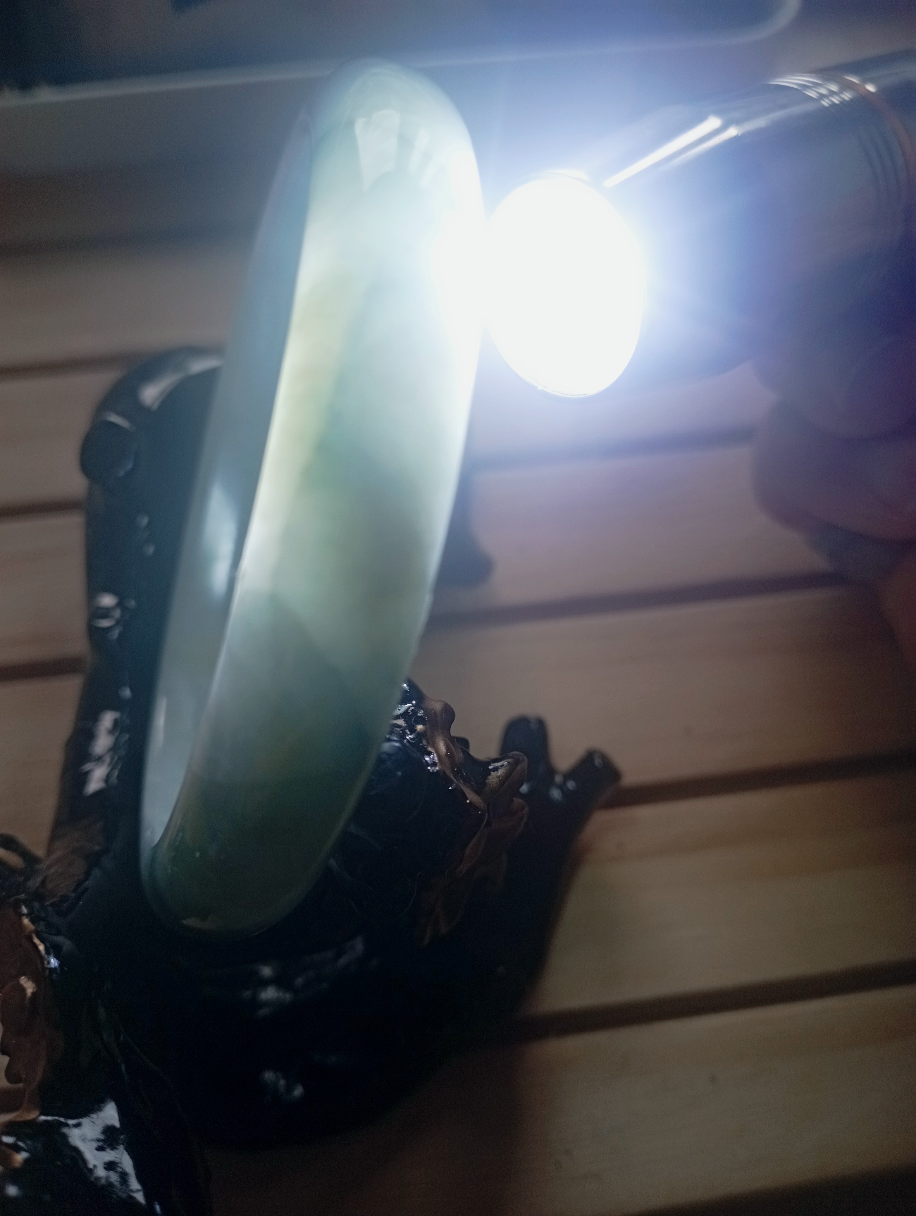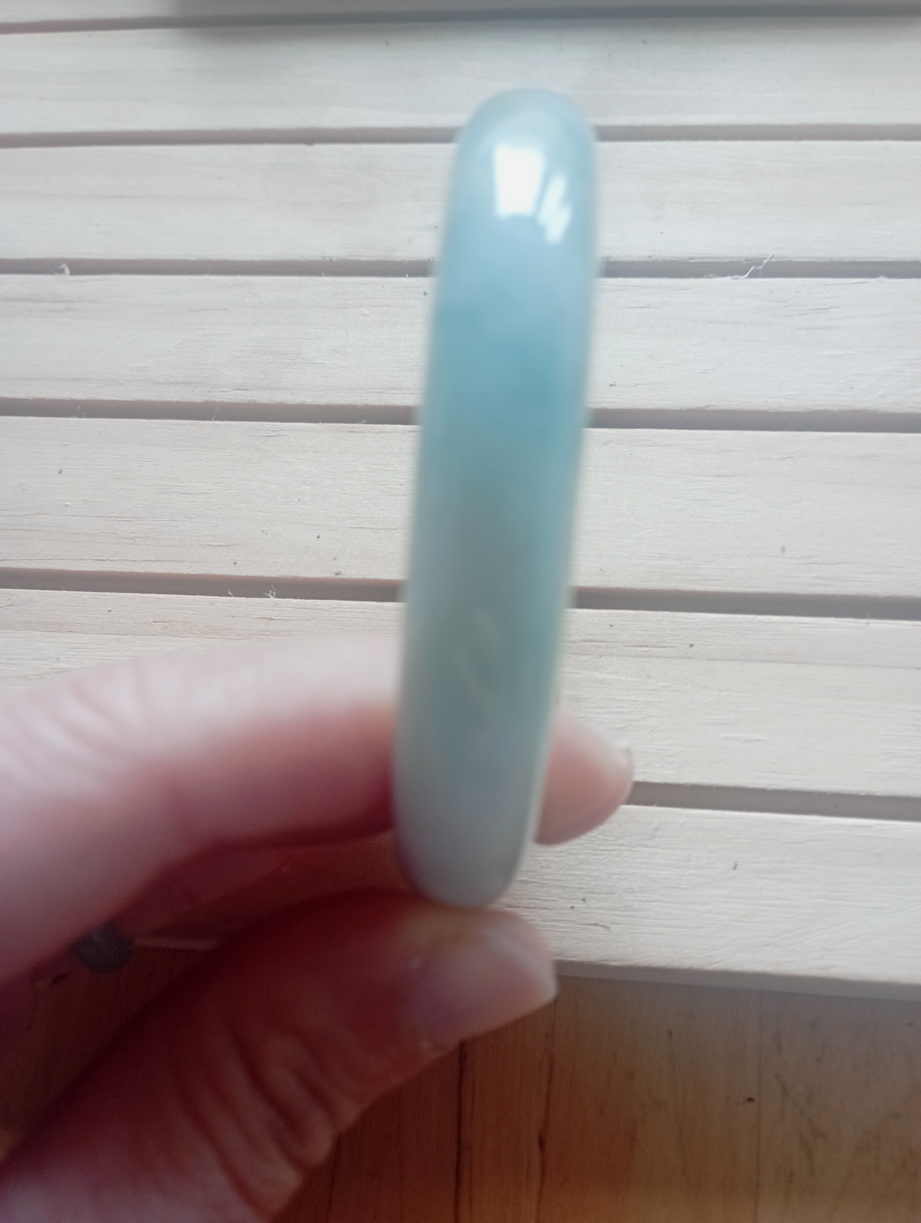 The colour is more a light apple green , stronger colour than the pictures. Measures 58.4 X 11.2 X 7.2mm, weighs 47.2g, it has internal cracks that does not affect usage. Comes with a certificate of authenticity at a bargain price of £89.
