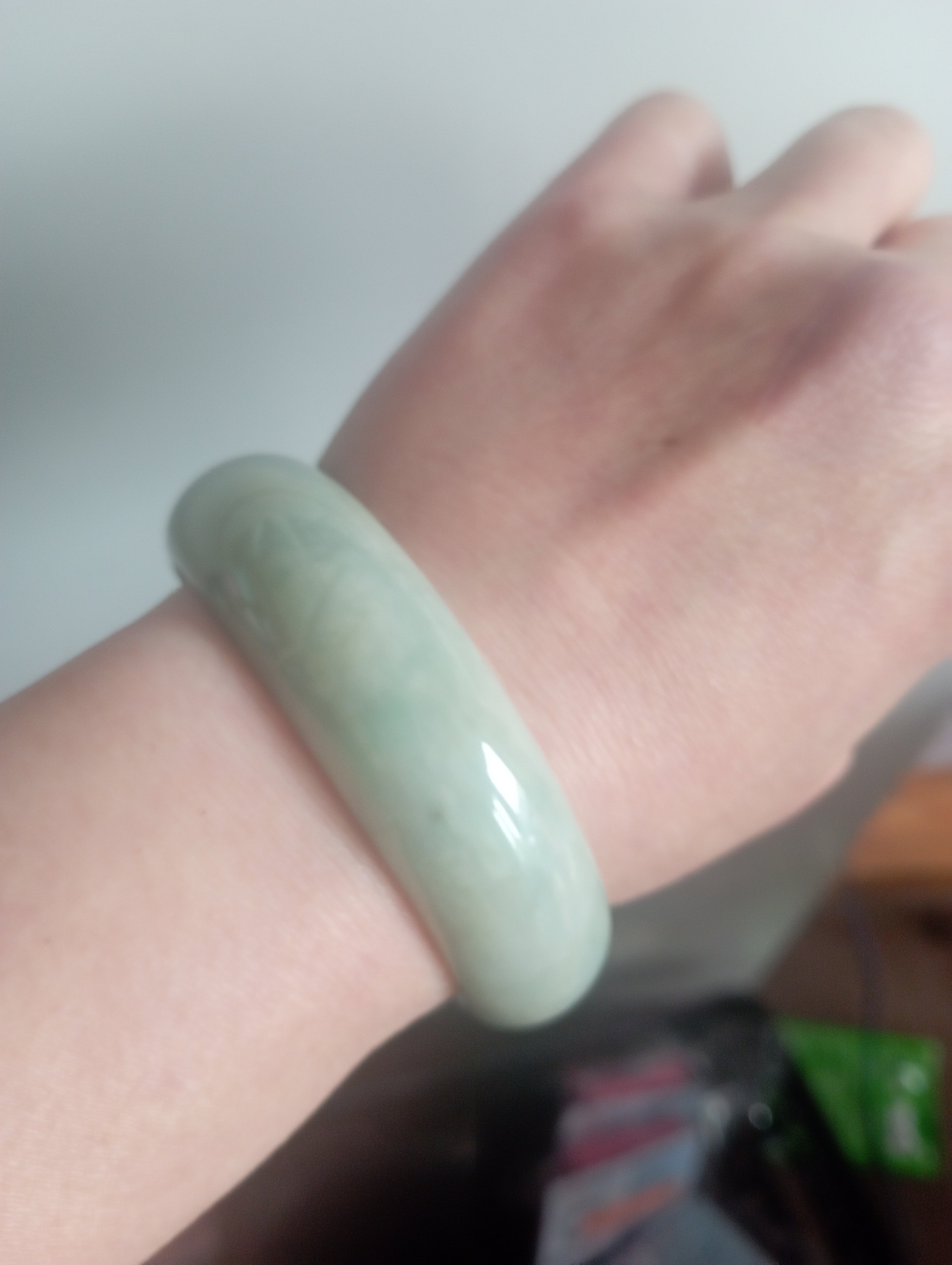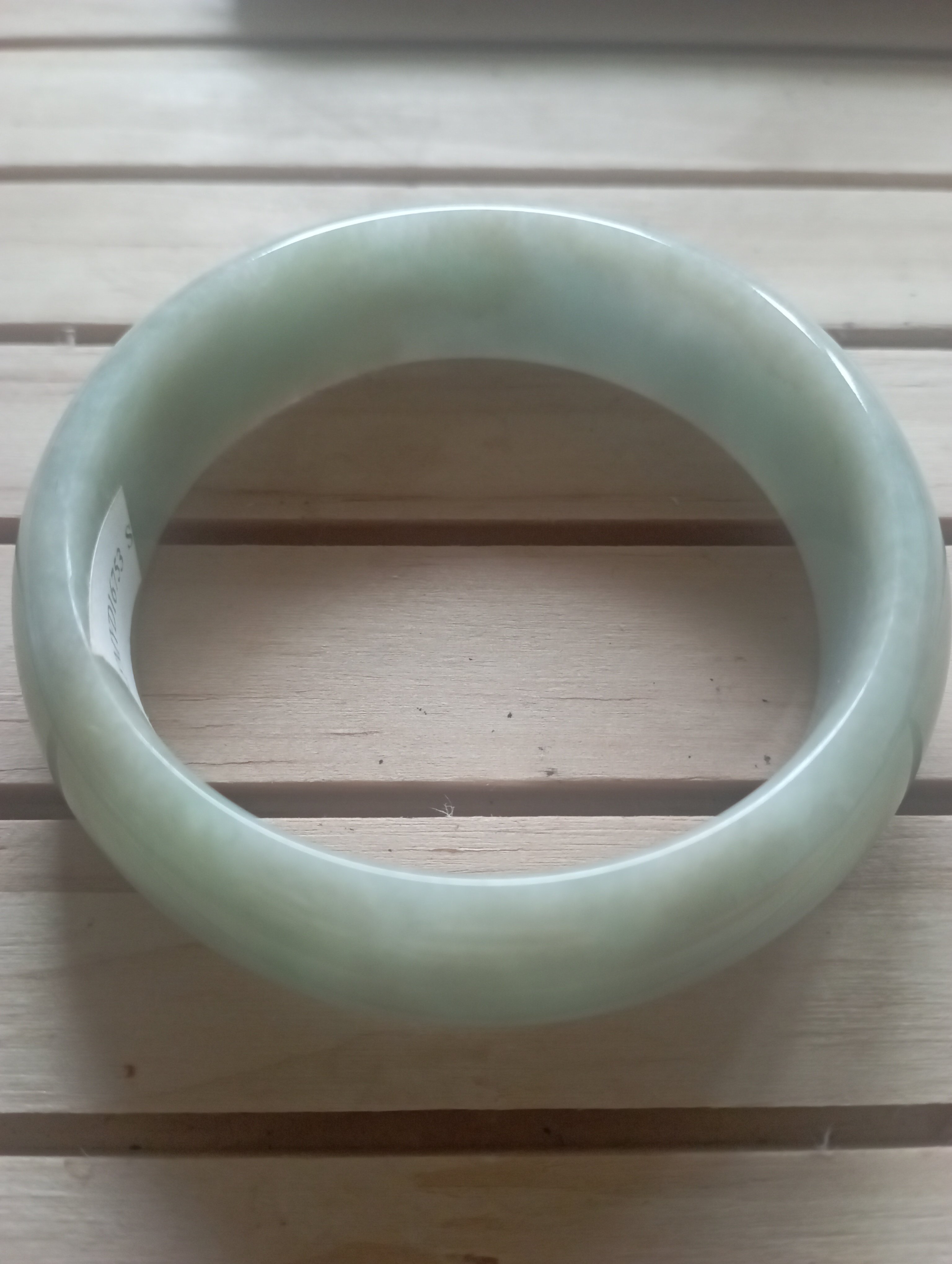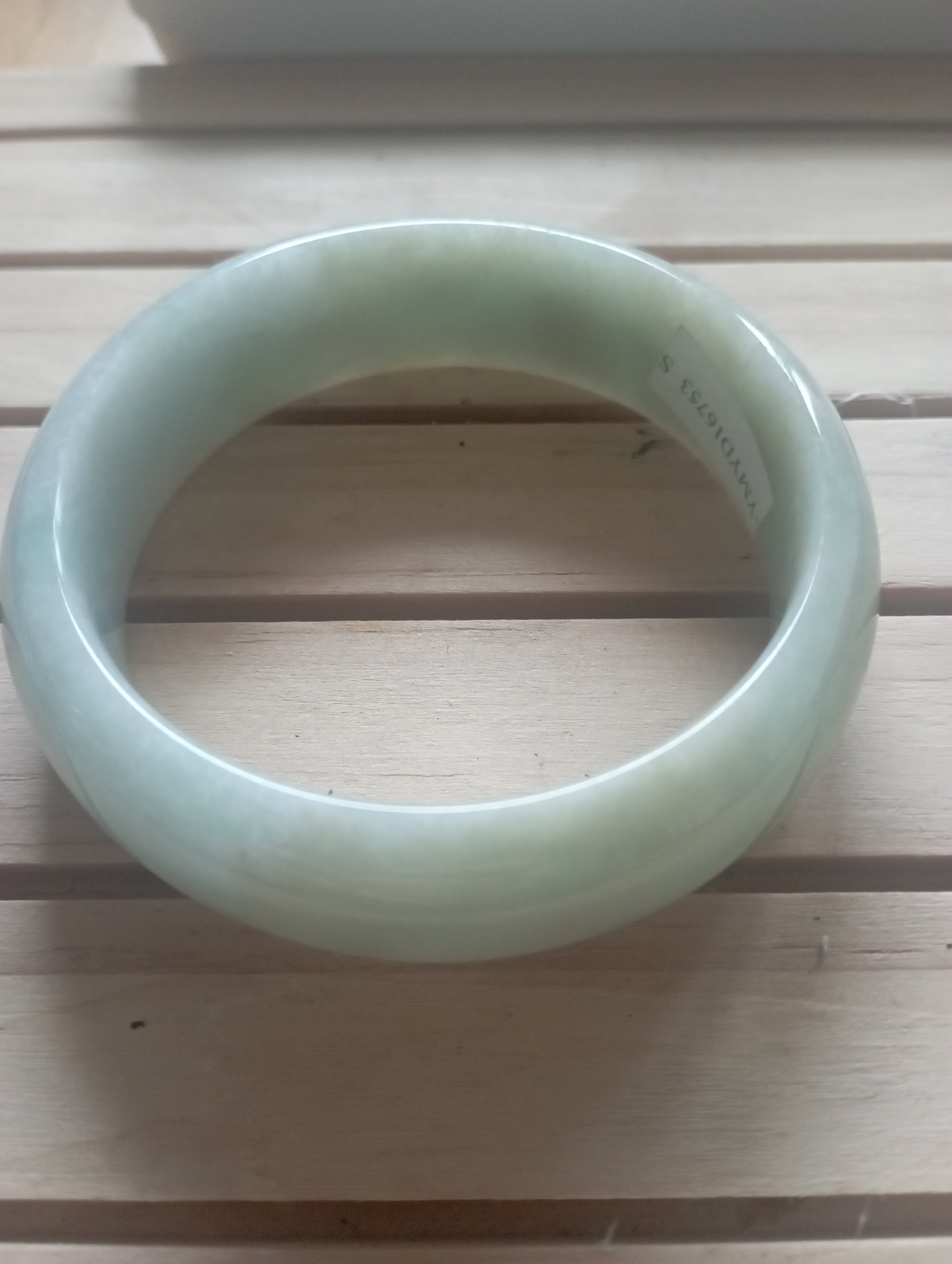 Very modern looking wide bangle measures 59.3 X 18.3 X 9.1mm, weighs 79.5g, it is a lovely light green with yellow tones. No obvious cracks or lines. Definitely a great addition to your collection. Comes with a certificate of authenticity. £218