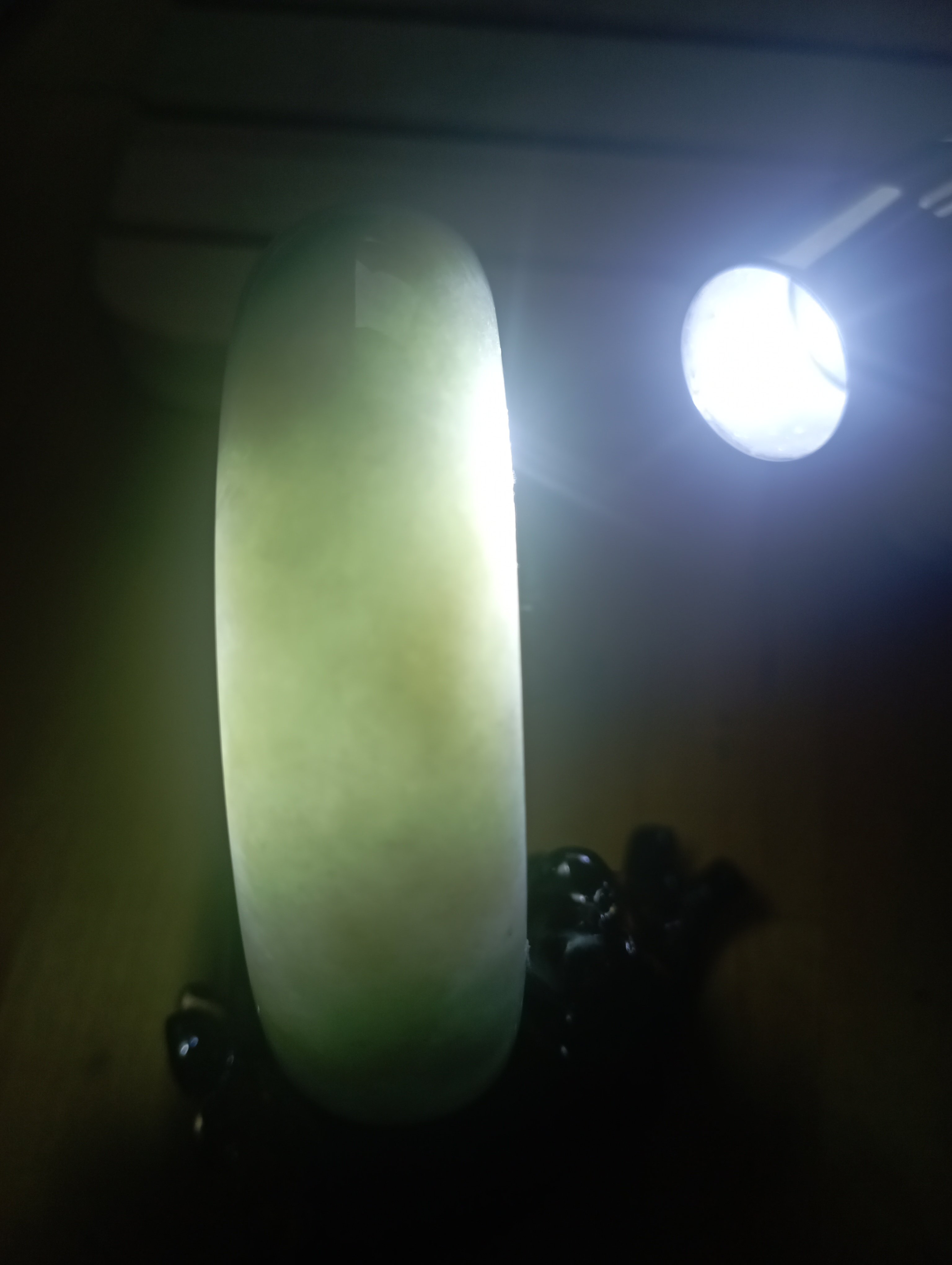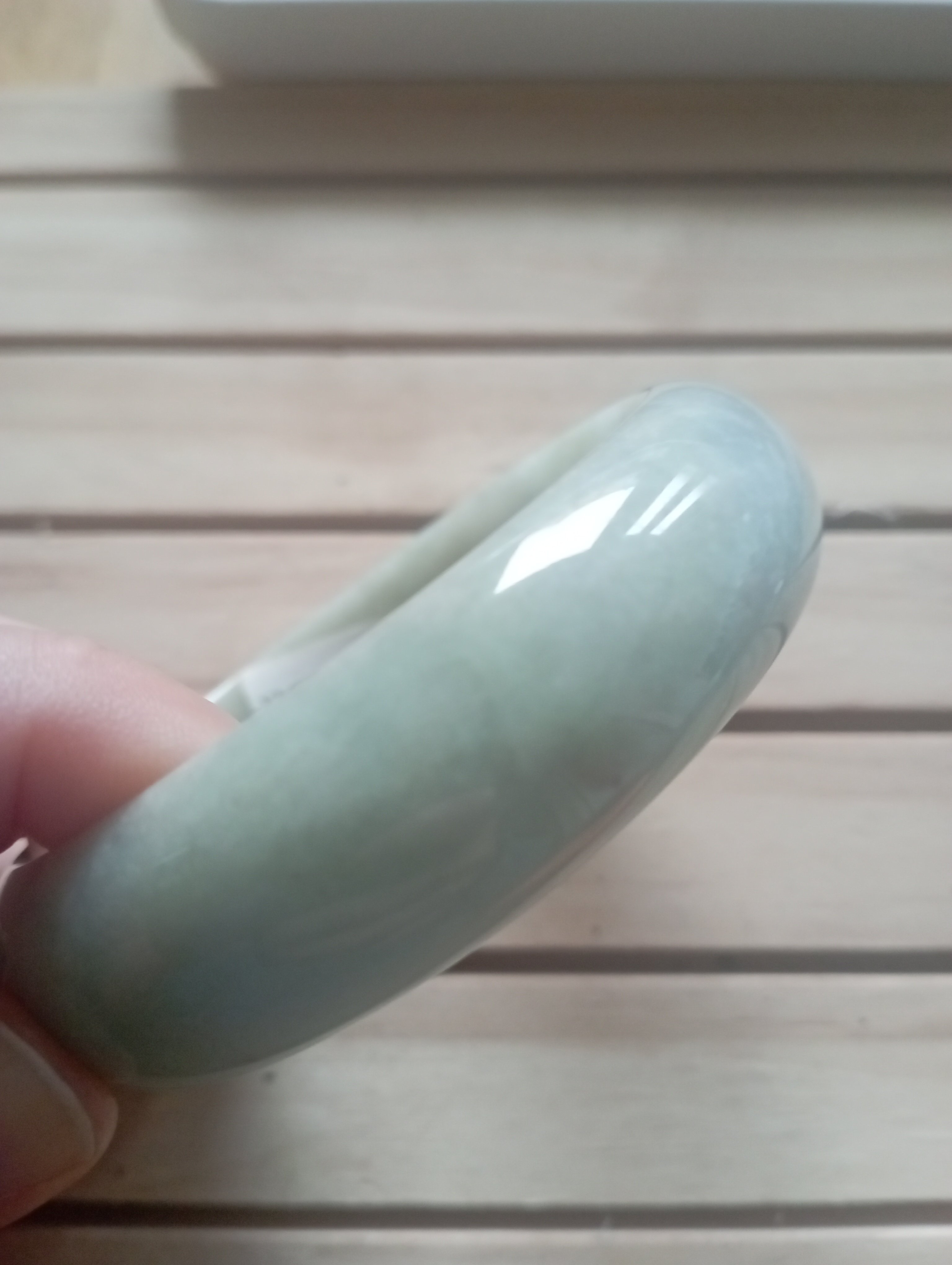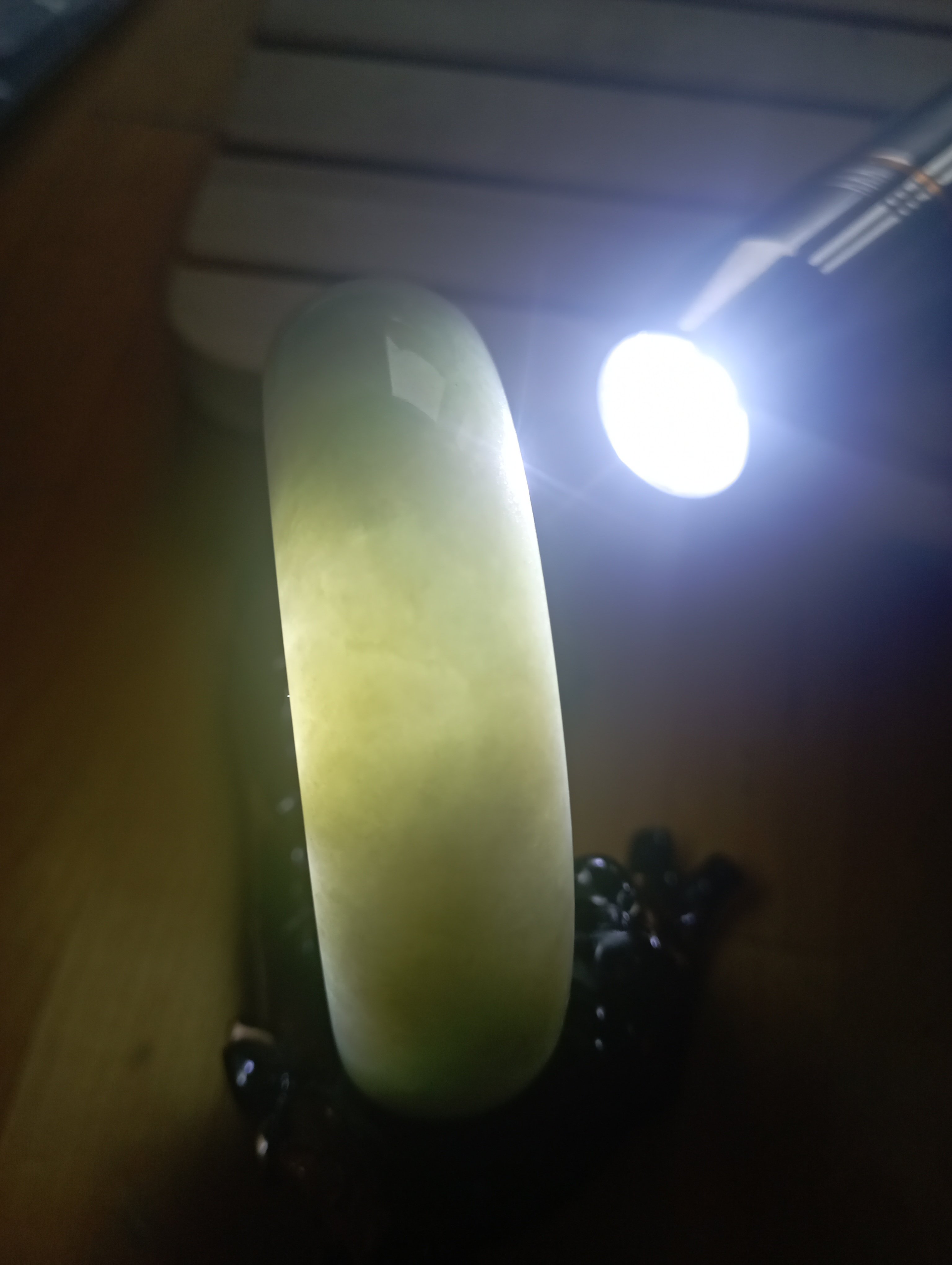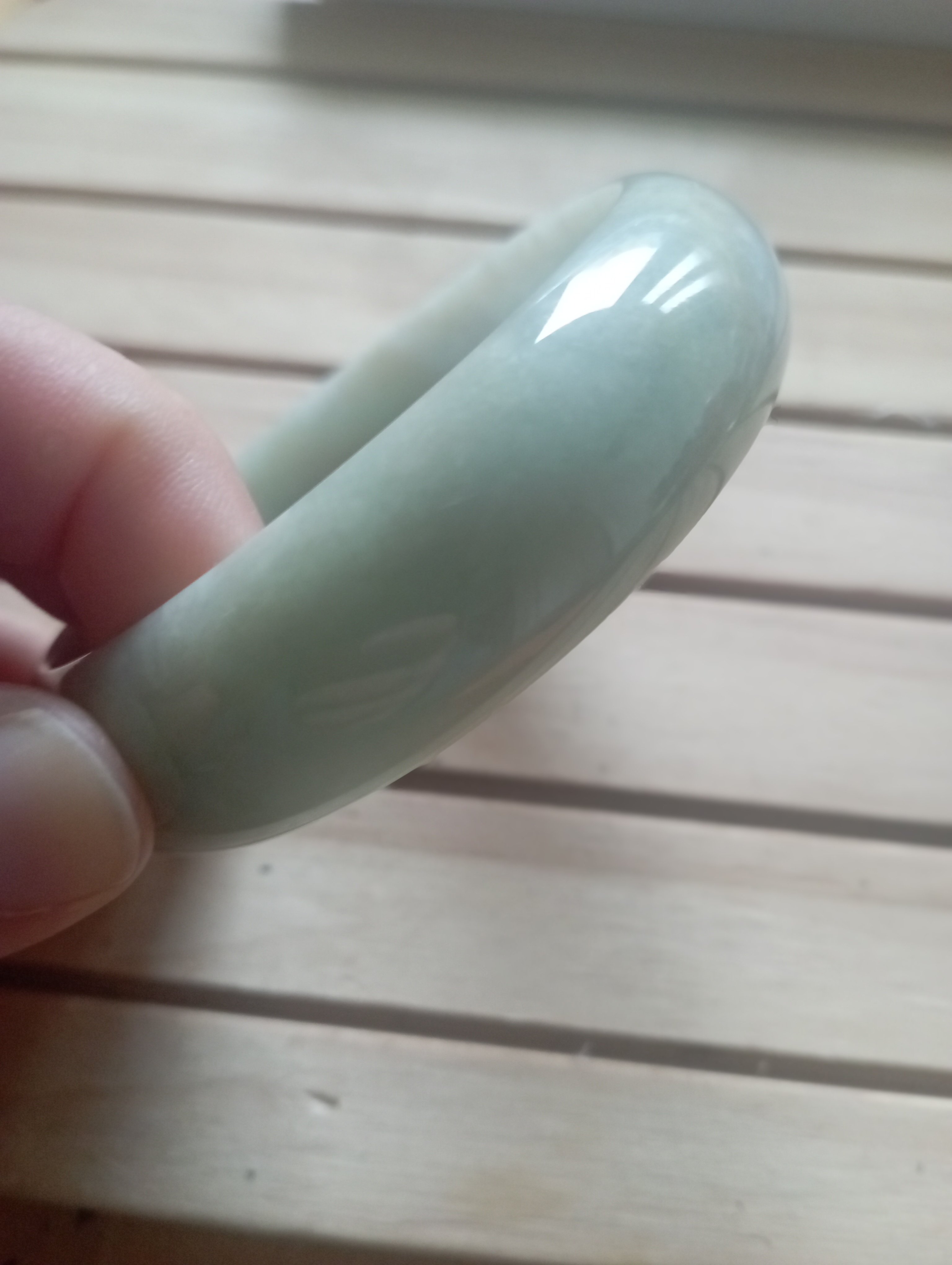 Very modern looking wide bangle measures 59.3 X 18.3 X 9.1mm, weighs 79.5g, it is a lovely light green with yellow tones. No obvious cracks or lines. Definitely a great addition to your collection. Comes with a certificate of authenticity. £218