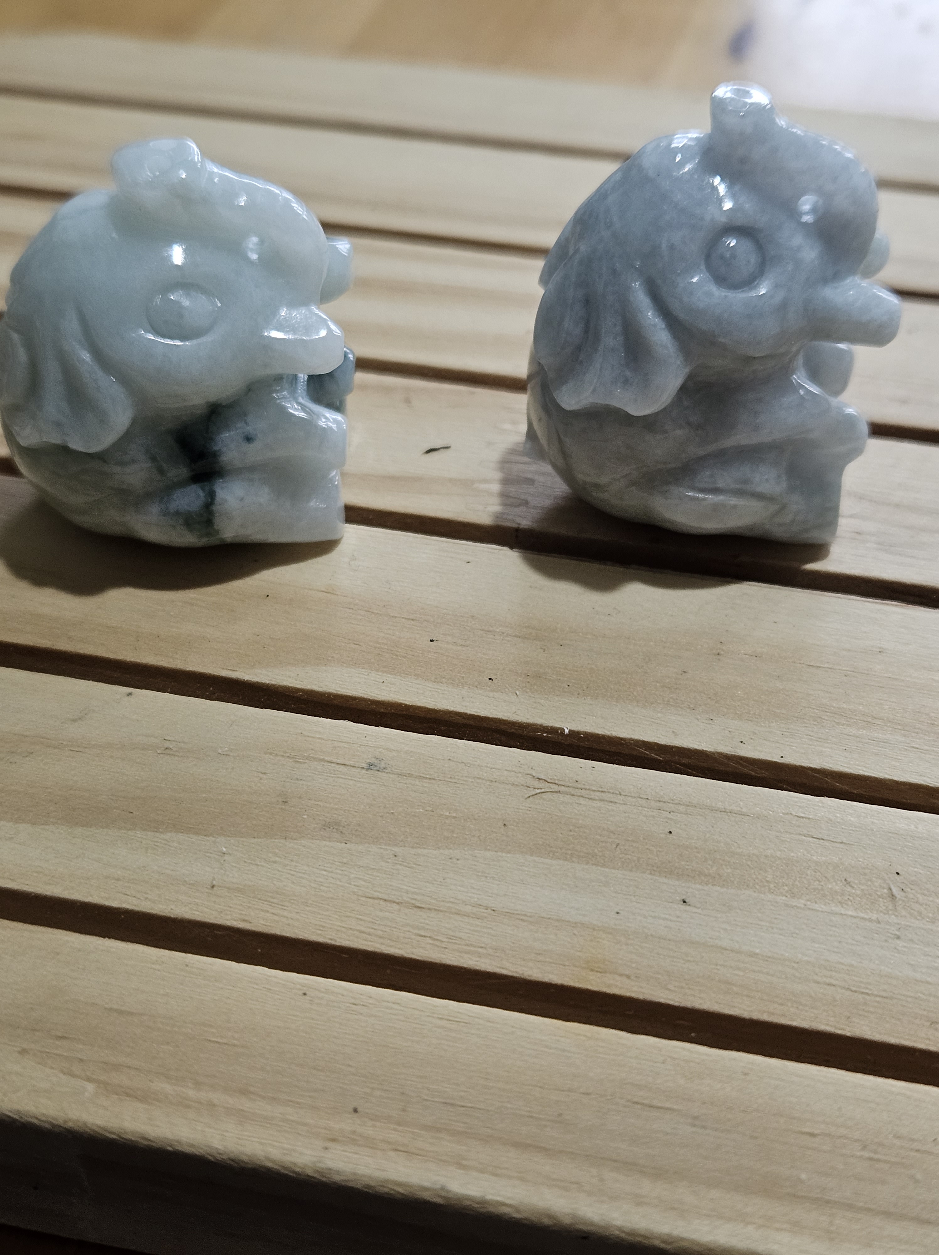 Elephants represent many things: they are symbols of luck and prosperity, but they are also powerful beings that use their mighty strength to remove obstacles and negative forces. They also represent wisdom, long life, memory and vitality. The elephants suck up water( represent wealth) and spray them. Hence, having them in your home will help to attract wealth and good luck. The one on the left with blooms measure 36.6 x 28 x 34.4mm and the purple one on the right is 41.8 x 29.4 x 33mm. £30 each