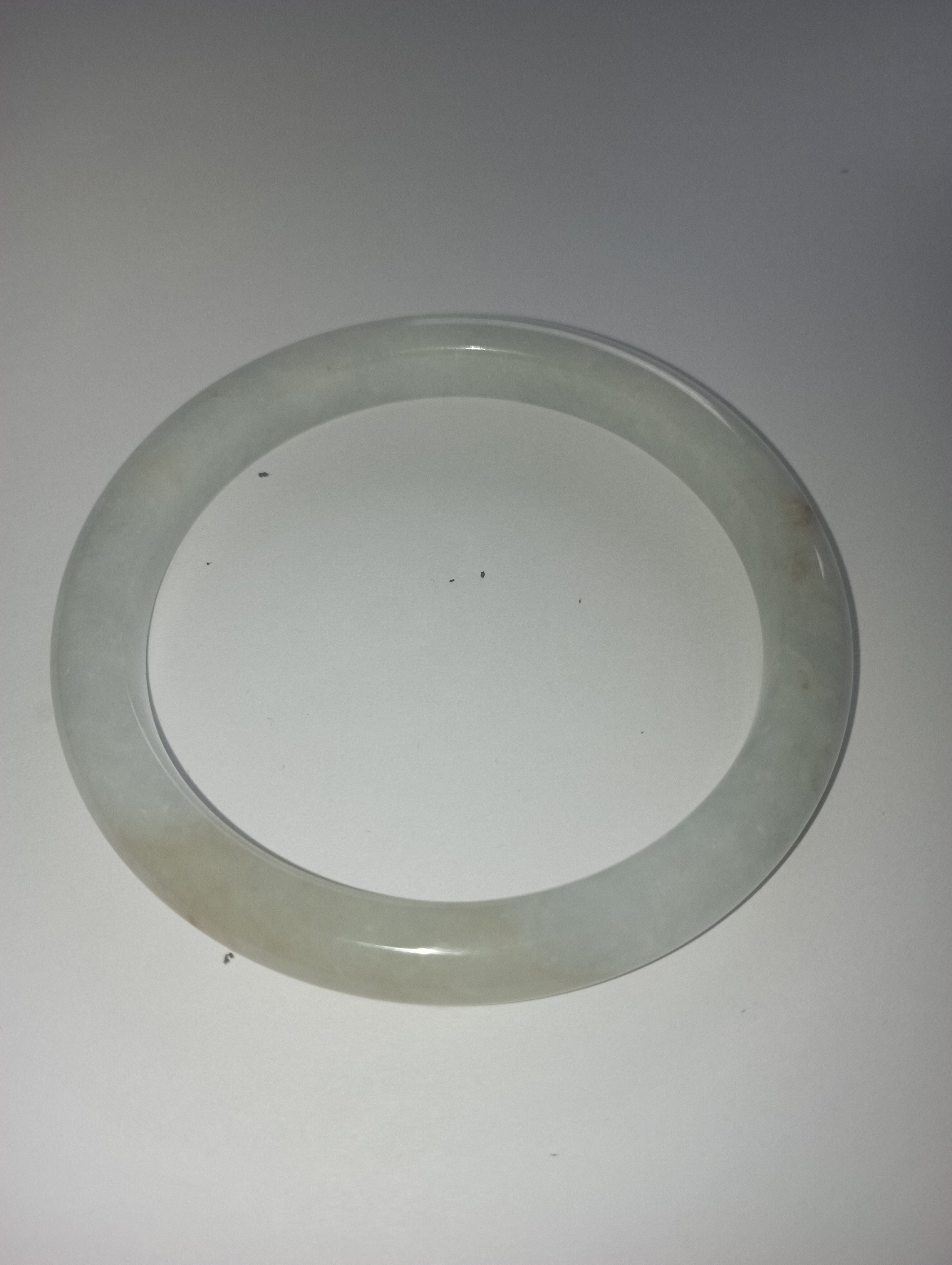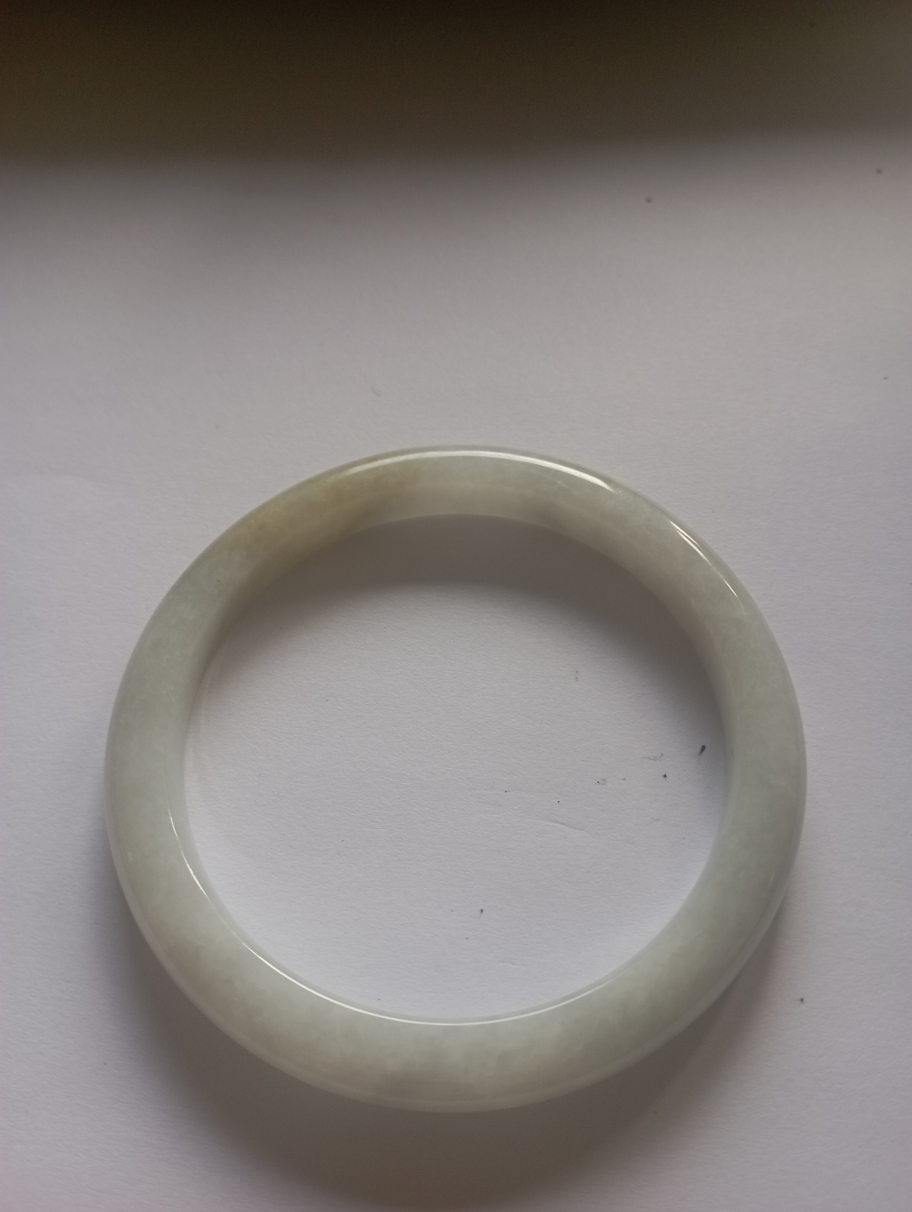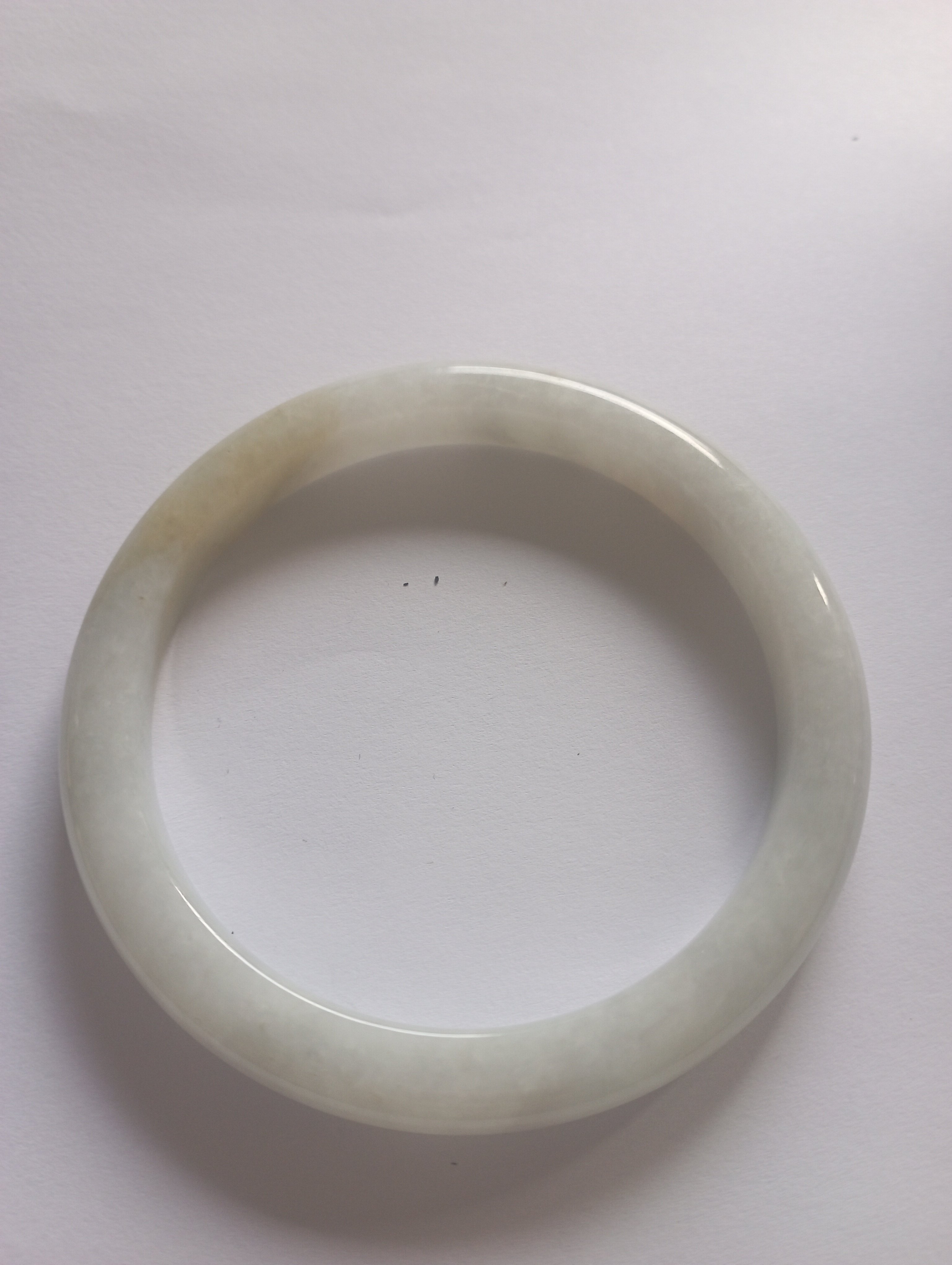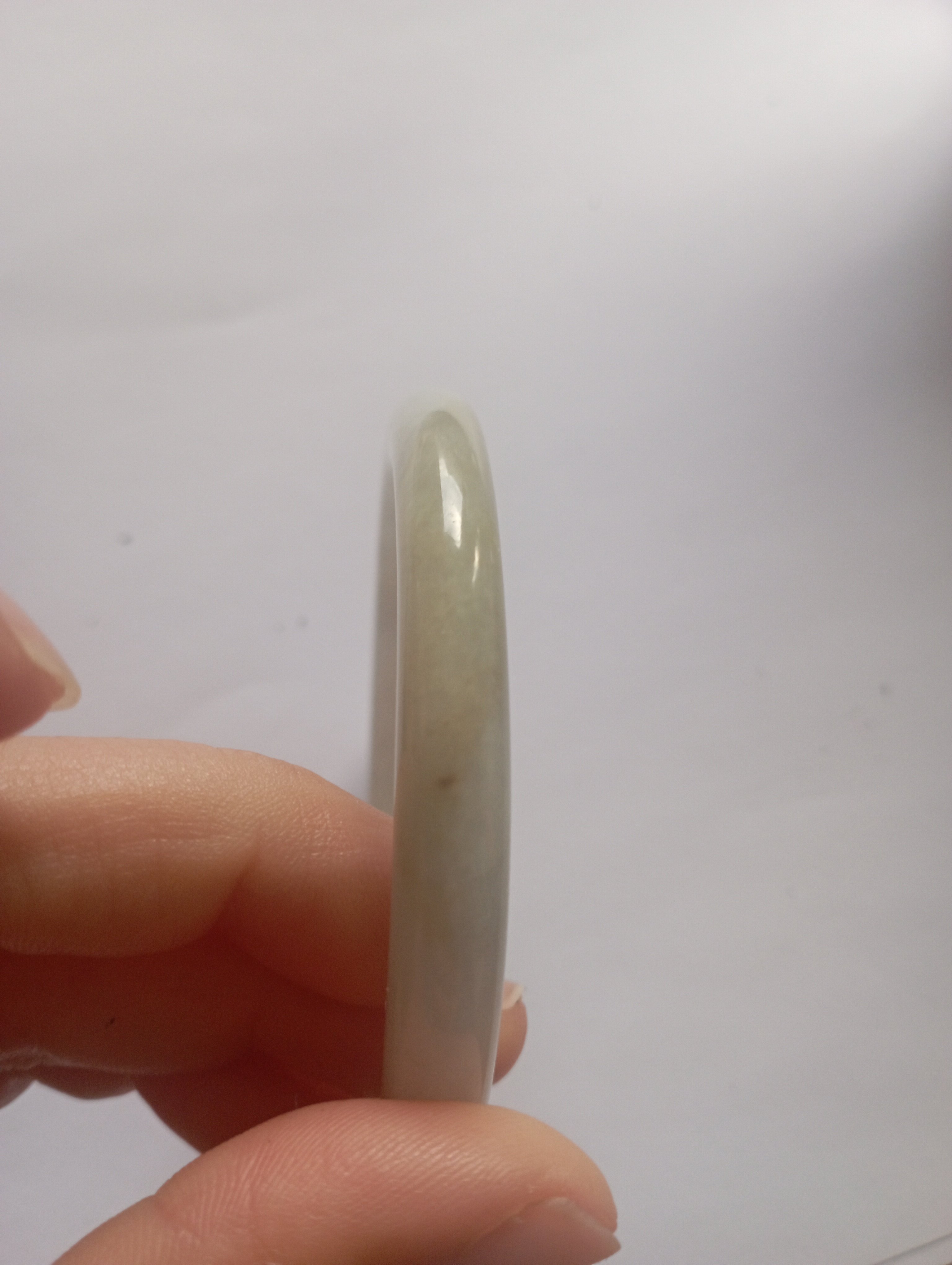 Slim bangle in a light colour with a patch of light green that measures 57.3 X 8.1 X 8.1mm, weighs 34.94g, comes with a certificate of authenticity £110