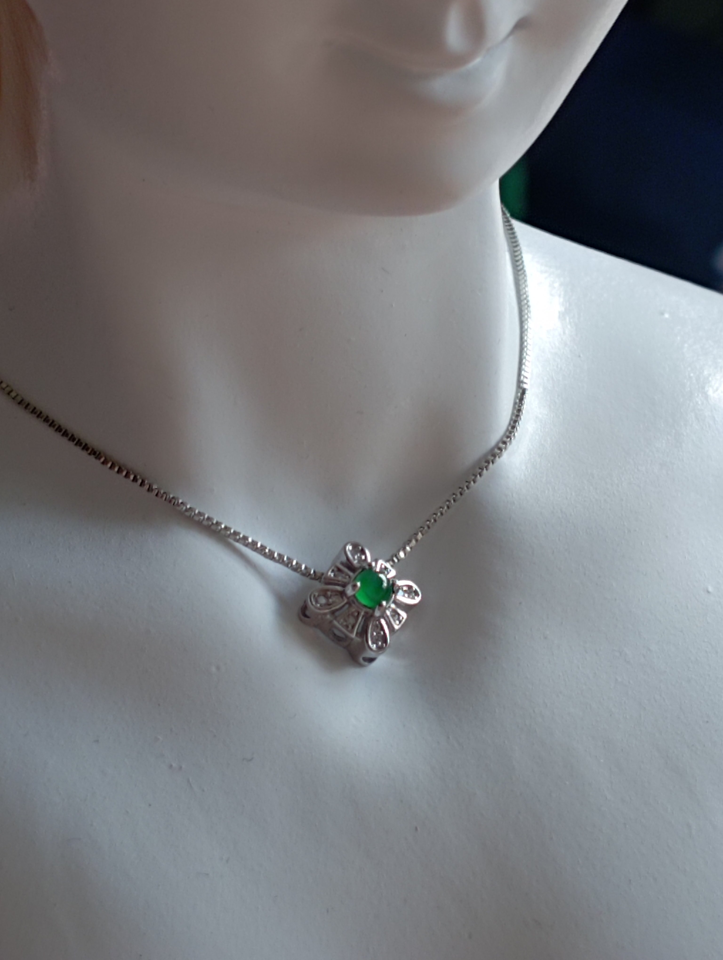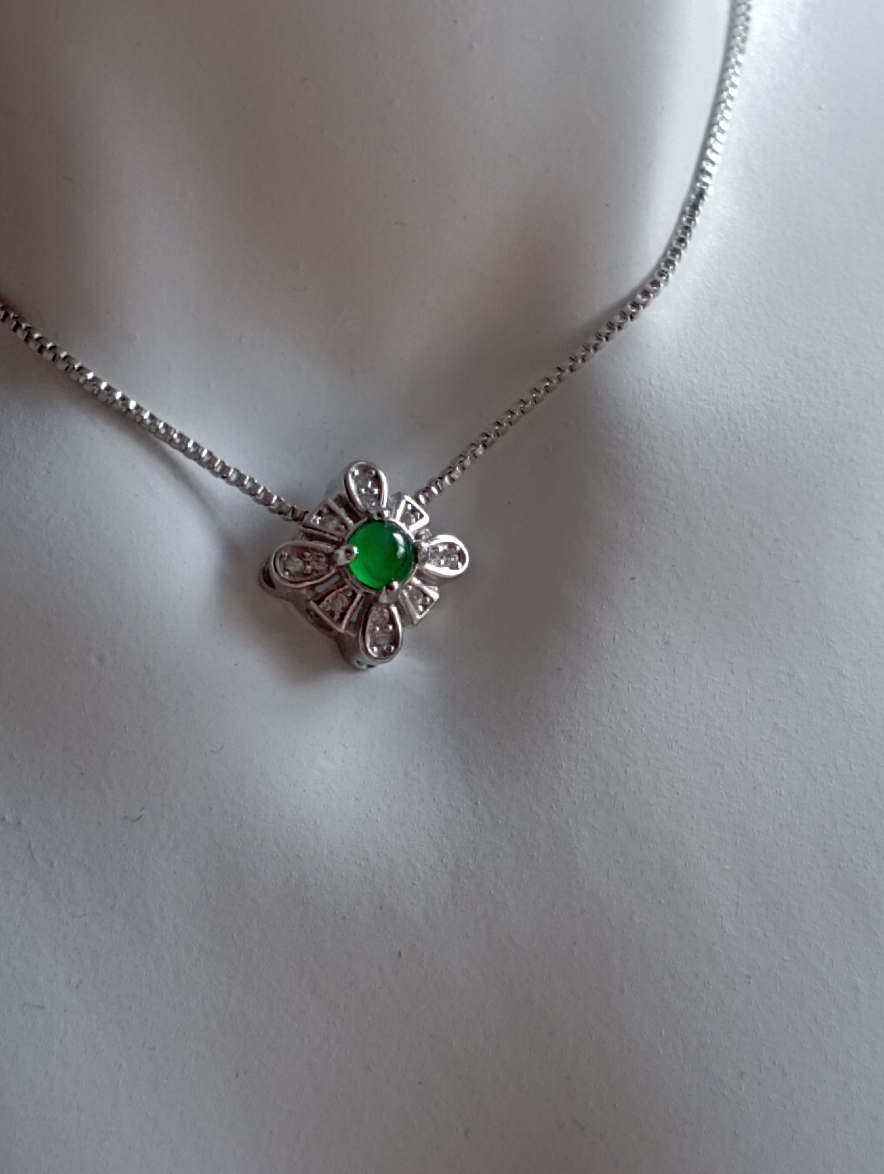 A very simple yet classy pendant with jadeite set in sterling silver. The pendant measures 9.6 X 9.6 X 6.5mm, the stone itself measures 4mm. Comes with a plated silver chain £30