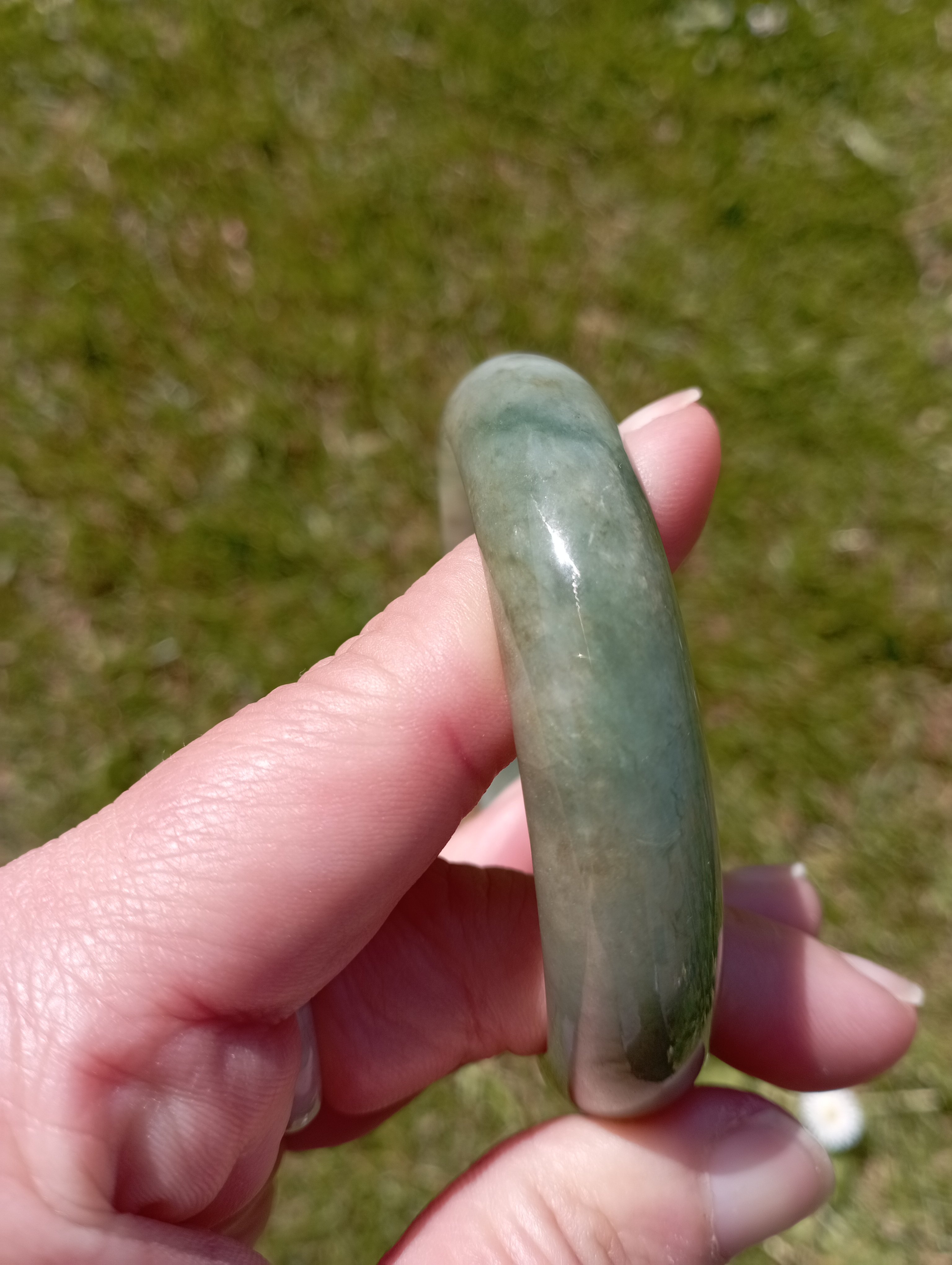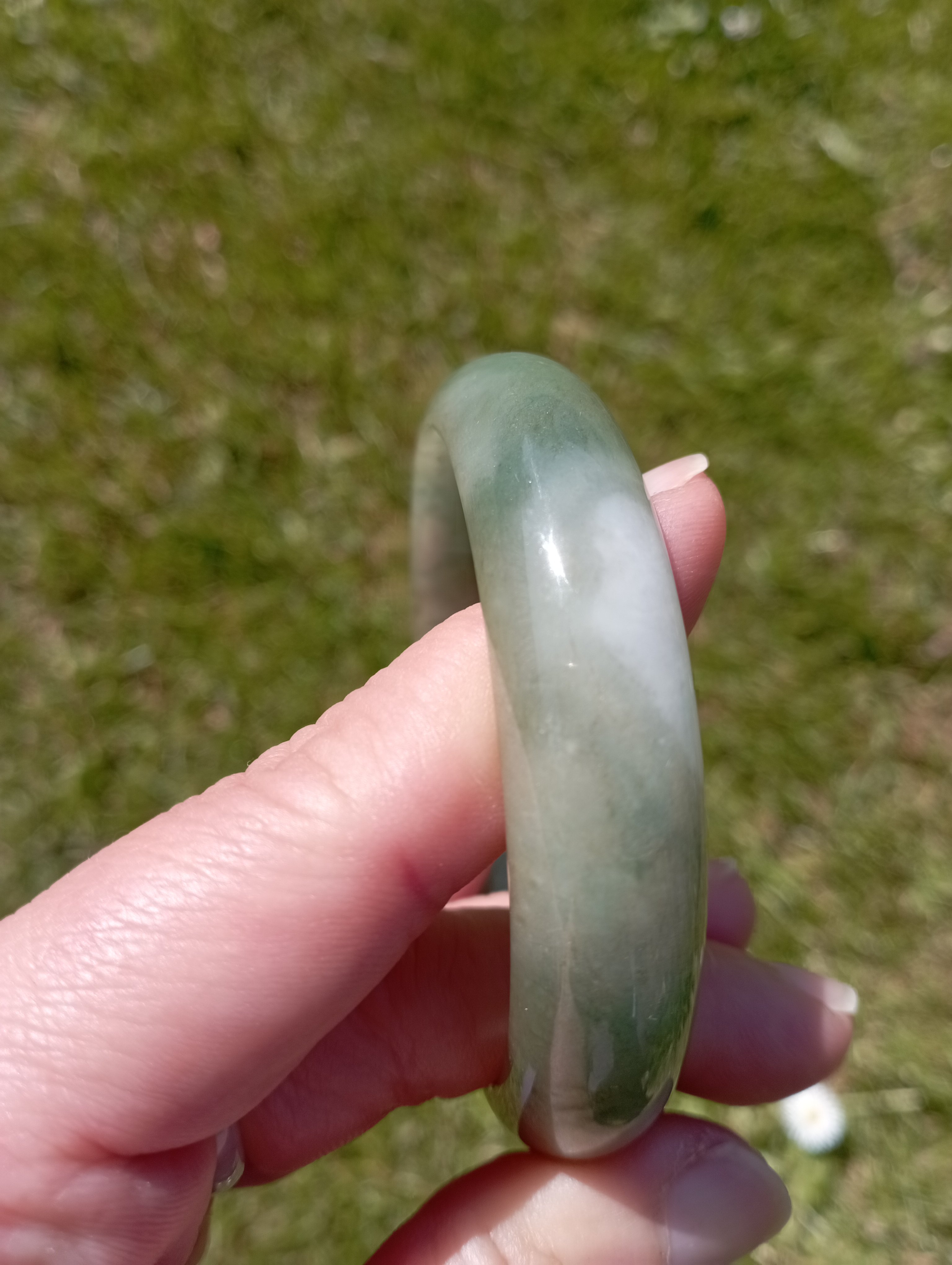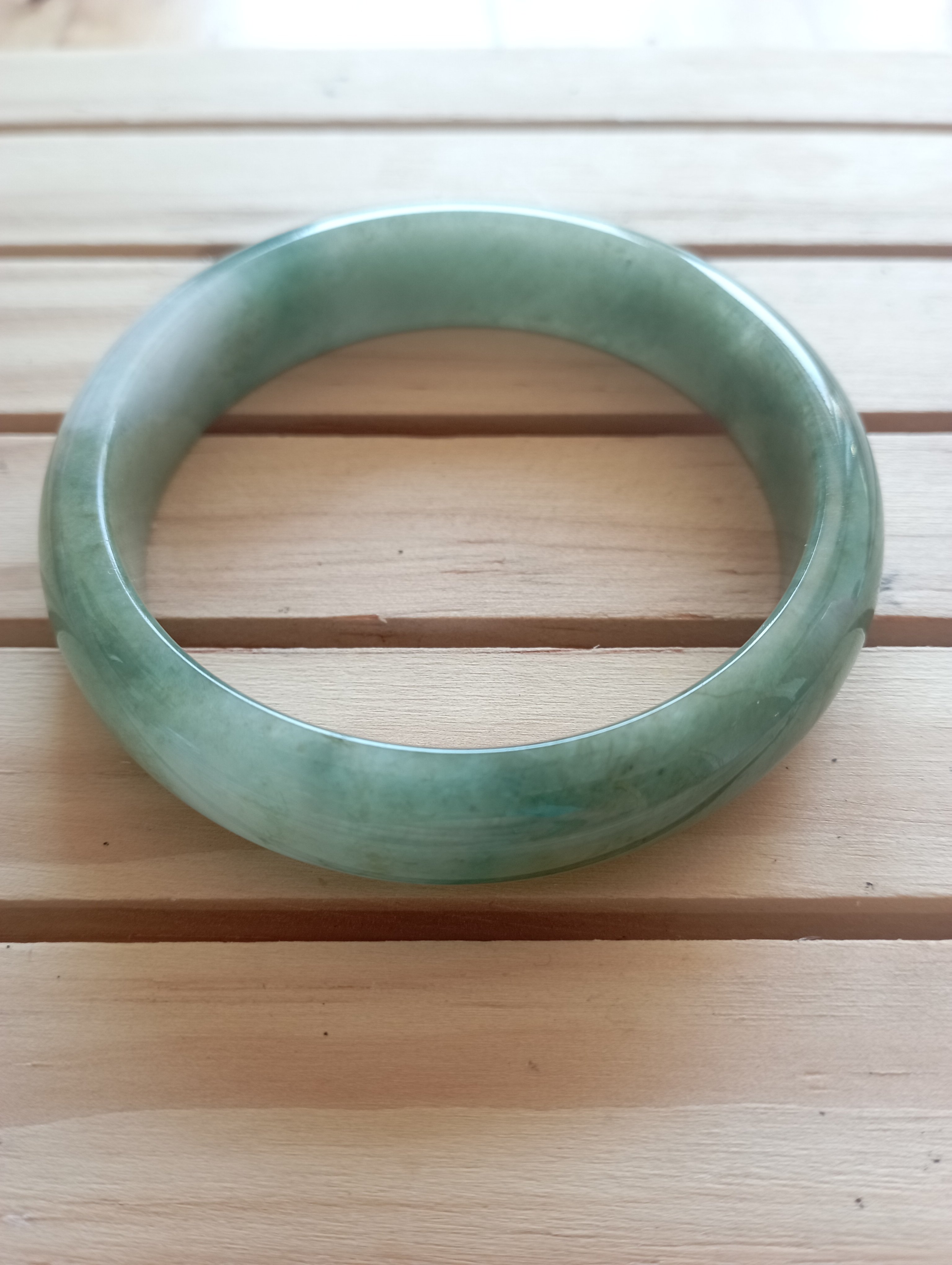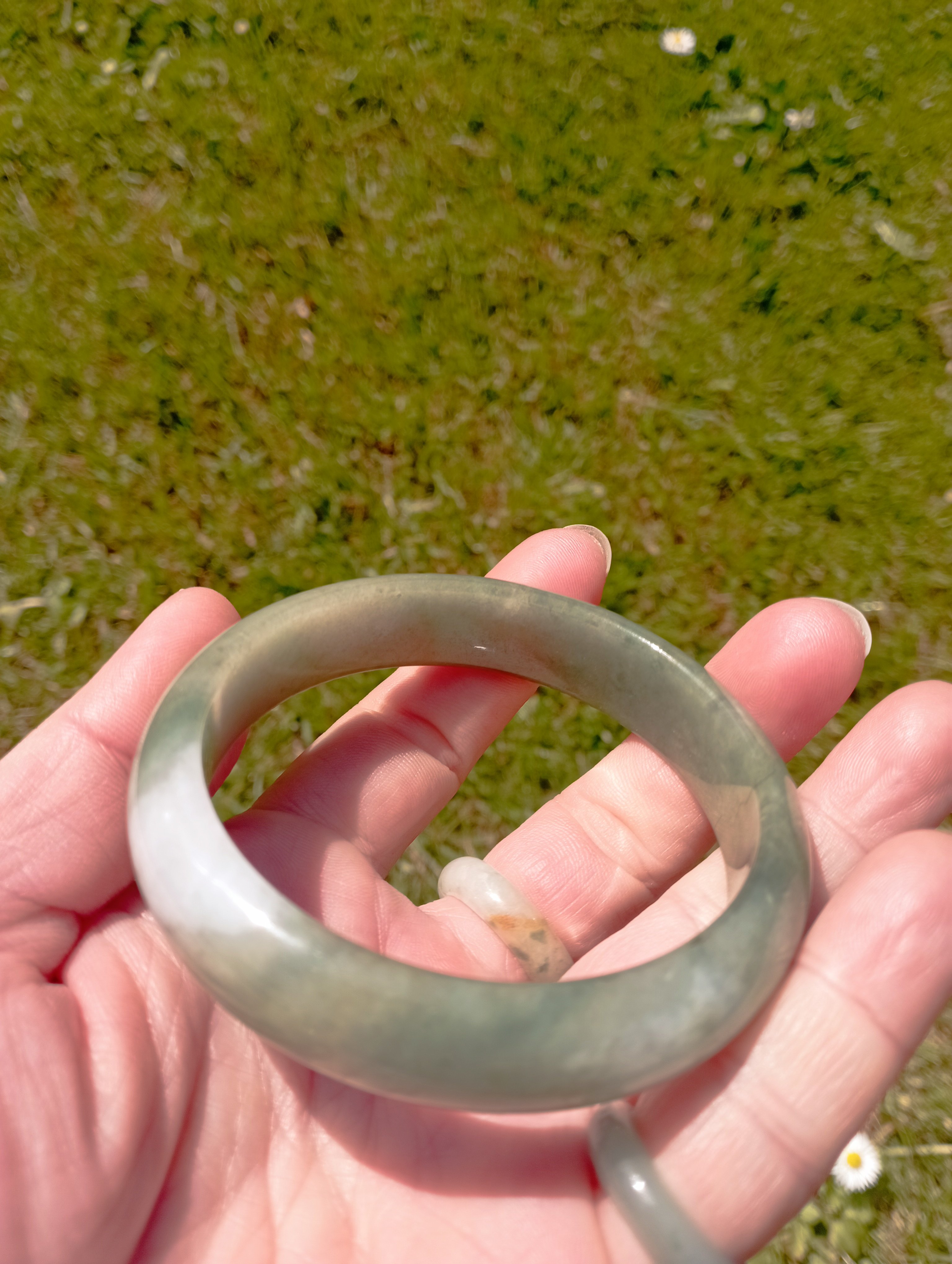 Lovely light green jadeite bangle measures 57.1 X 13.6 X 7.6mm, weighs 51.22g, it is quite icy and has such a lovely colour. Comes with a certificate of authenticity £218