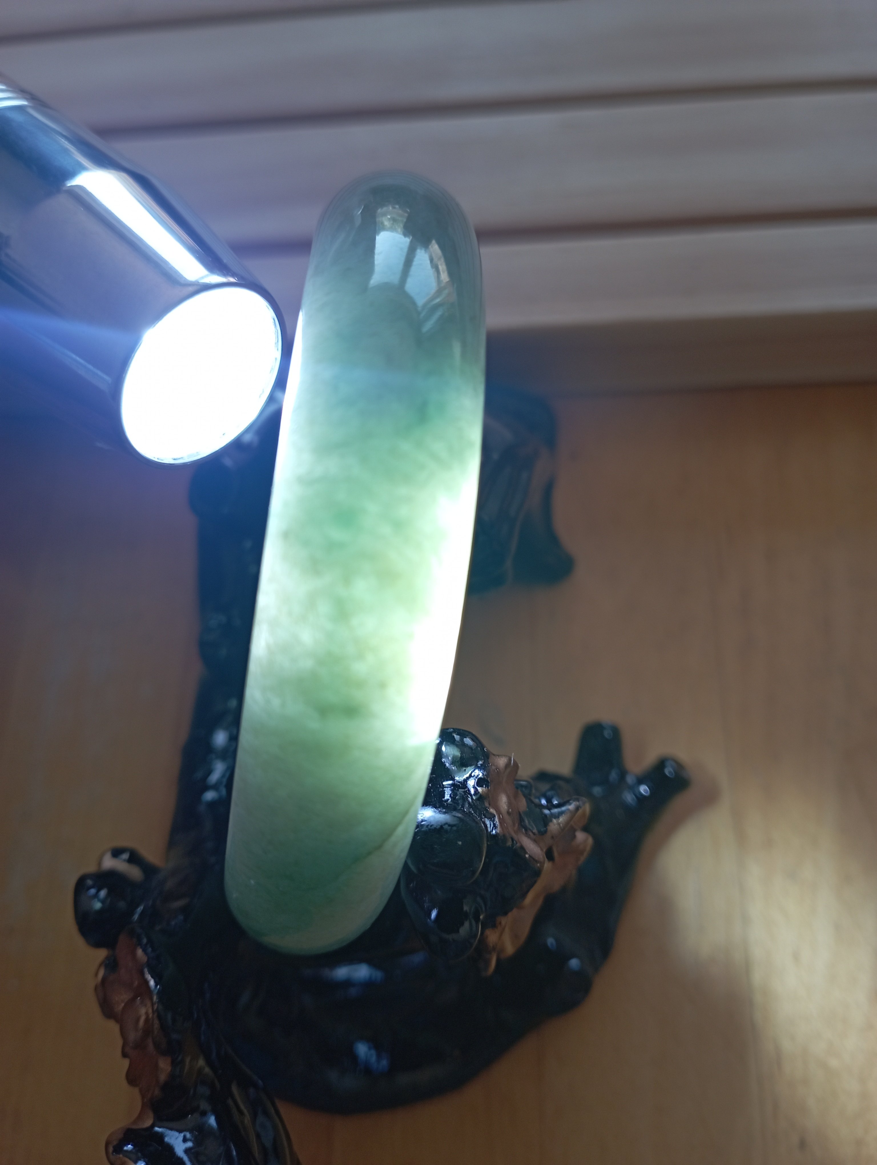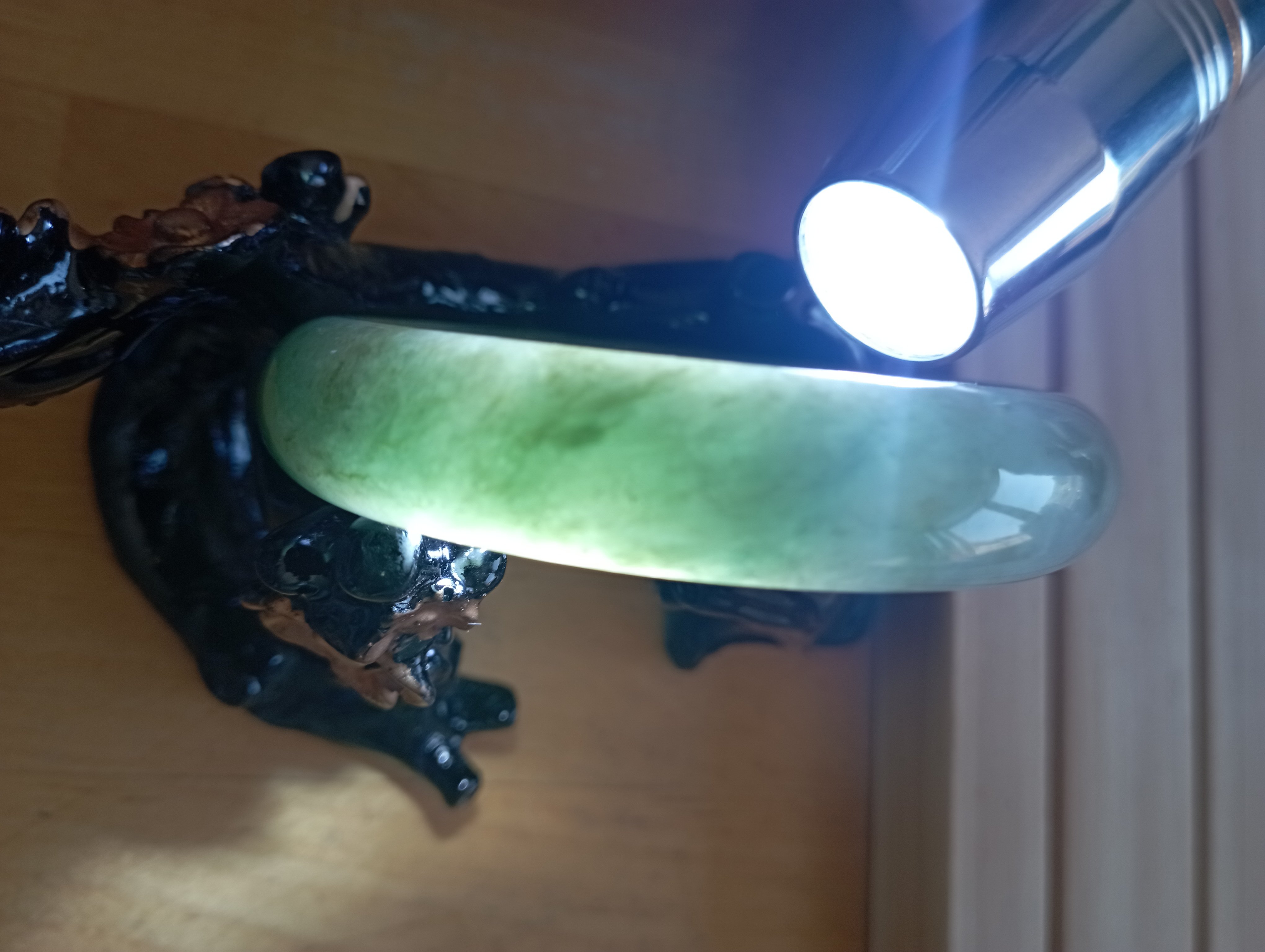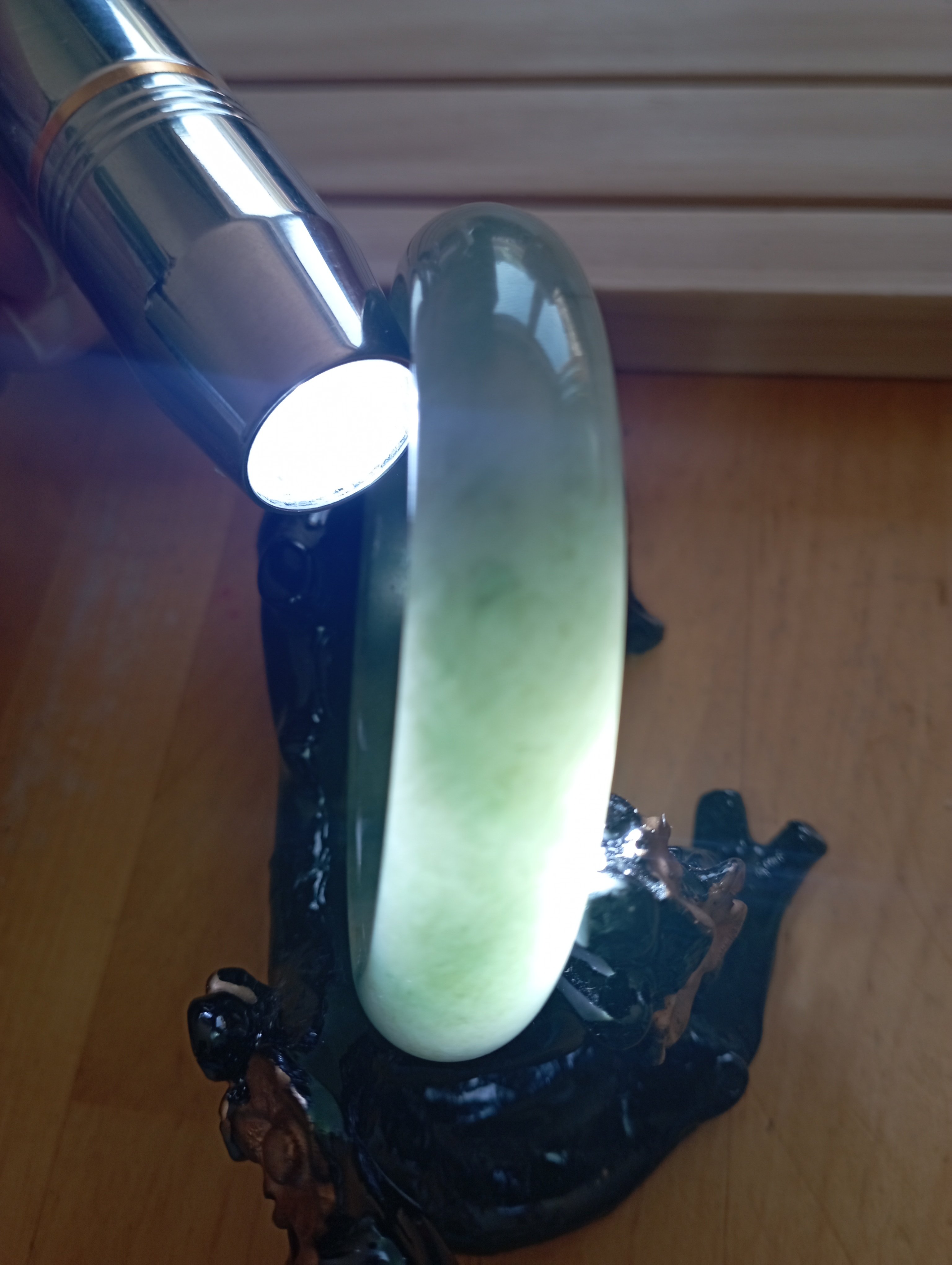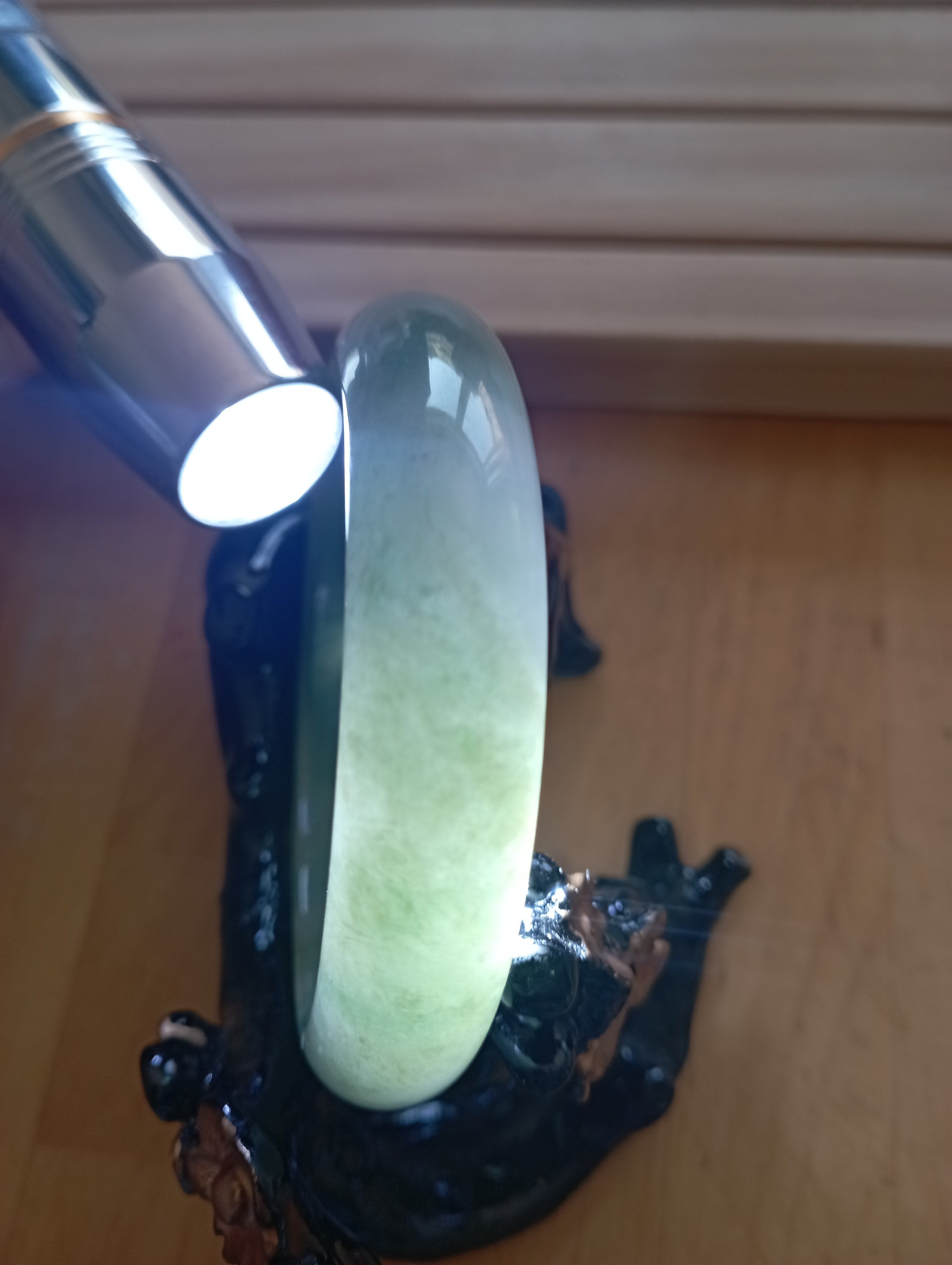 Lovely light green jadeite bangle measures 57.1 X 13.6 X 7.6mm, weighs 51.22g, it is quite icy and has such a lovely colour. Comes with a certificate of authenticity £218