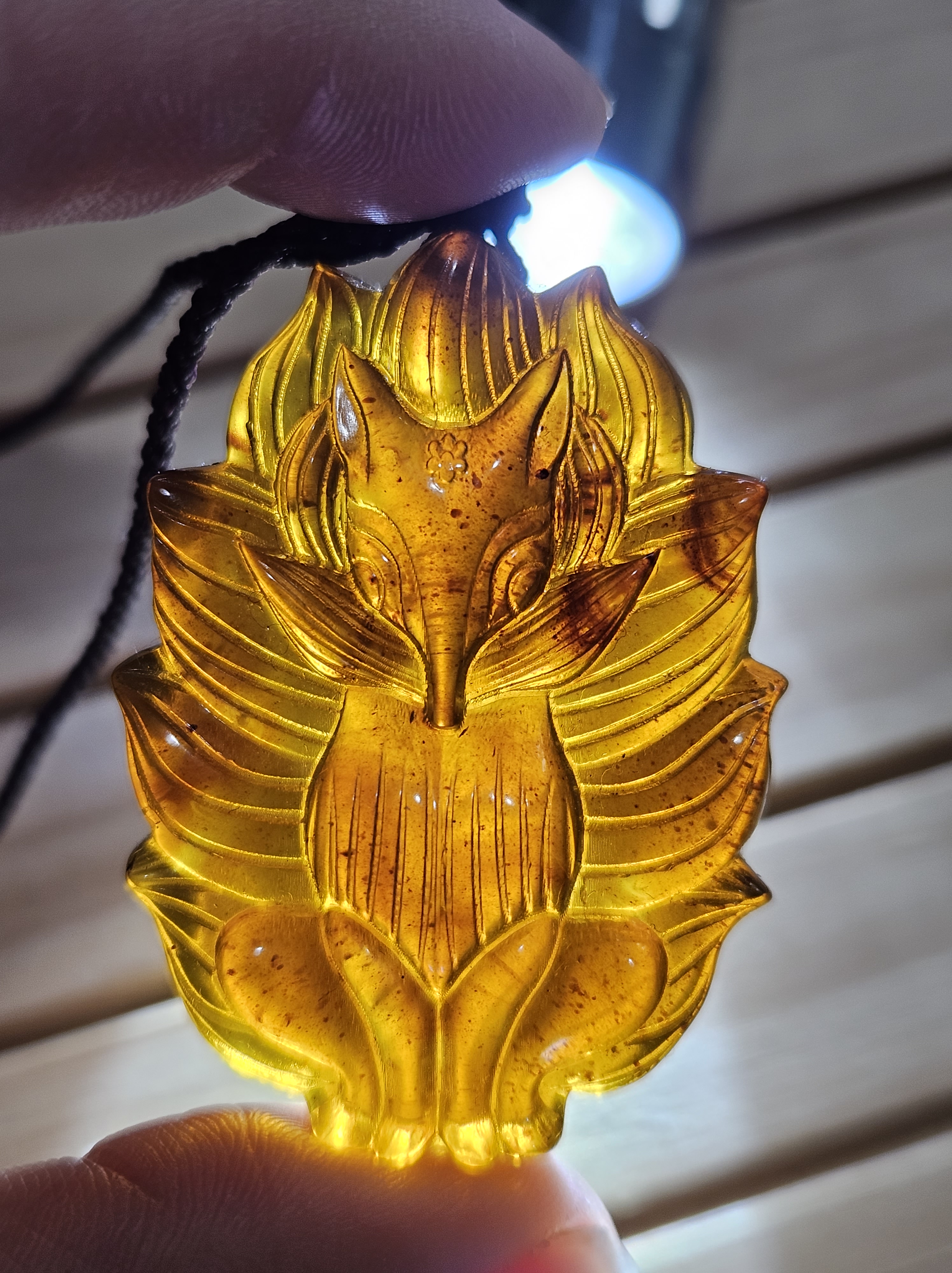 This lovely amber weighs 11.28g, measures 46.8 x 33.4 x 11.4mm, comes with a certificate of authenticity. It is beautifully carved and is a gorgeous colour. £ 168