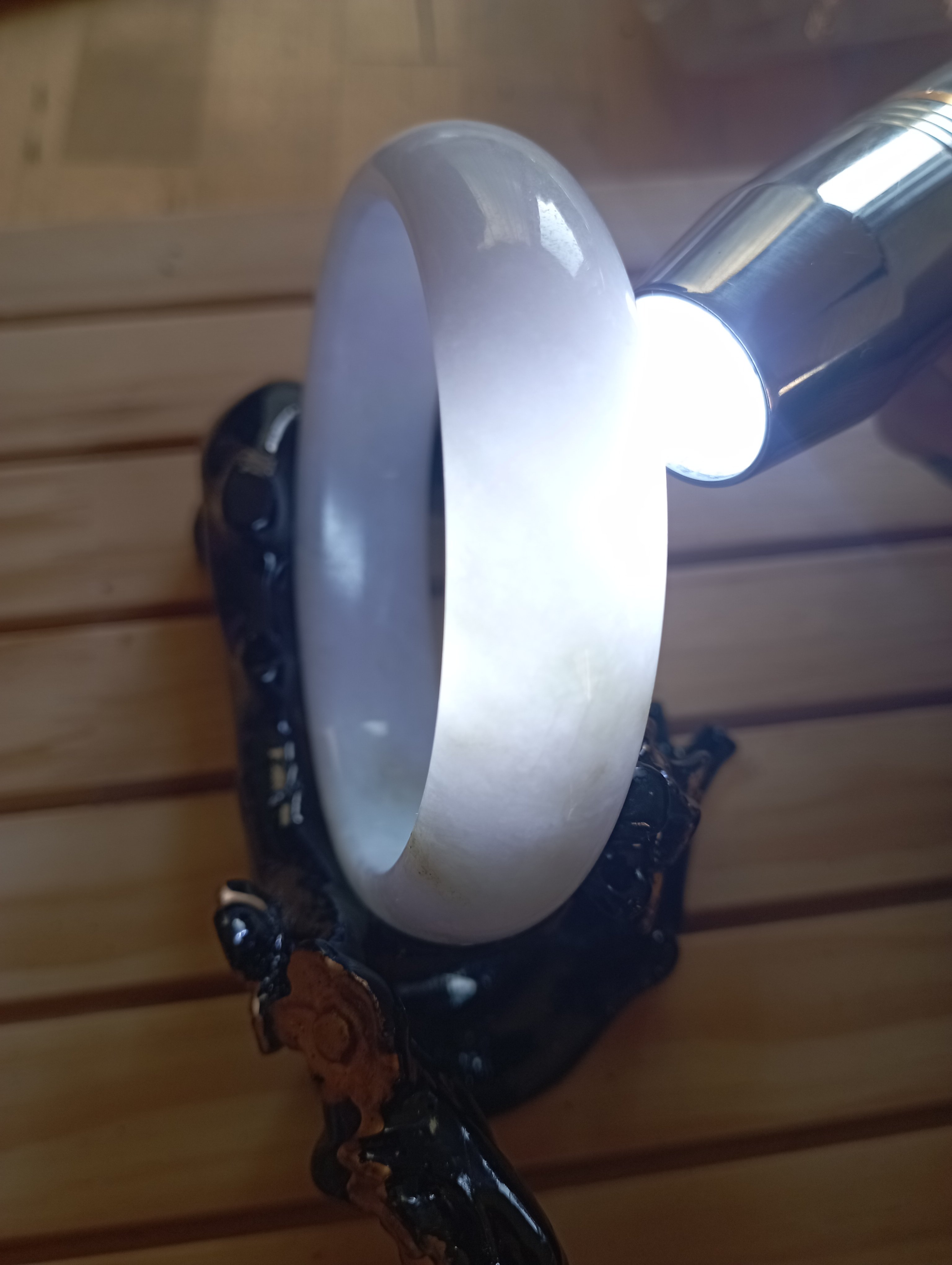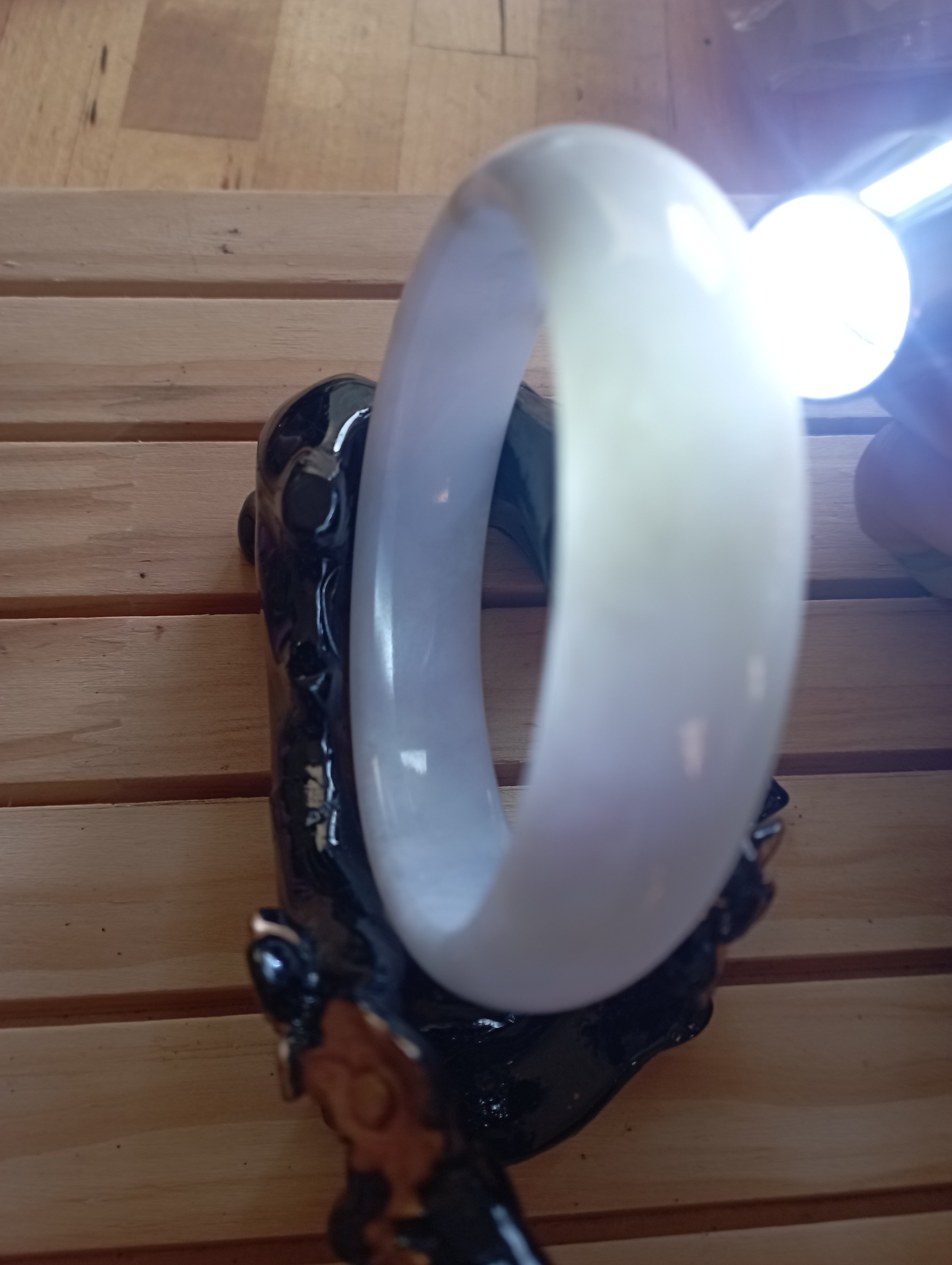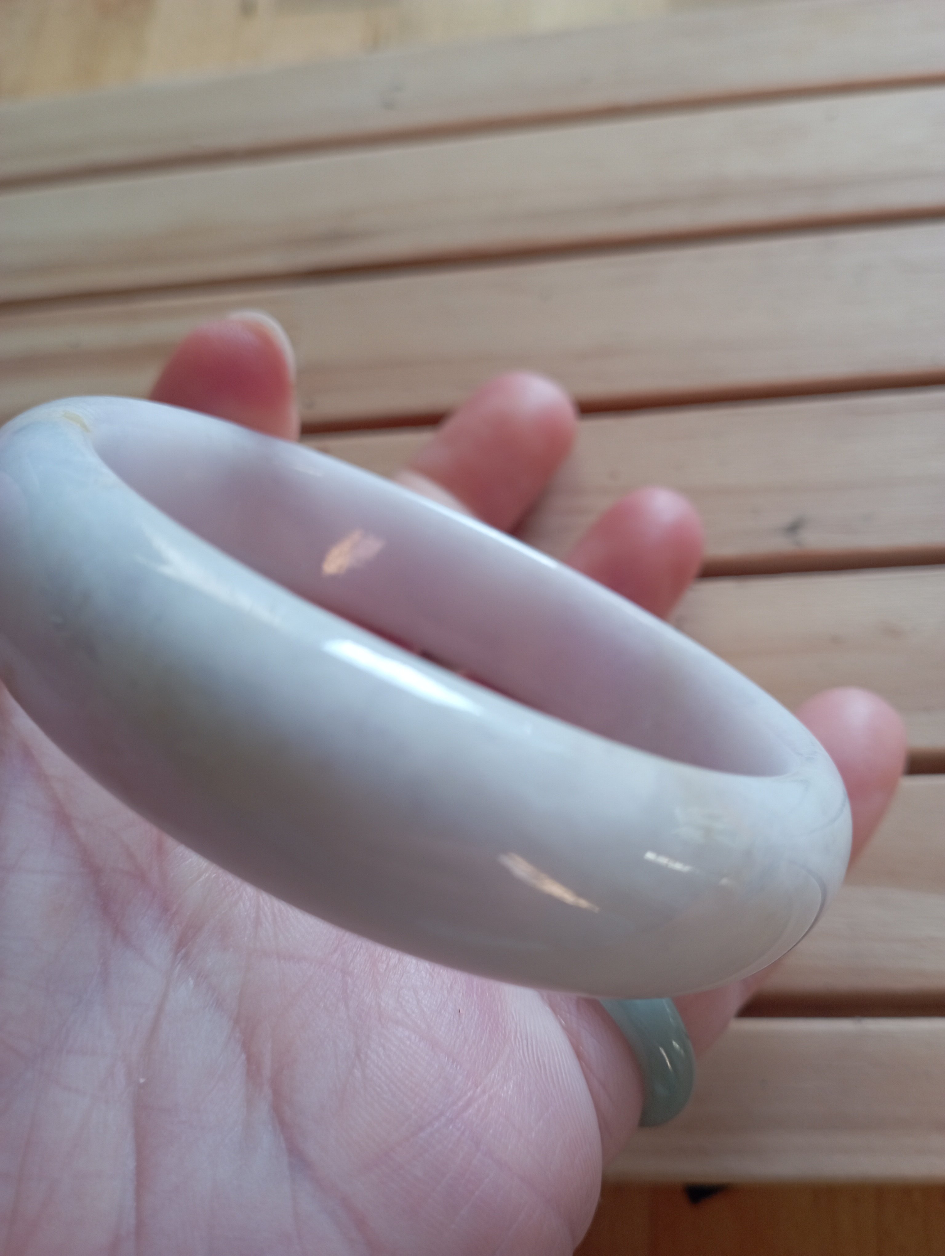 Gorgeous wide bangle in a lovely light purple colour with yellow on one section. Remember purple is precious and yellow for wealth?? Measures 57.4 X 15.6 X 8, weighs 62.99g, comes with a certificate of authenticity £159