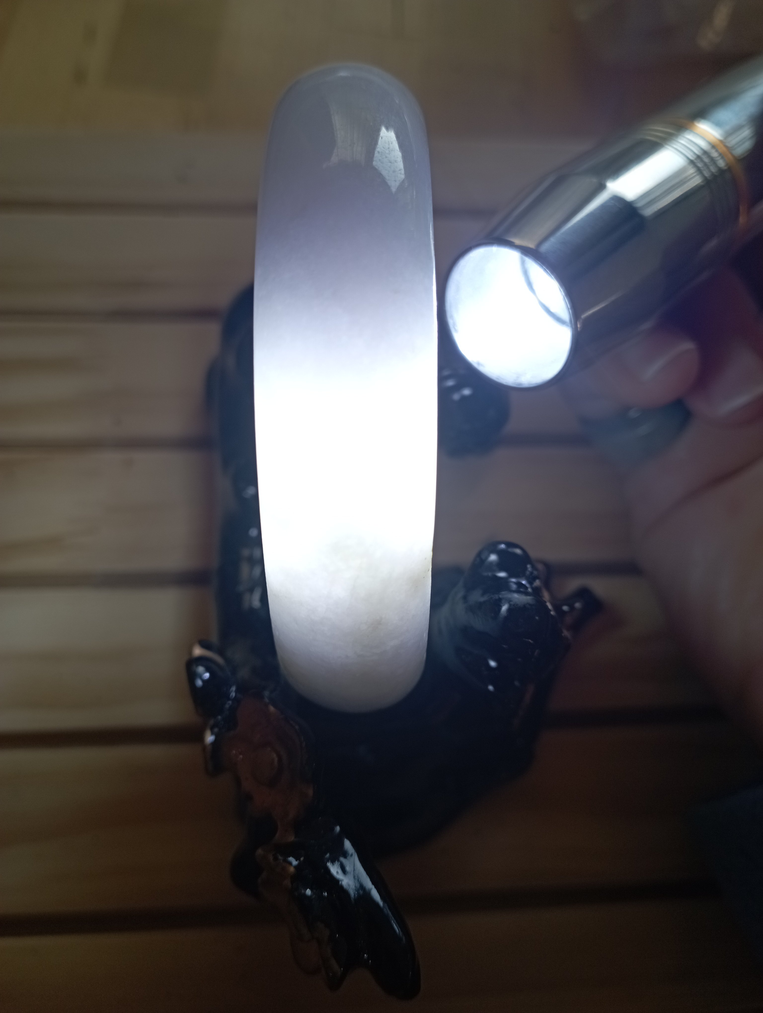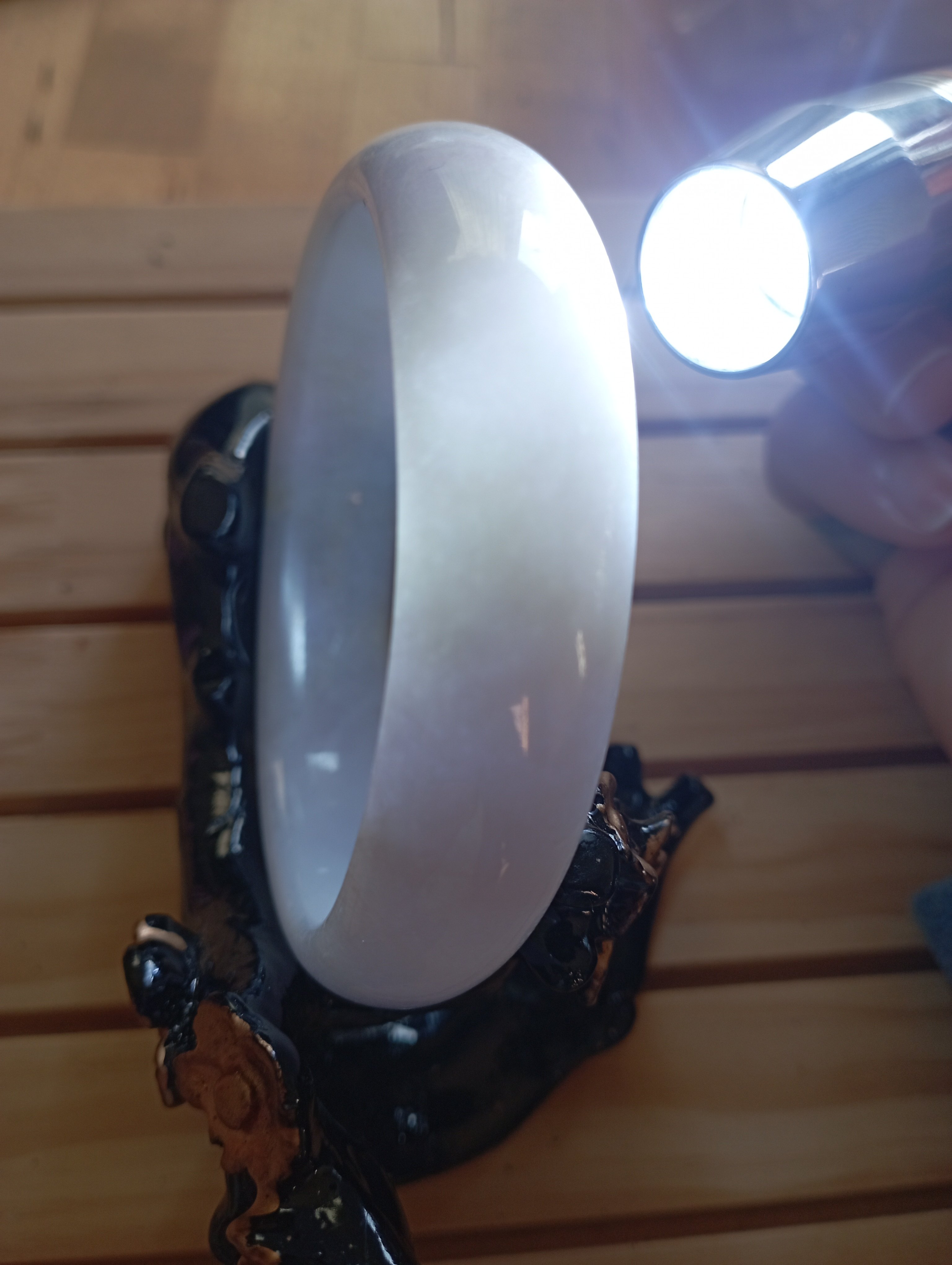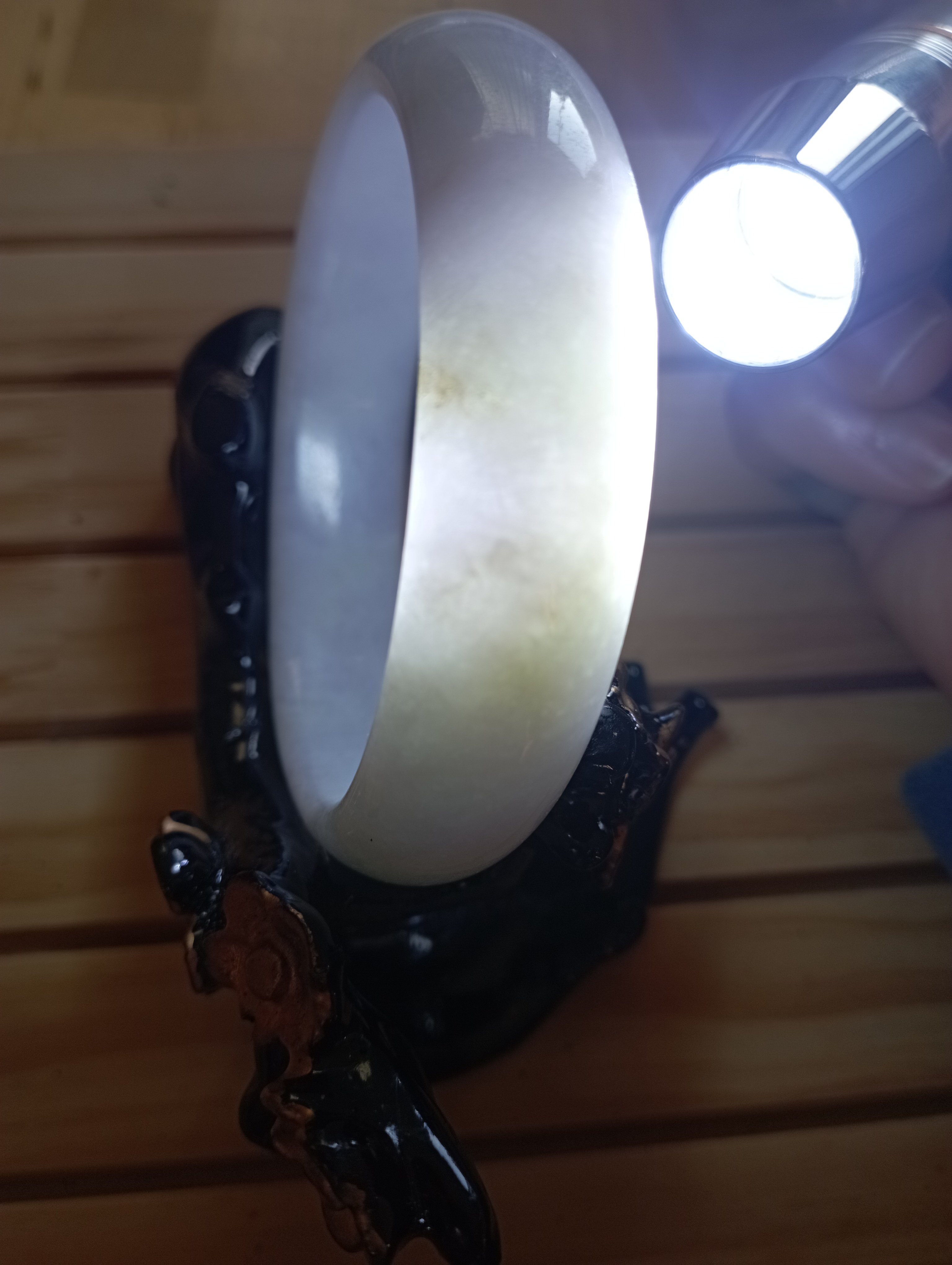 Gorgeous wide bangle in a lovely light purple colour with yellow on one section. Remember purple is precious and yellow for wealth?? Measures 57.4 X 15.6 X 8, weighs 62.99g, comes with a certificate of authenticity £159