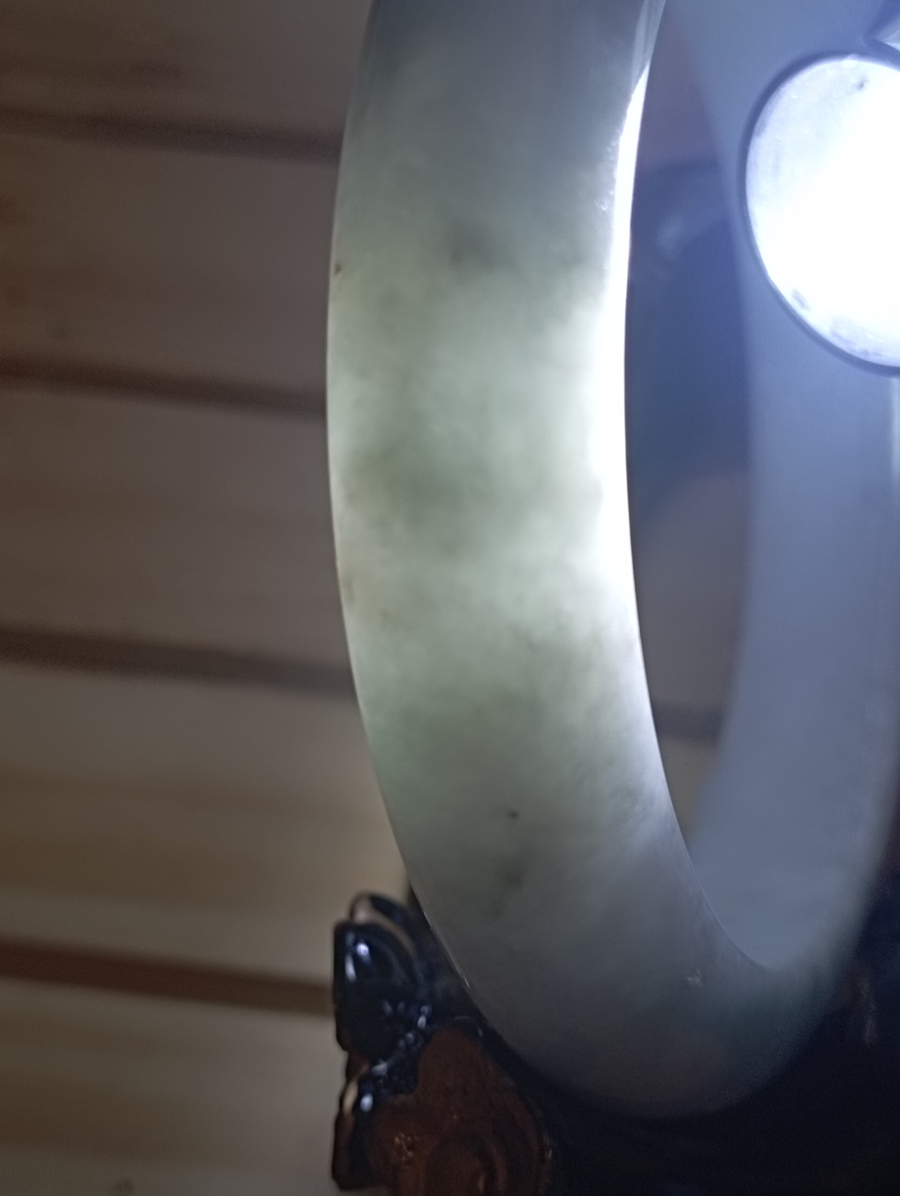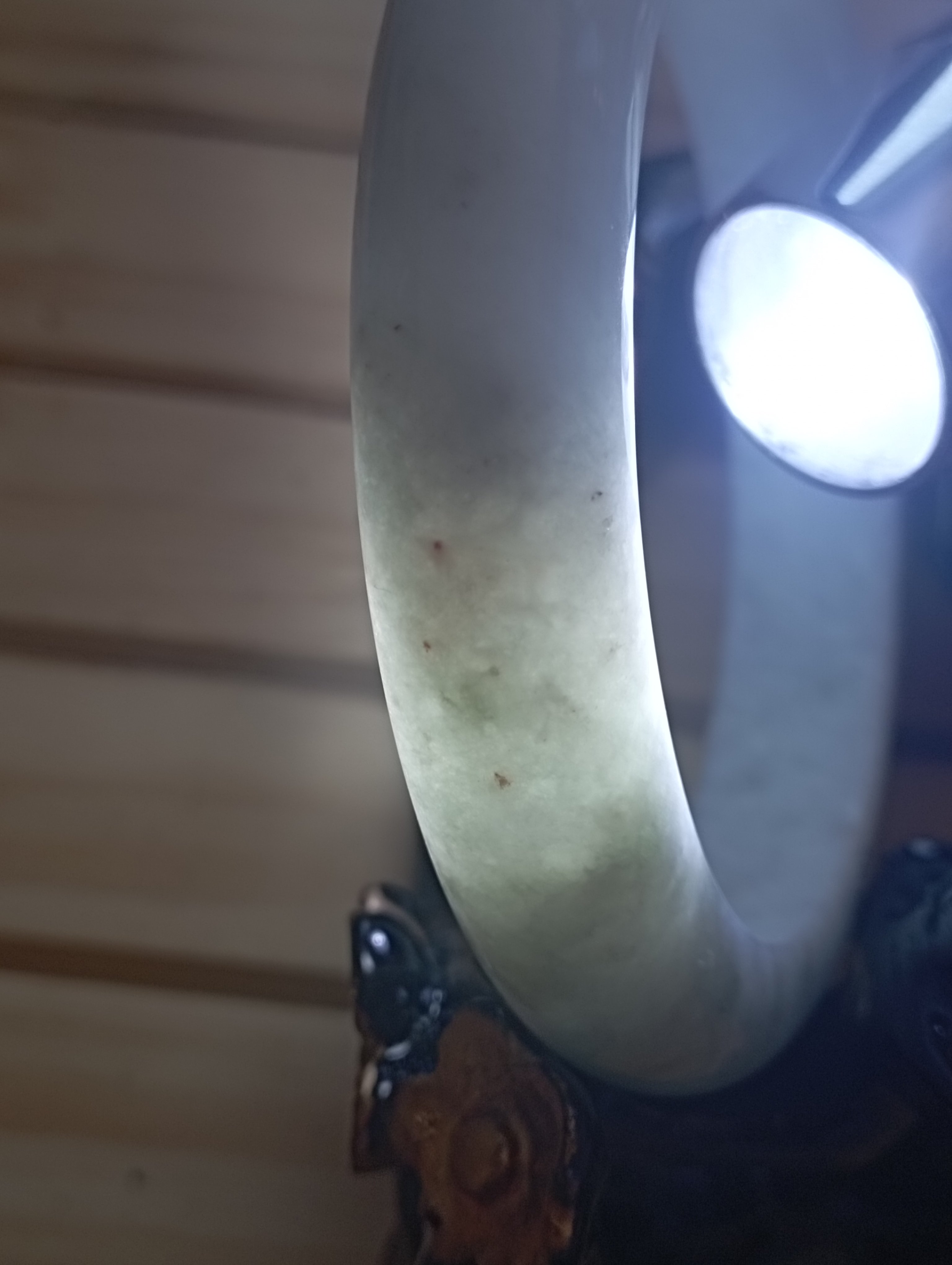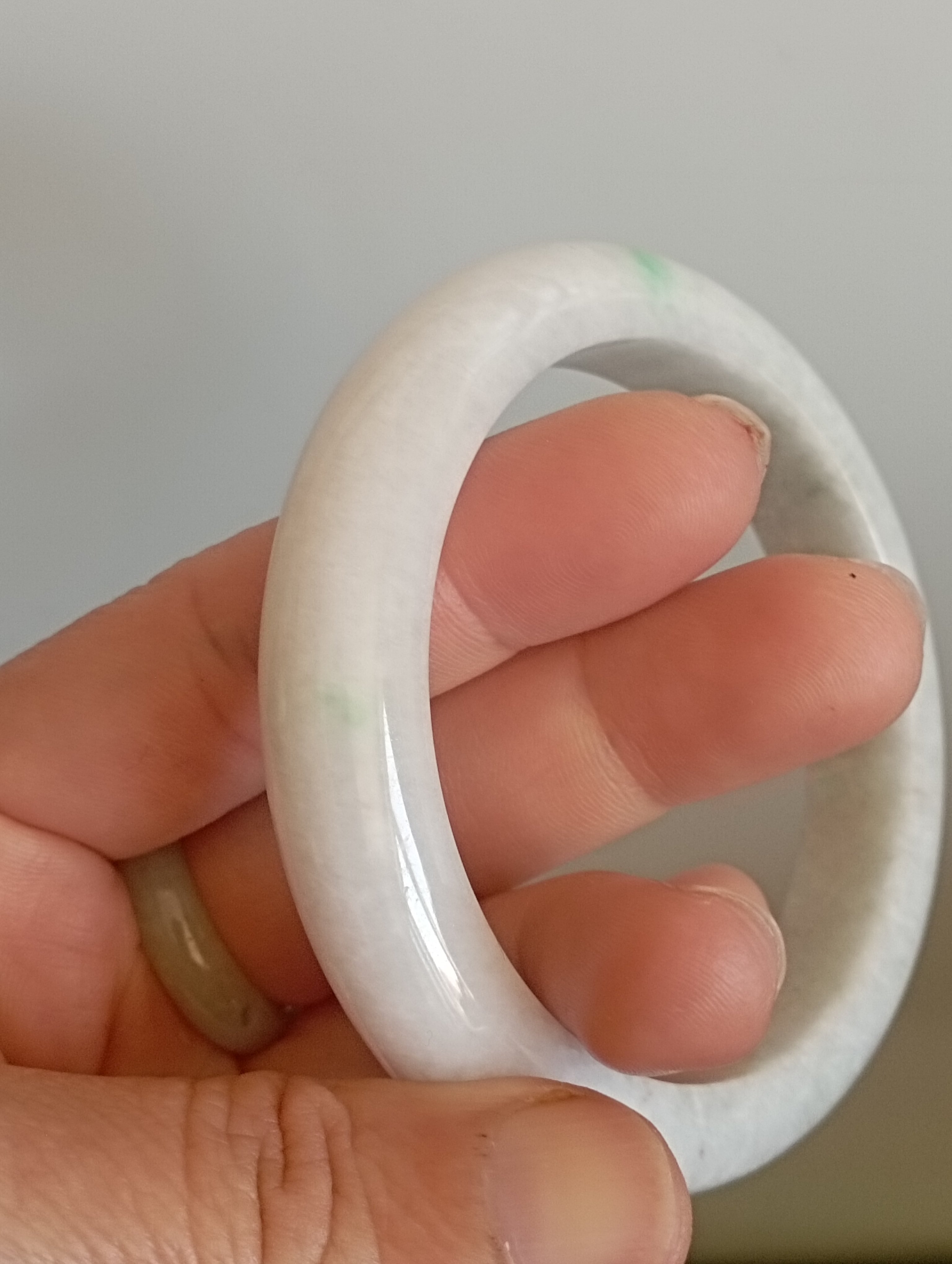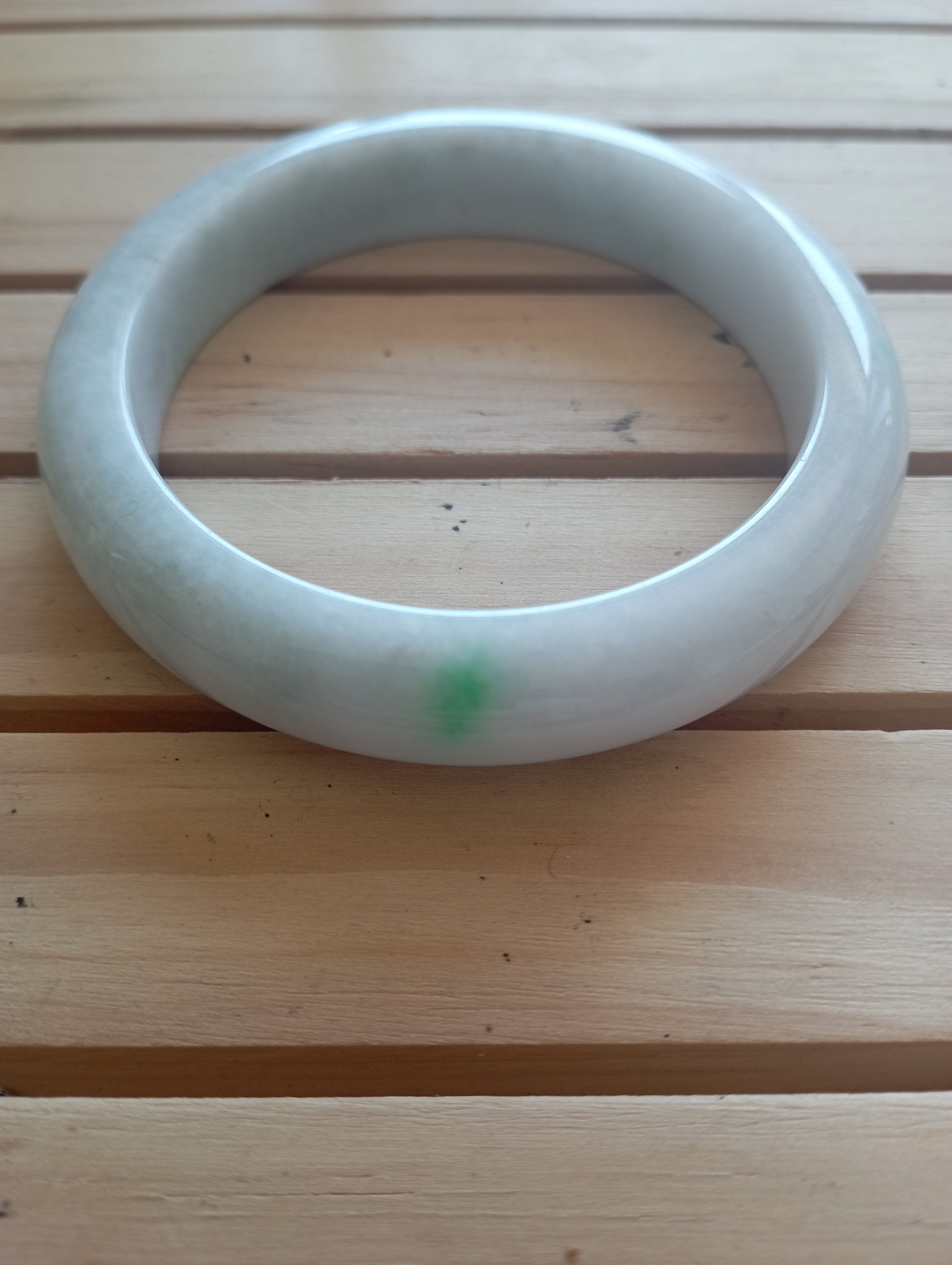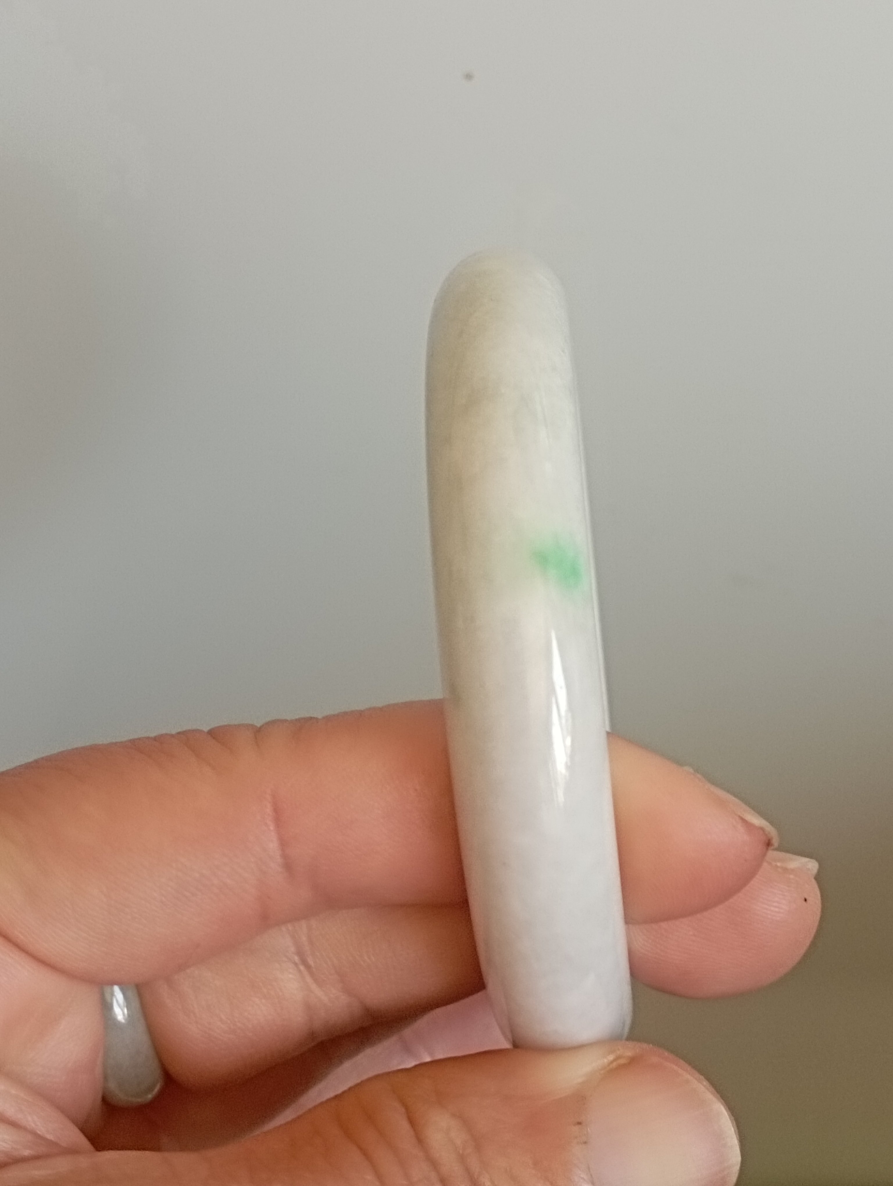 The one spot of apple green is so attractive. The whole bangle is white in colour, with one spot of apple green and a scatter of red dots. Measures 56.4 X 12.1 X 9.2mm, weighs 56.9g, comes with a certificate of authenticity £118