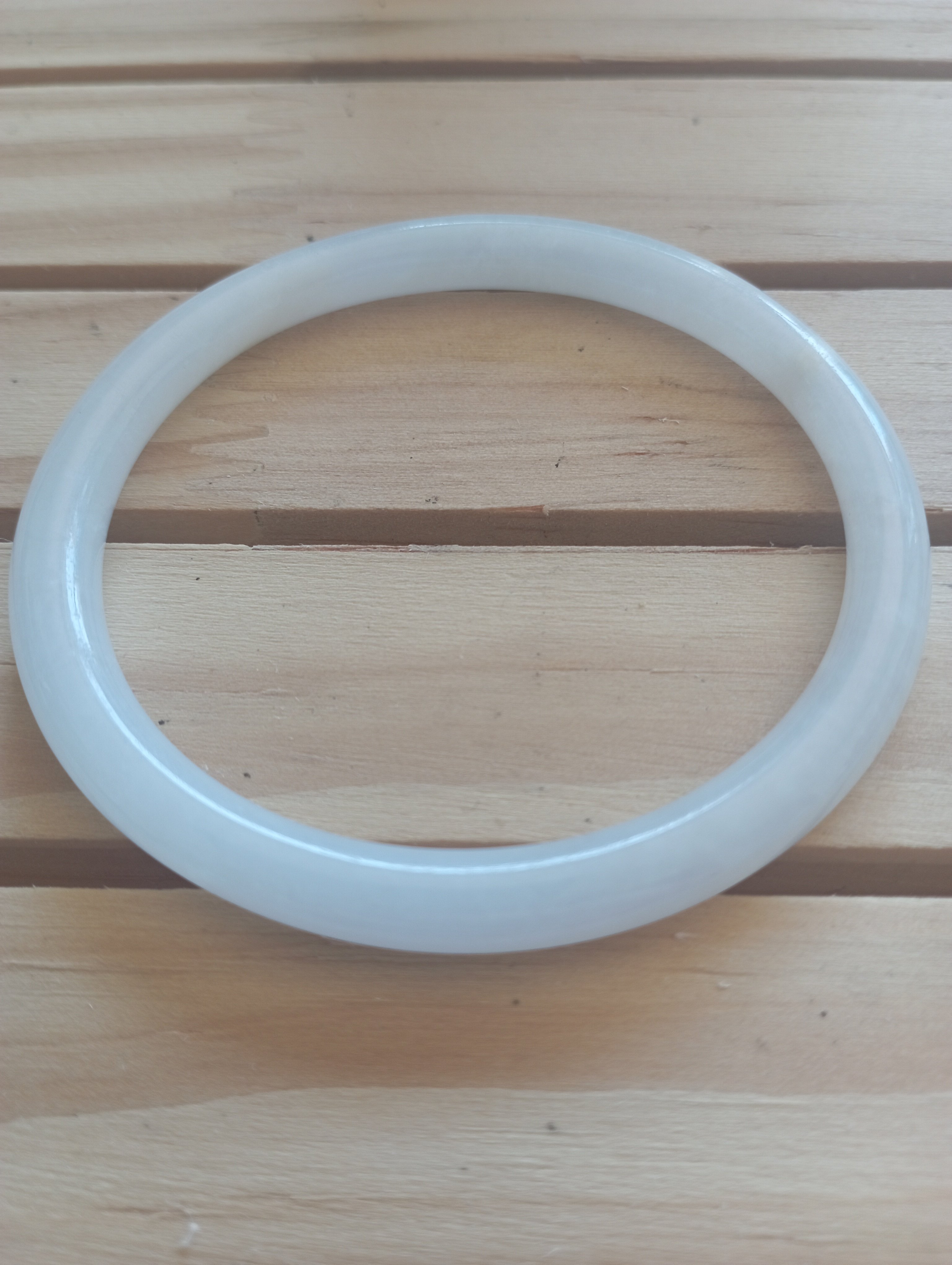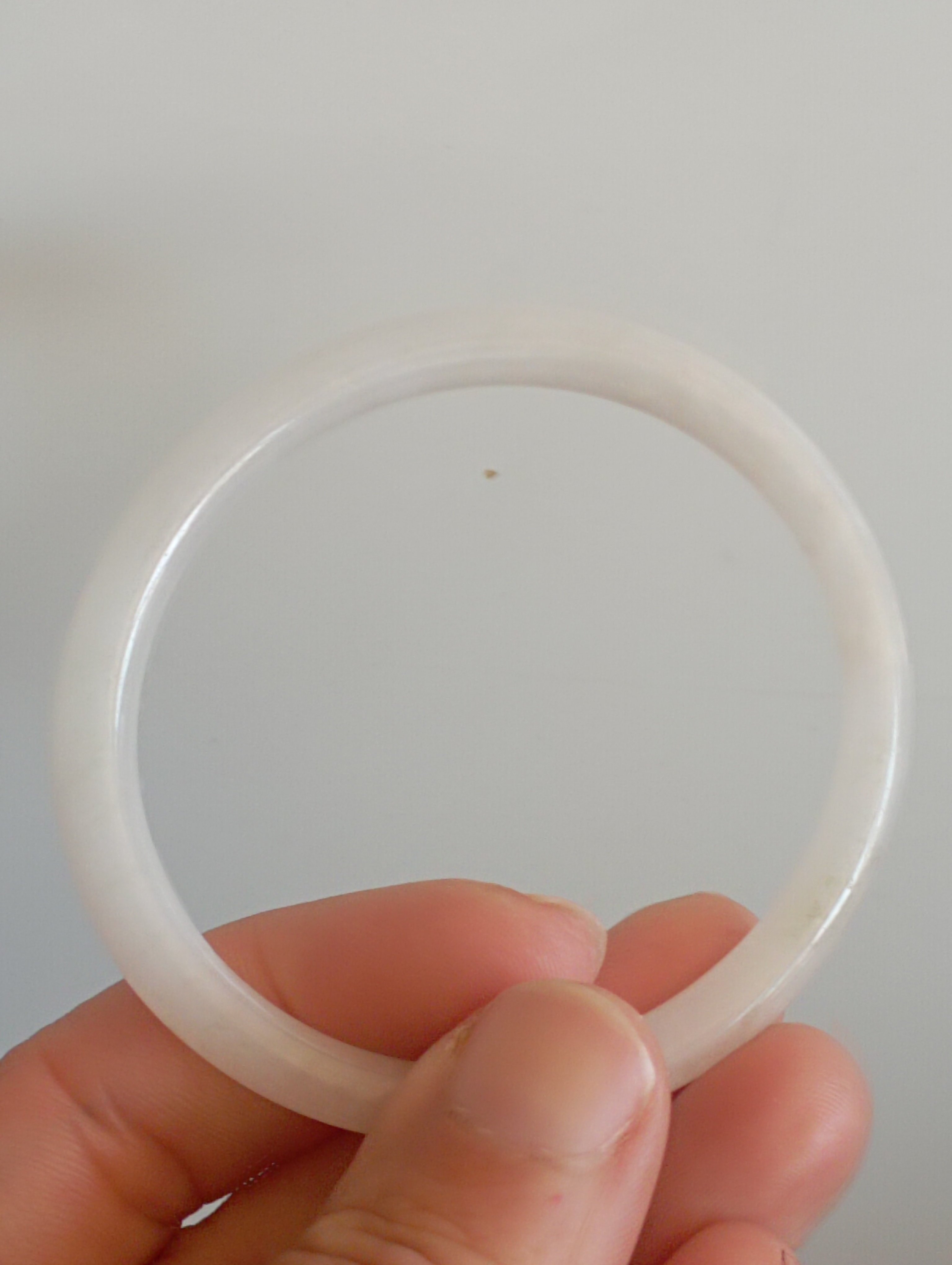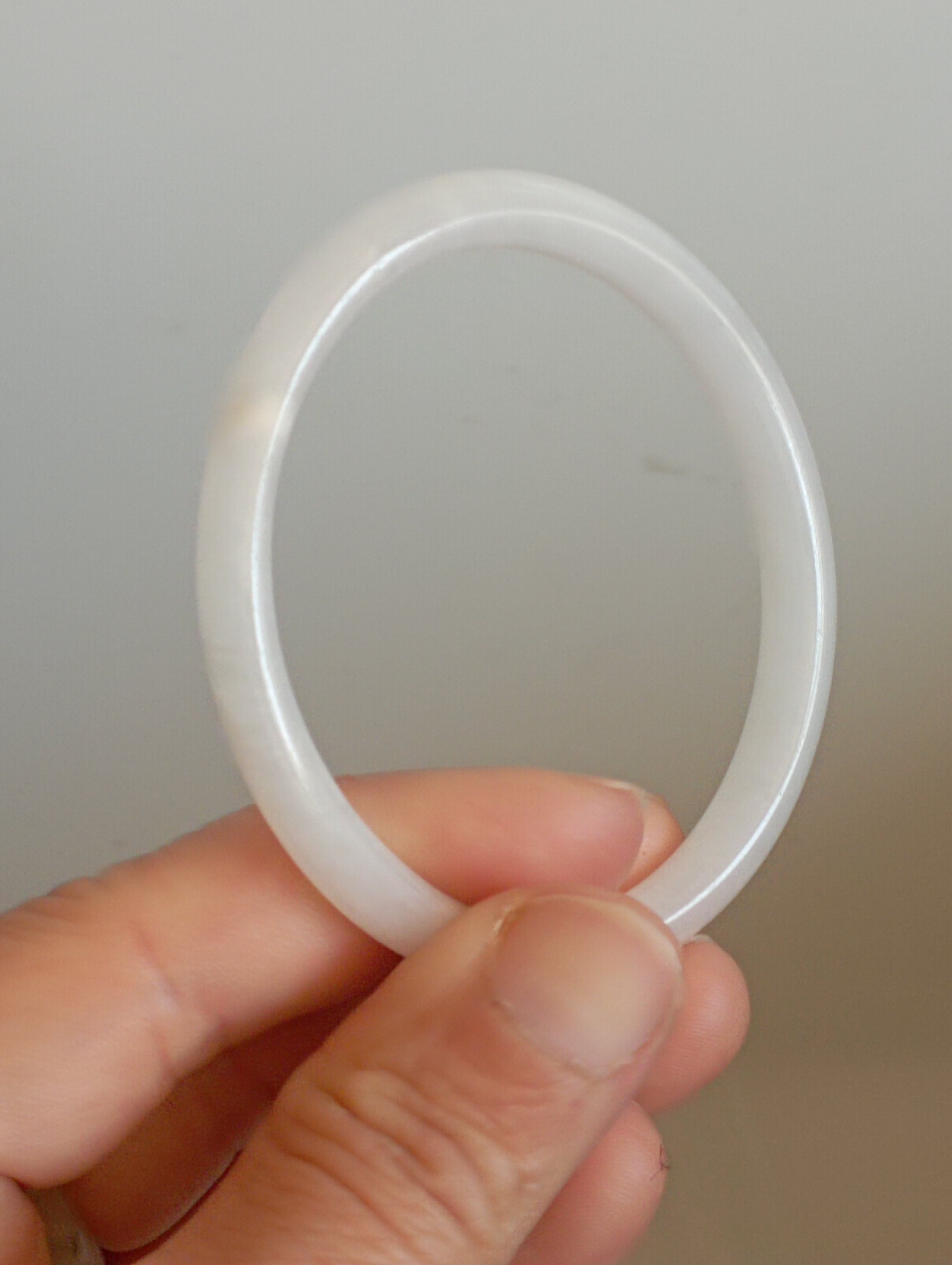 Slim white bangle that fits up to 50mm, measures 52.4 X 43.7 X 5.7 X 5.9mm, weighs 15.61g, lovely white colour, comes with a certificate of authenticity £88