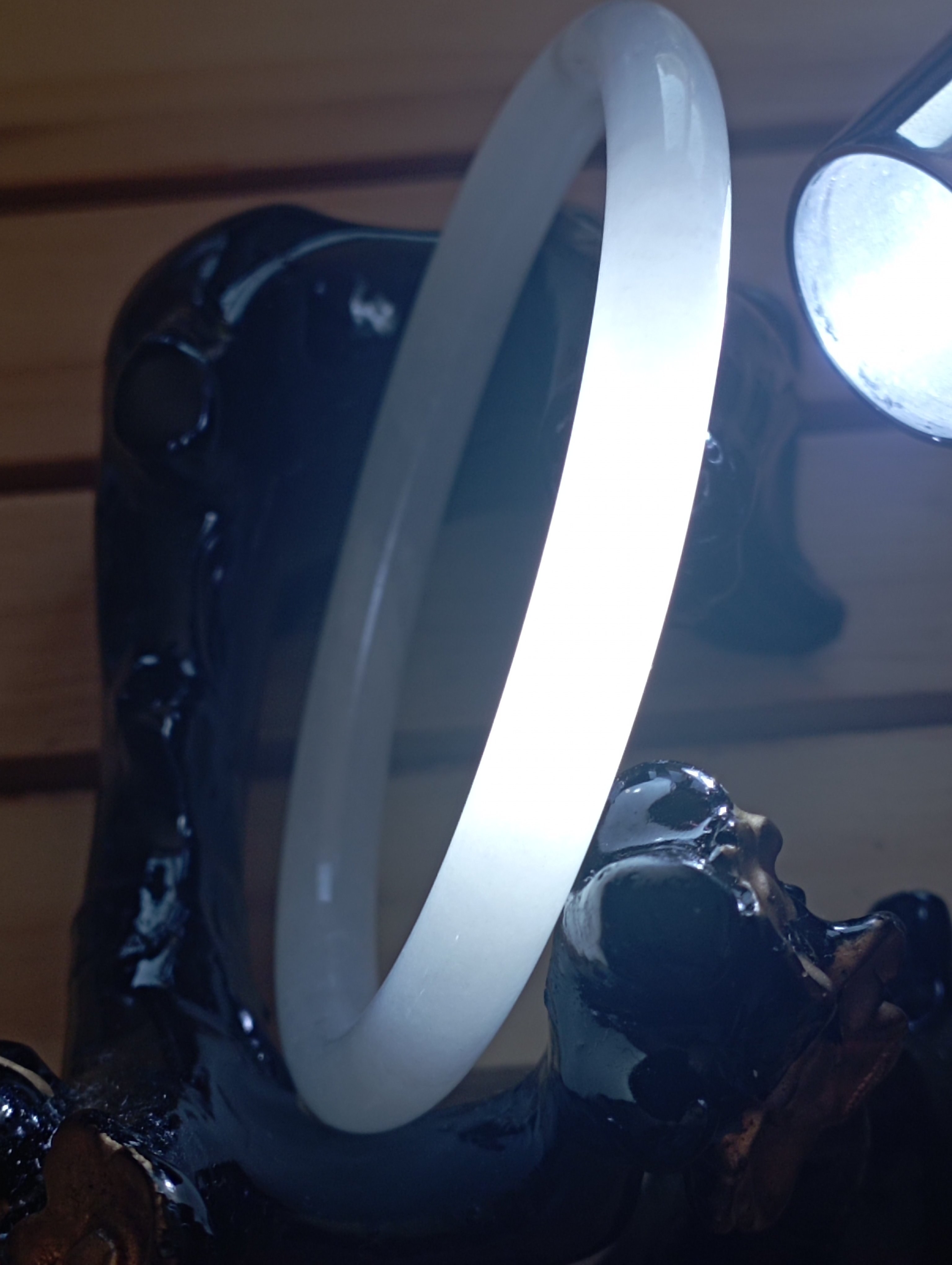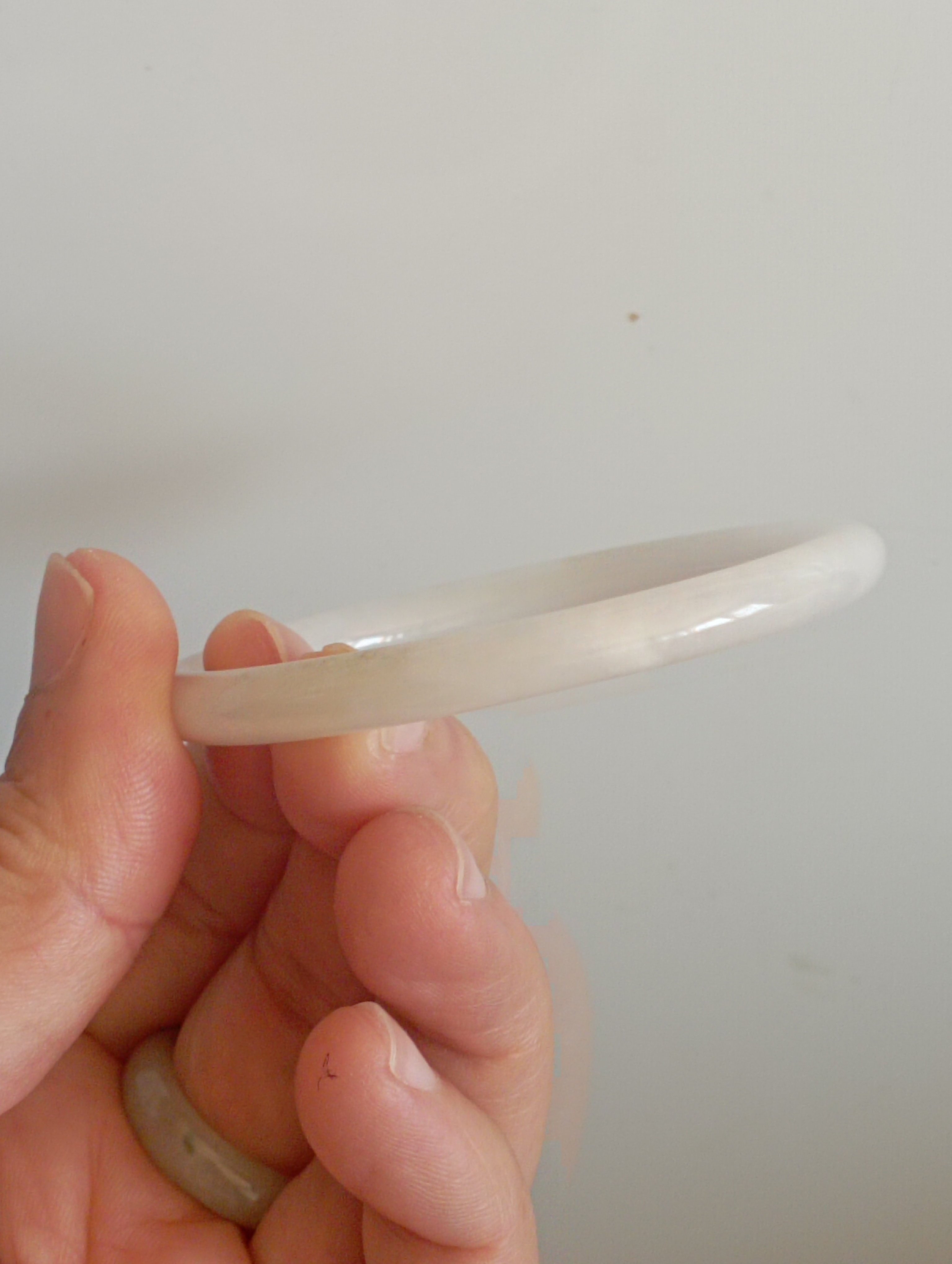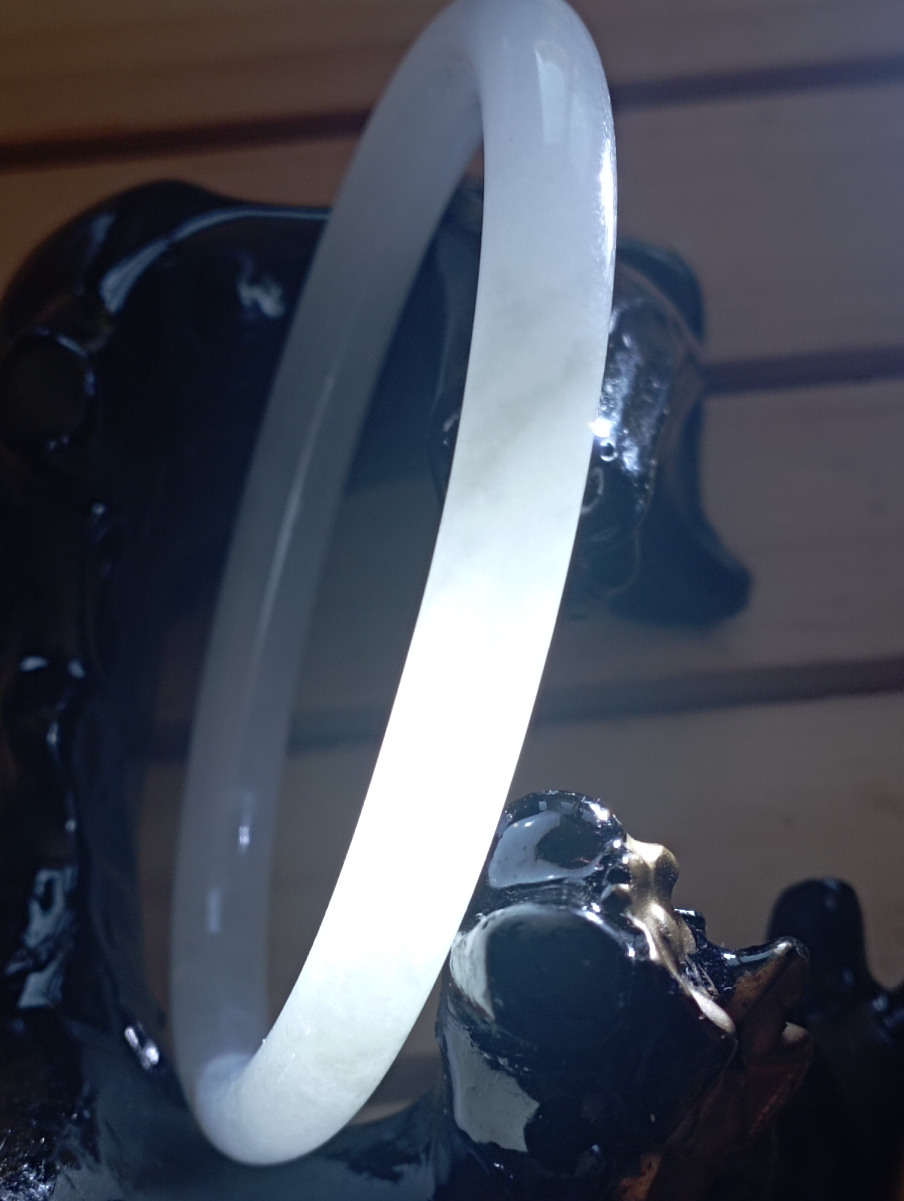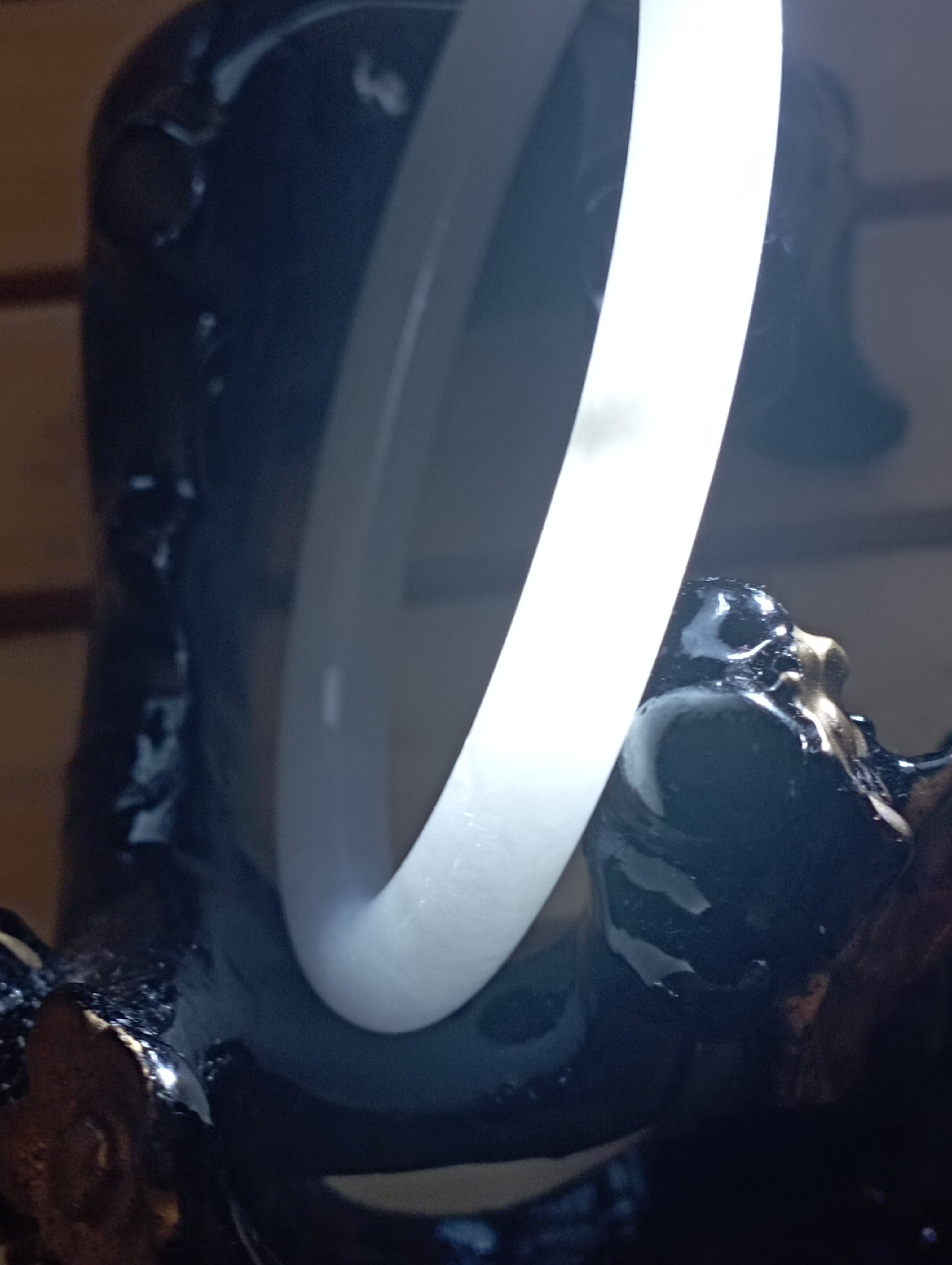 Slim white bangle that fits up to 50mm, measures 52.4 X 43.7 X 5.7 X 5.9mm, weighs 15.61g, lovely white colour, comes with a certificate of authenticity £88