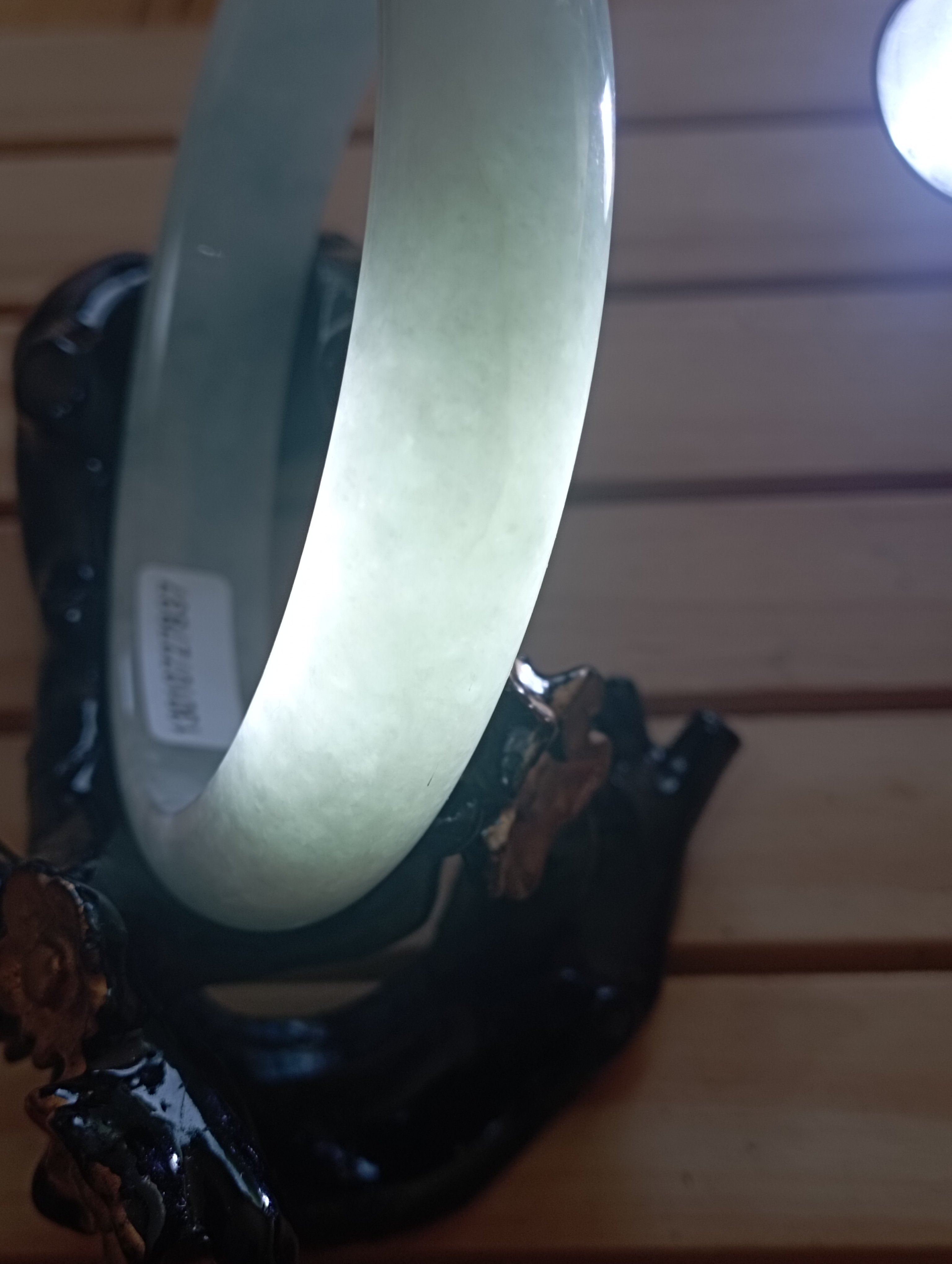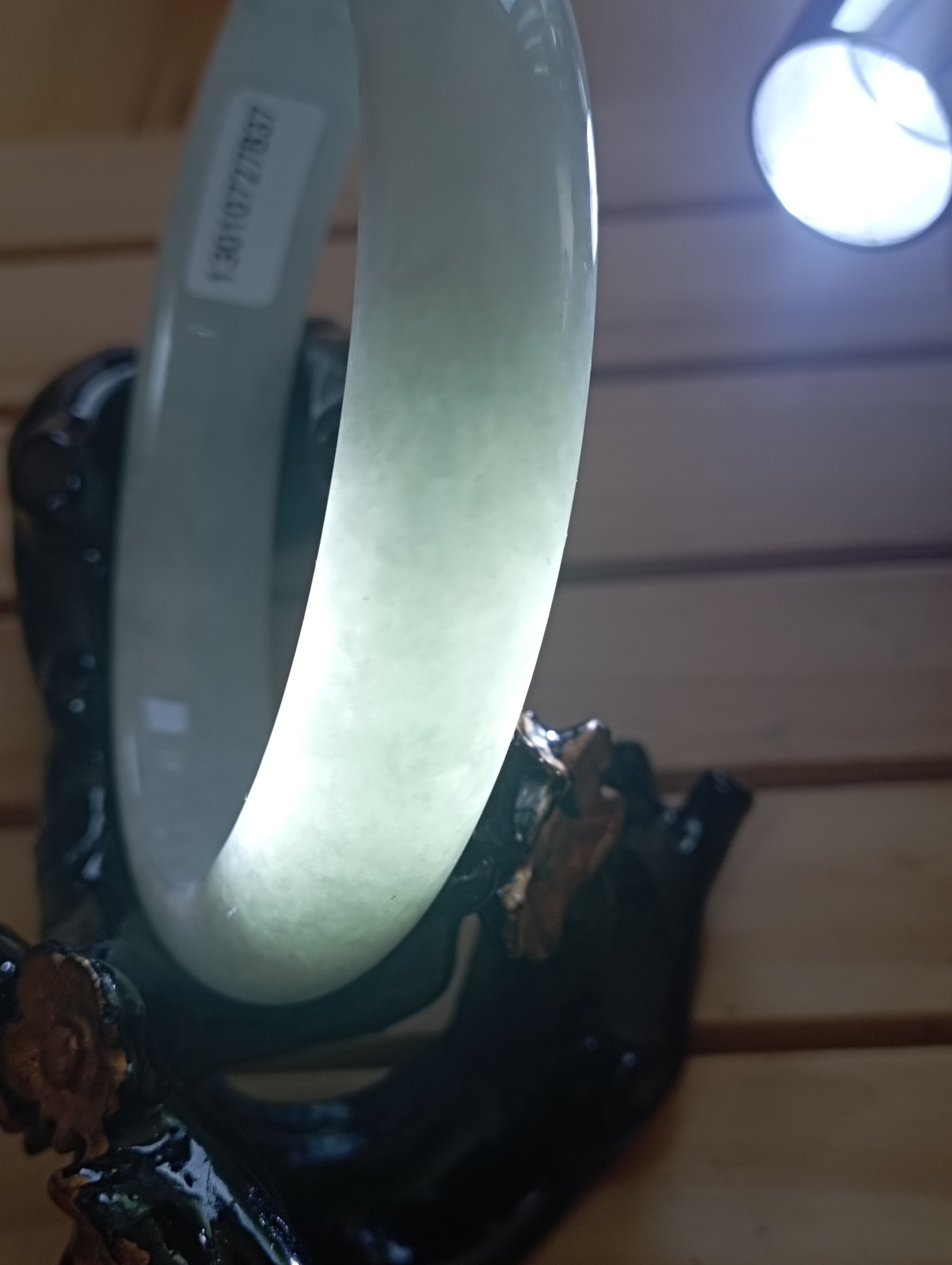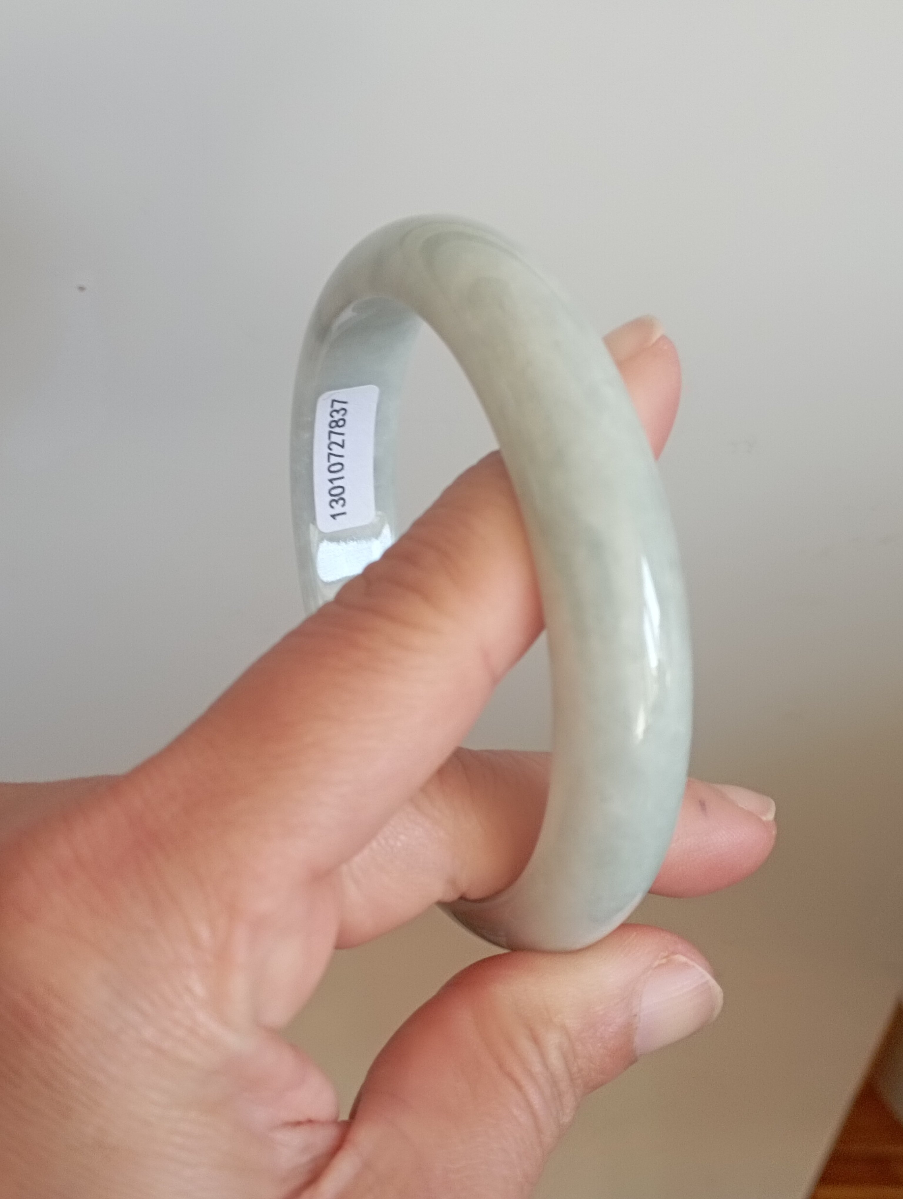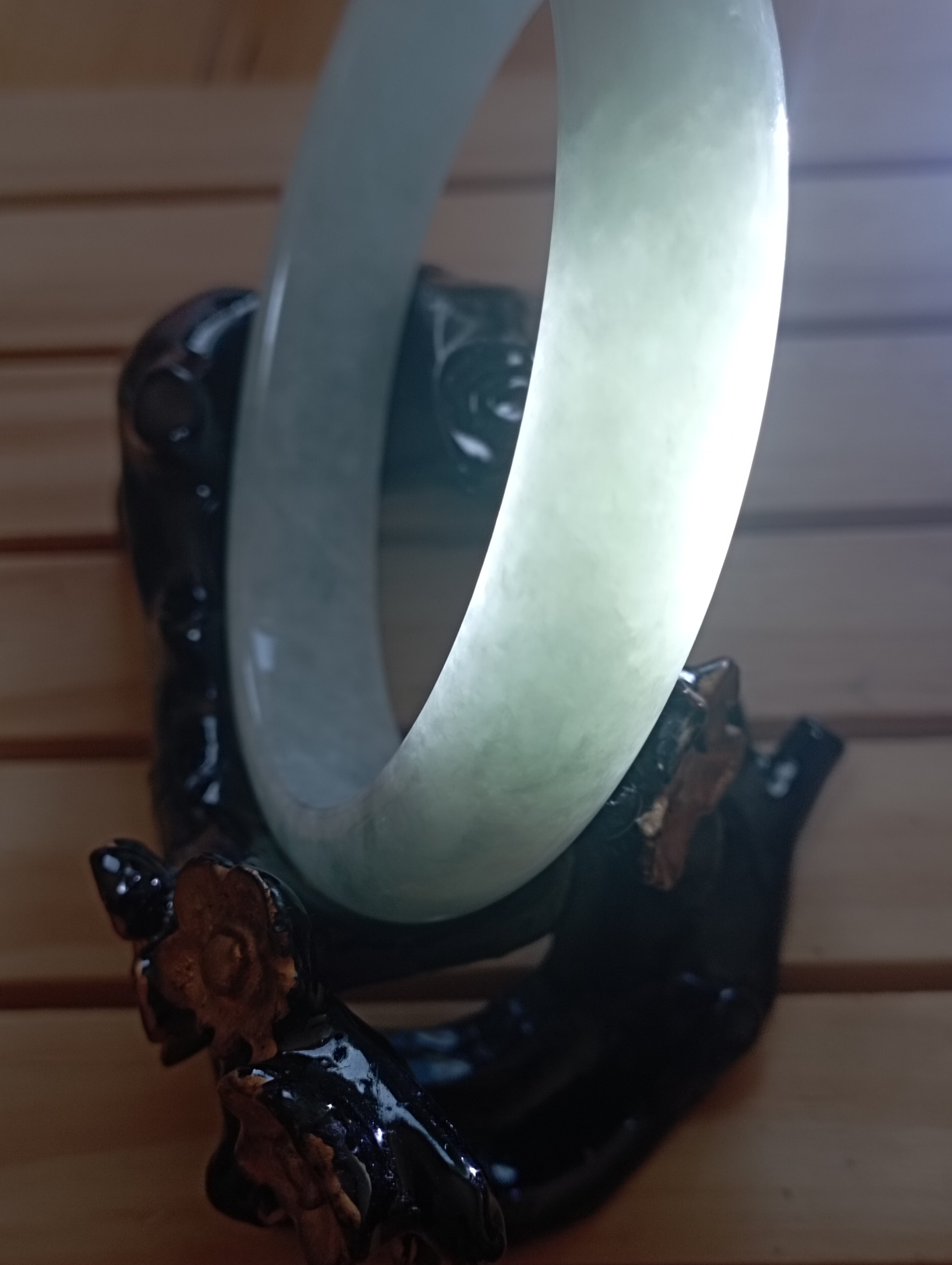 Not often seen 64mm jadeite bangle, no internal, external crack or formations. Measures 64 X 13.2 X 8.2mm, weighs 63.82g. Comes with a certificate of authenticity £228