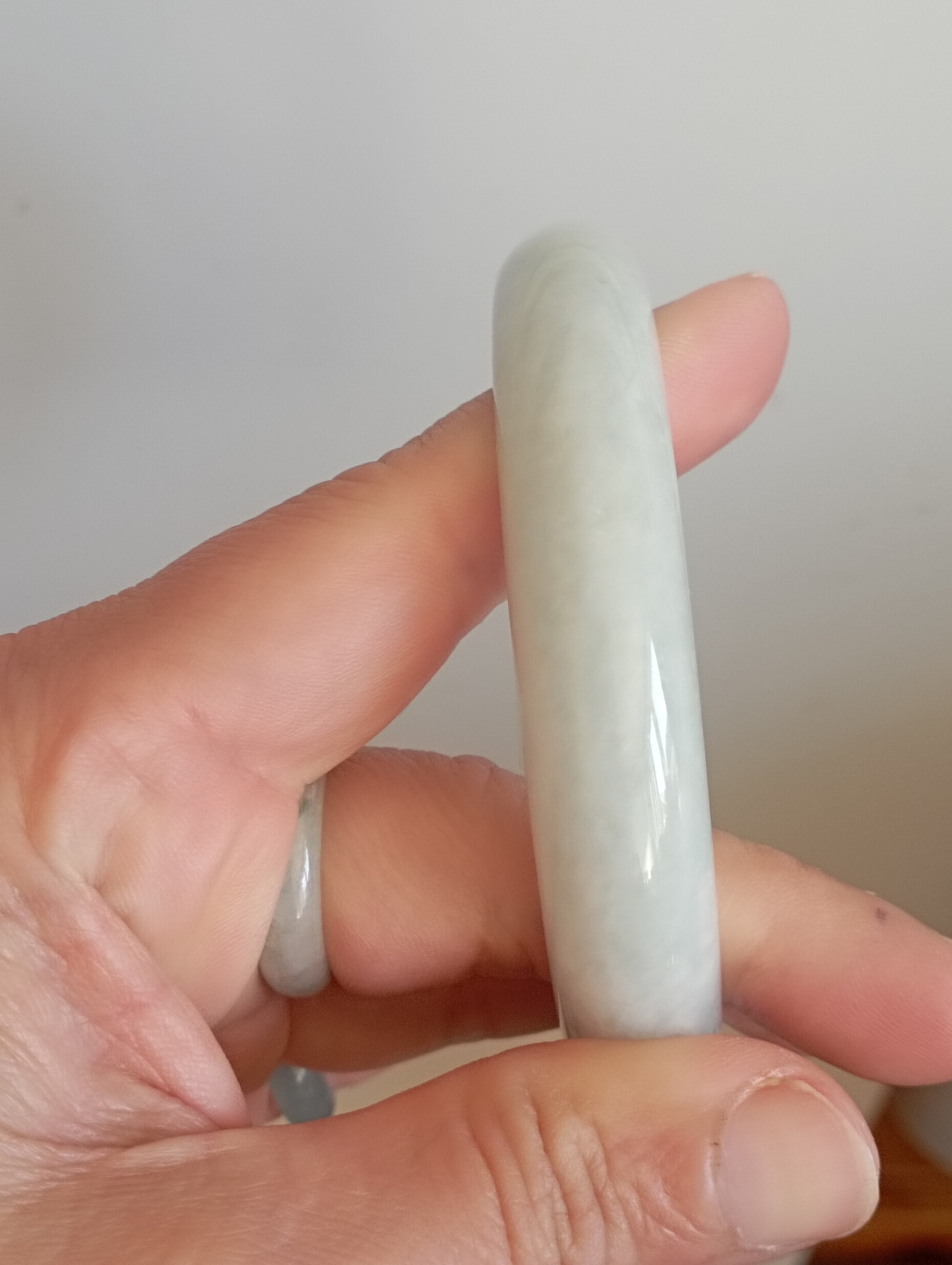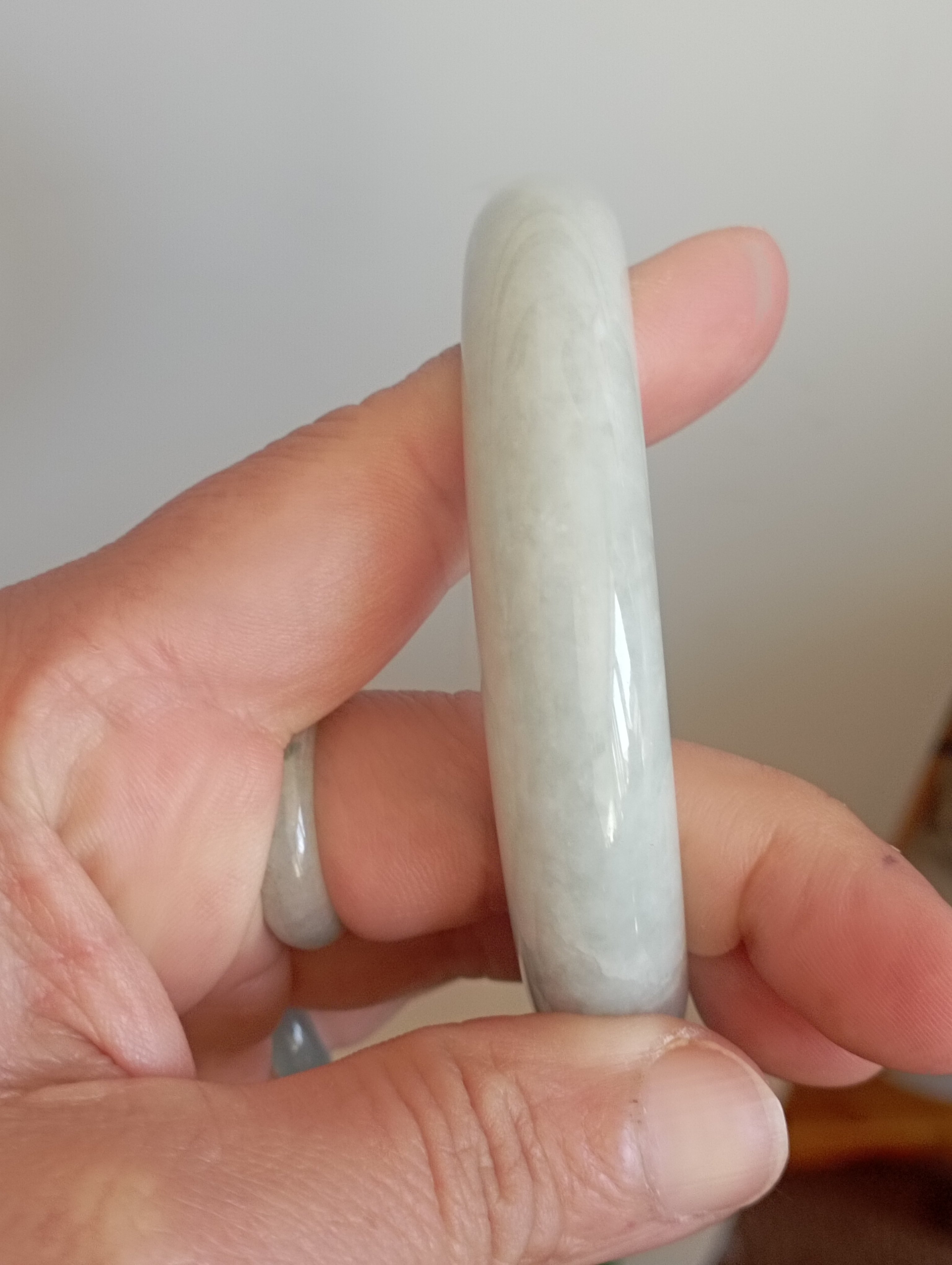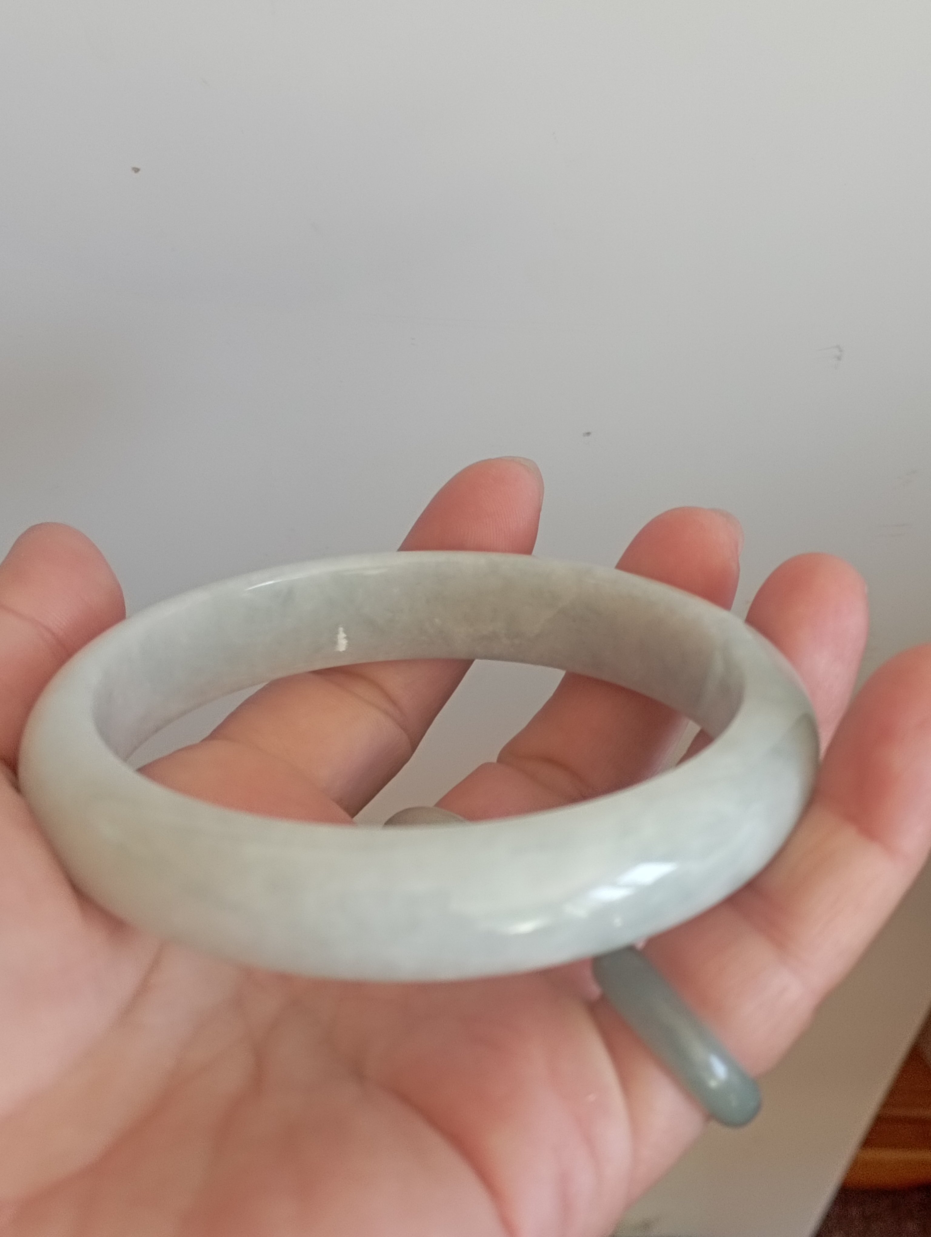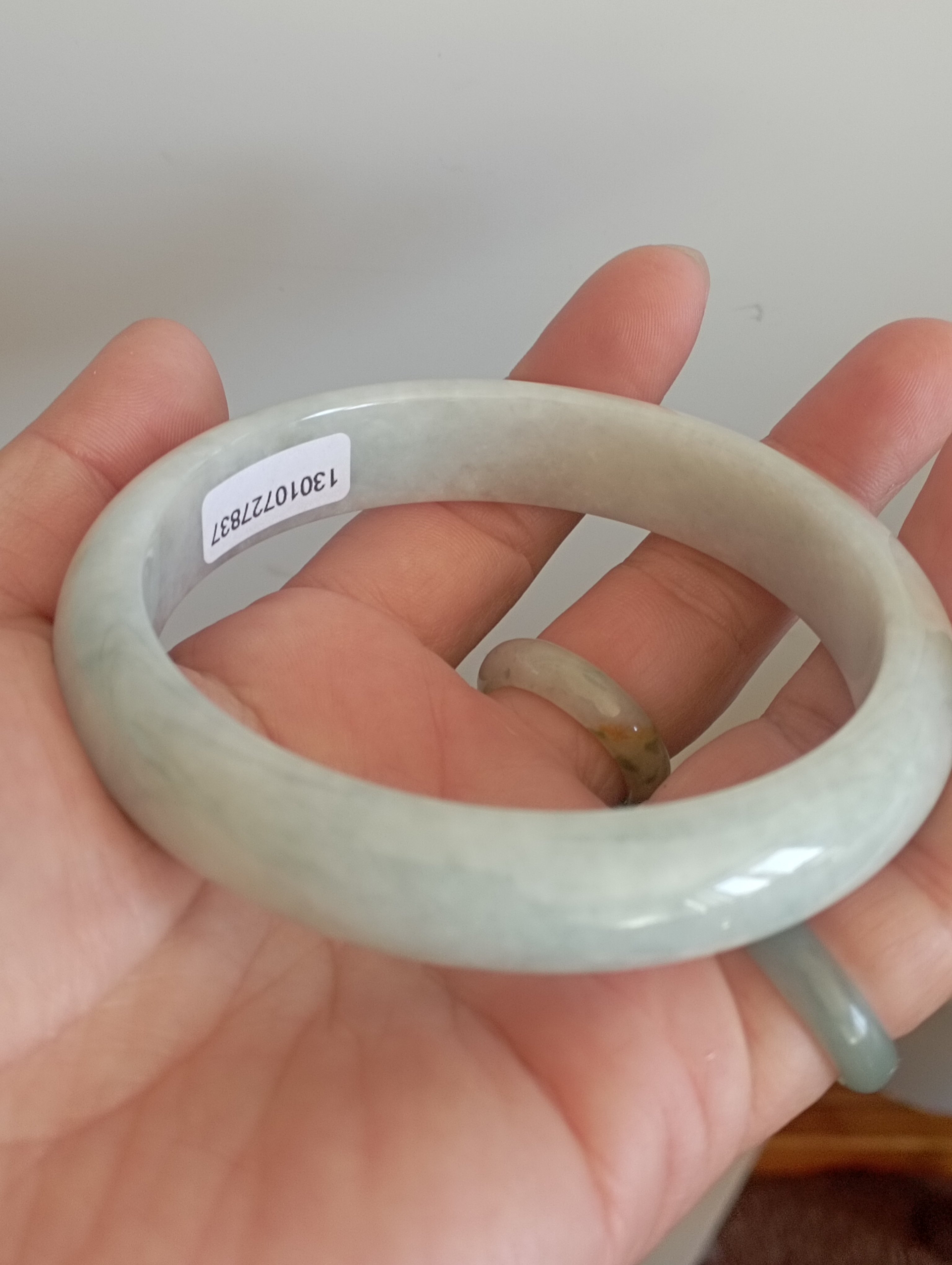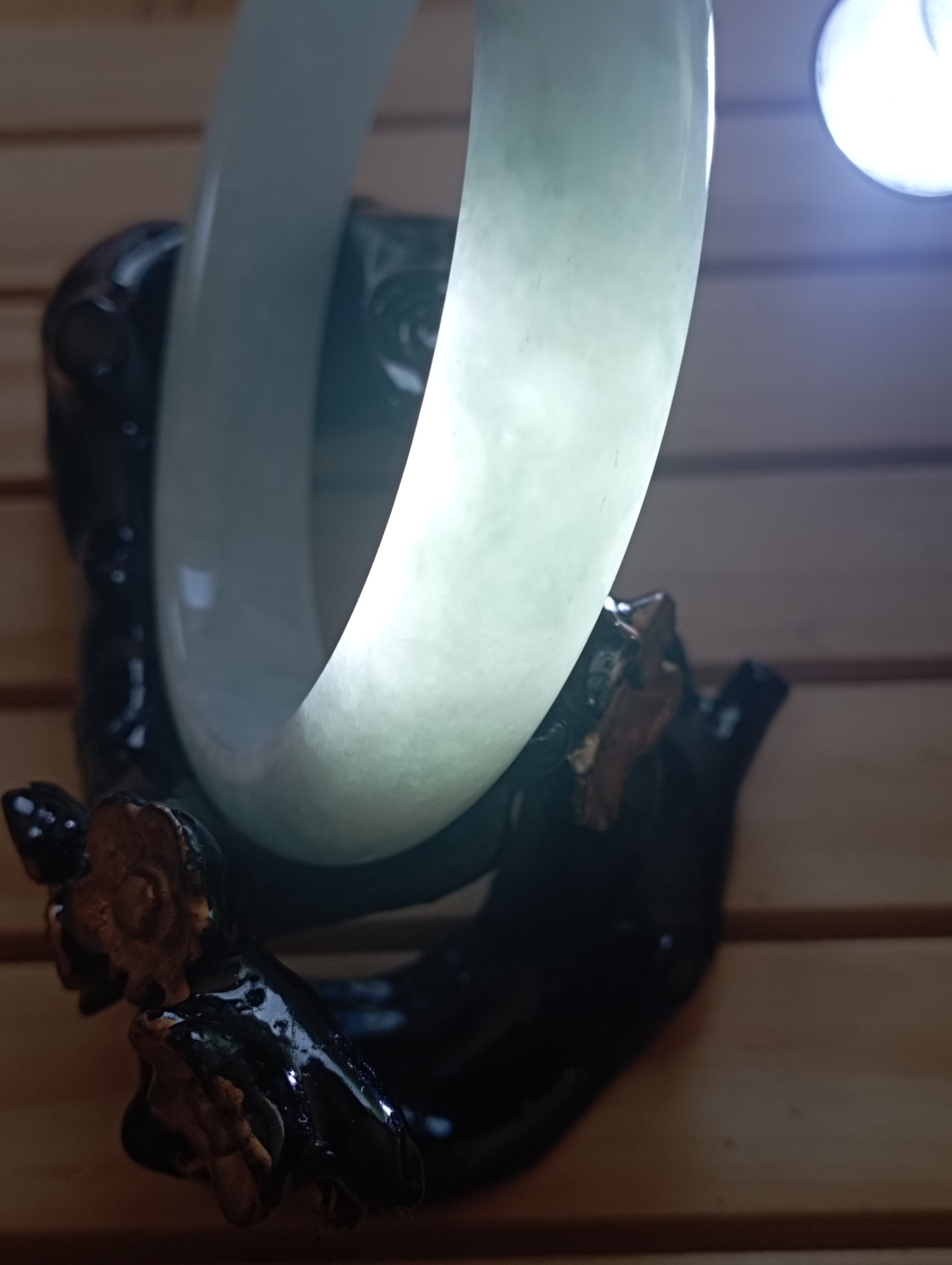 Not often seen 64mm jadeite bangle, no internal, external crack or formations. Measures 64 X 13.2 X 8.2mm, weighs 63.82g. Comes with a certificate of authenticity £228