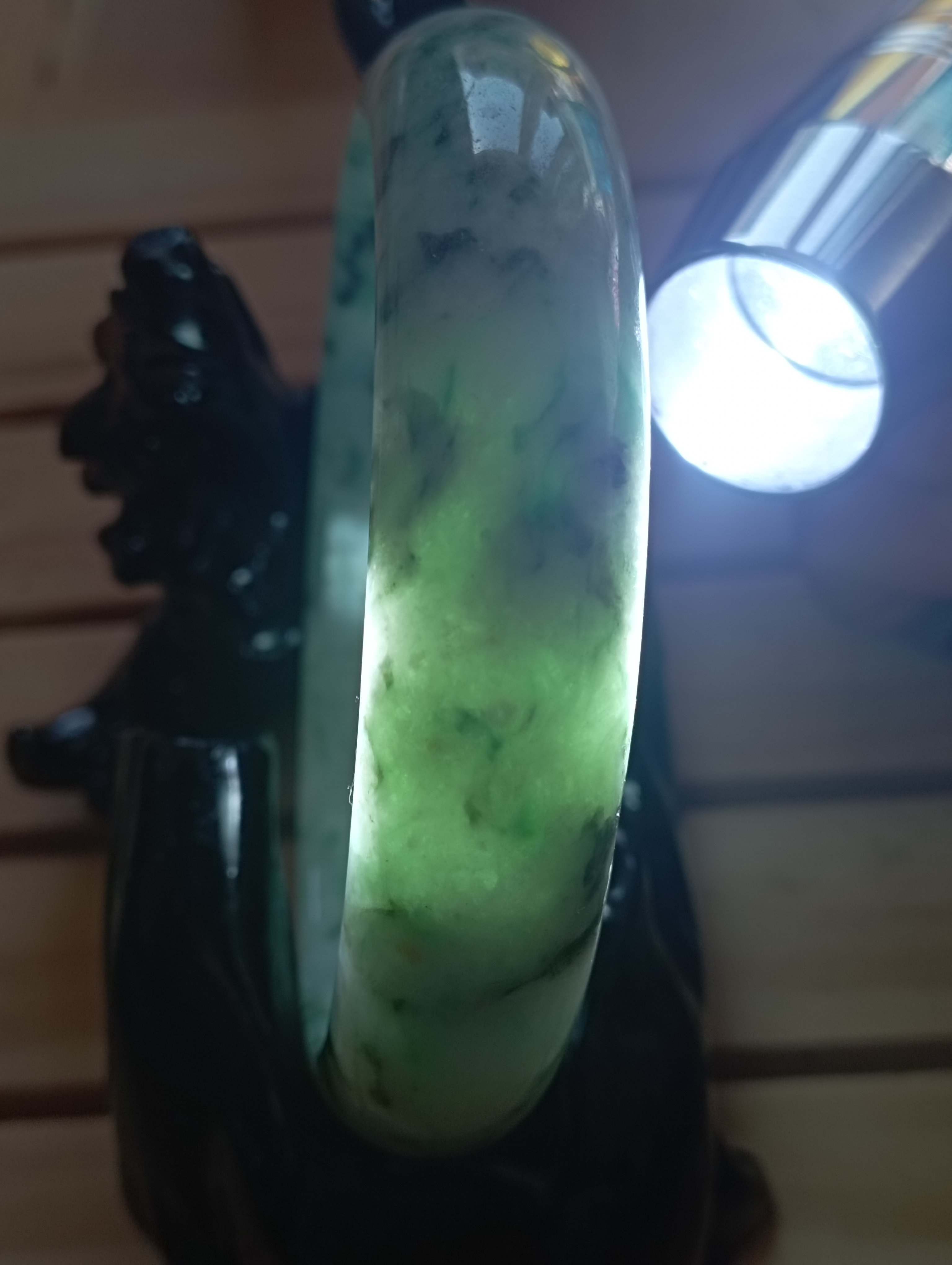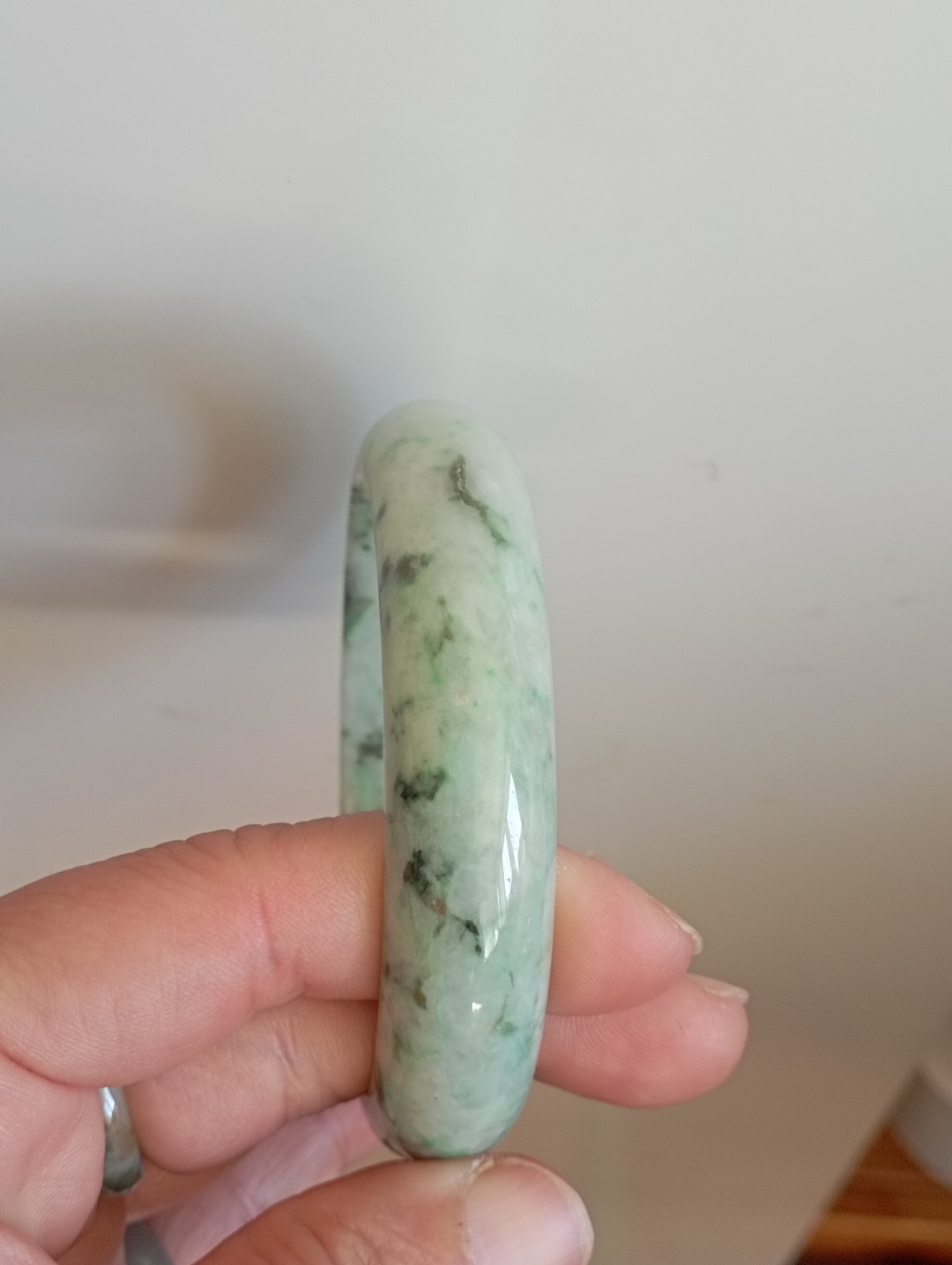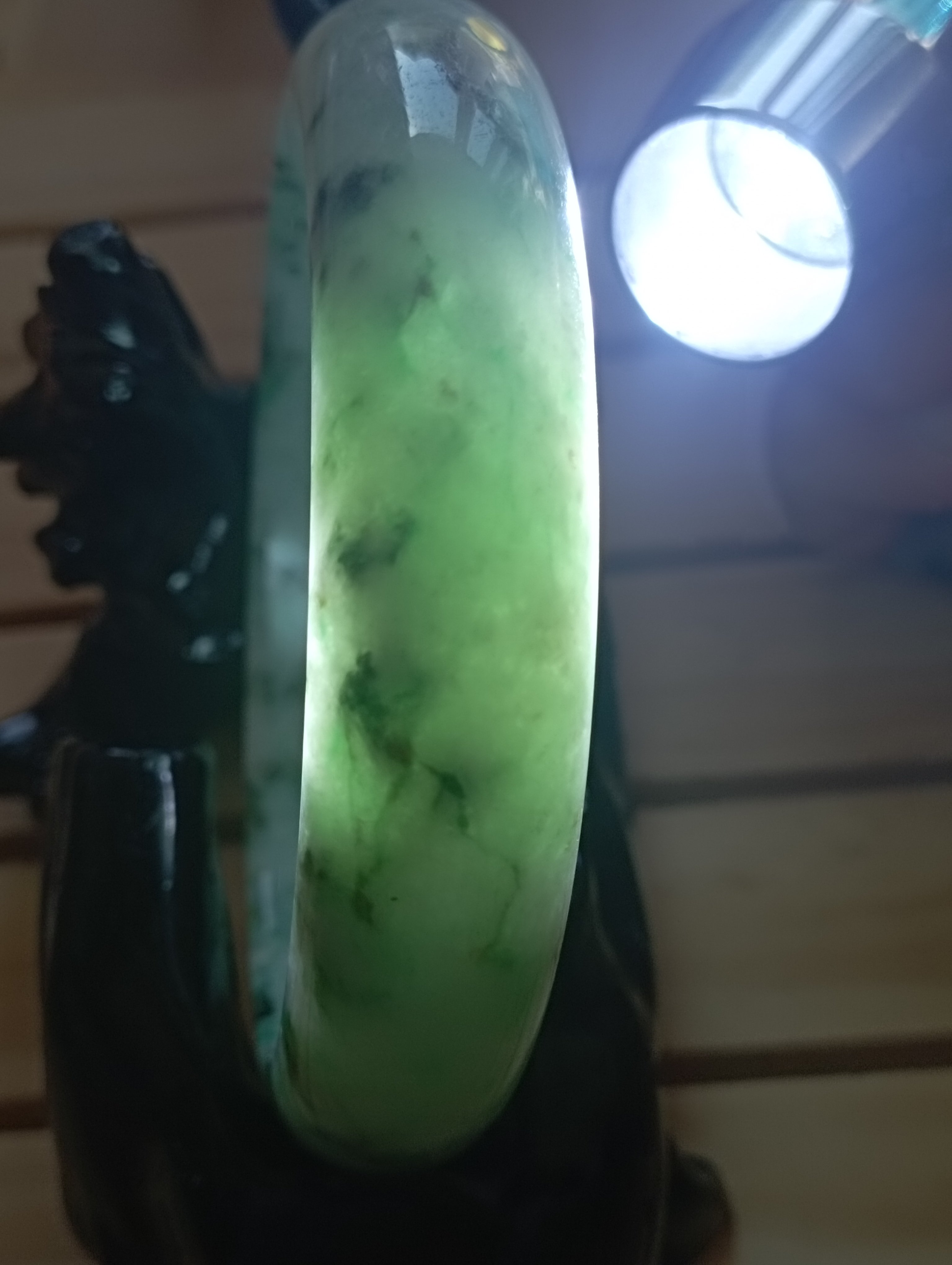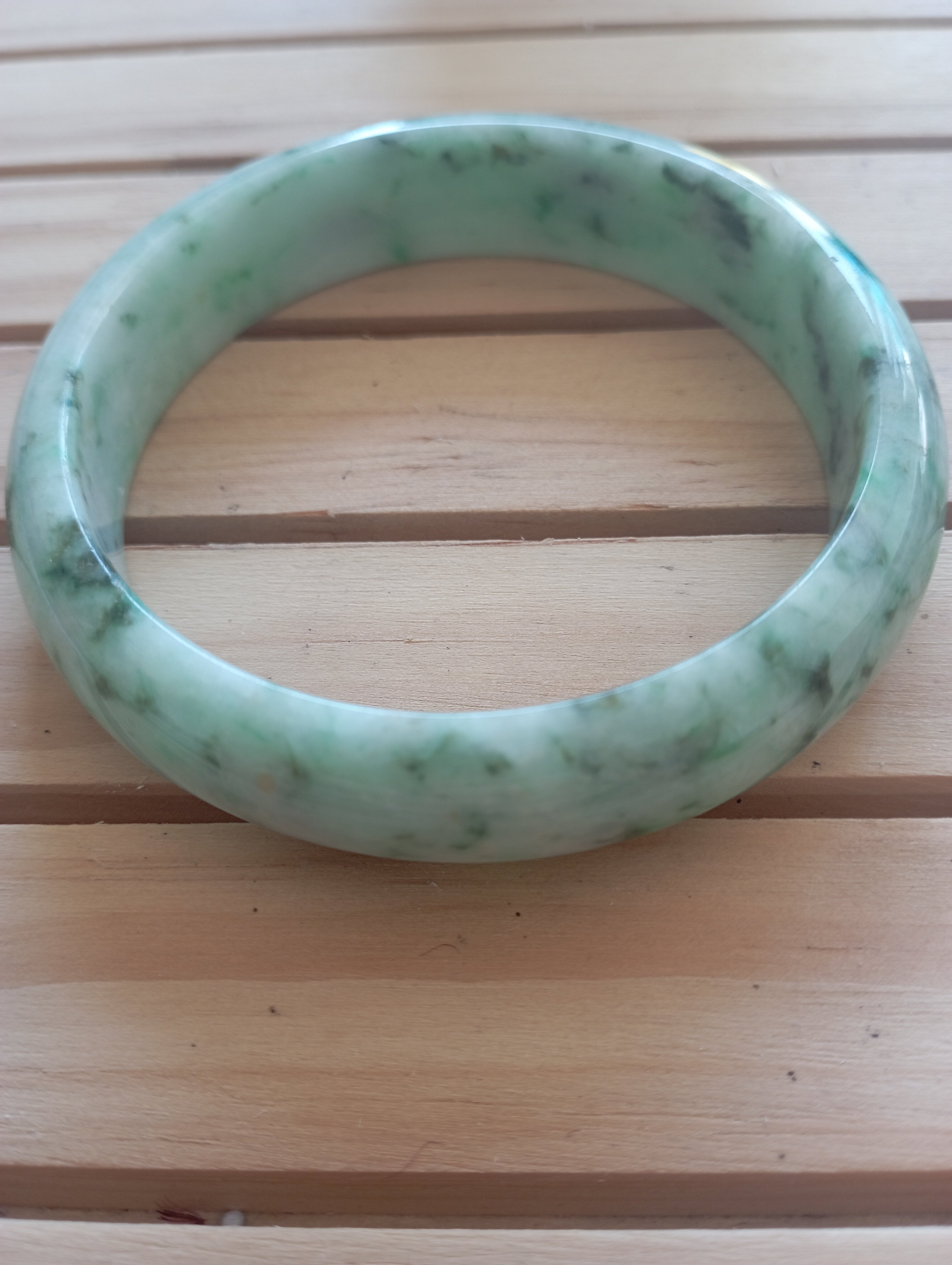 Beautiful green bangle with lots of apple green blooms. Measures 60.1 X 14.4 X 7.4mm, weighs 55.07g, comes with a certificate of authenticity £99