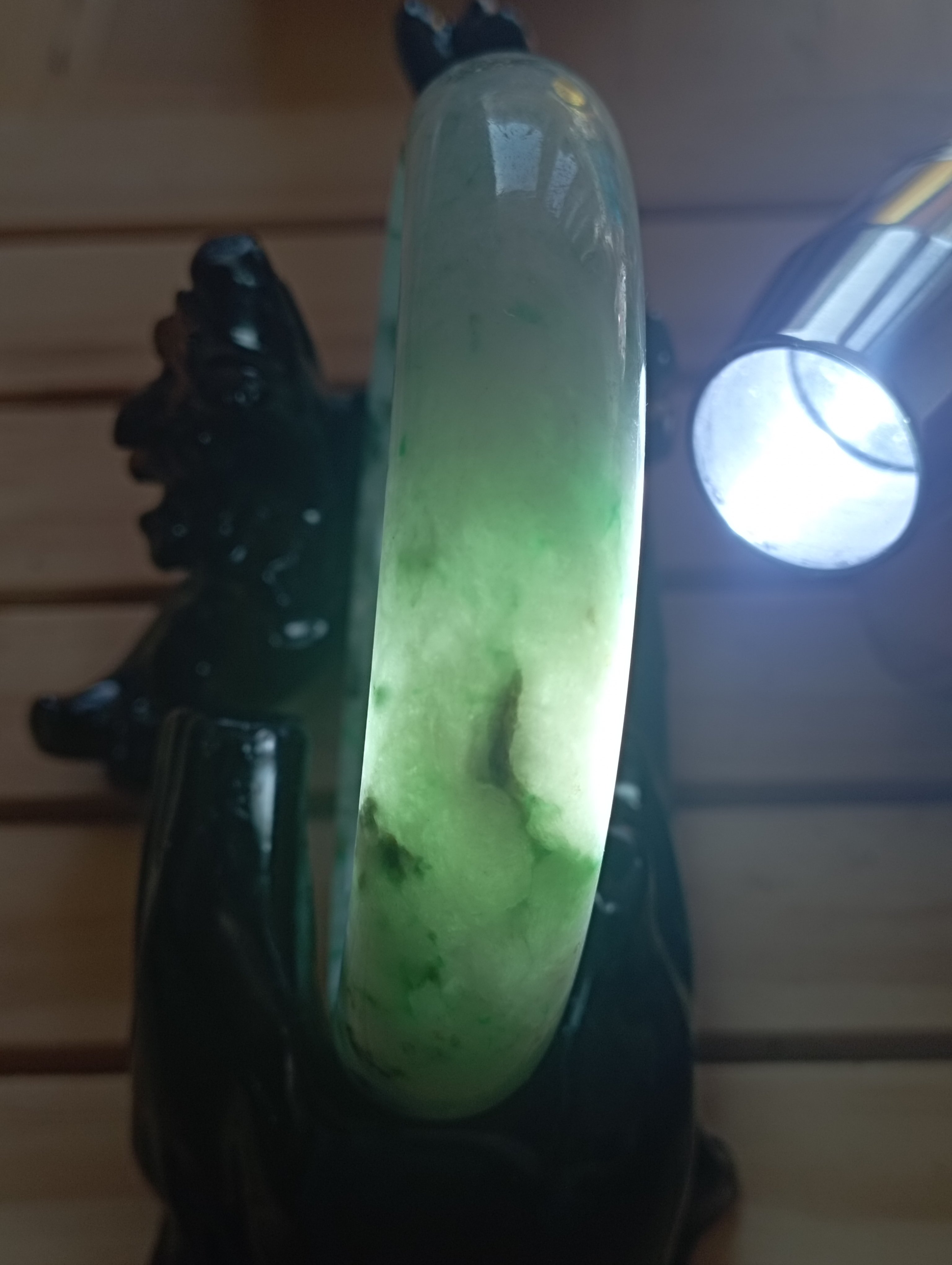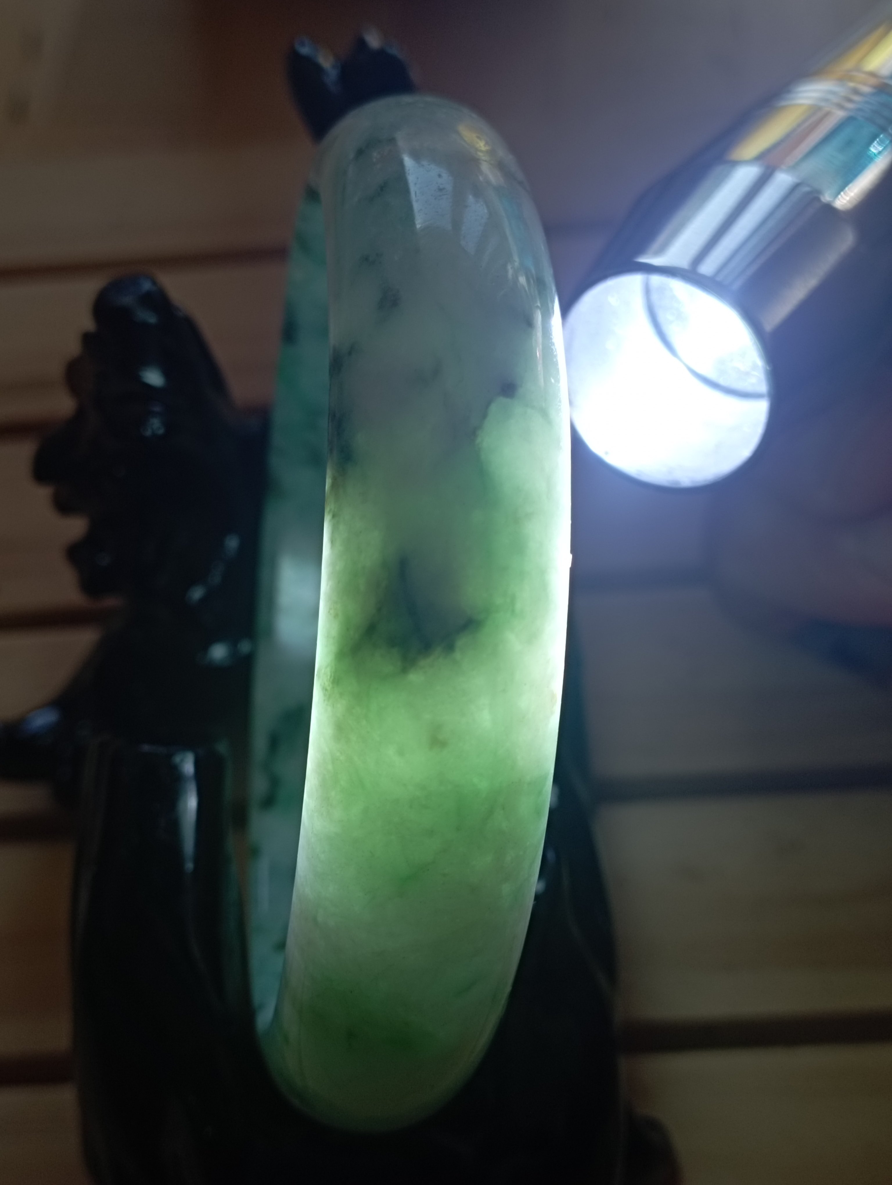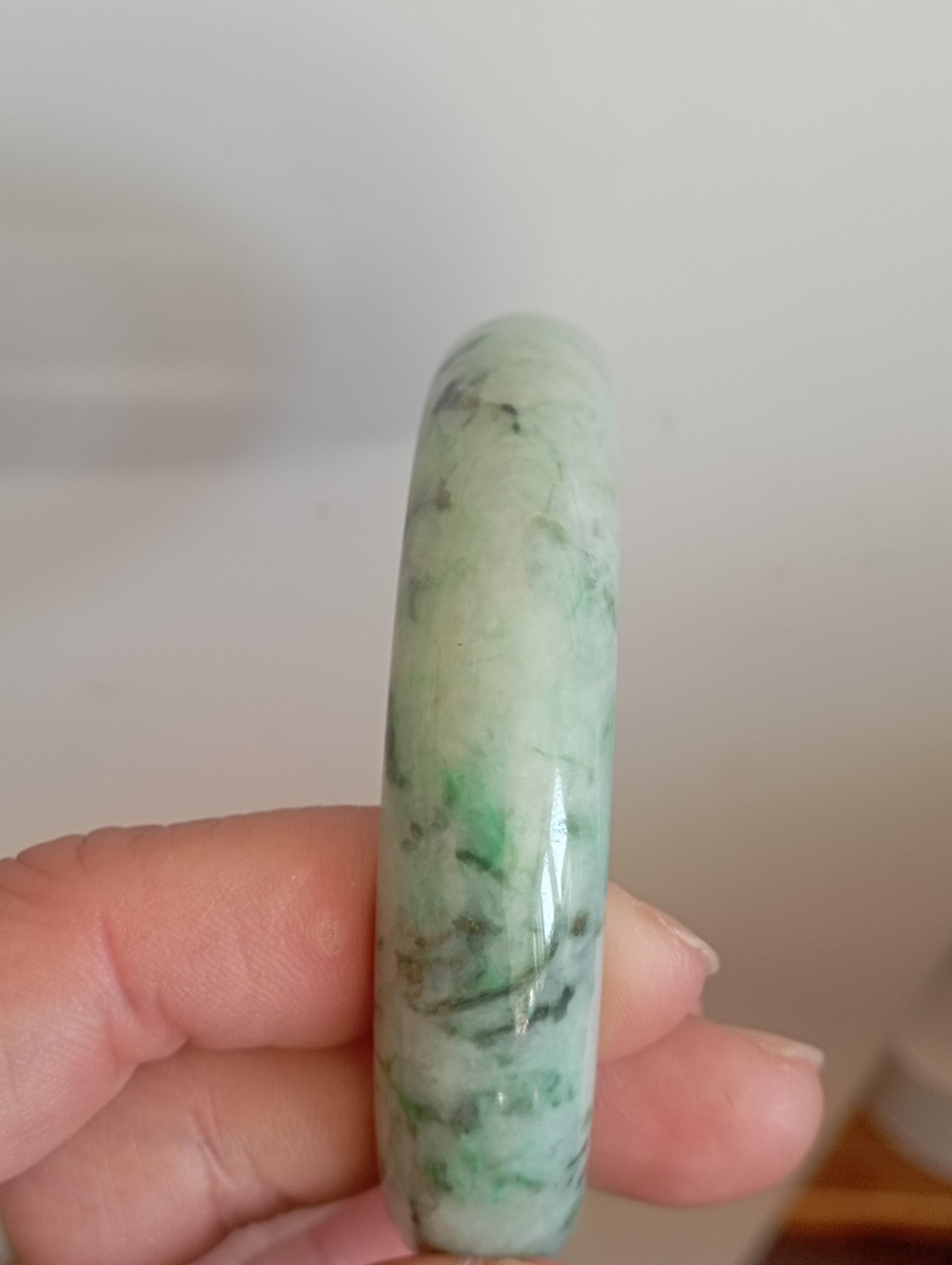 Beautiful green bangle with lots of apple green blooms. Measures 60.1 X 14.4 X 7.4mm, weighs 55.07g, comes with a certificate of authenticity £99
