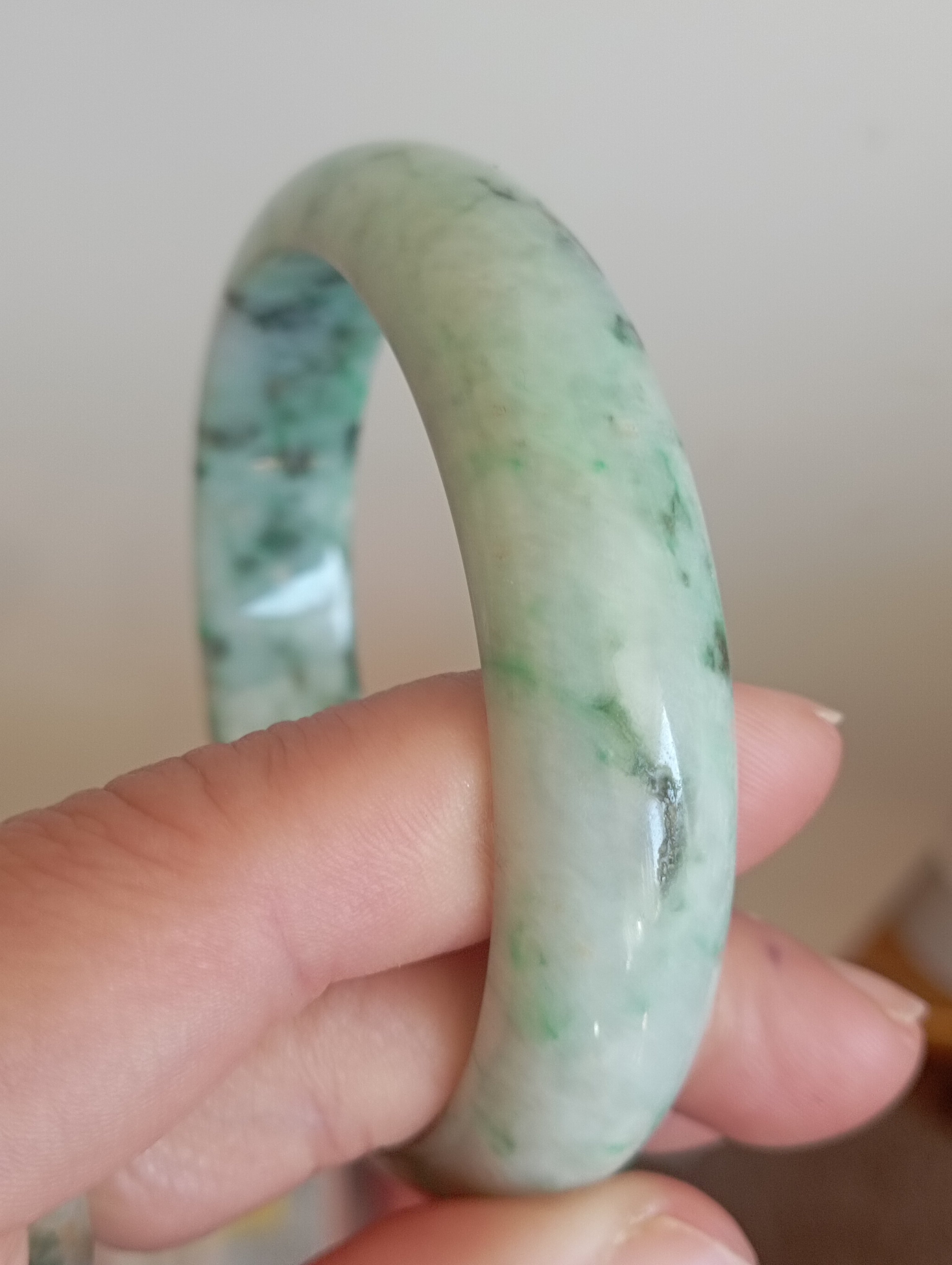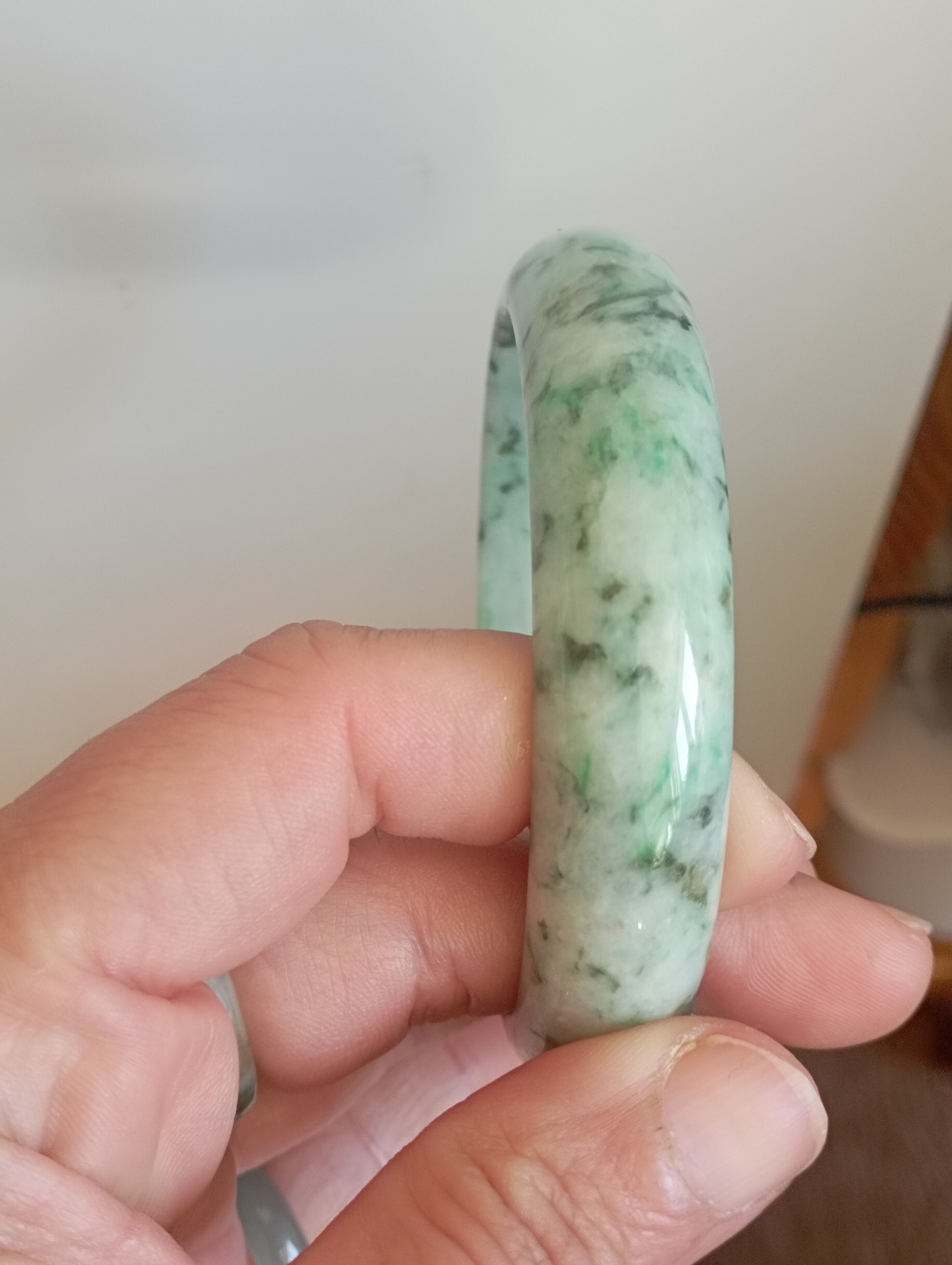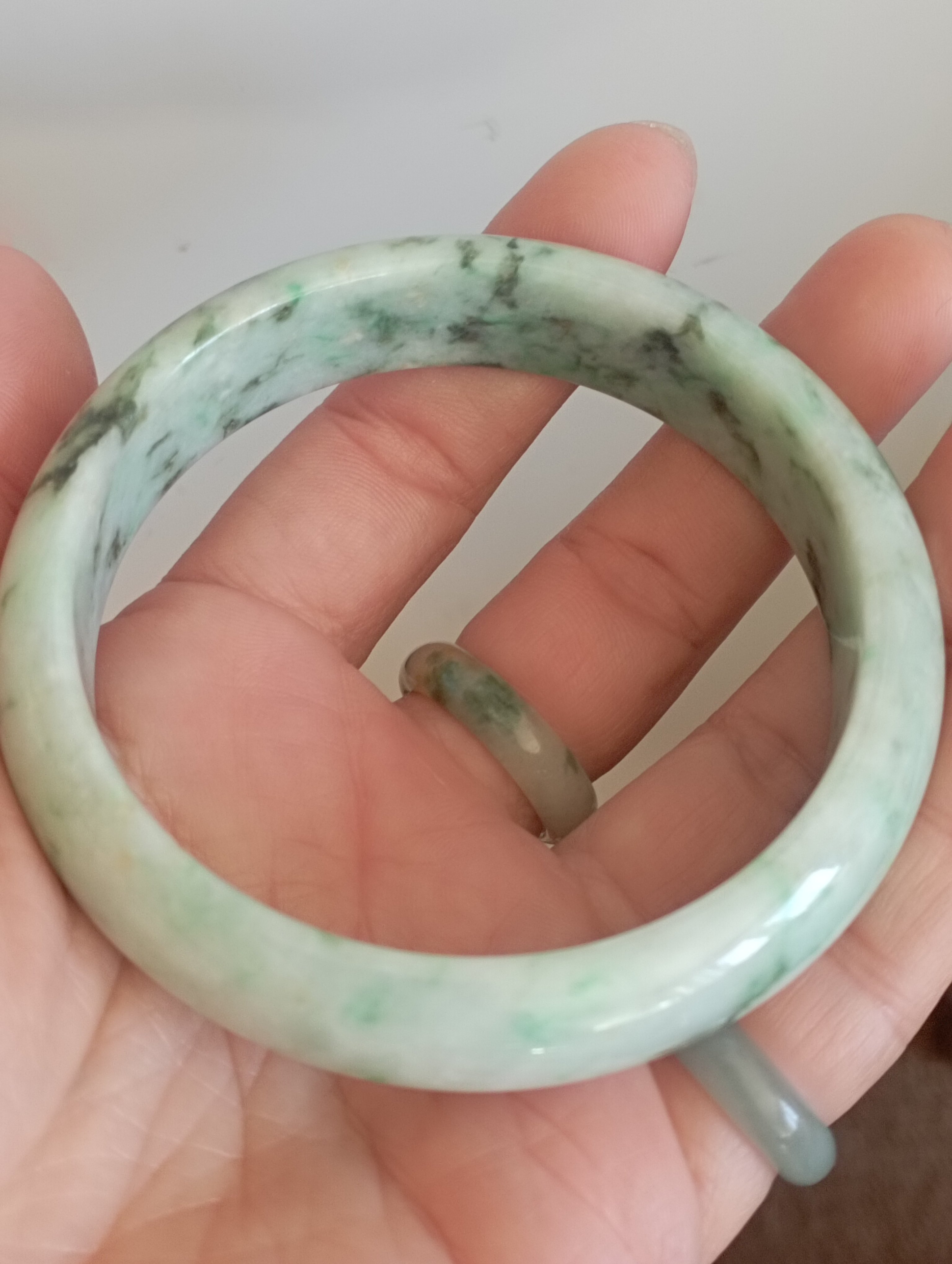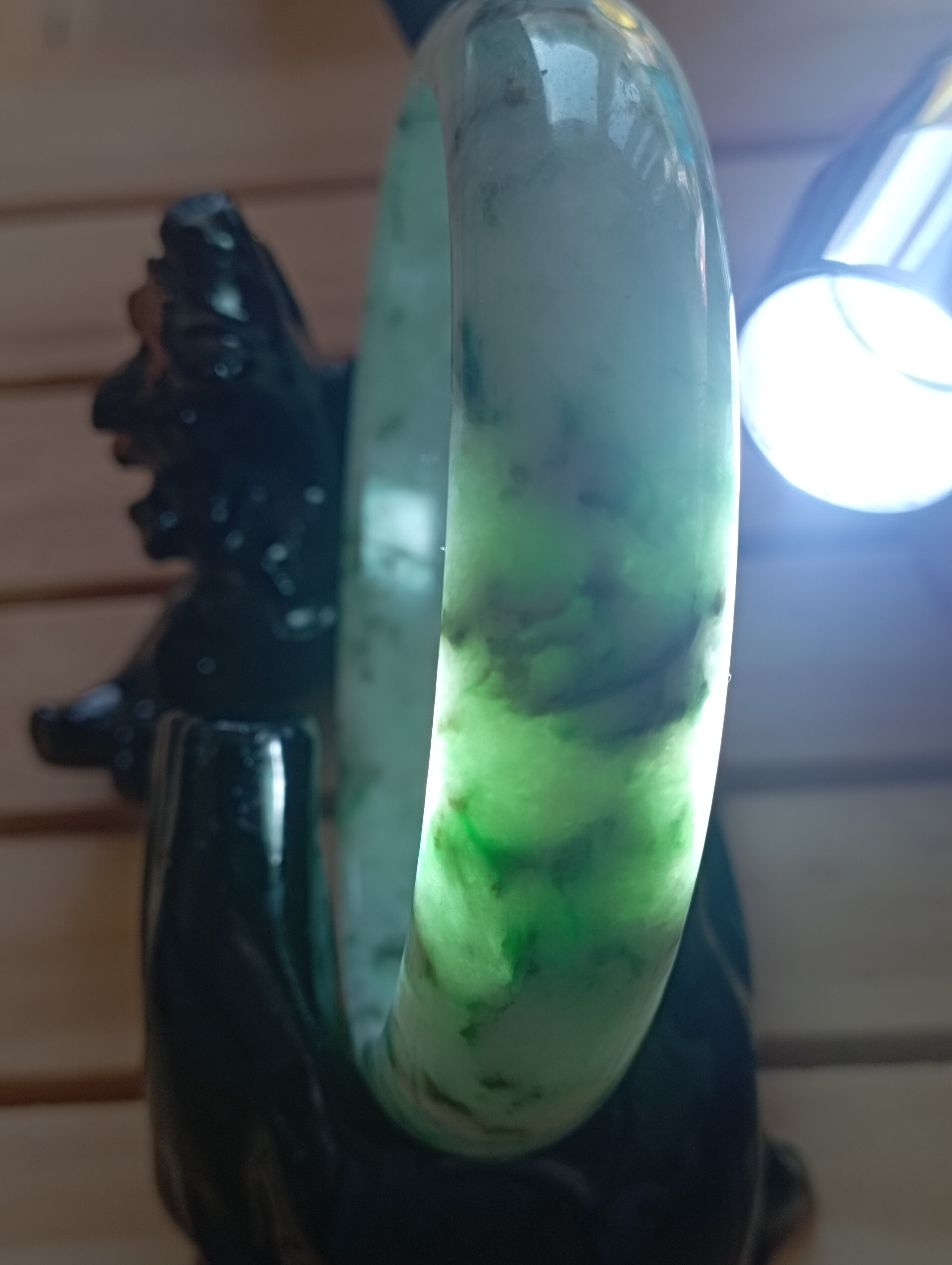 Beautiful green bangle with lots of apple green blooms. Measures 60.1 X 14.4 X 7.4mm, weighs 55.07g, comes with a certificate of authenticity £99