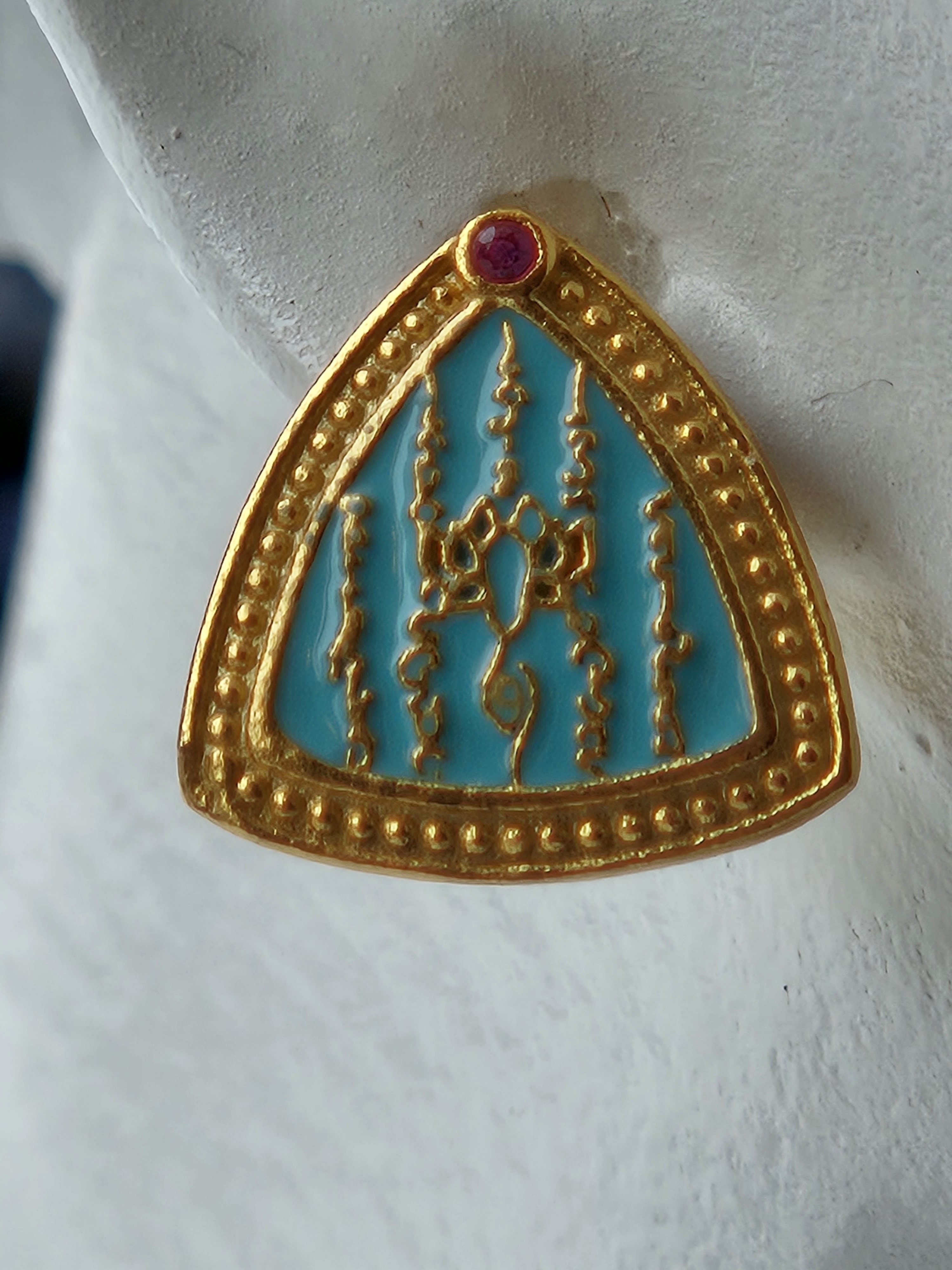 Over the centuries, either by accident or design, the original 5 lines of script which were written in Khom, an ancient Khmer language, underwent several changes and in recent years, several Sak Yant Ajarns have completely replaced the original 5 lines of script with lines of their own.