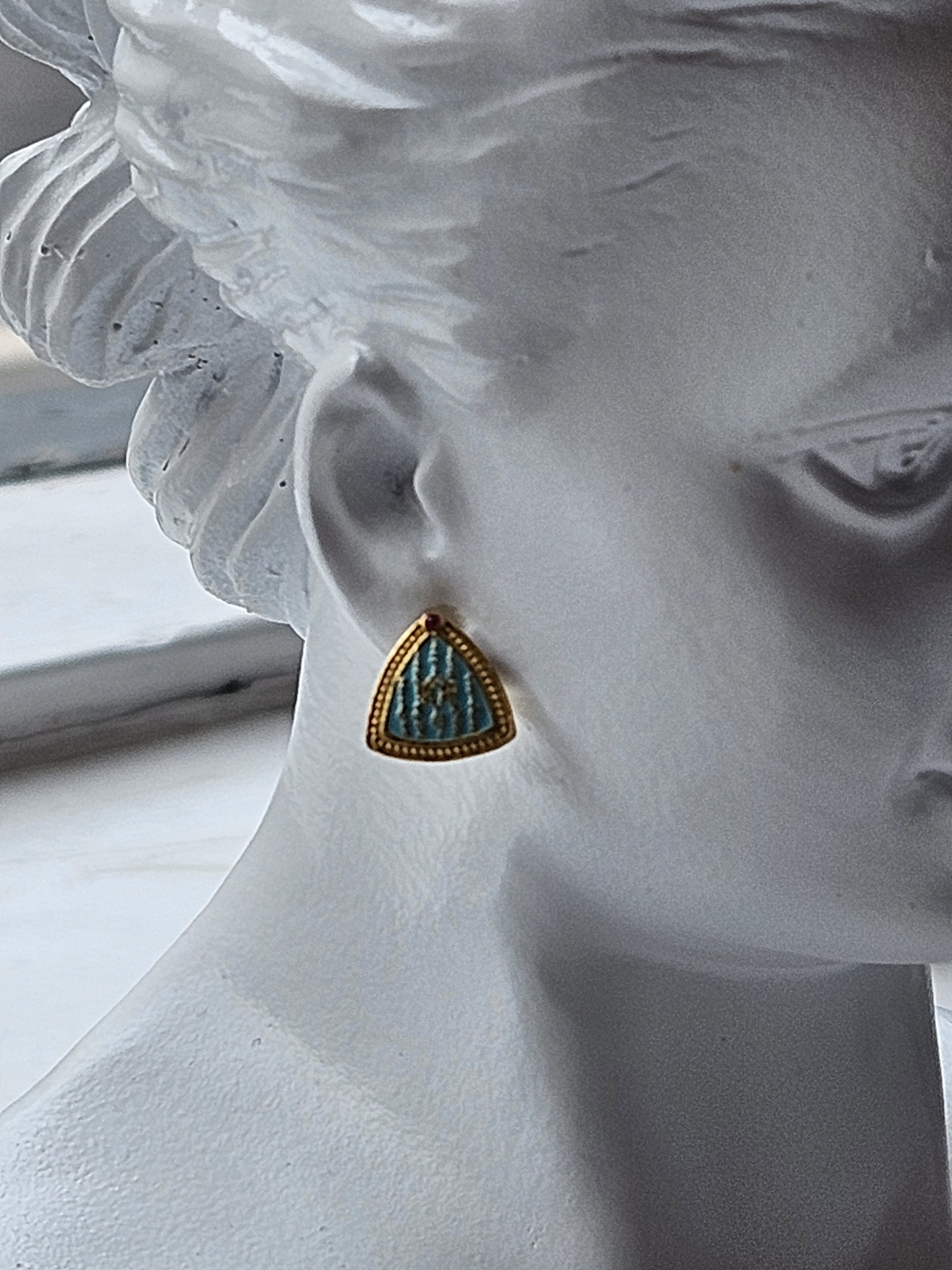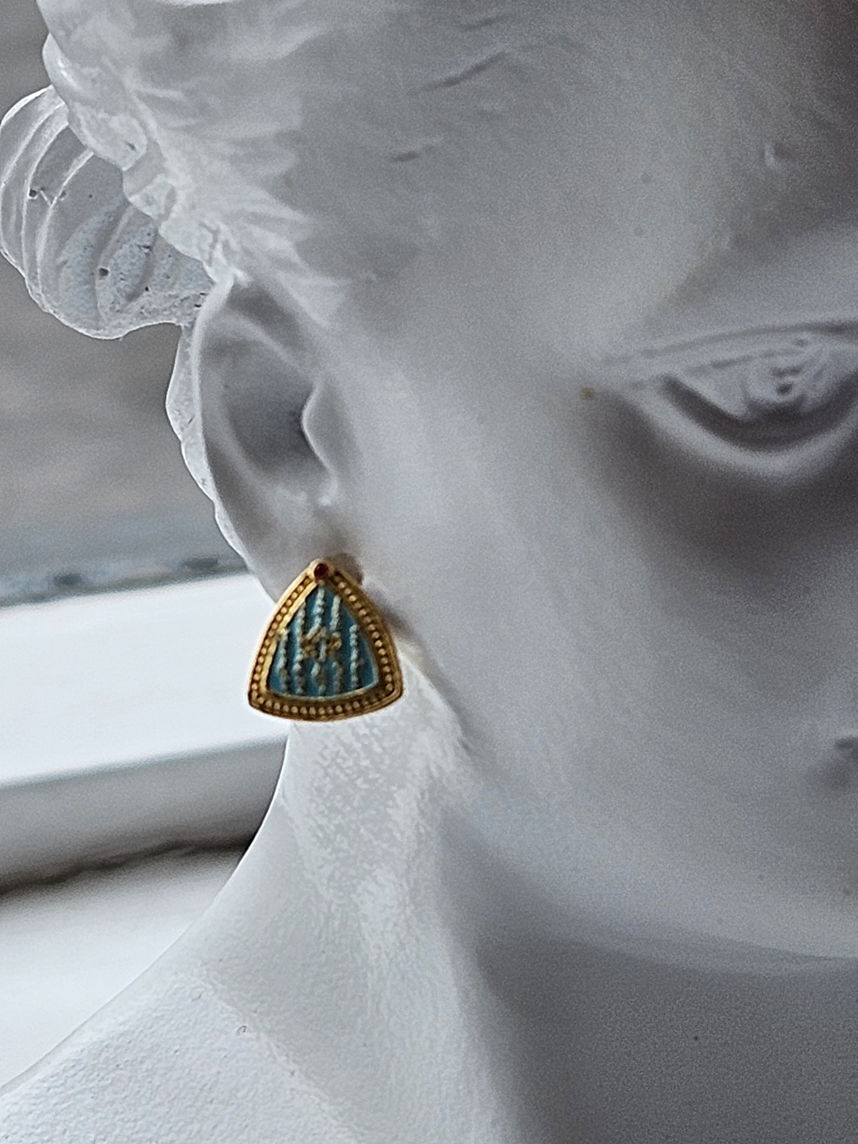 I have only two pairs of these sterling silver plated gold stud earrings with silicon backings inscribed with the lines. They are £24 per pair