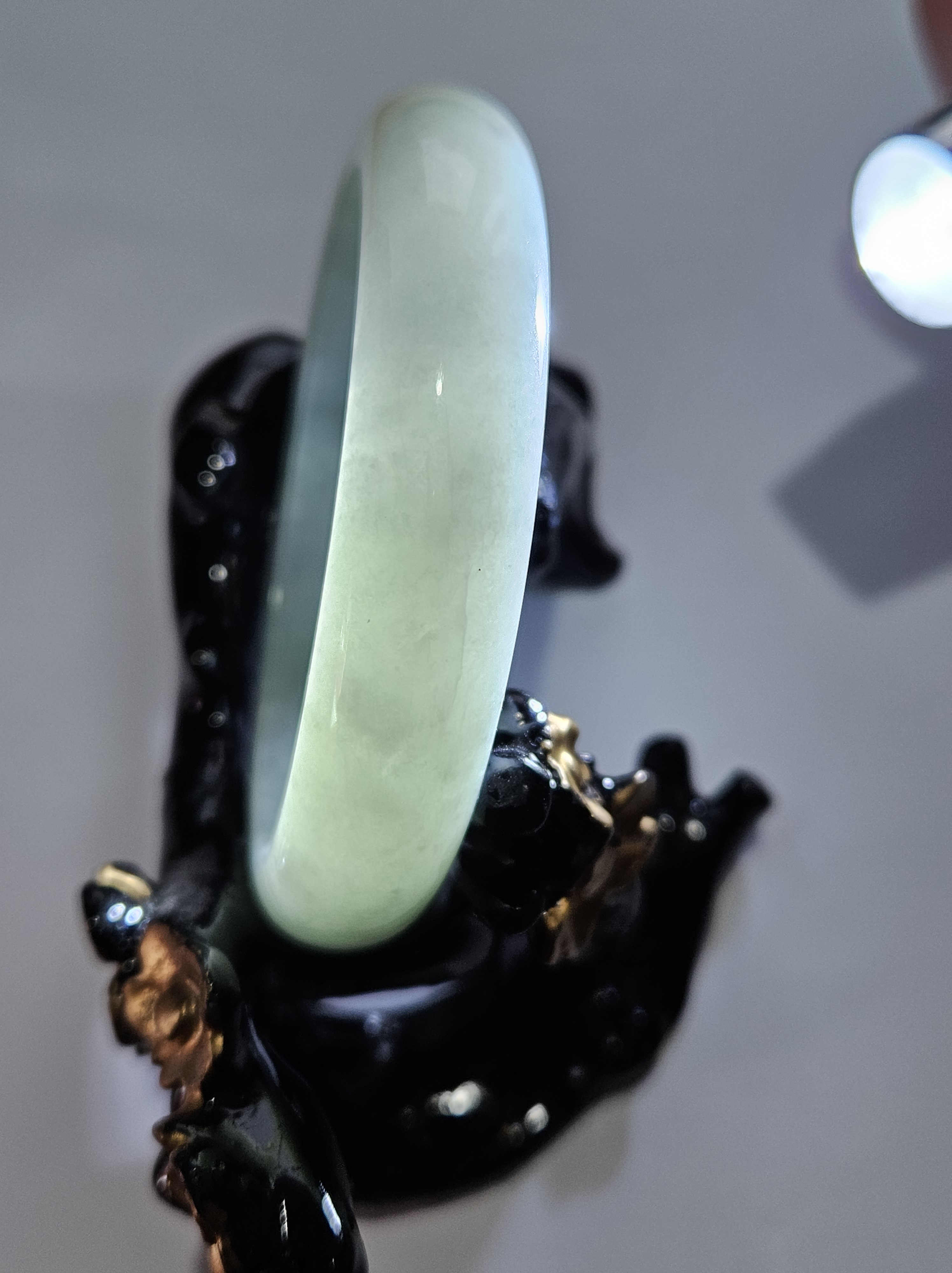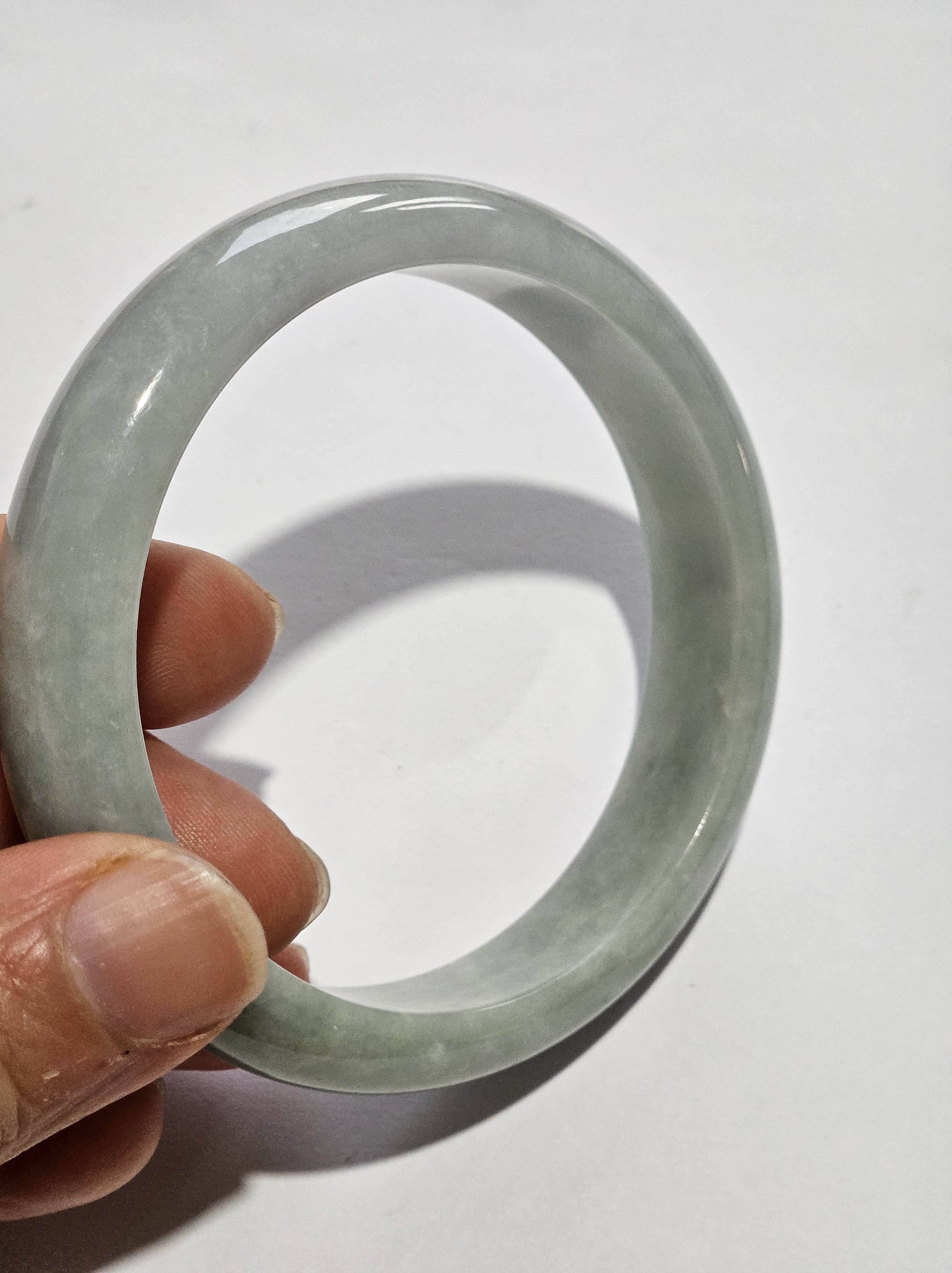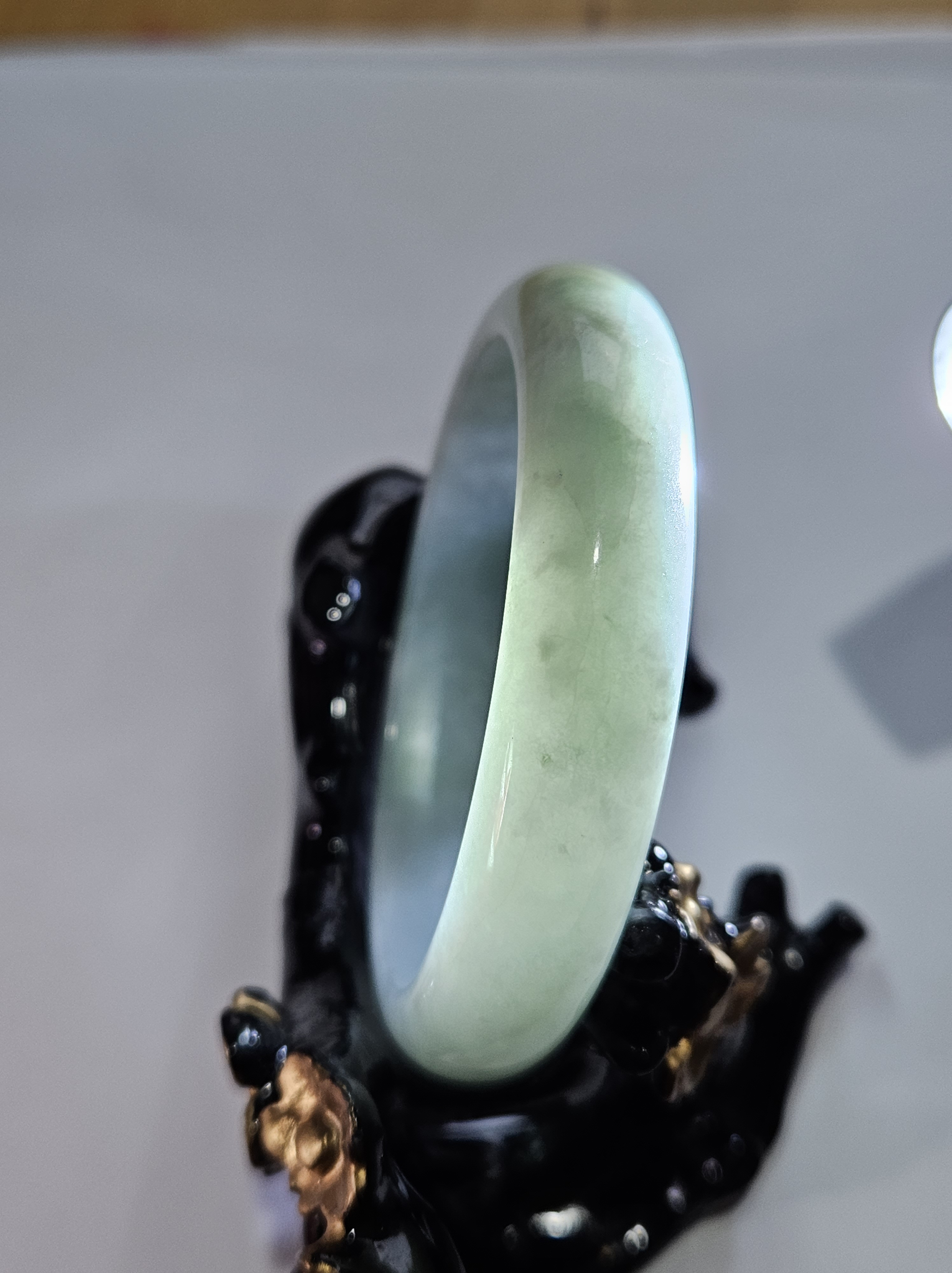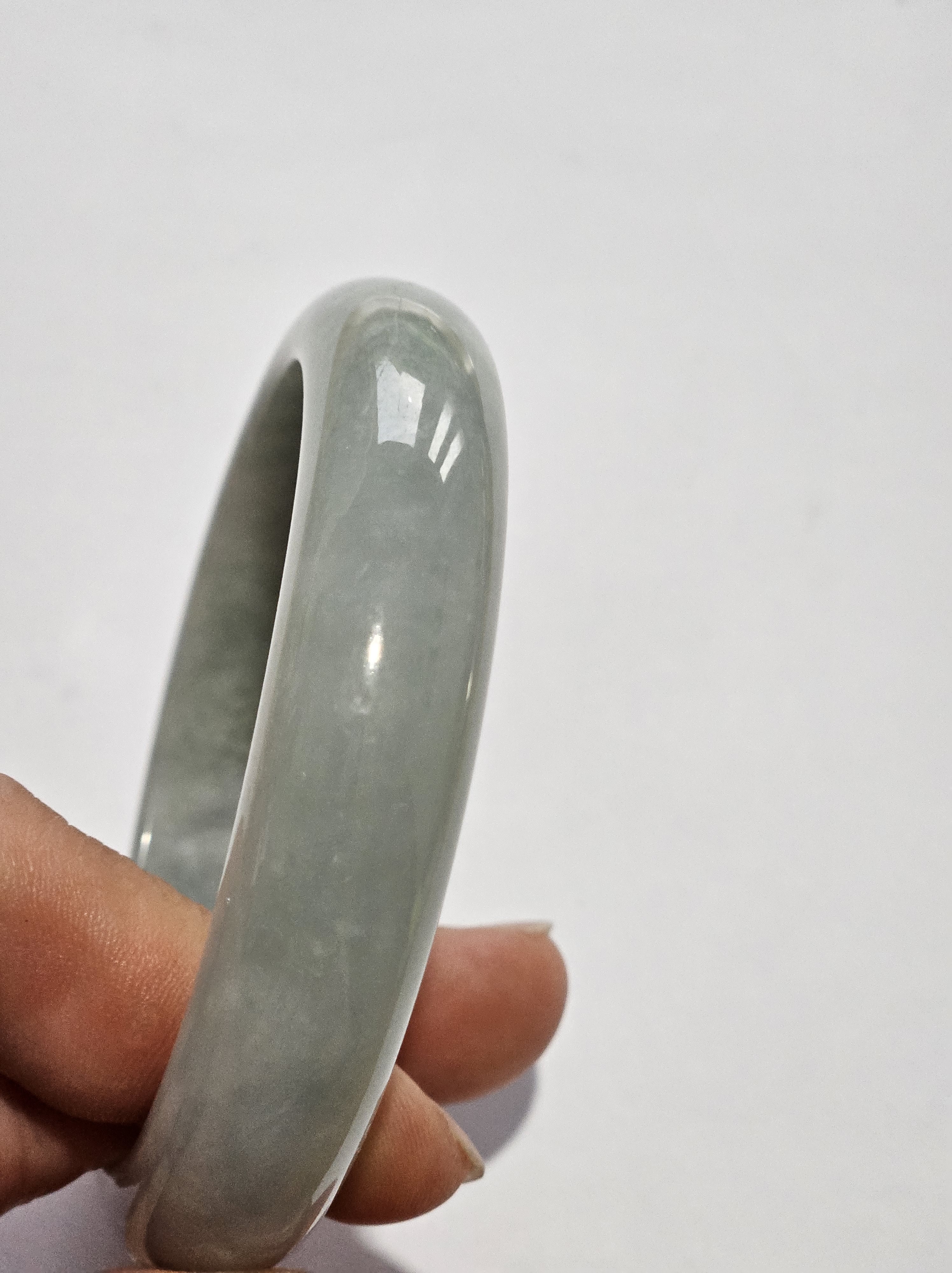 Unusual sky blue natural Burmese jade bangle measures 57 x 13.3 x 8.3mm, weighs 55.25g, comes with a certificate of authenticity £288