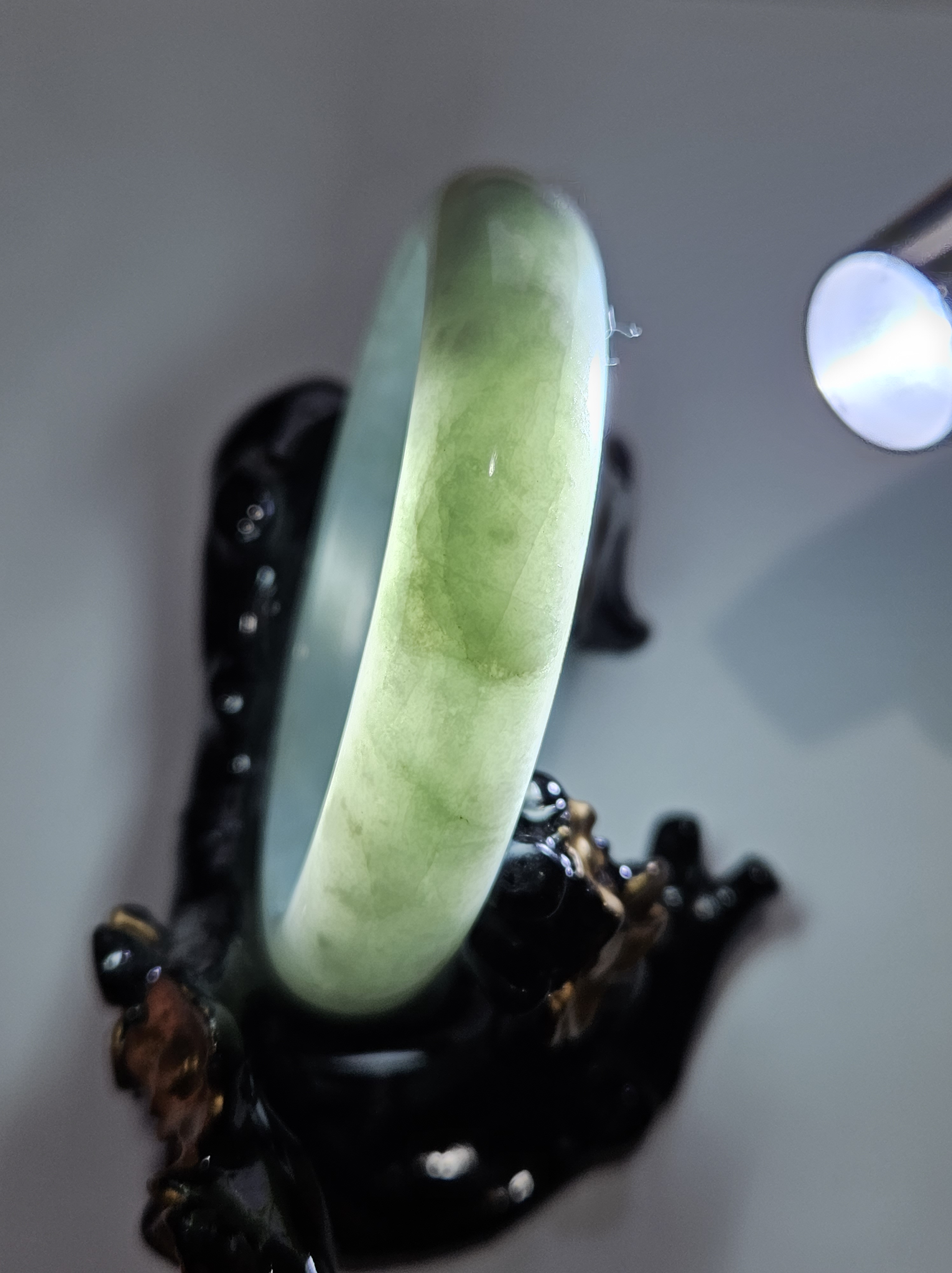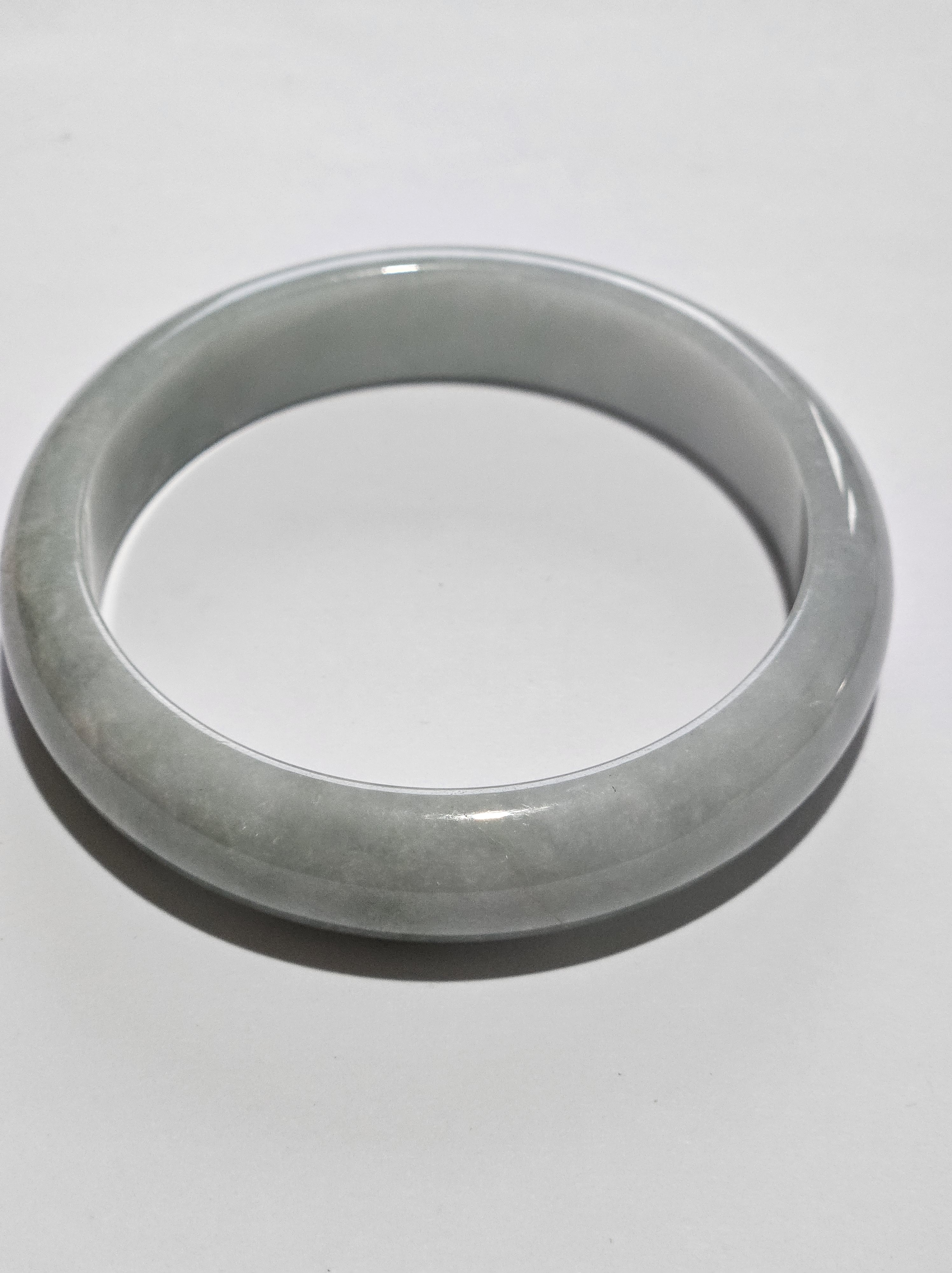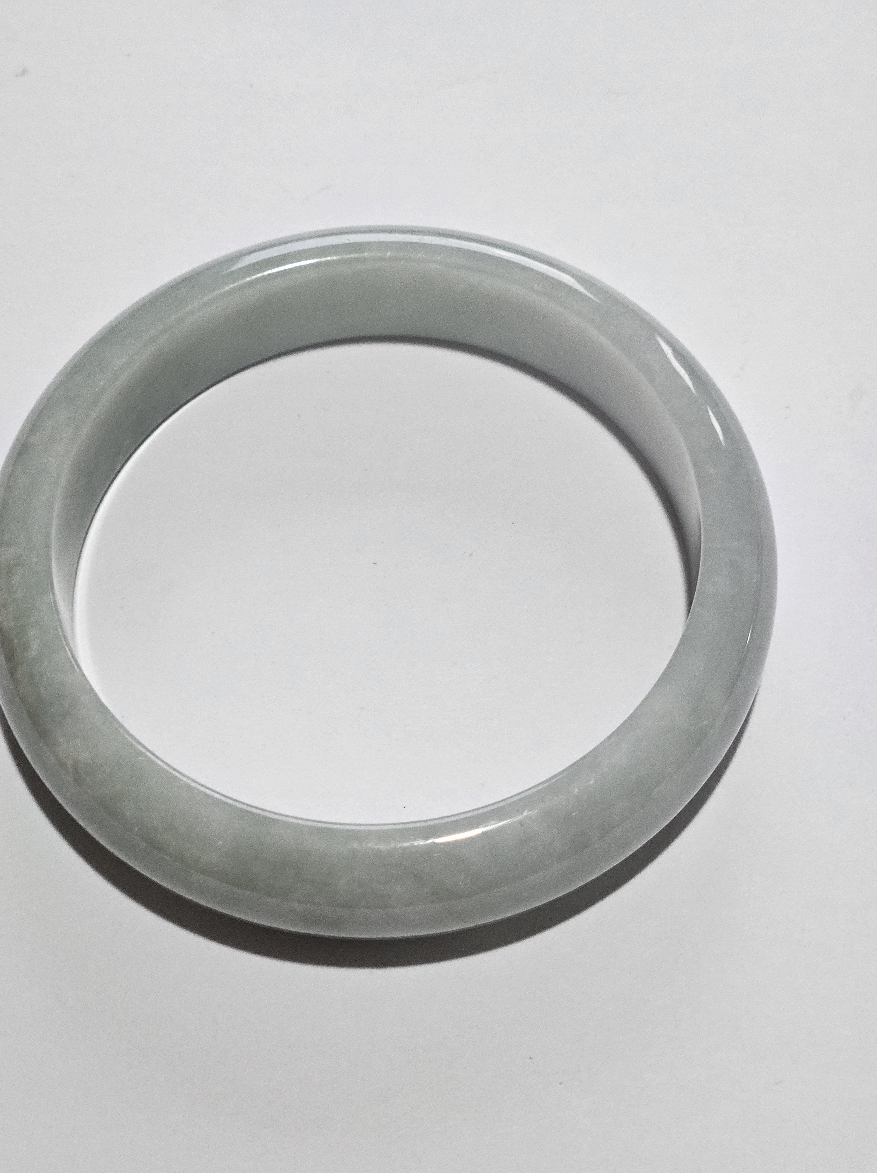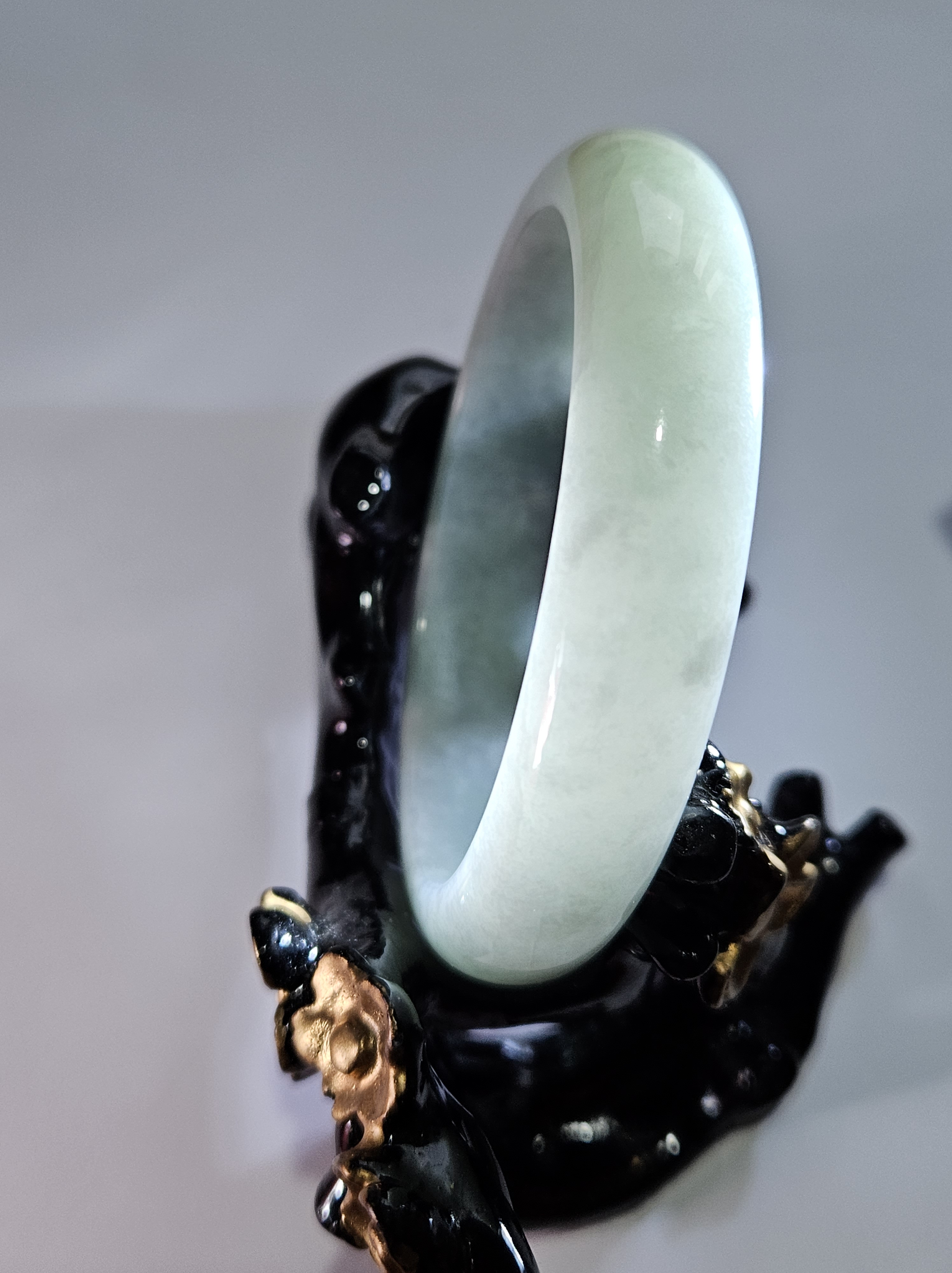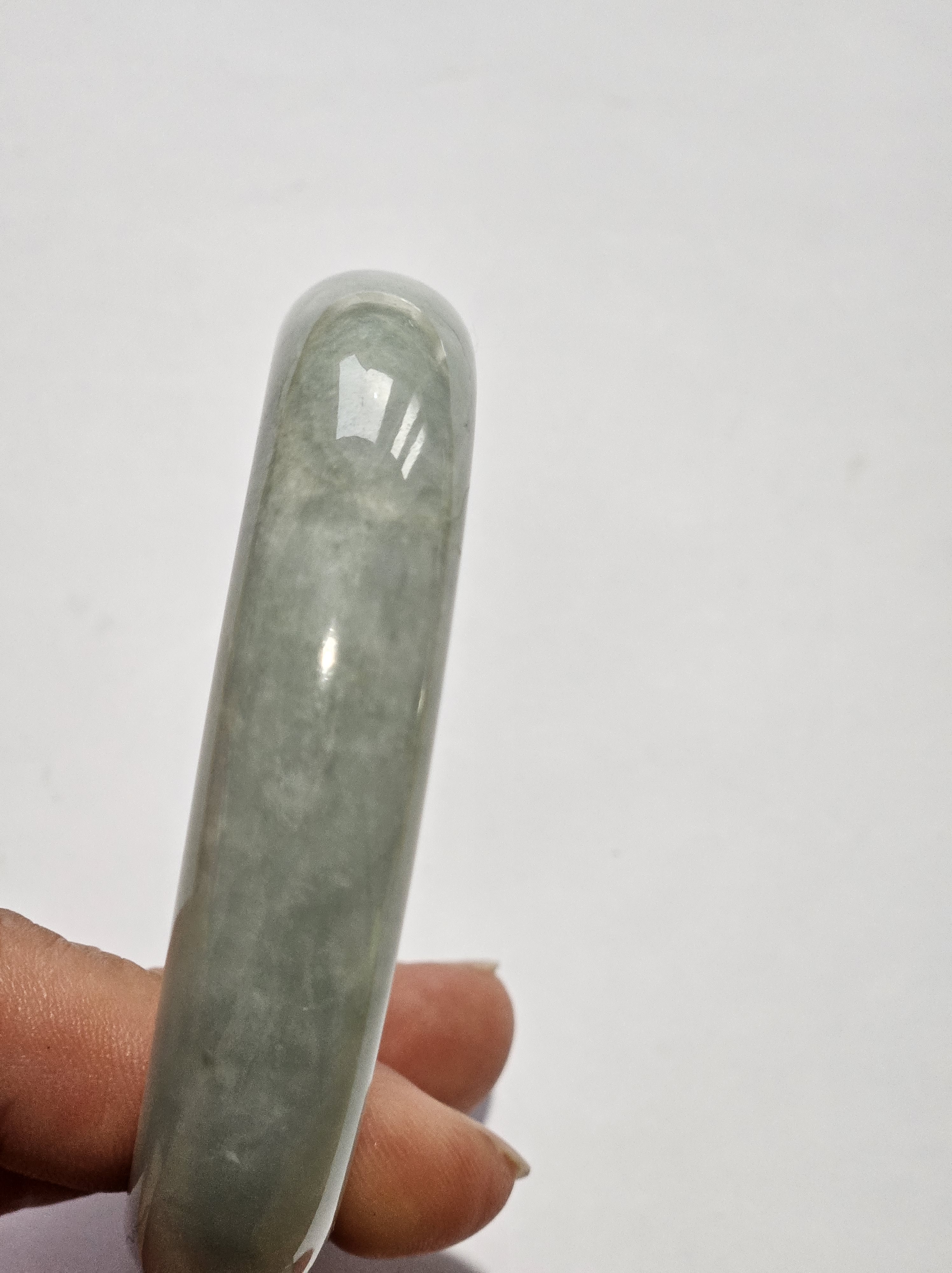 Unusual sky blue natural Burmese jade bangle measures 57 x 13.3 x 8.3mm, weighs 55.25g, comes with a certificate of authenticity £288