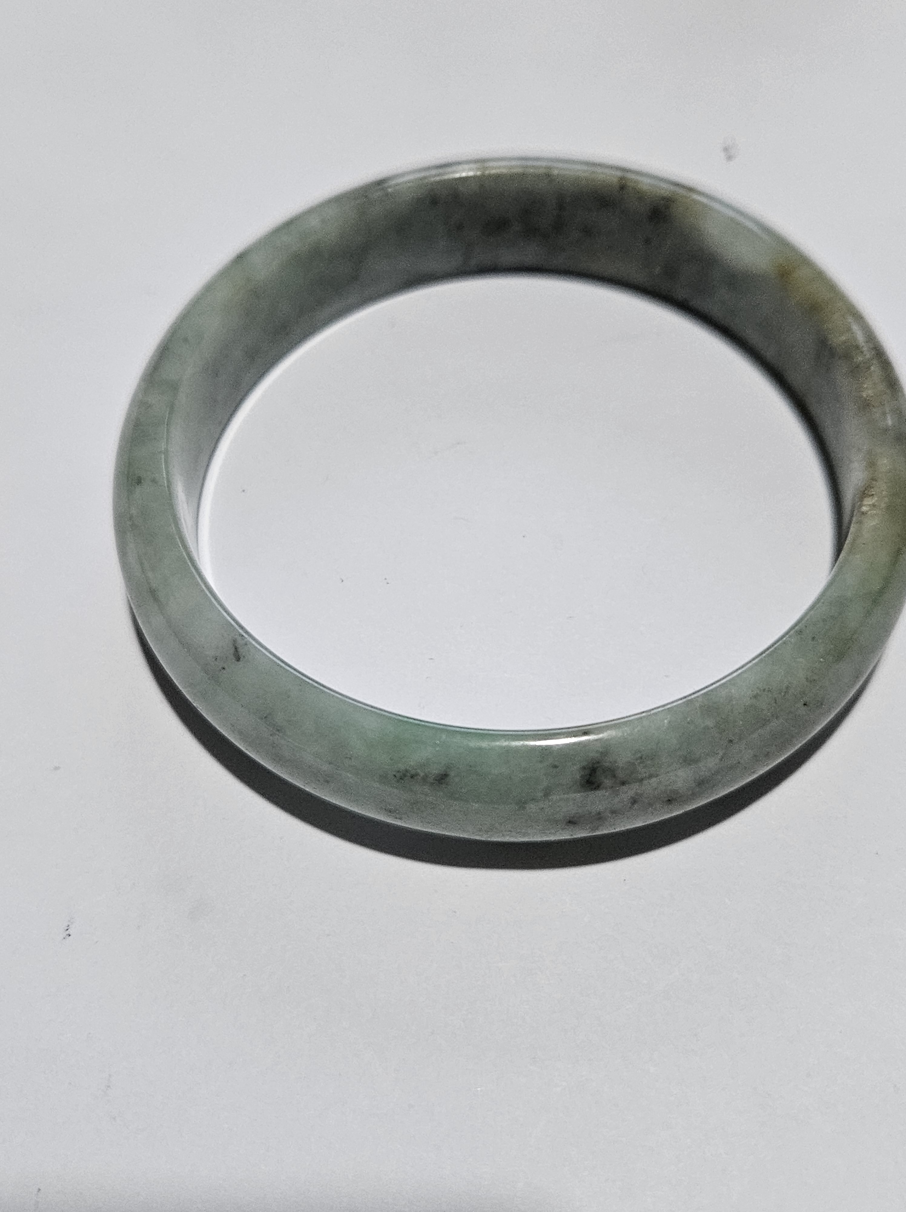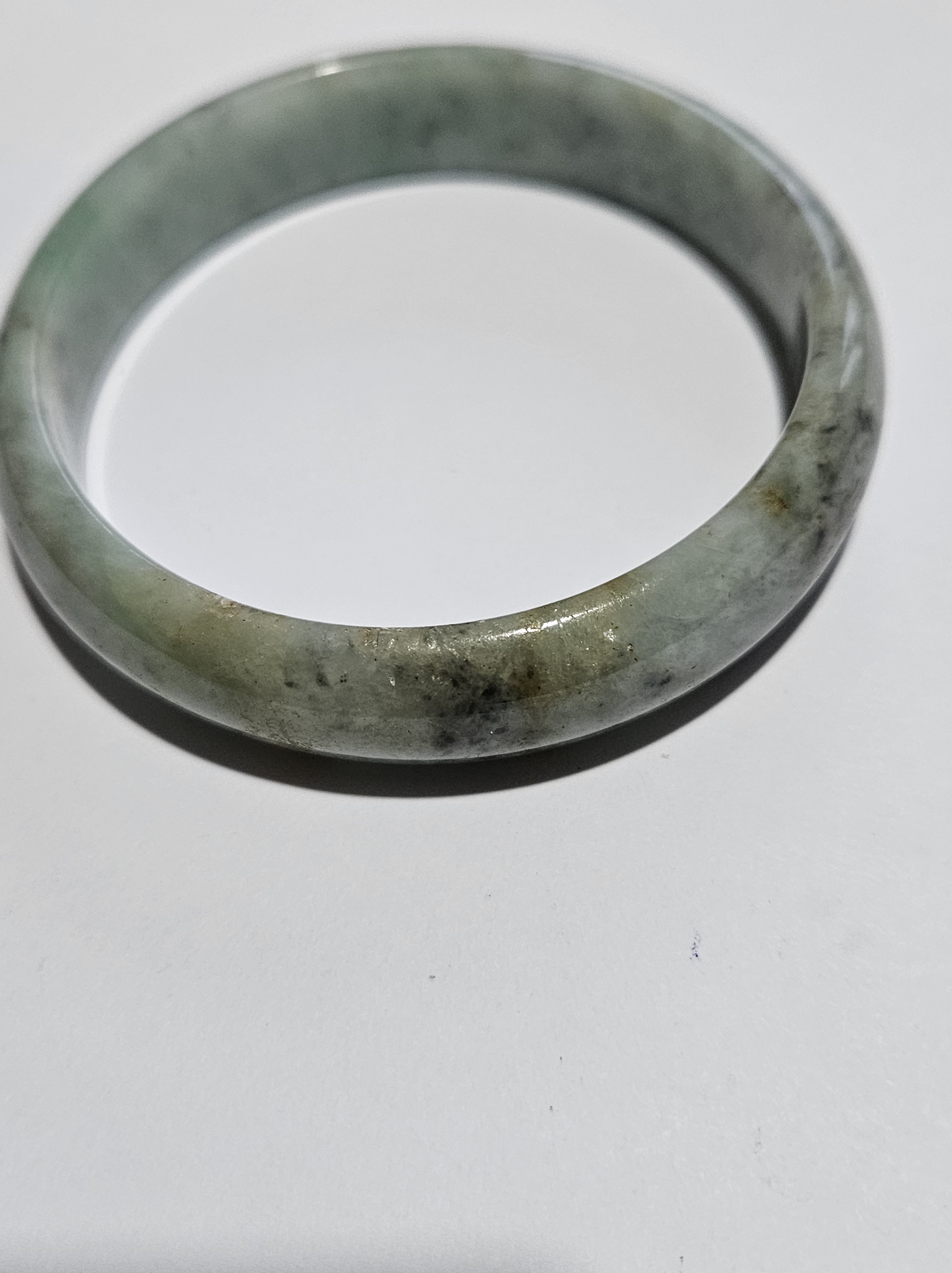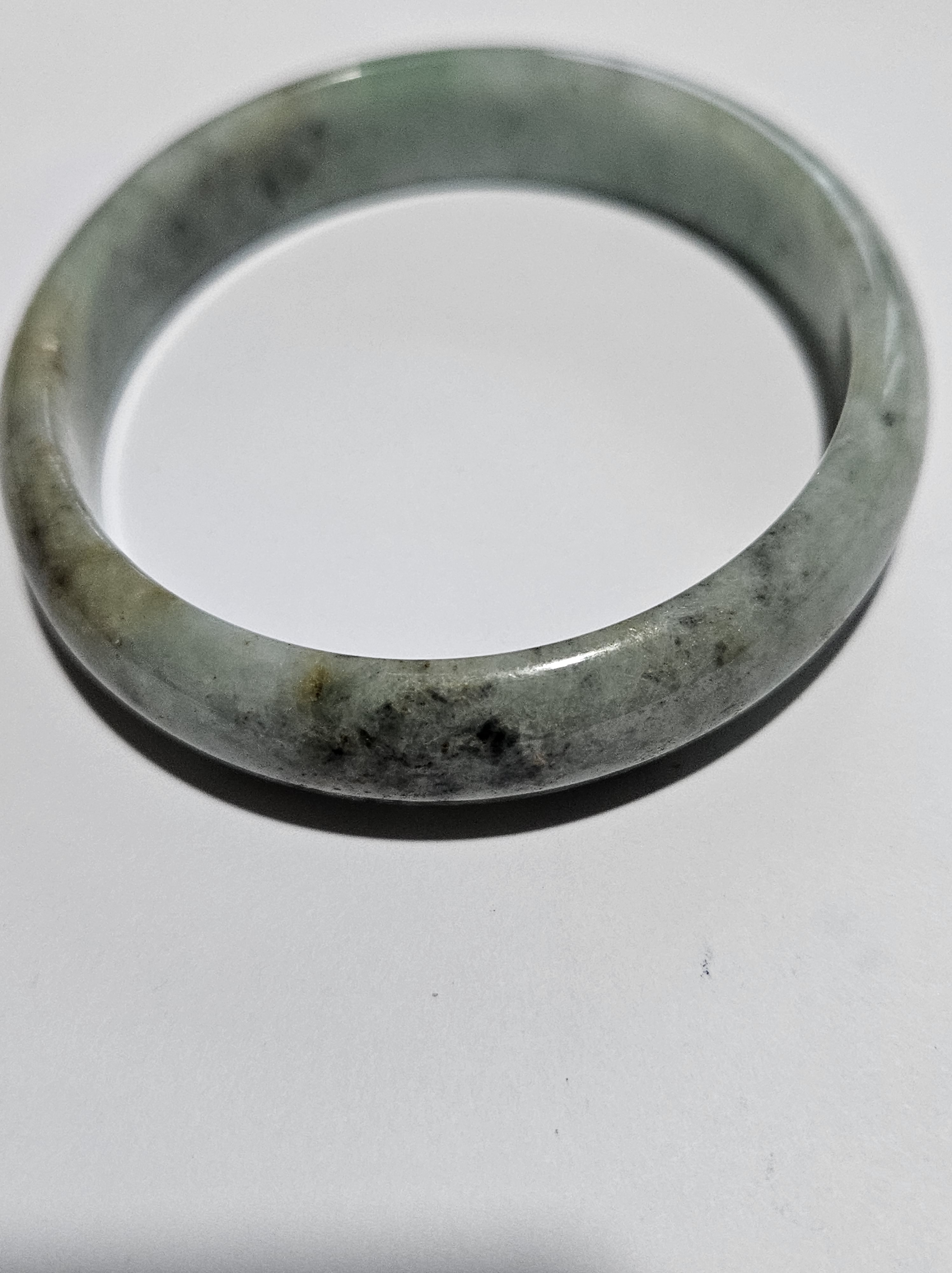 Gorgeous green bangle with yellow that attract wealth and smoky grey that repel negative forces, measures 56.5 x 13.2 x 6.5mm. Weighs 41.55g, comes with a certificate of authenticity £95, grab a bargain before it is gone.