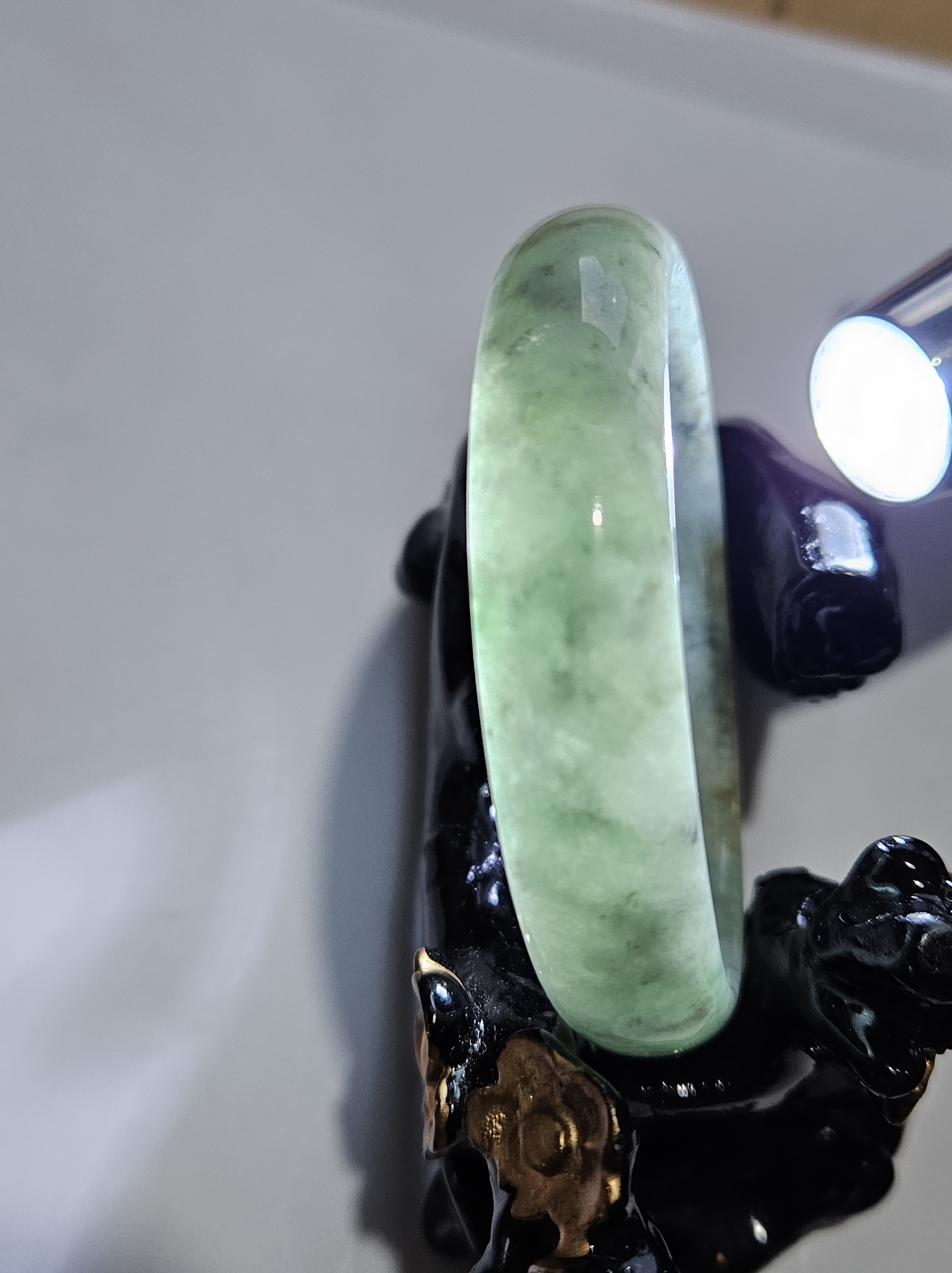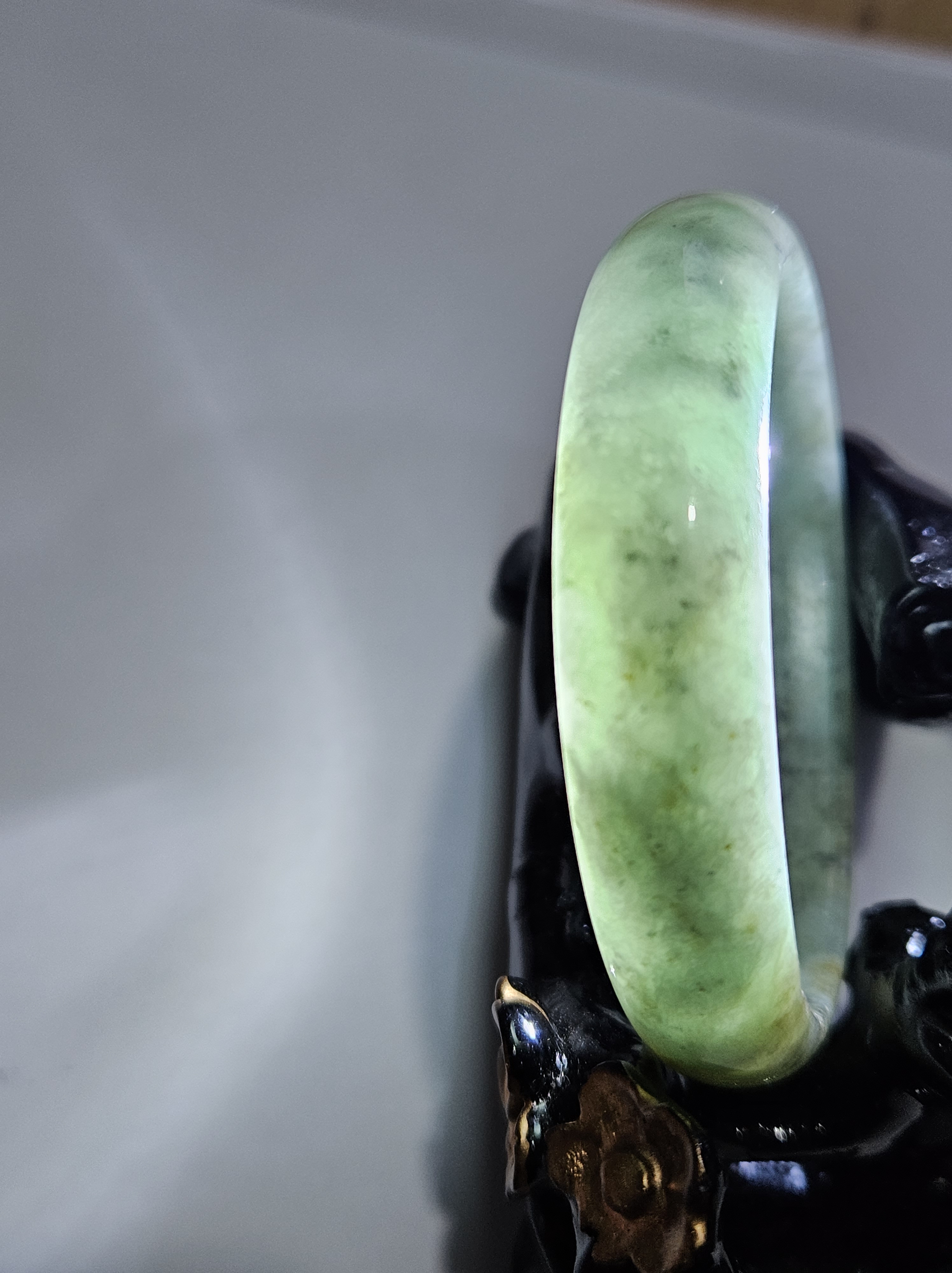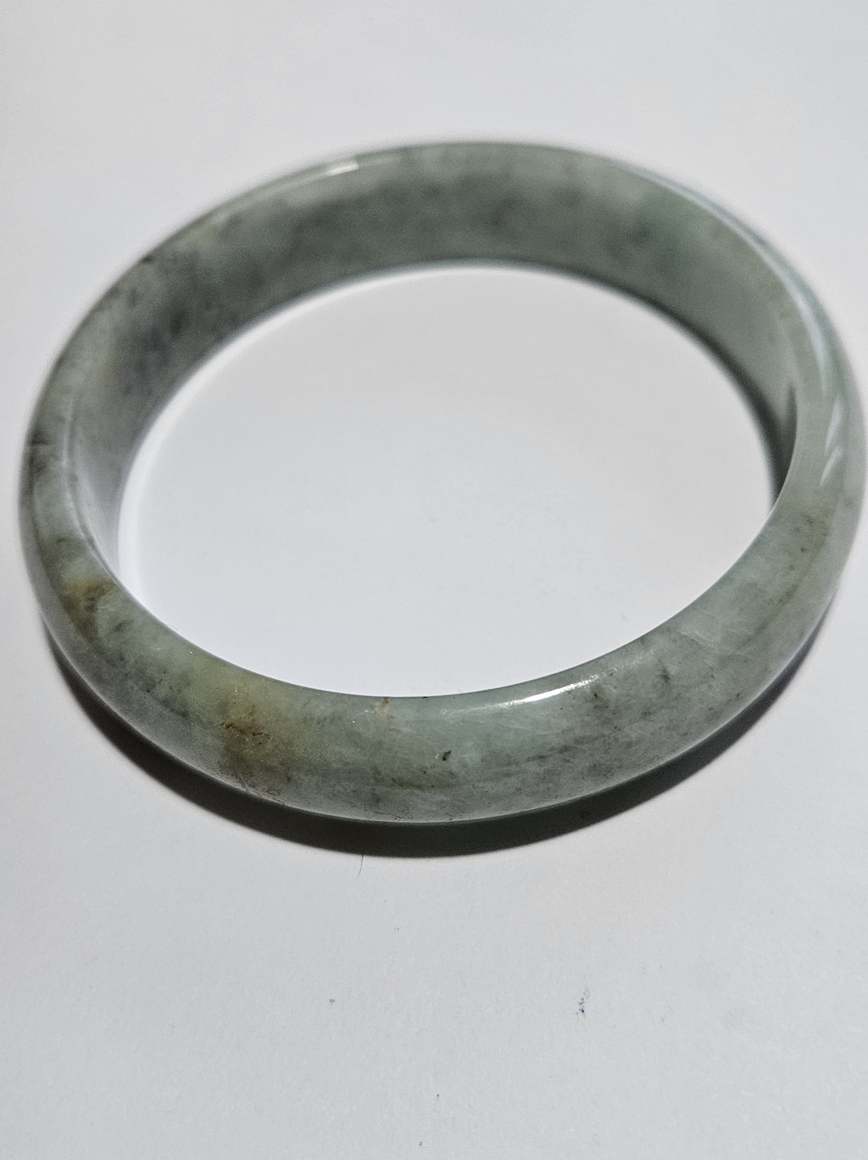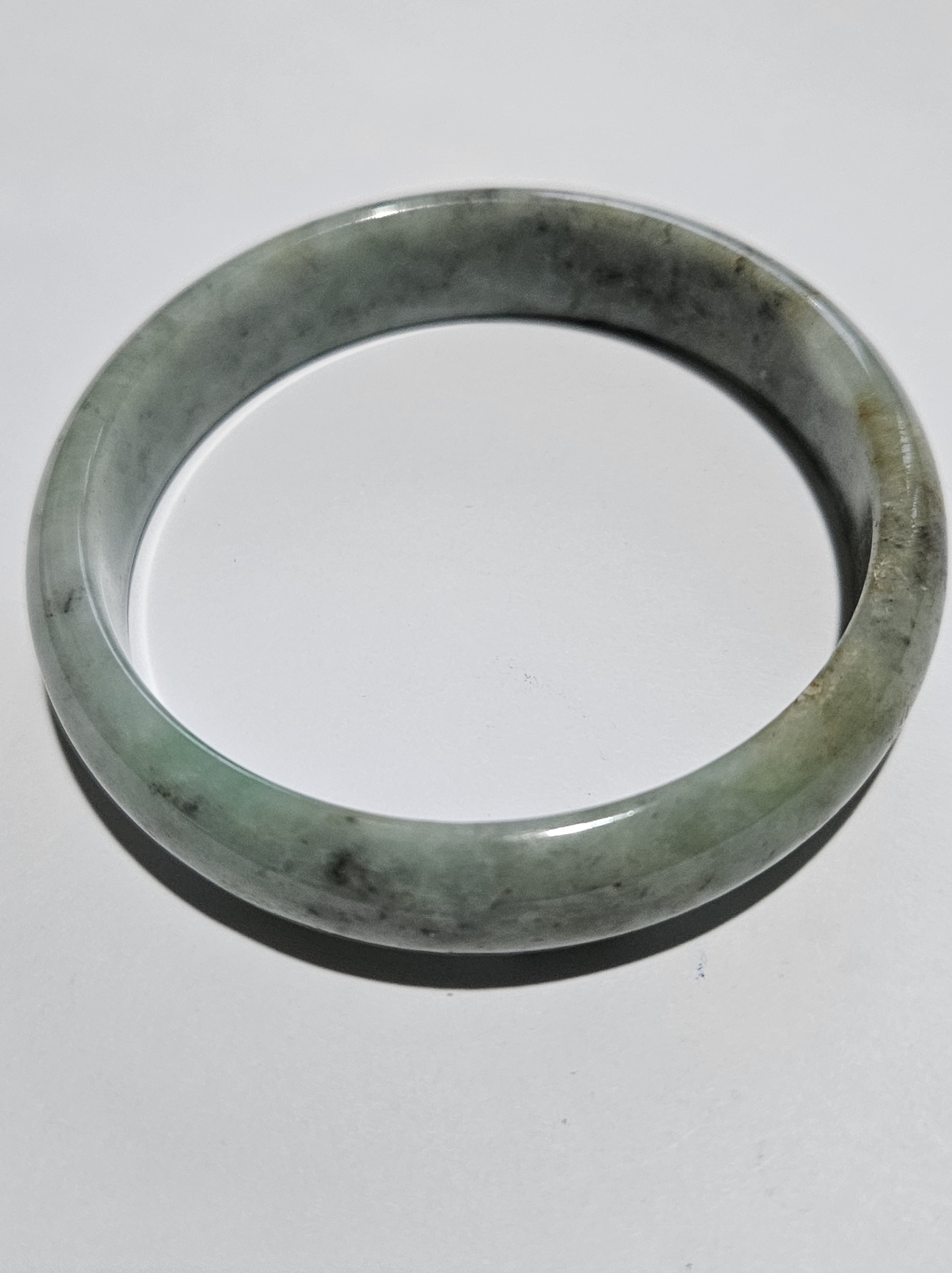Gorgeous green bangle with yellow that attract wealth and smoky grey that repel negative forces, measures 56.5 x 13.2 x 6.5mm. Weighs 41.55g, comes with a certificate of authenticity £95, grab a bargain before it is gone.