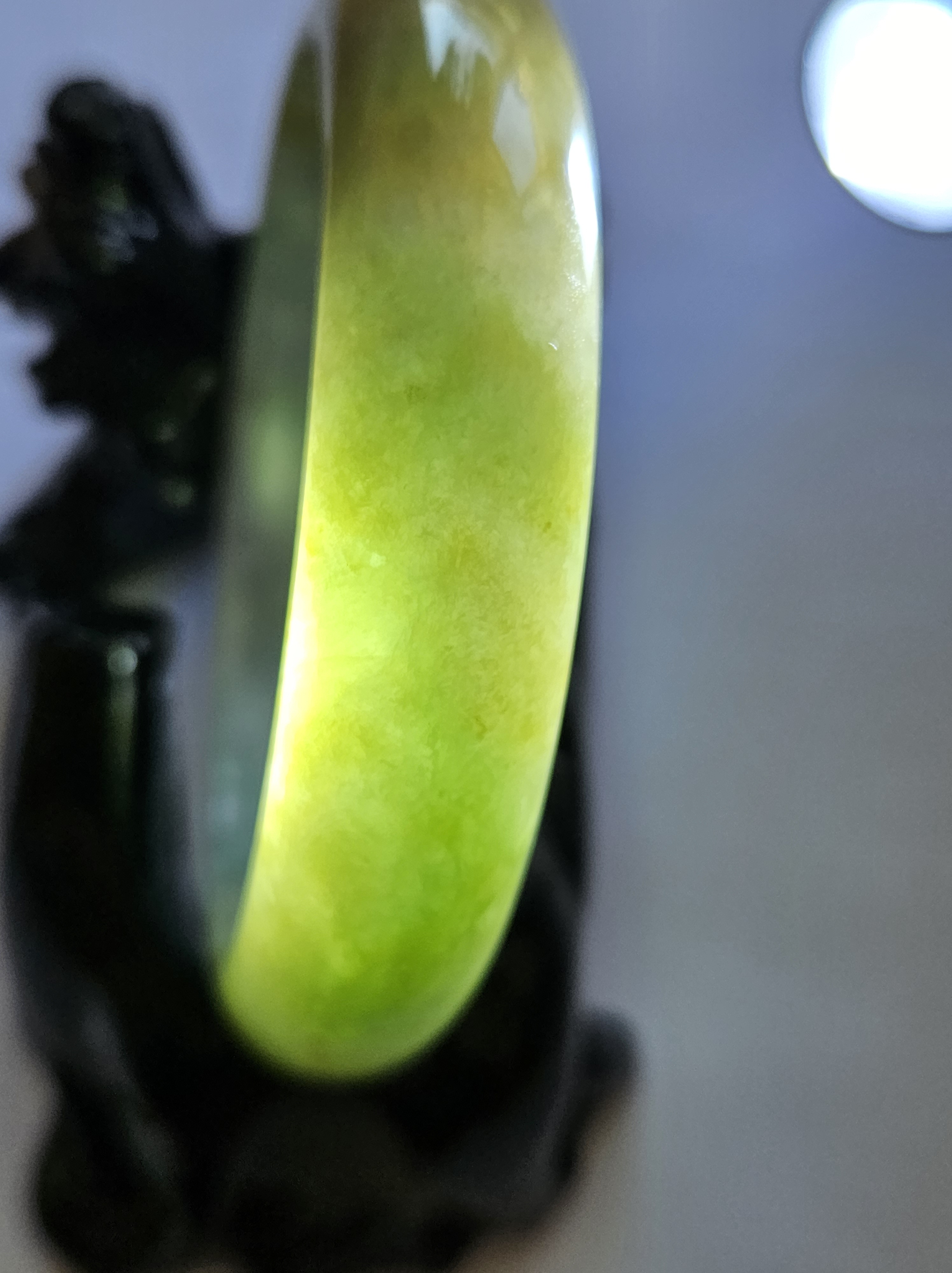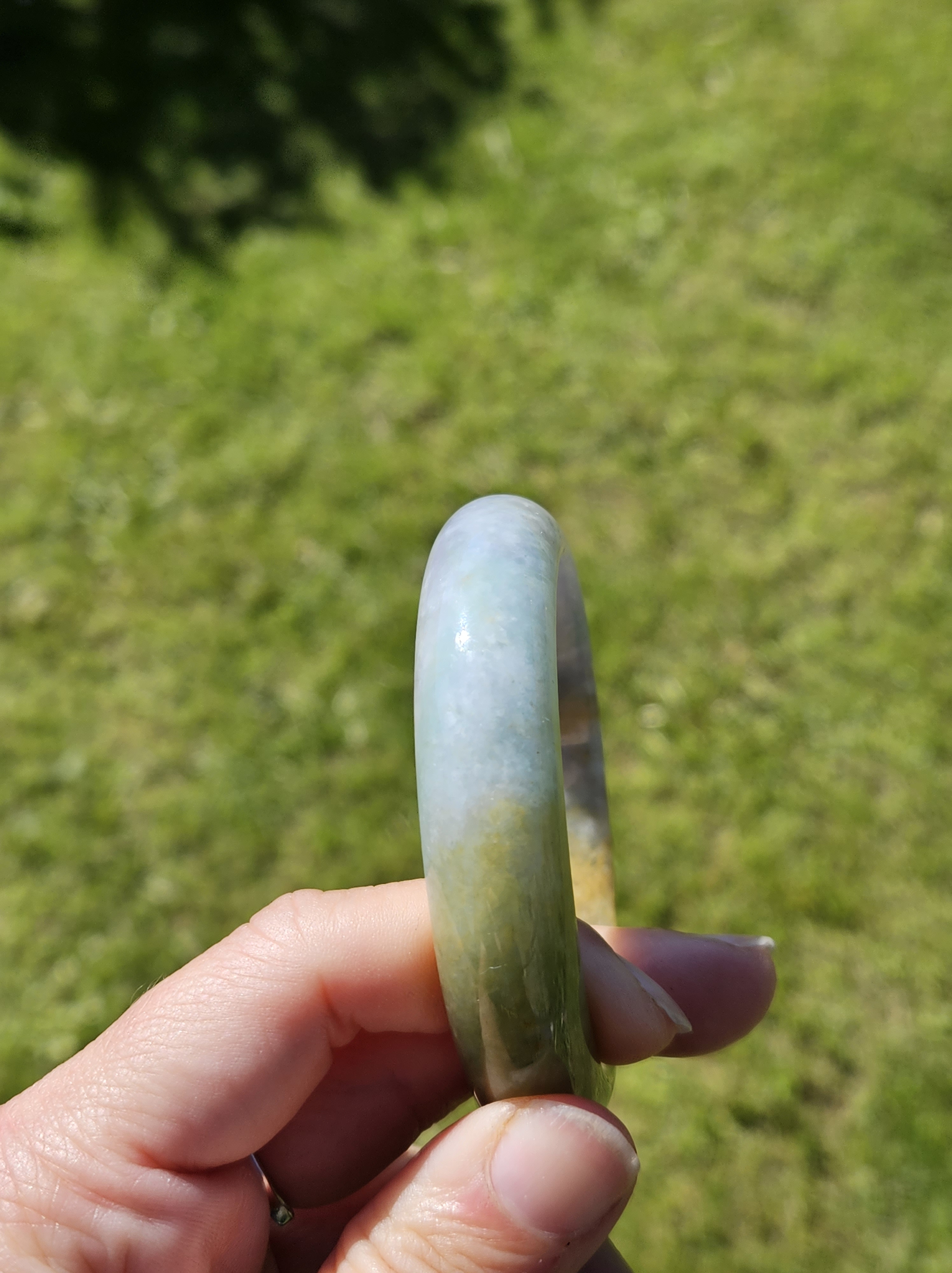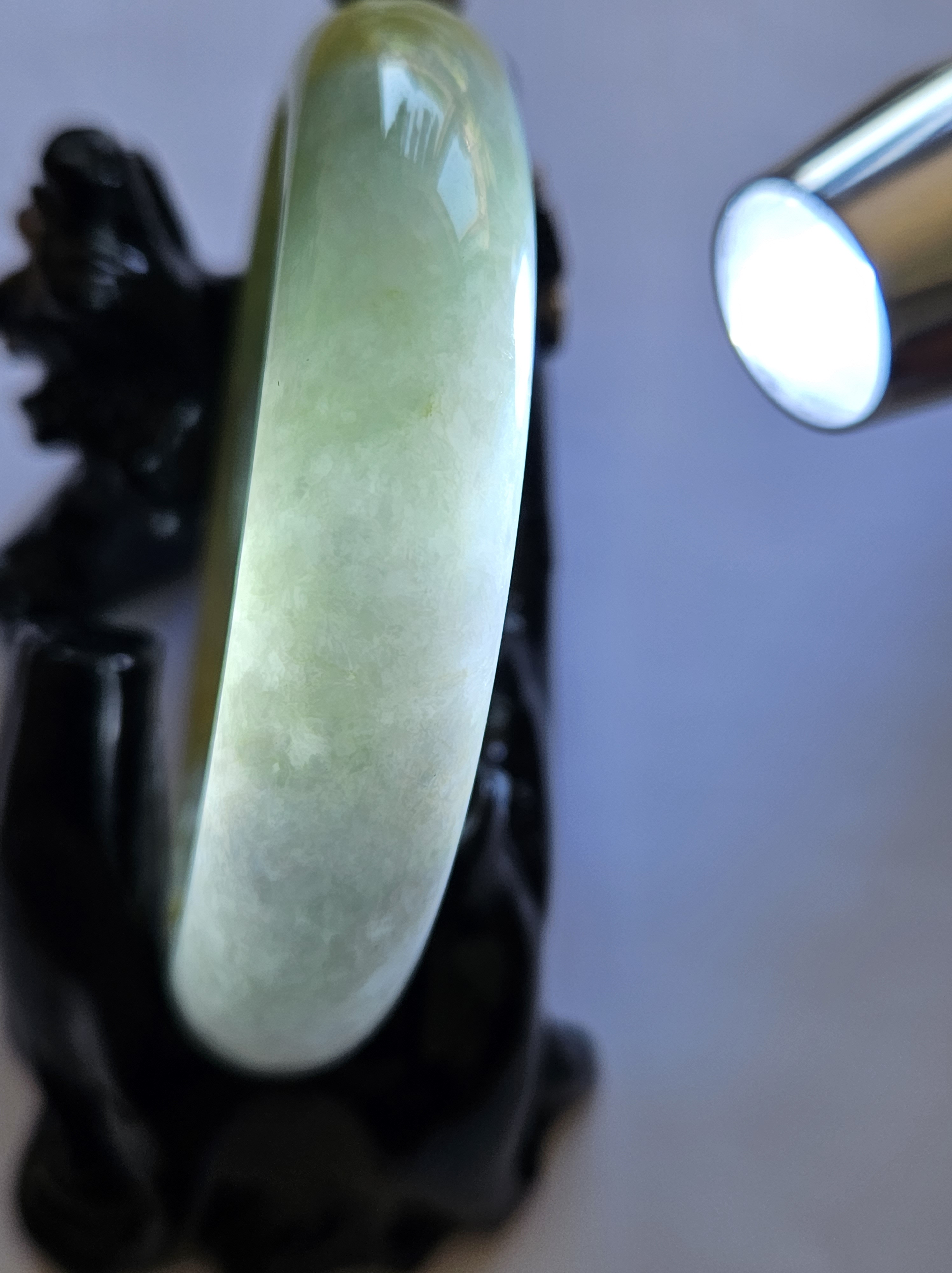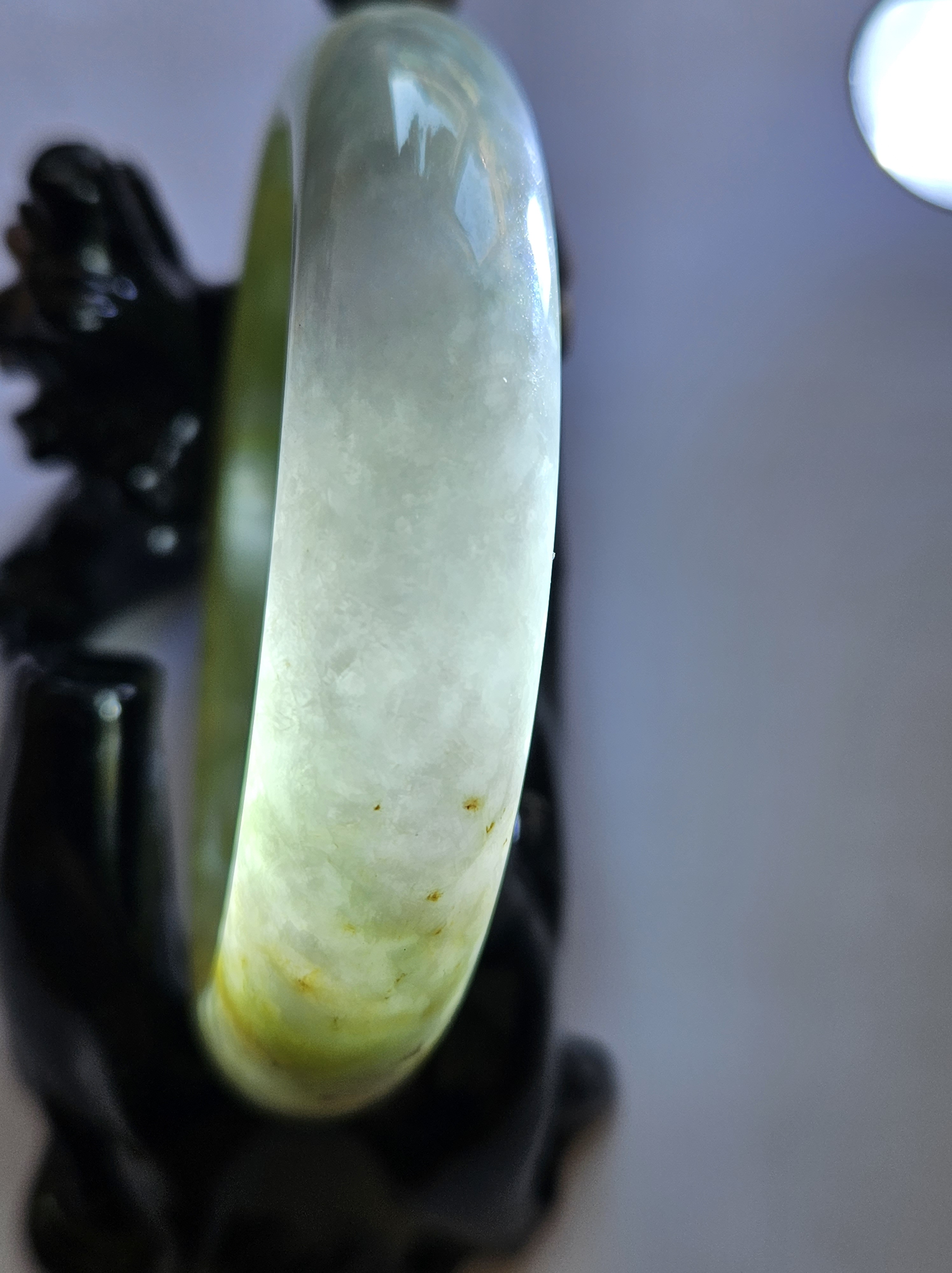 Stunning Burmese jadeite bangle with green,yellow and purple also known as Fulushou福禄寿 signifying good fortune, prosperity and longevity. The colours are natural and will add value as time goes. Measures 57.2 x 14.2 x 8.1mm, weighs 62.49g, comes with a certificate of authenticity £1380