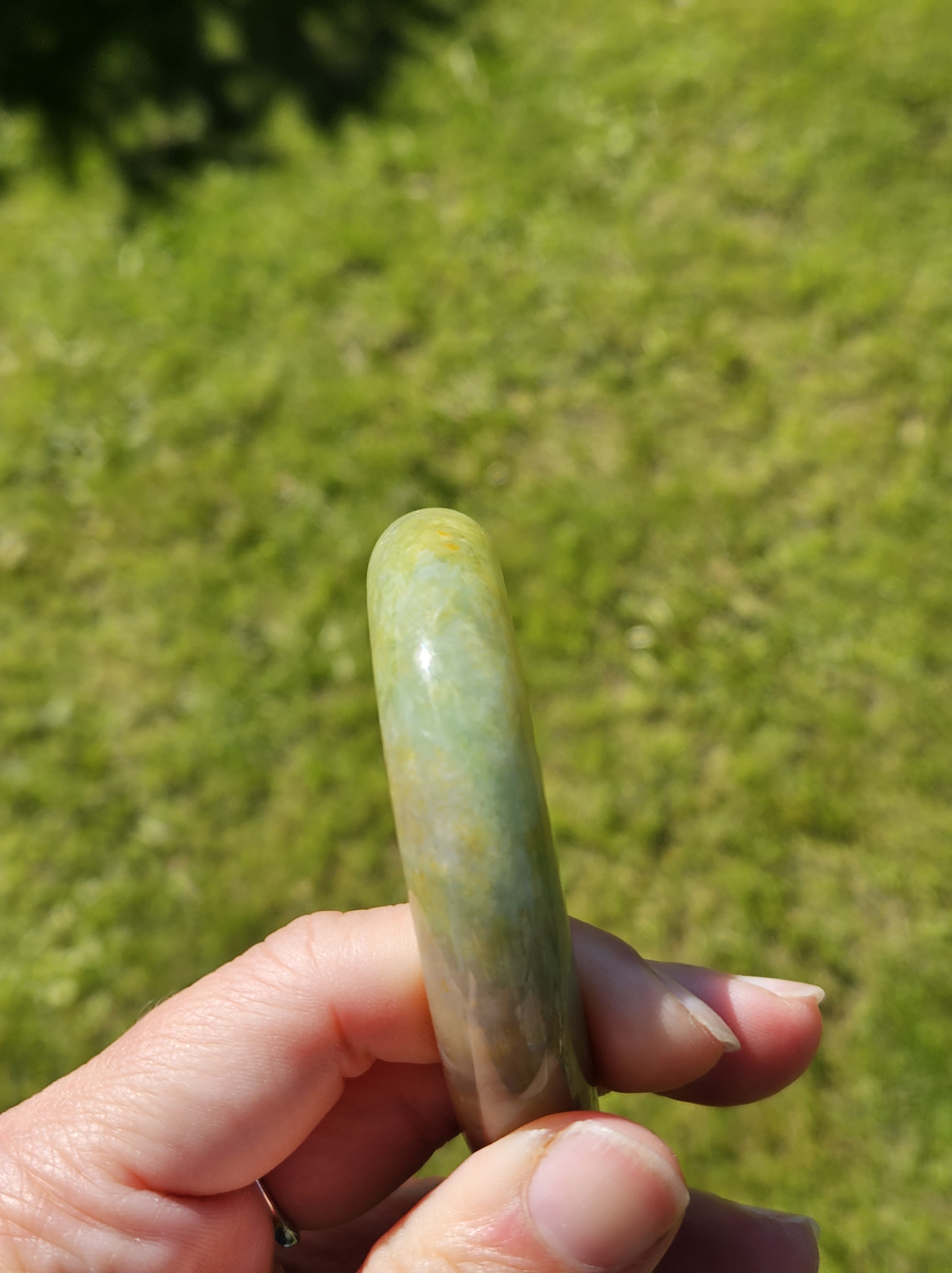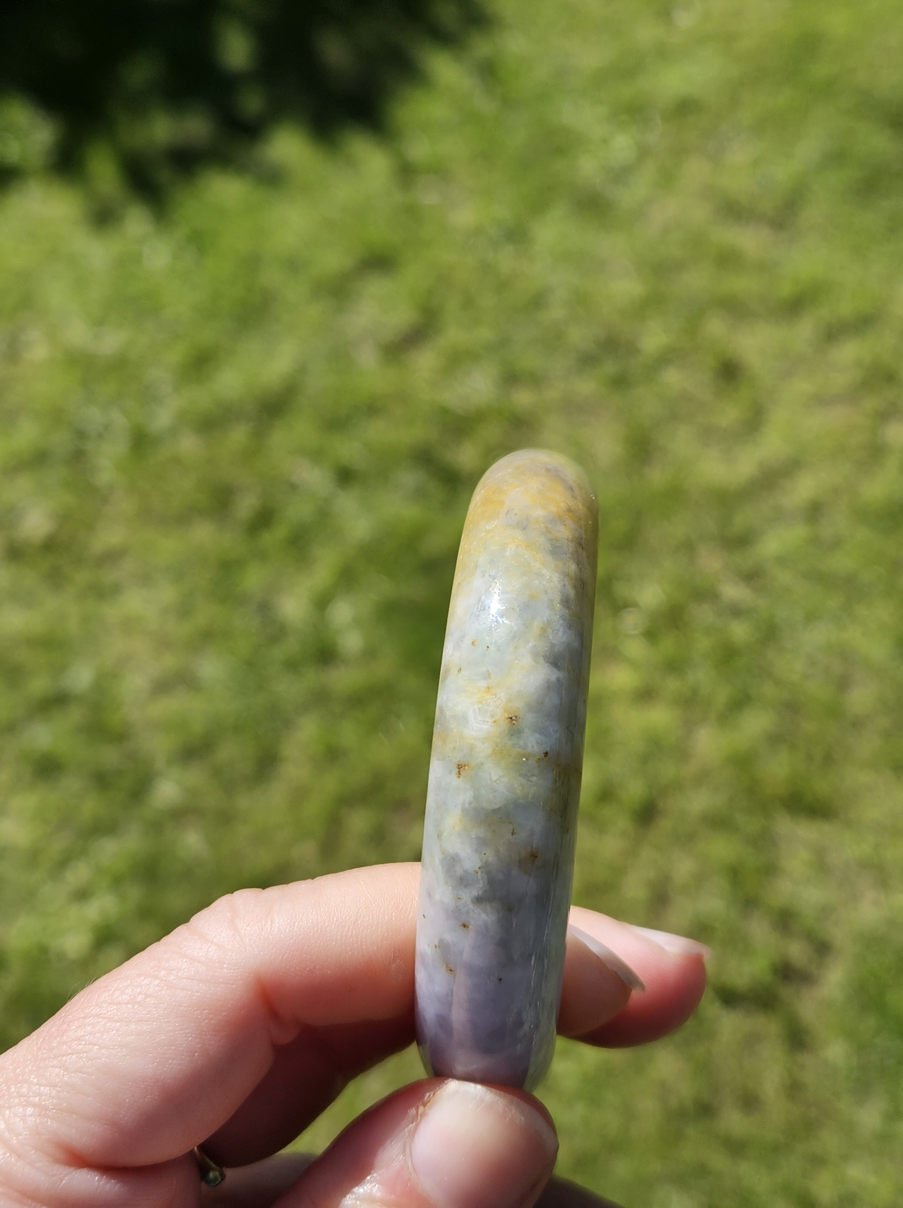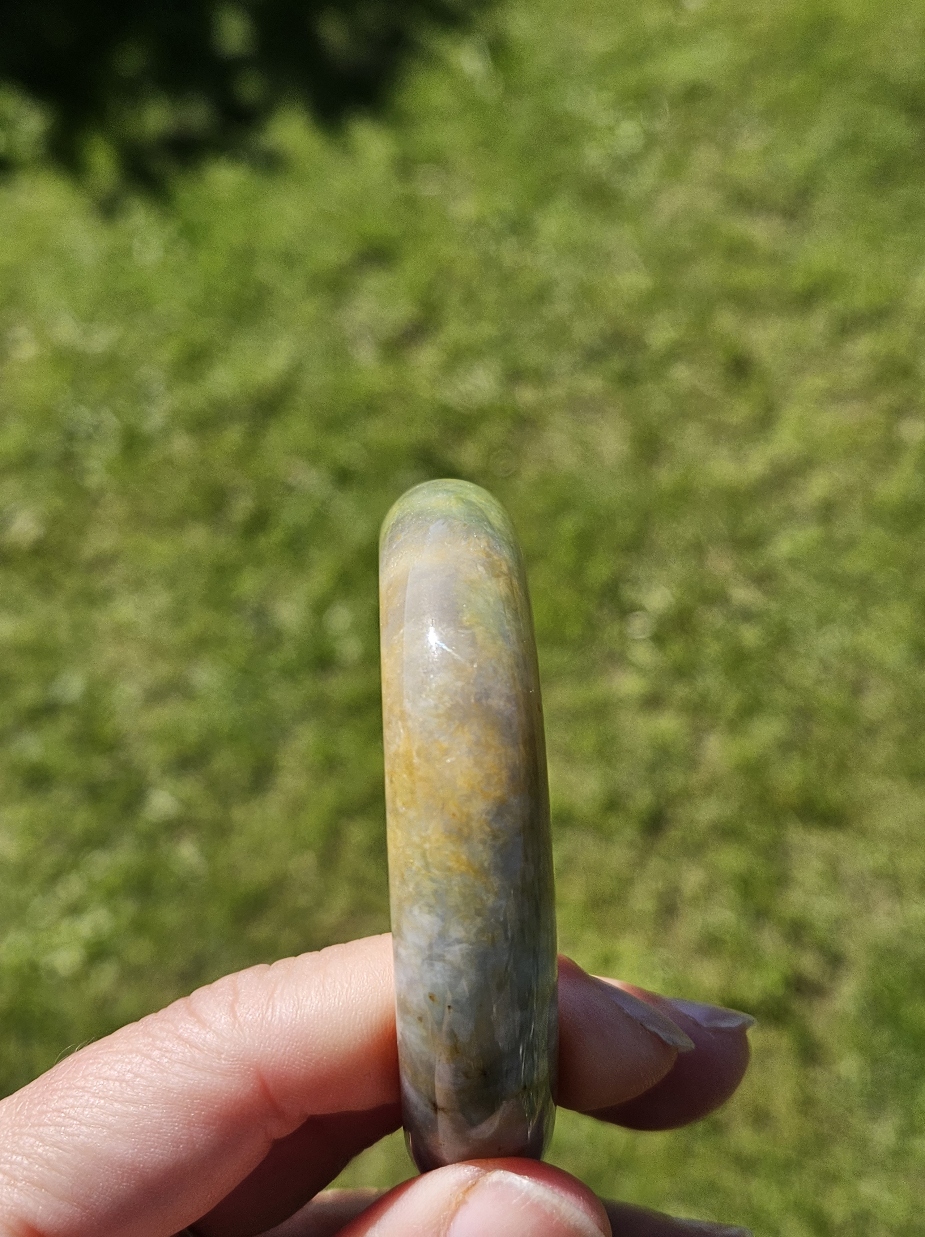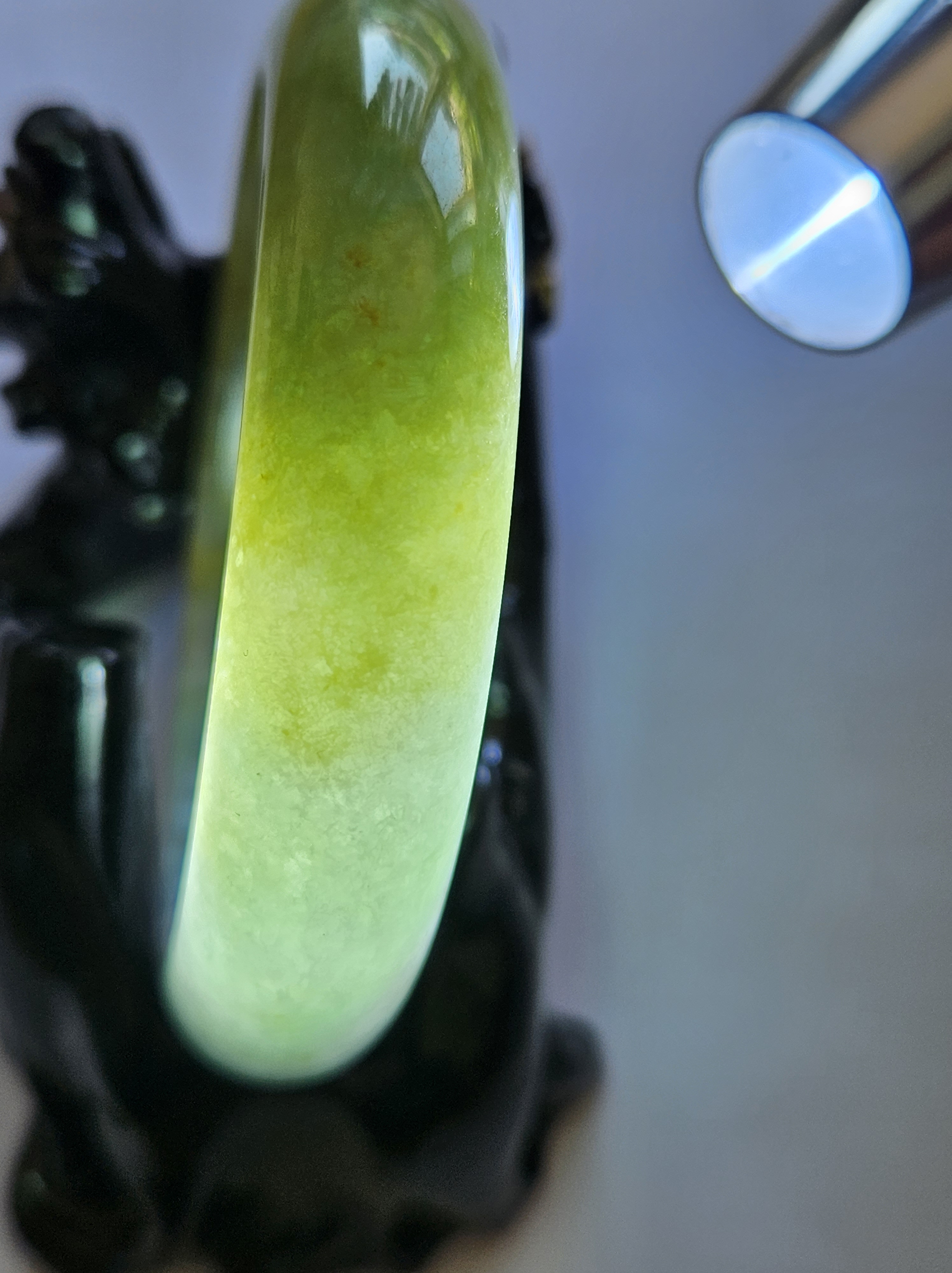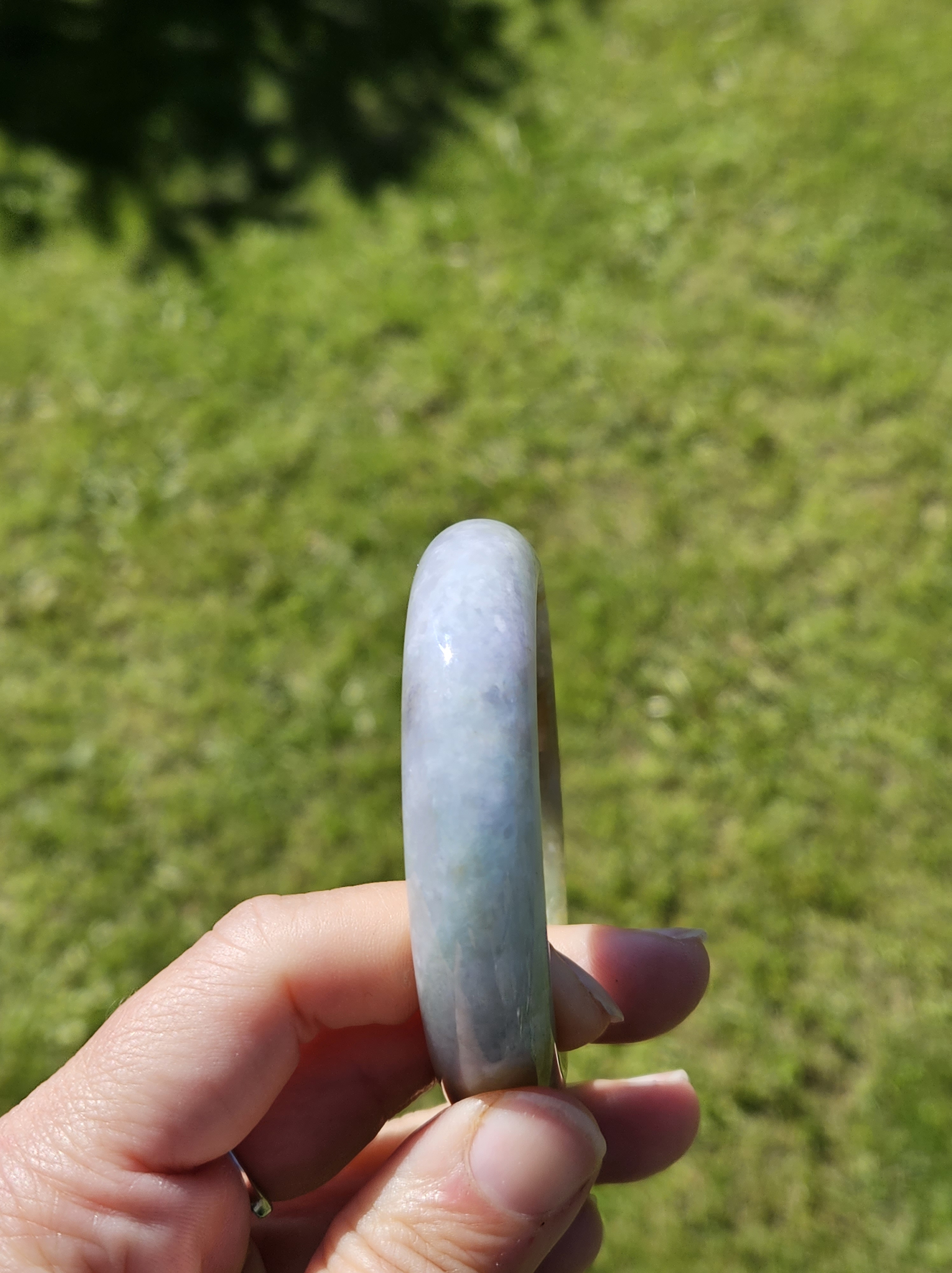 Stunning Burmese jadeite bangle with green,yellow and purple also known as Fulushou福禄寿 signifying good fortune, prosperity and longevity. The colours are natural and will add value as time goes. Measures 57.2 x 14.2 x 8.1mm, weighs 62.49g, comes with a certificate of authenticity £1380