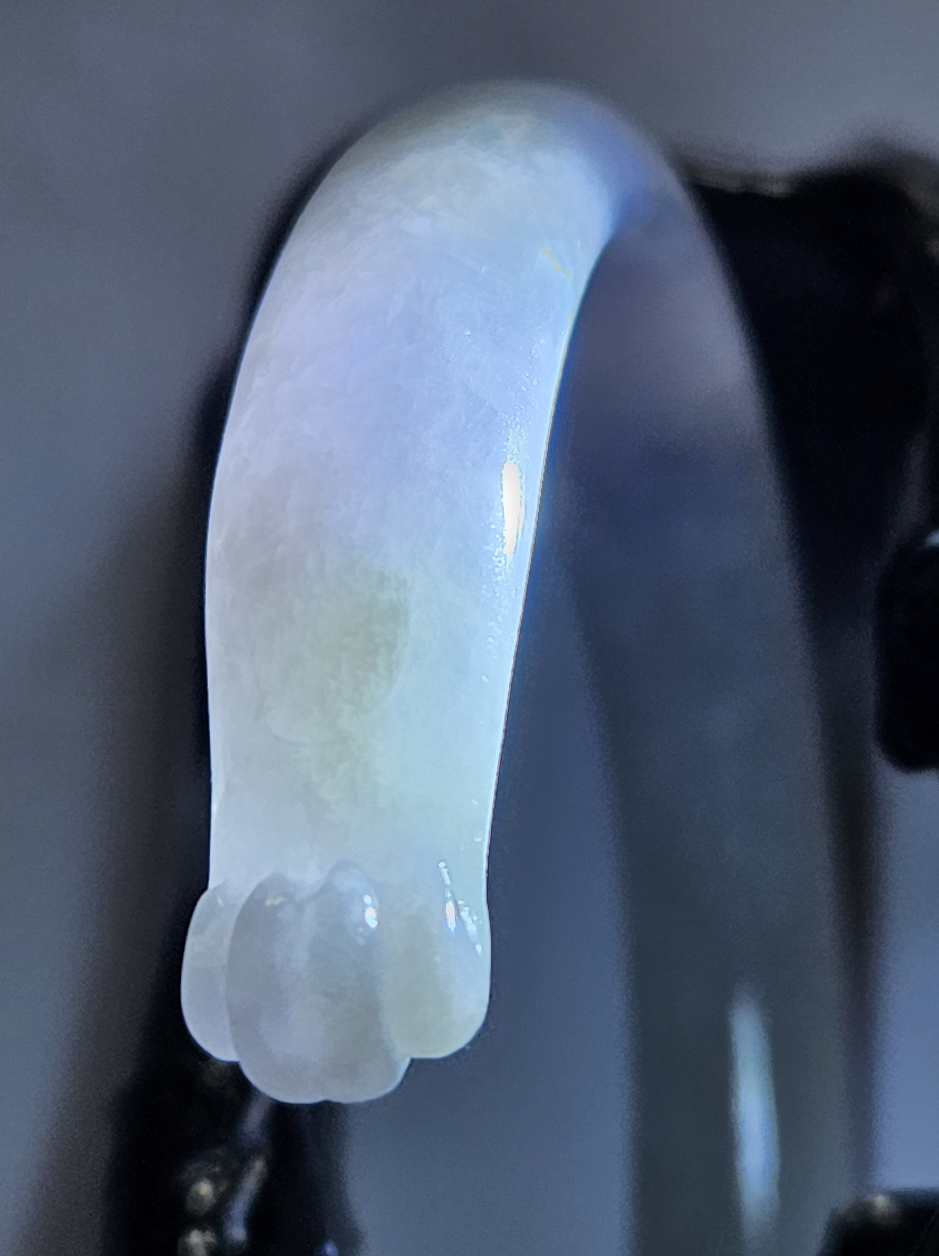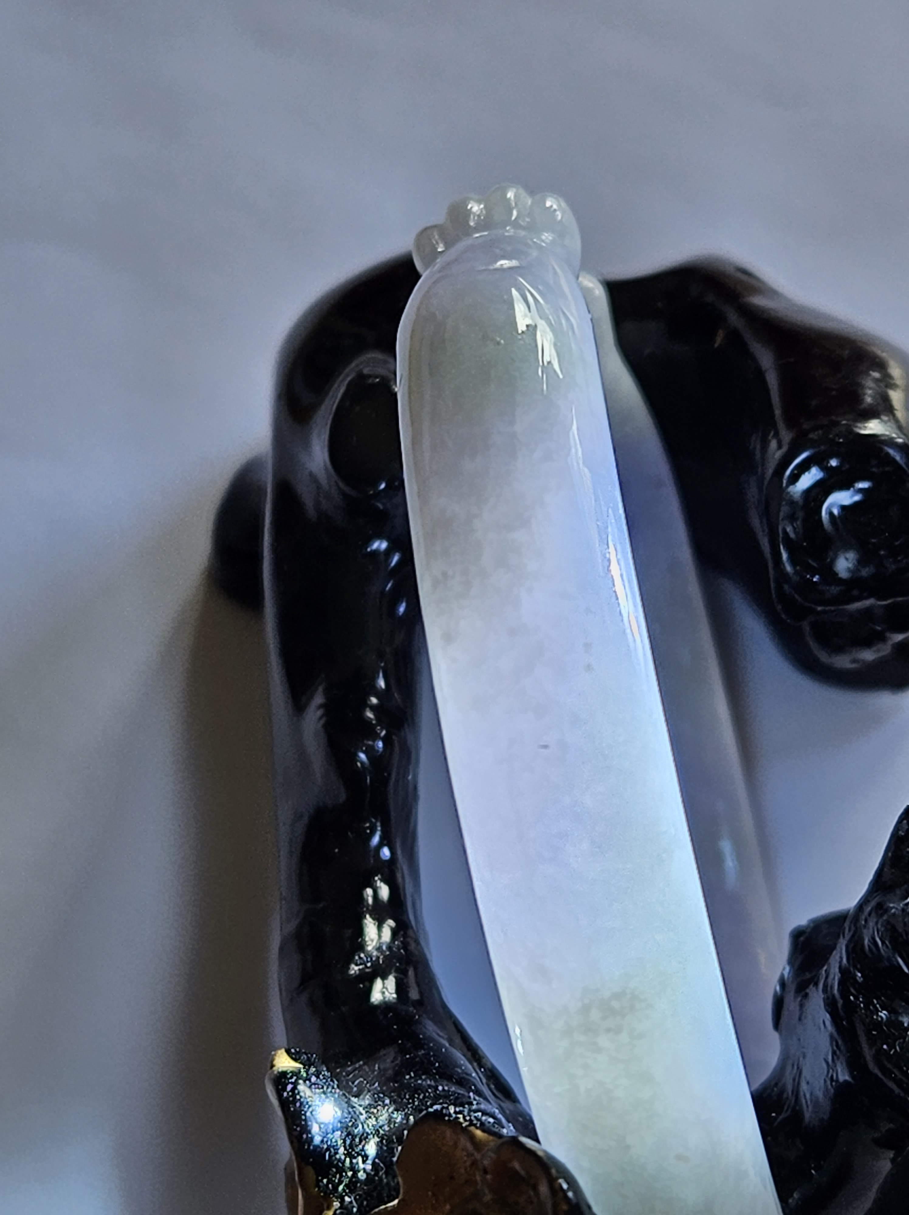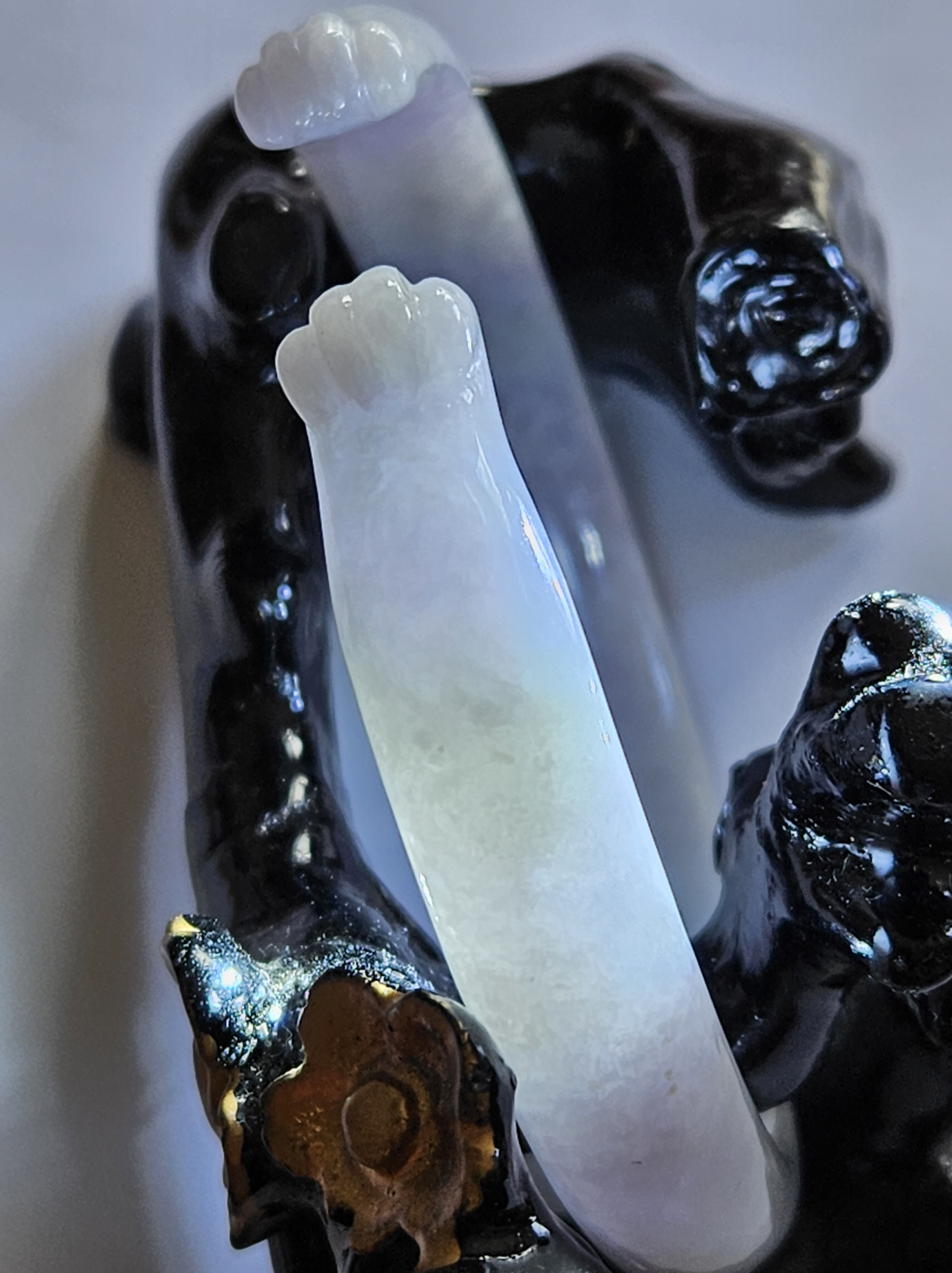 Full light purple jadeite cuff bangle measures 57.5 x 11.2 x 7.7mm, fits up to 59mm, the cuff is carved into the shape of adorable paws. Weighs 35.14g, comes with a certificate of authenticity £428
