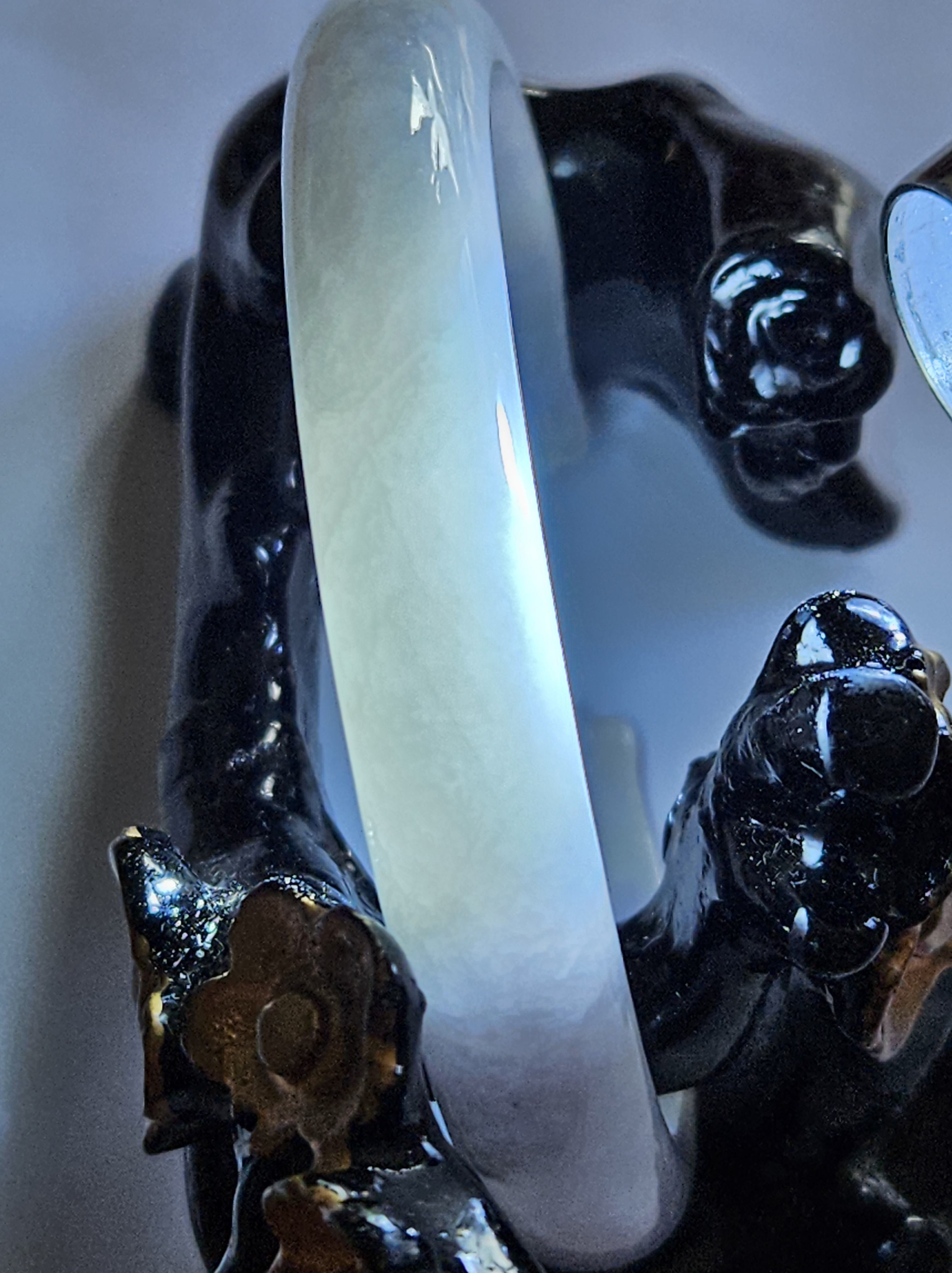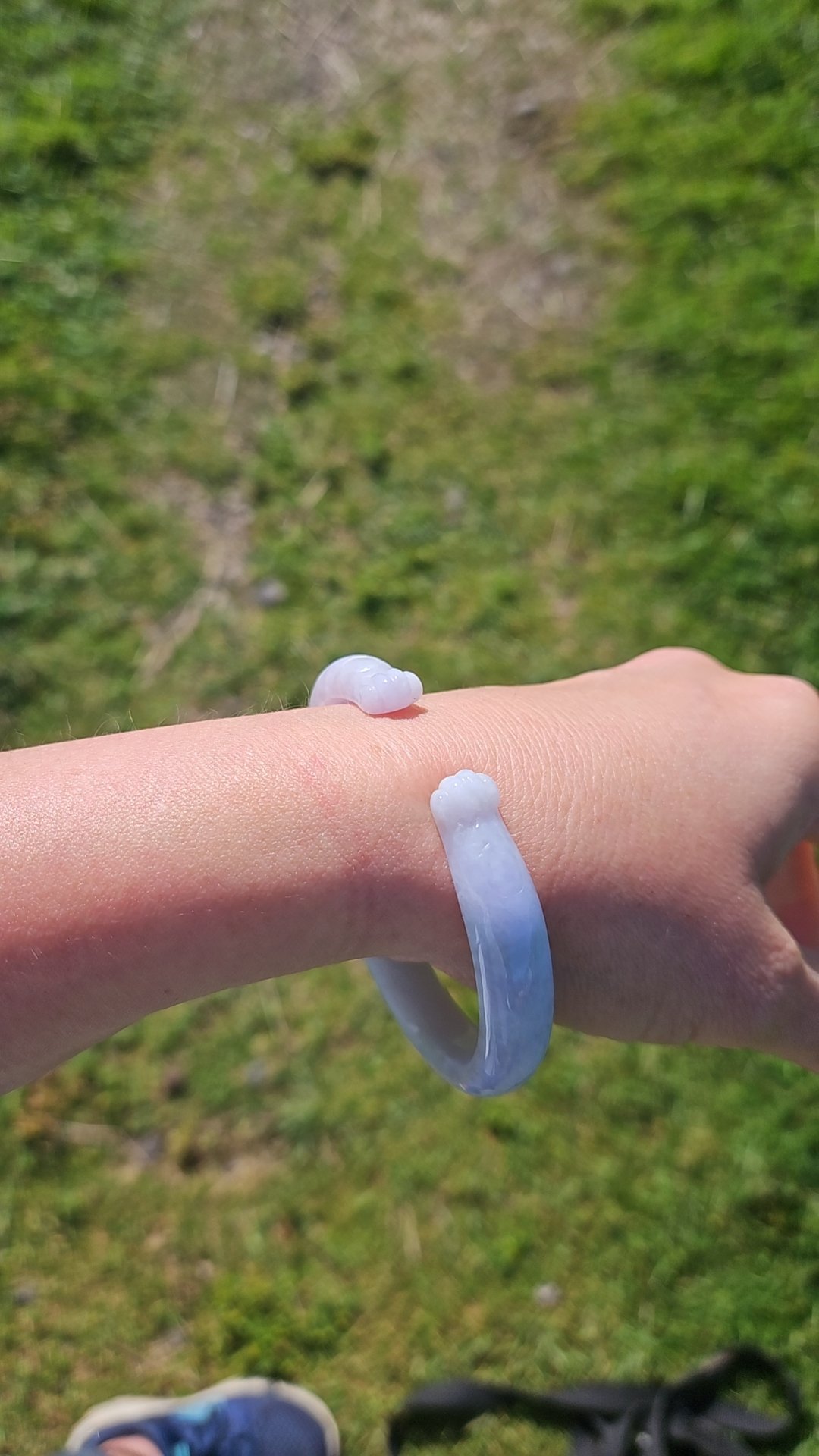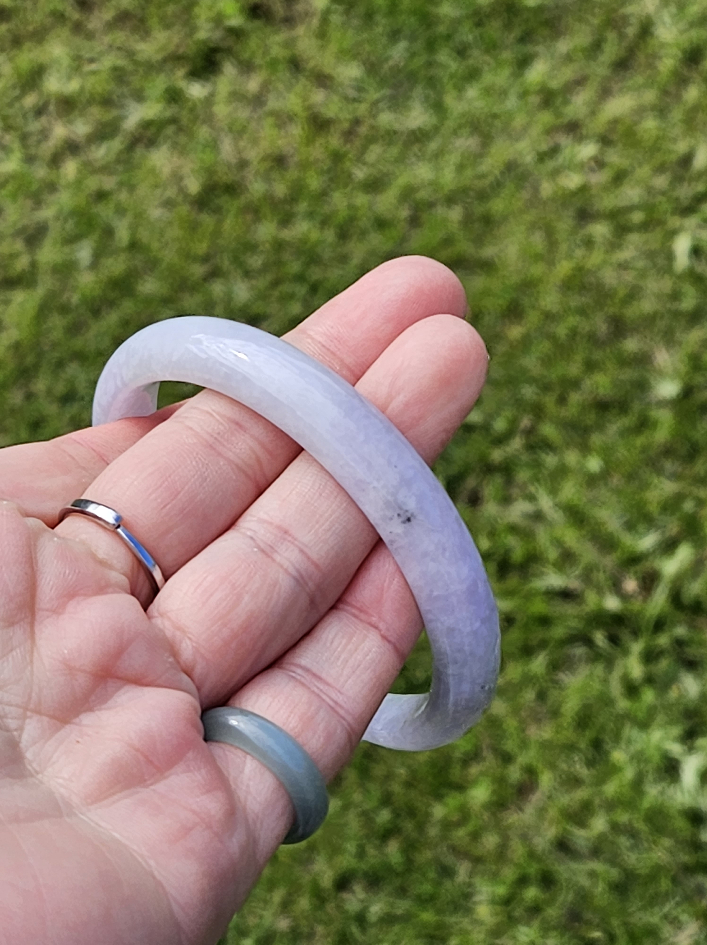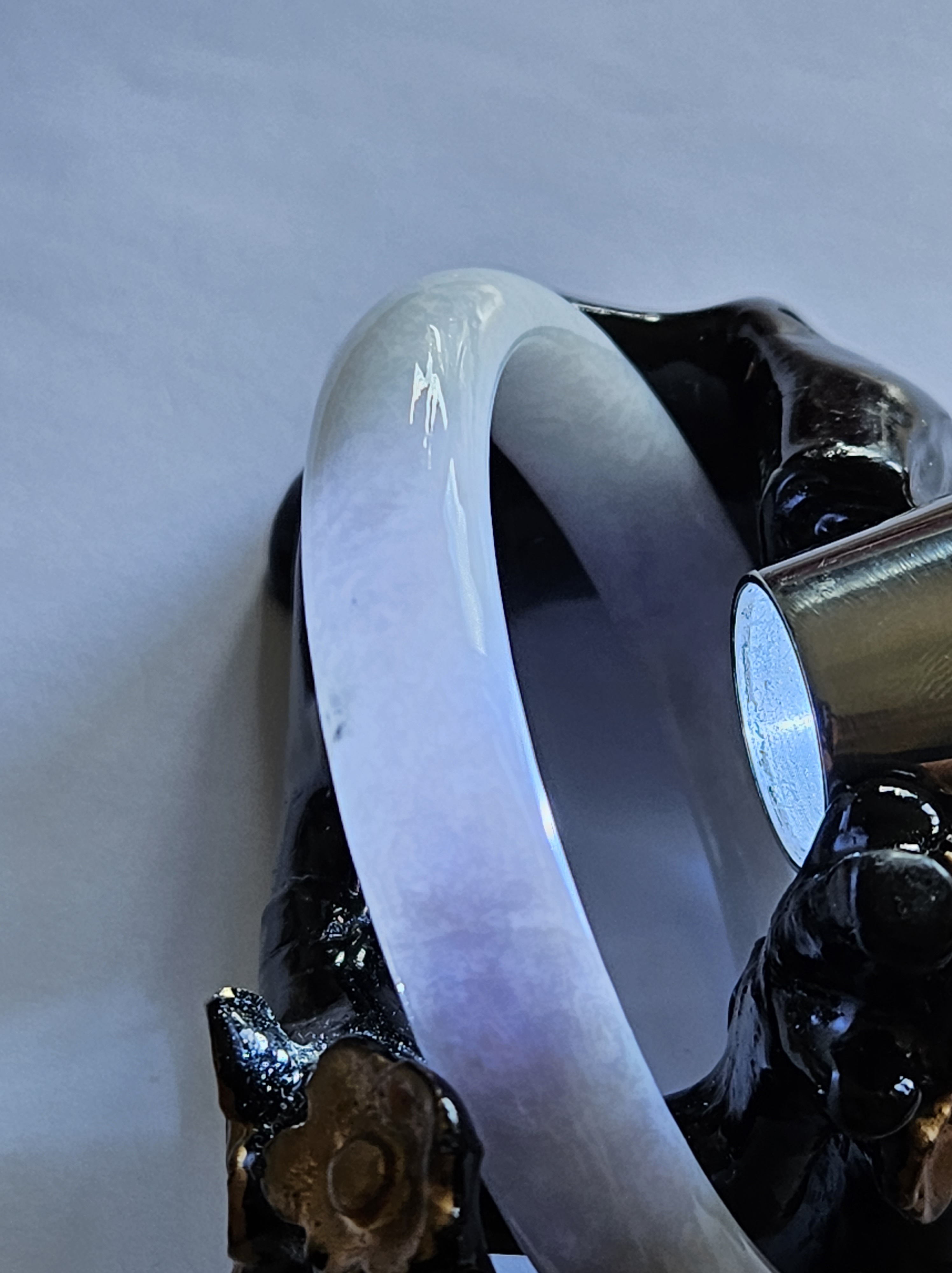 Full light purple jadeite cuff bangle measures 57.5 x 11.2 x 7.7mm, fits up to 59mm, the cuff is carved into the shape of adorable paws. Weighs 35.14g, comes with a certificate of authenticity £428