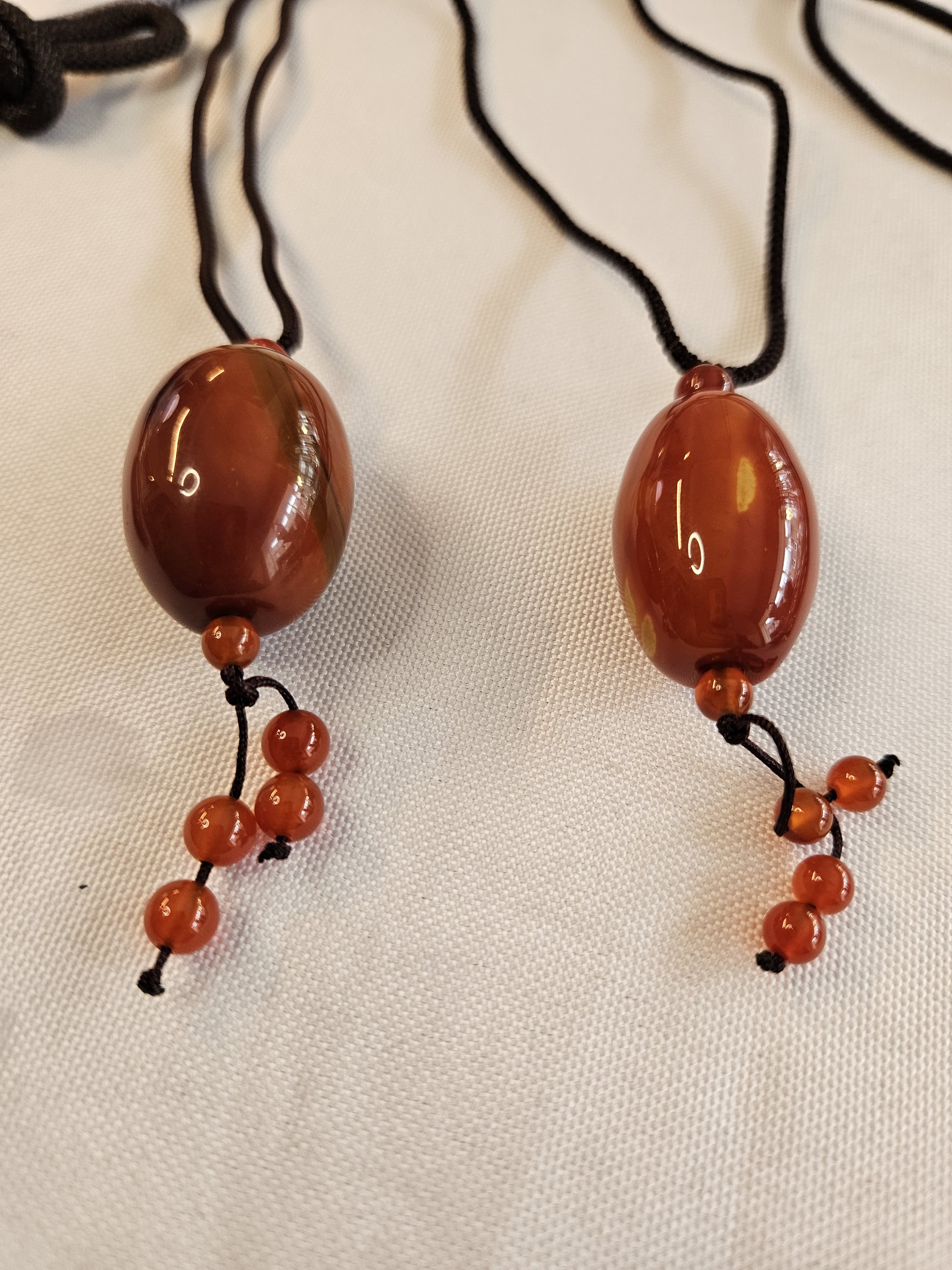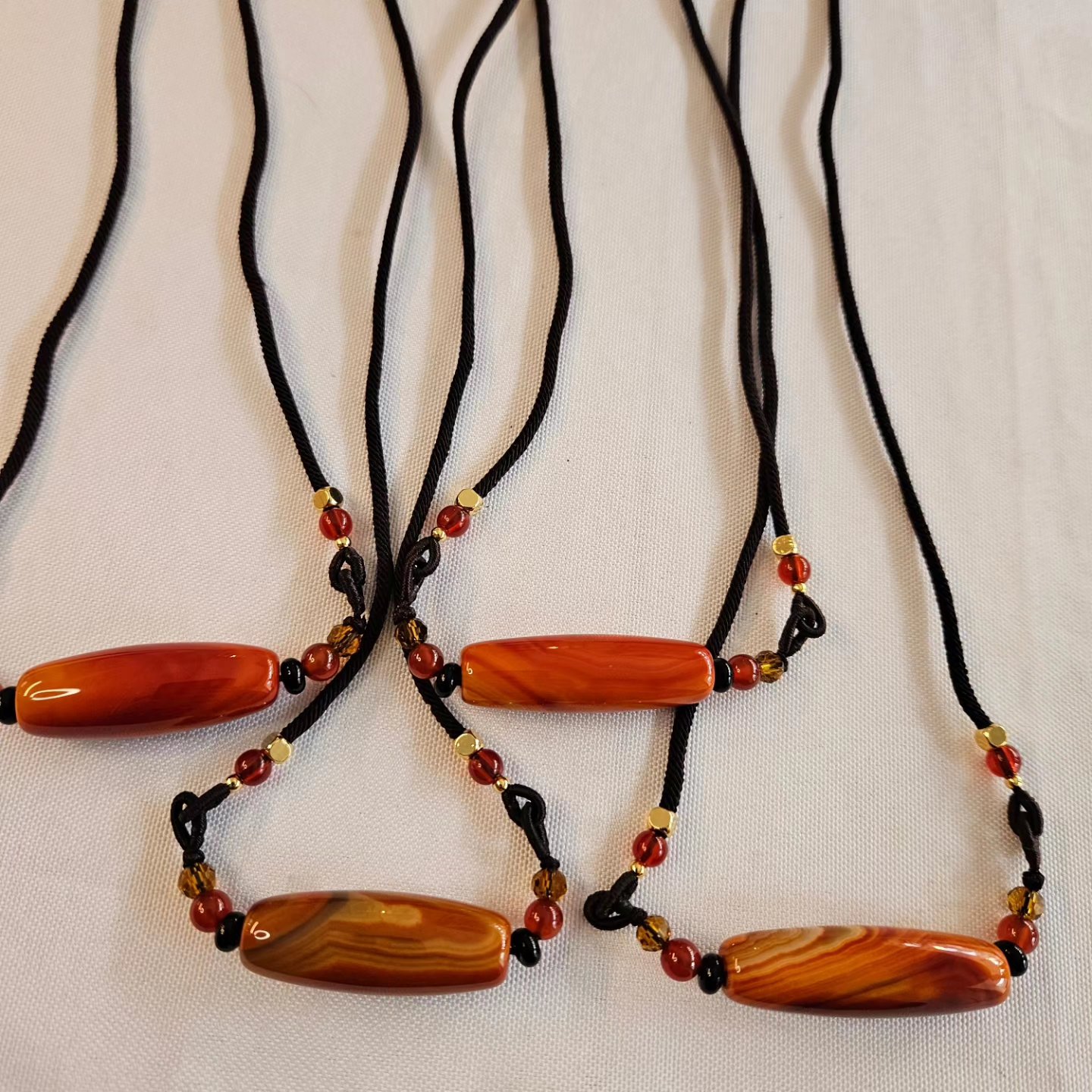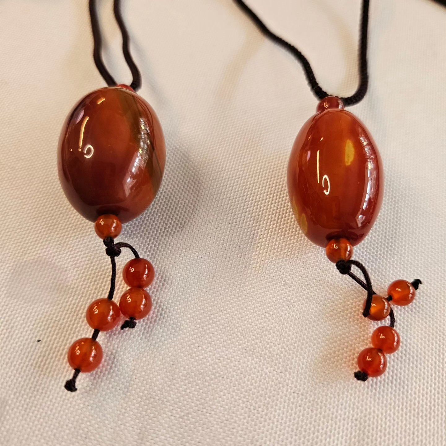 These Zhanguo (warring states) carnelian agate (战国红玛瑙) is a beautiful and rare natural gemstone that comes from Liaoning province in China. They have strong red orangey colors with intricate patterns. It received its name because it resembles a material found in Warring States tombs from the period 475-221 BC..