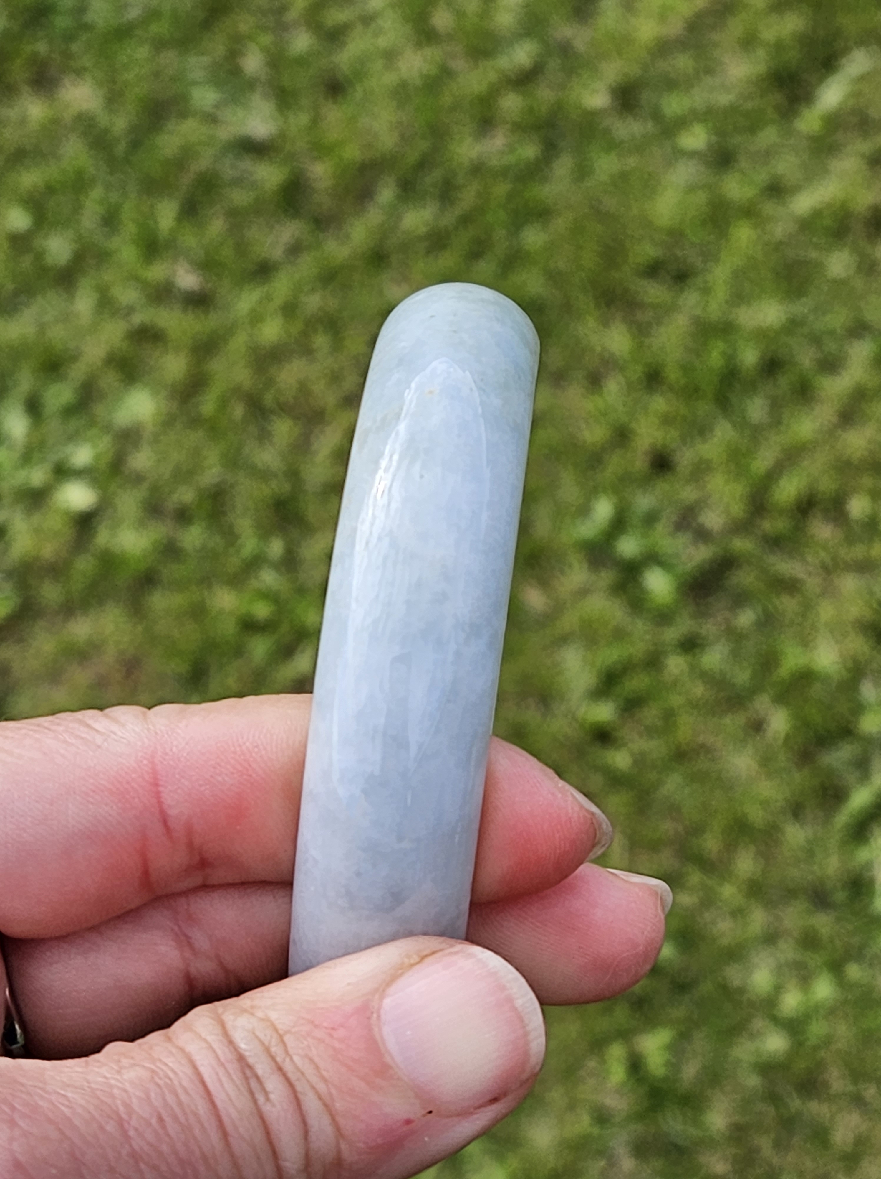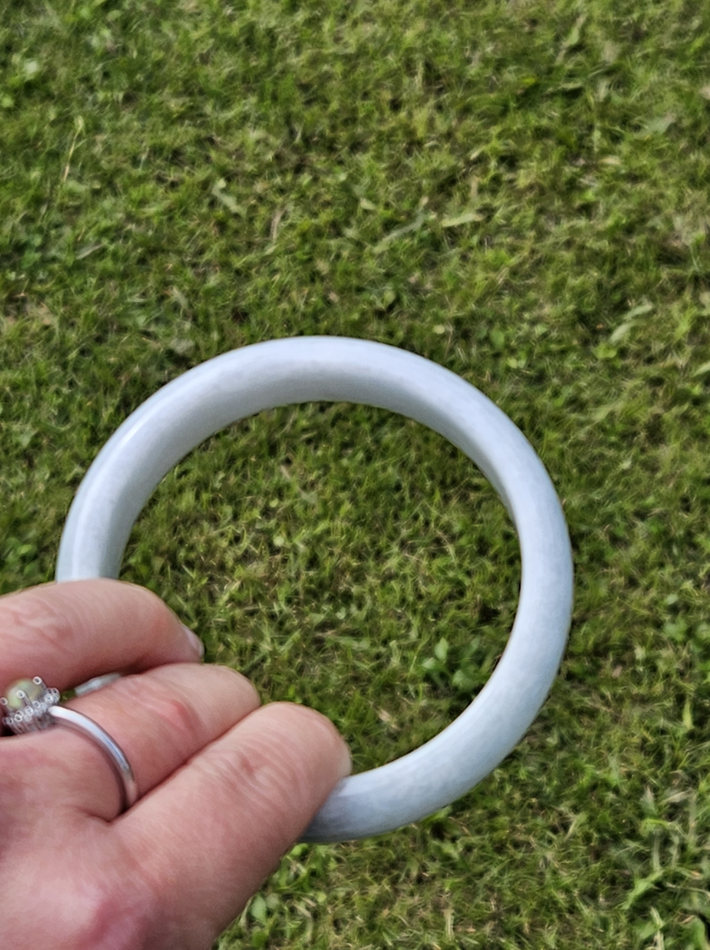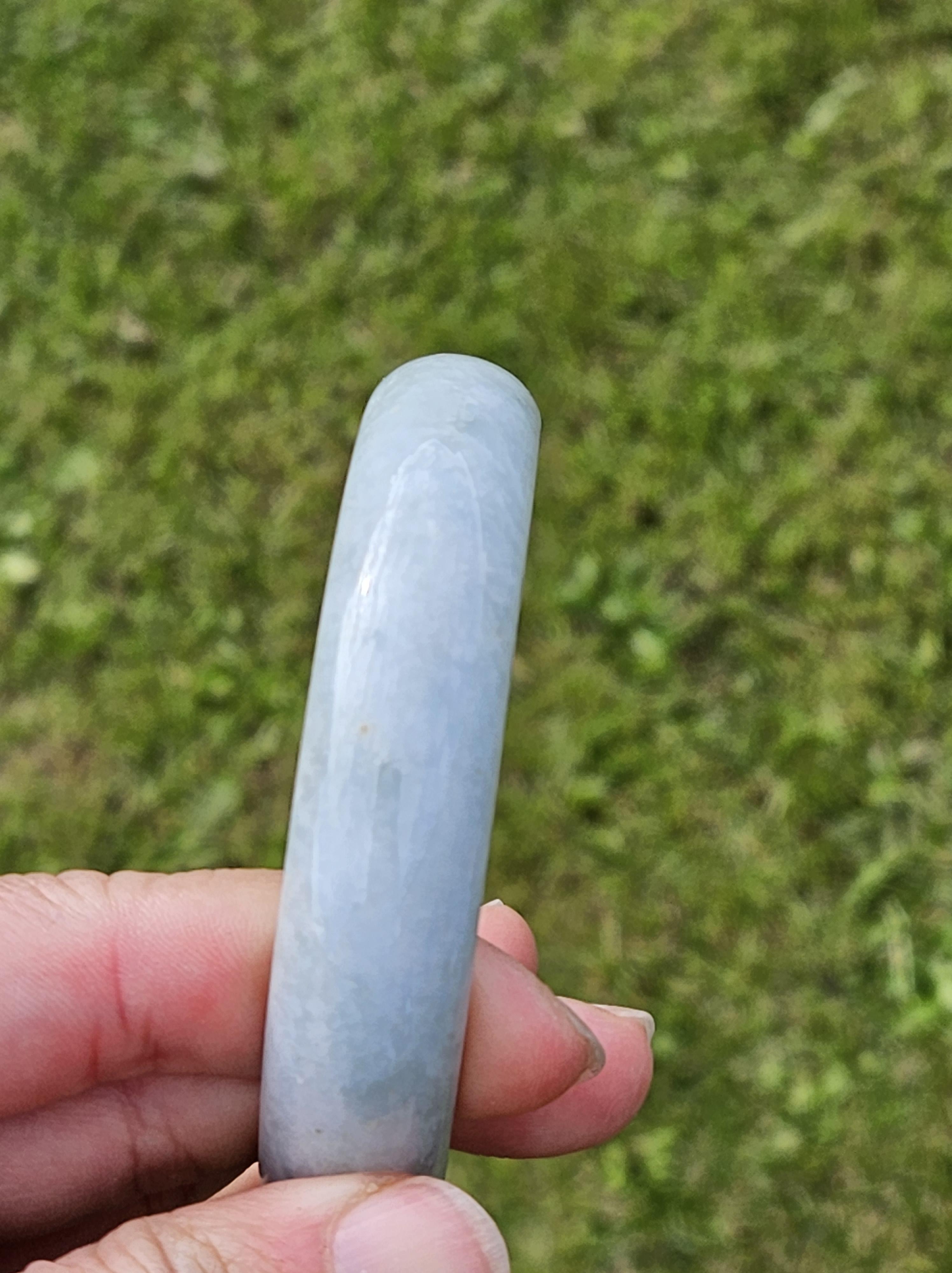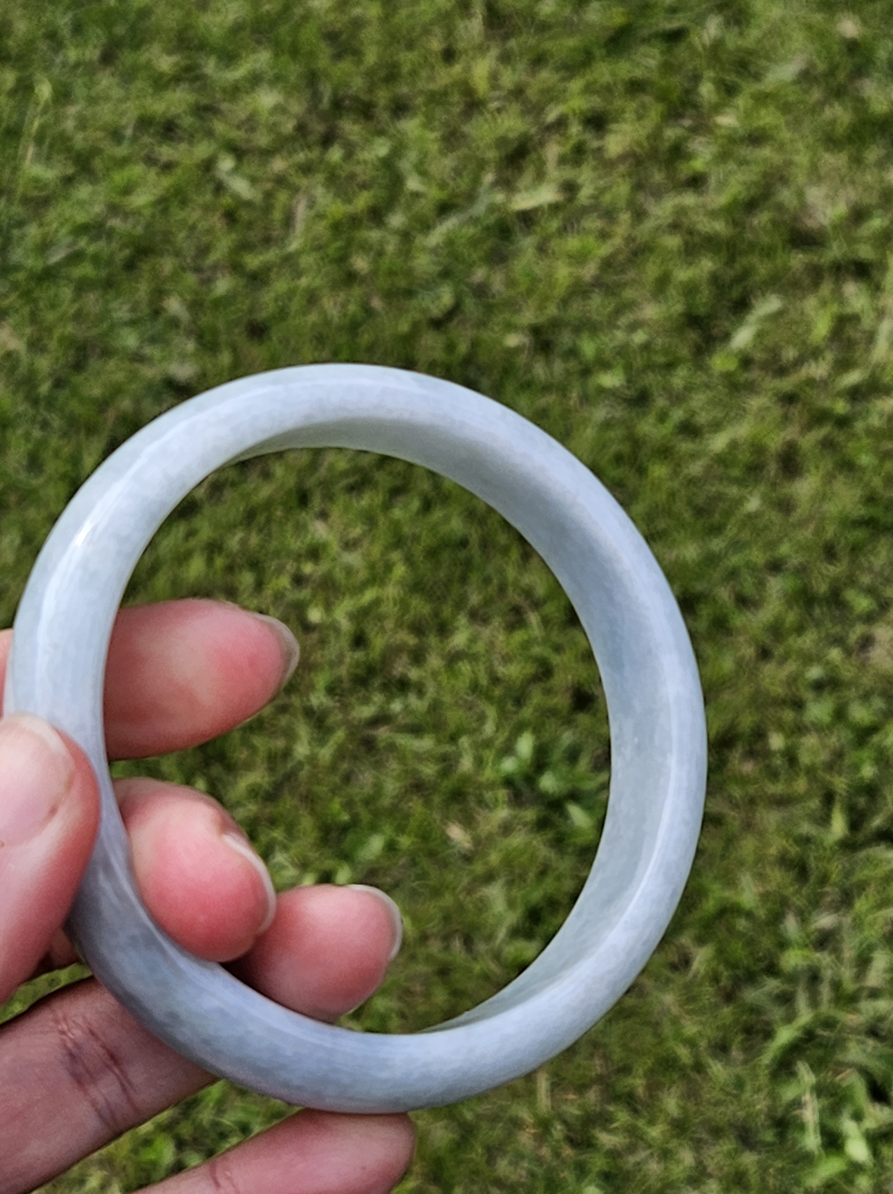 Not often available at this size, lovely light green colour Burmese jadeite bangle with yellow sesame seeds. Measures 64.4 x 15.4 x 8.2mm, weighs 70.90g, comes with a certificate of authenticity £298
