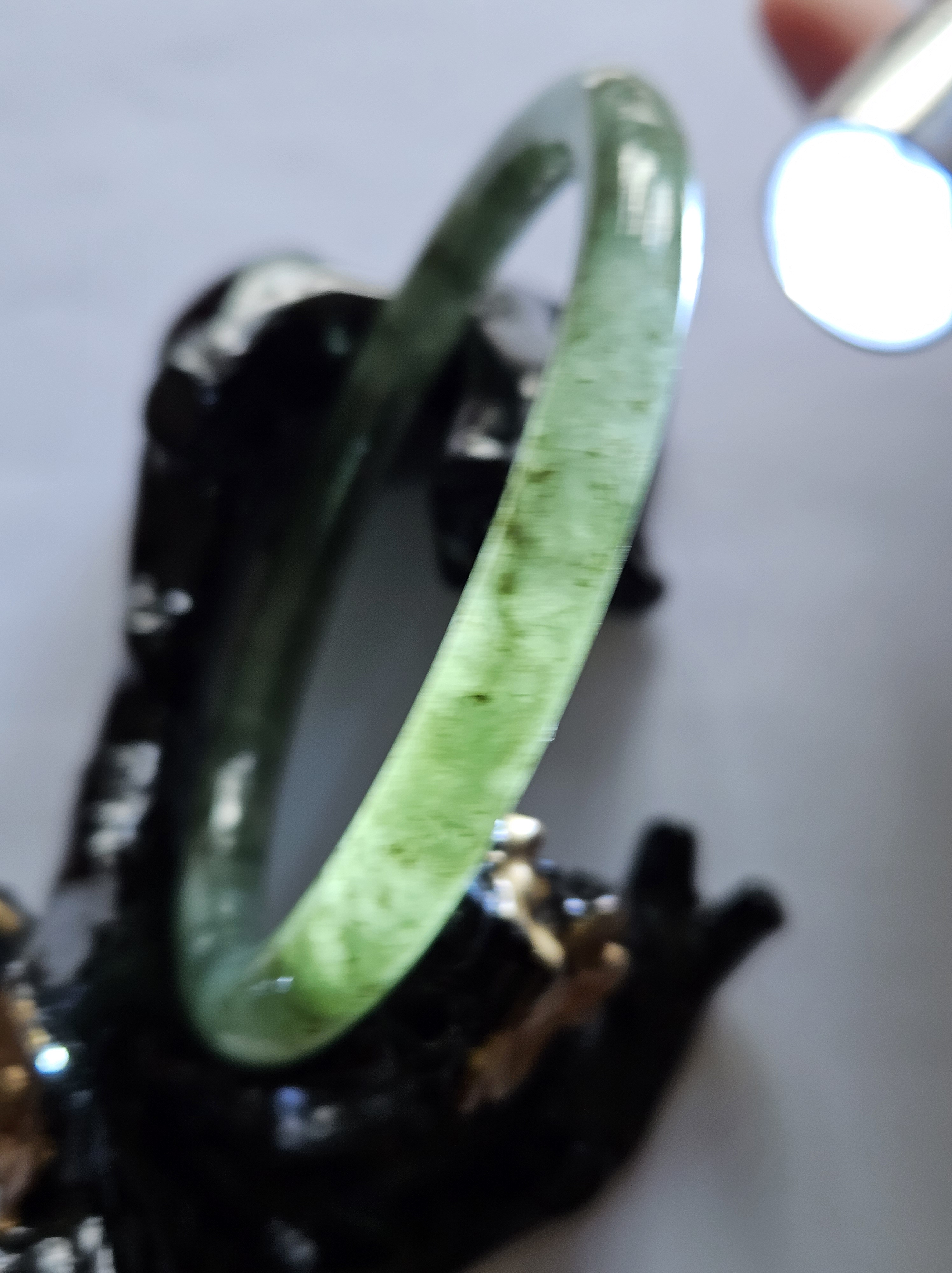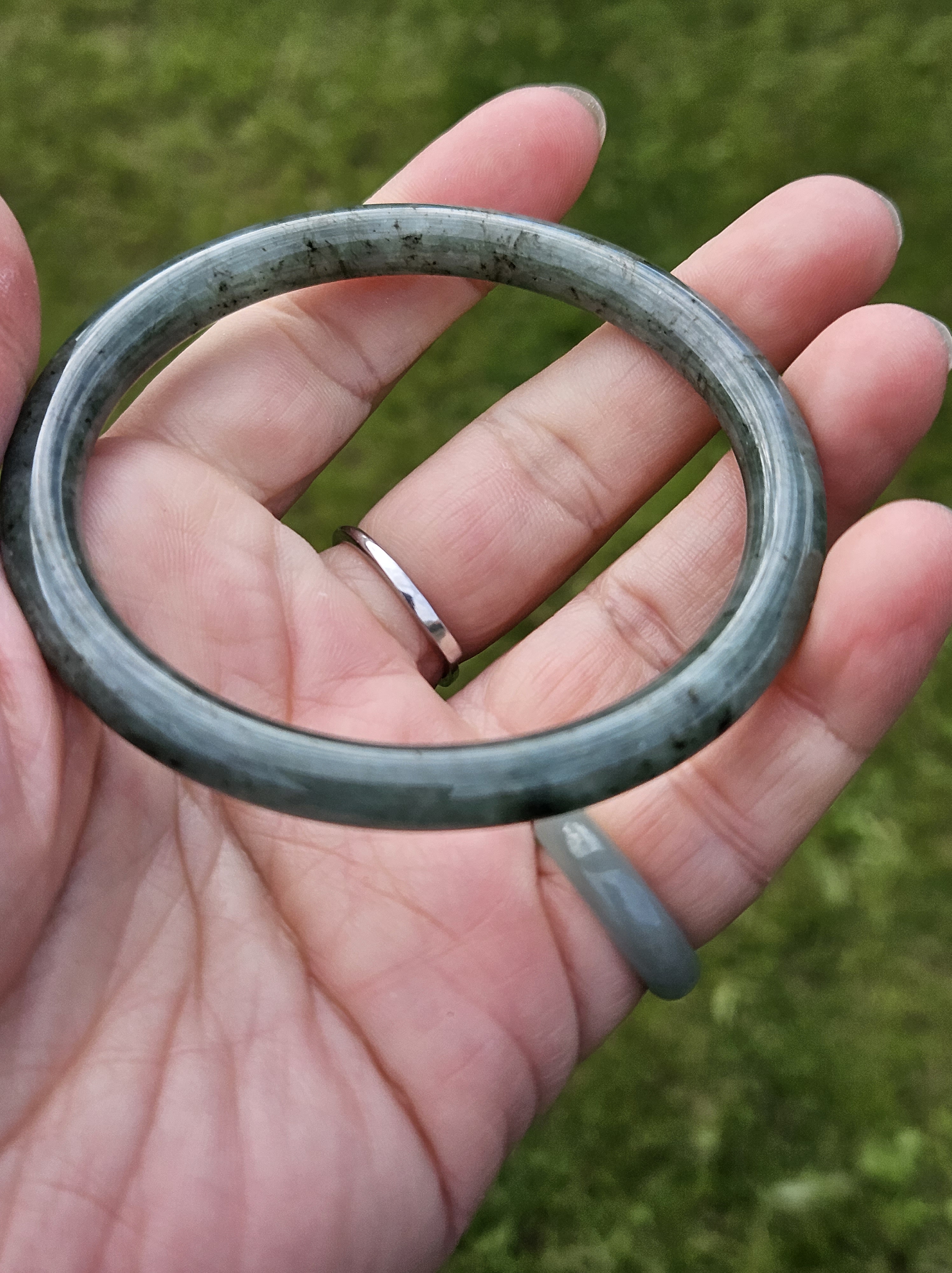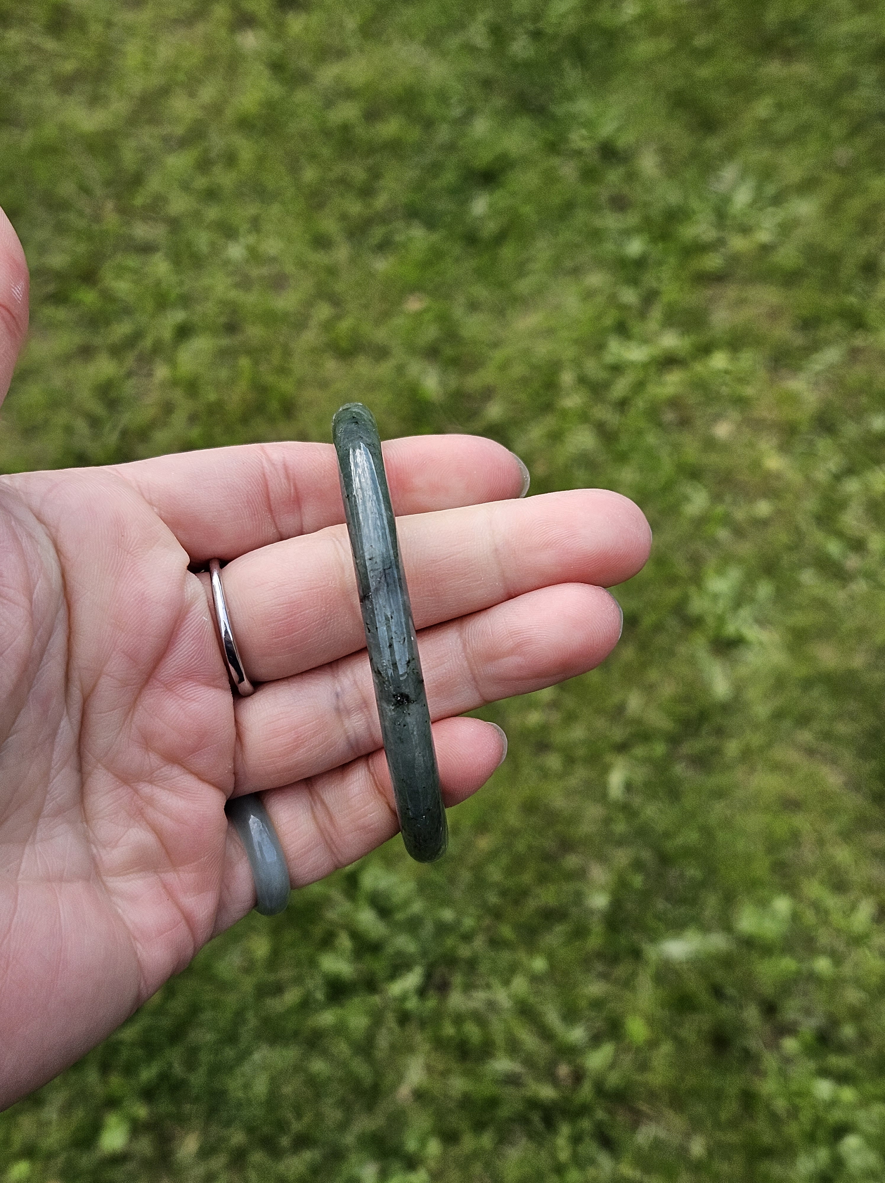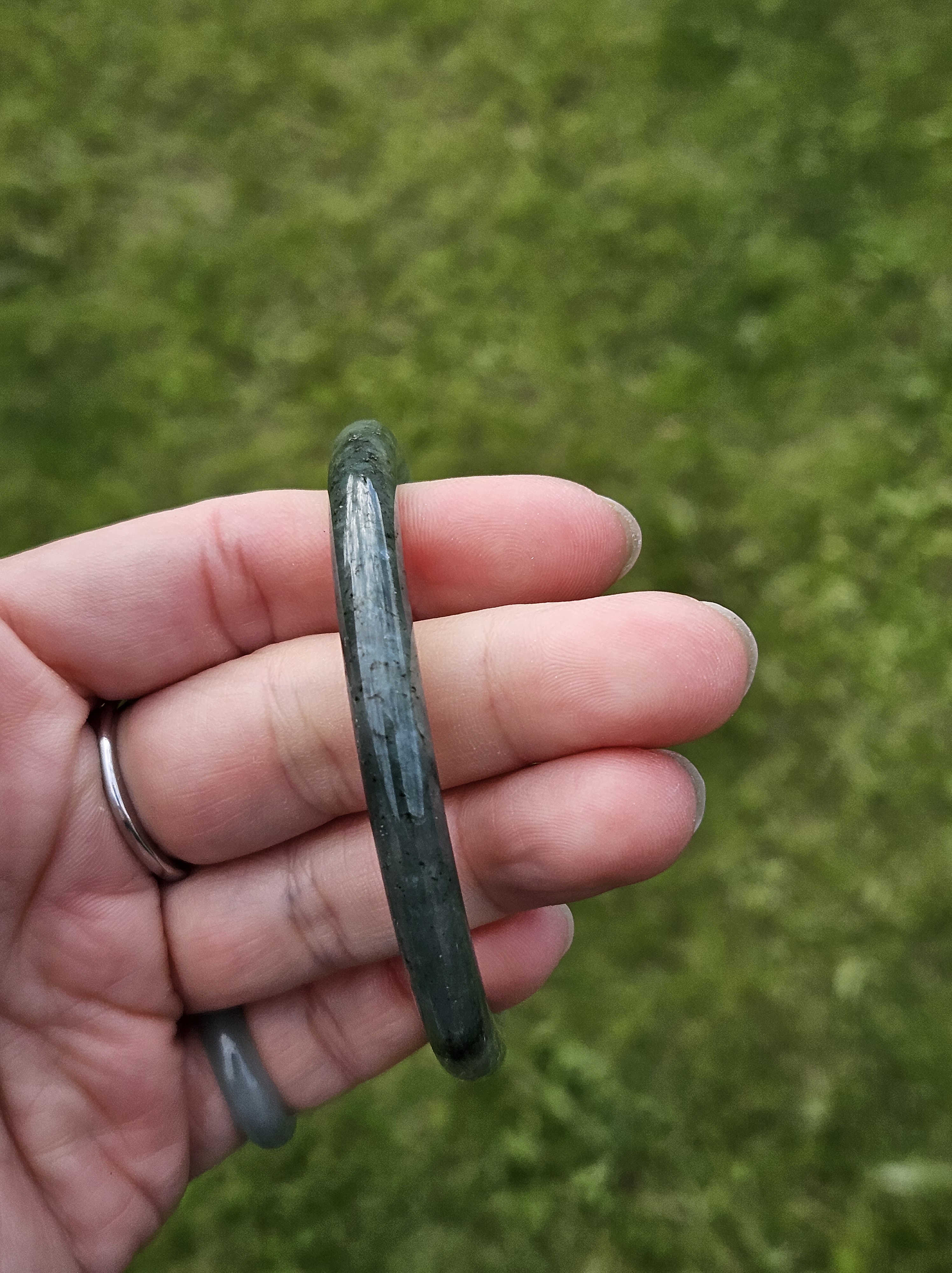 Fits up to 60mm, it can be formed into a pair of ding dangs with another similar colour, size and thickness bangle. Measures 58 x 7.1 x 7.1mm, weighs 25.95g, comes with a certificate of authenticity £109